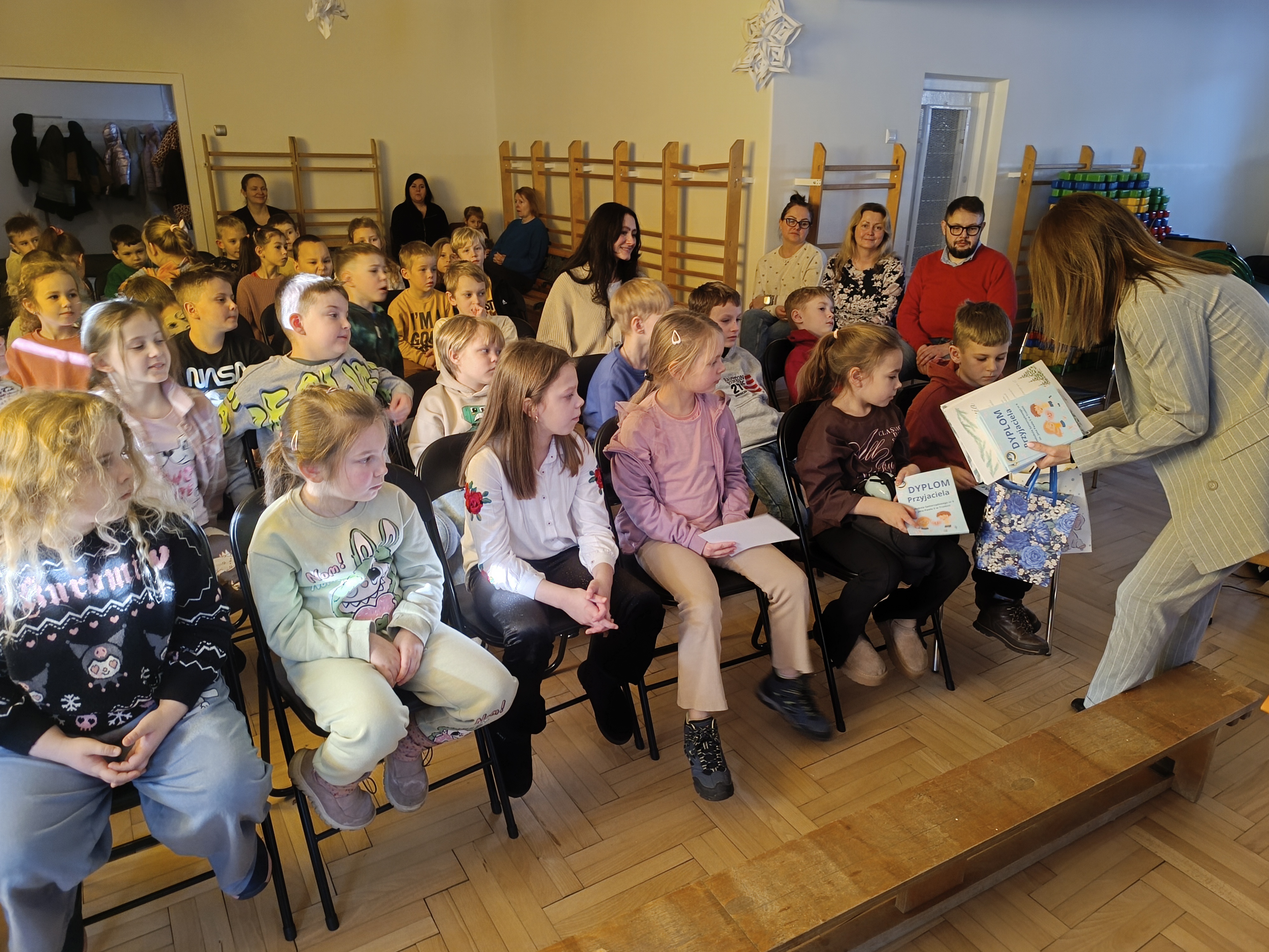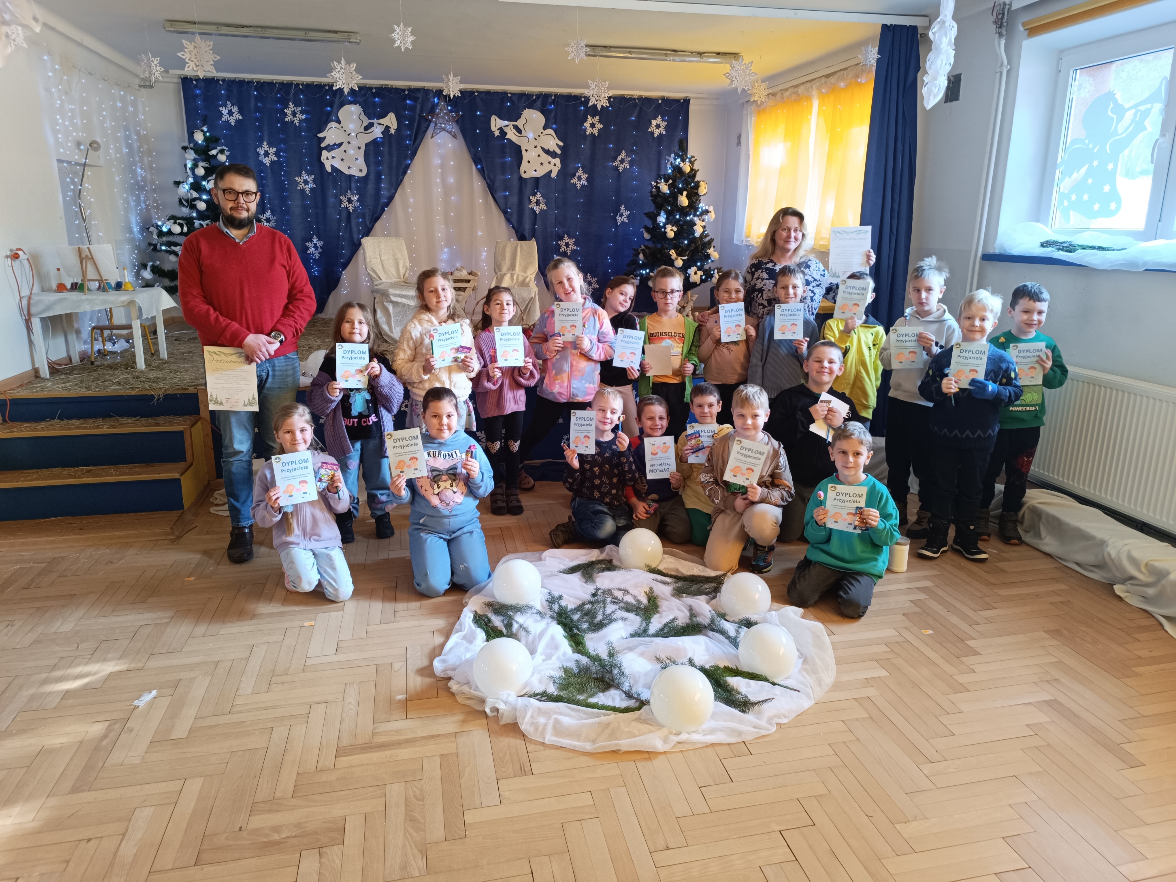 Na sam koniec spotkania nauczyciele i dyrektor otrzymali podziękowania za przybycie, a uczniowie klas pierwszych dyplomy „Przyjaciela Przedszkola” oraz upominki.