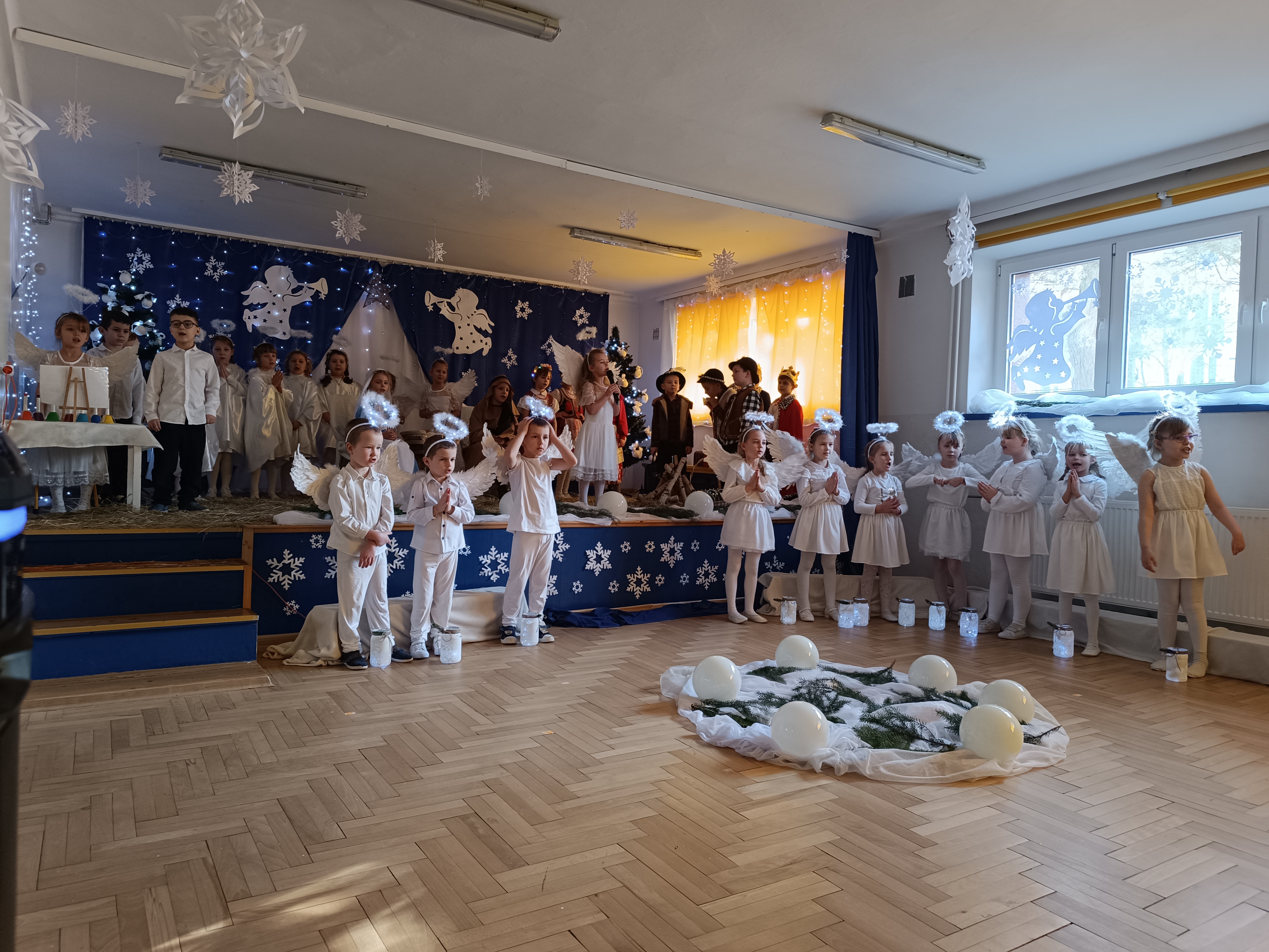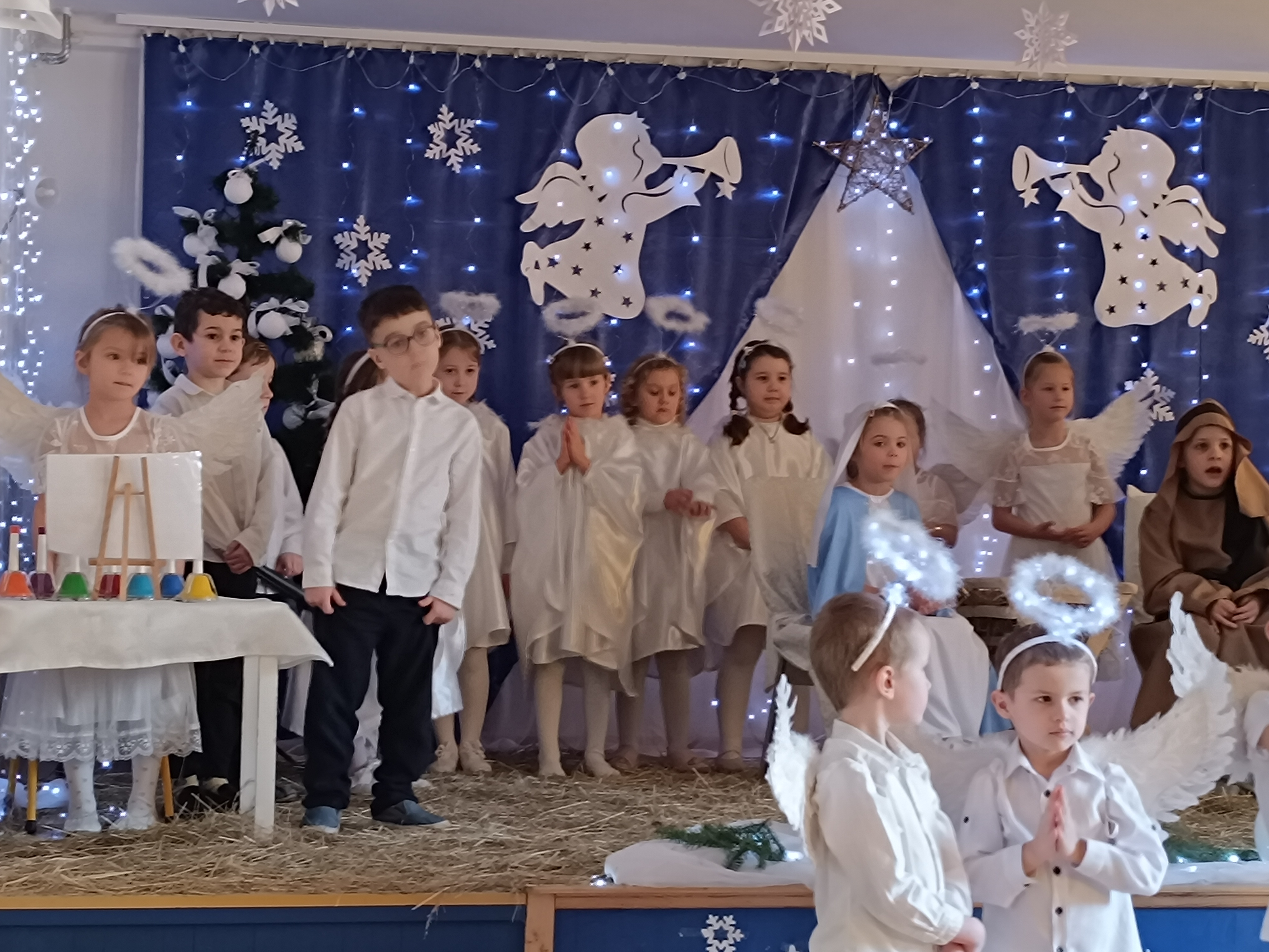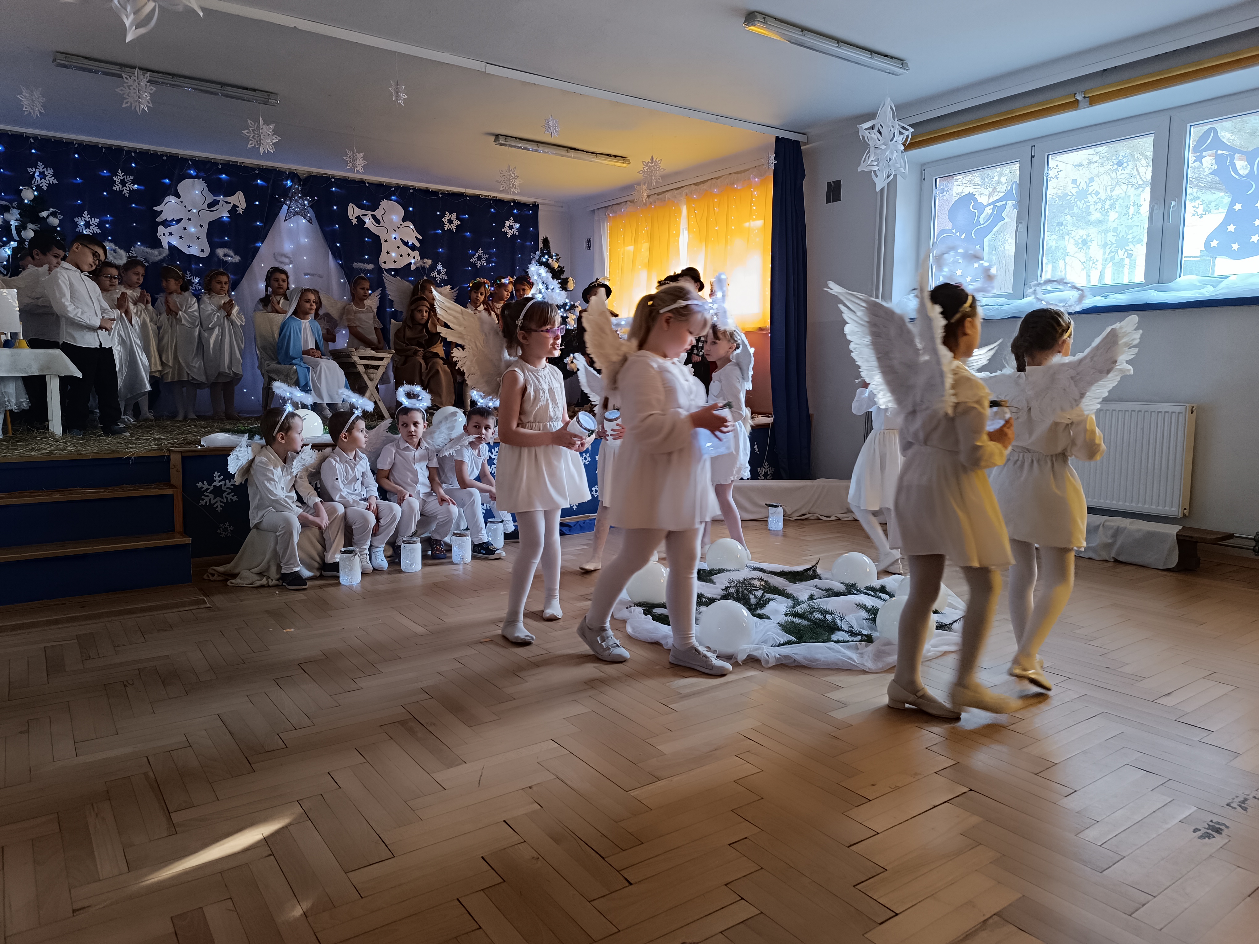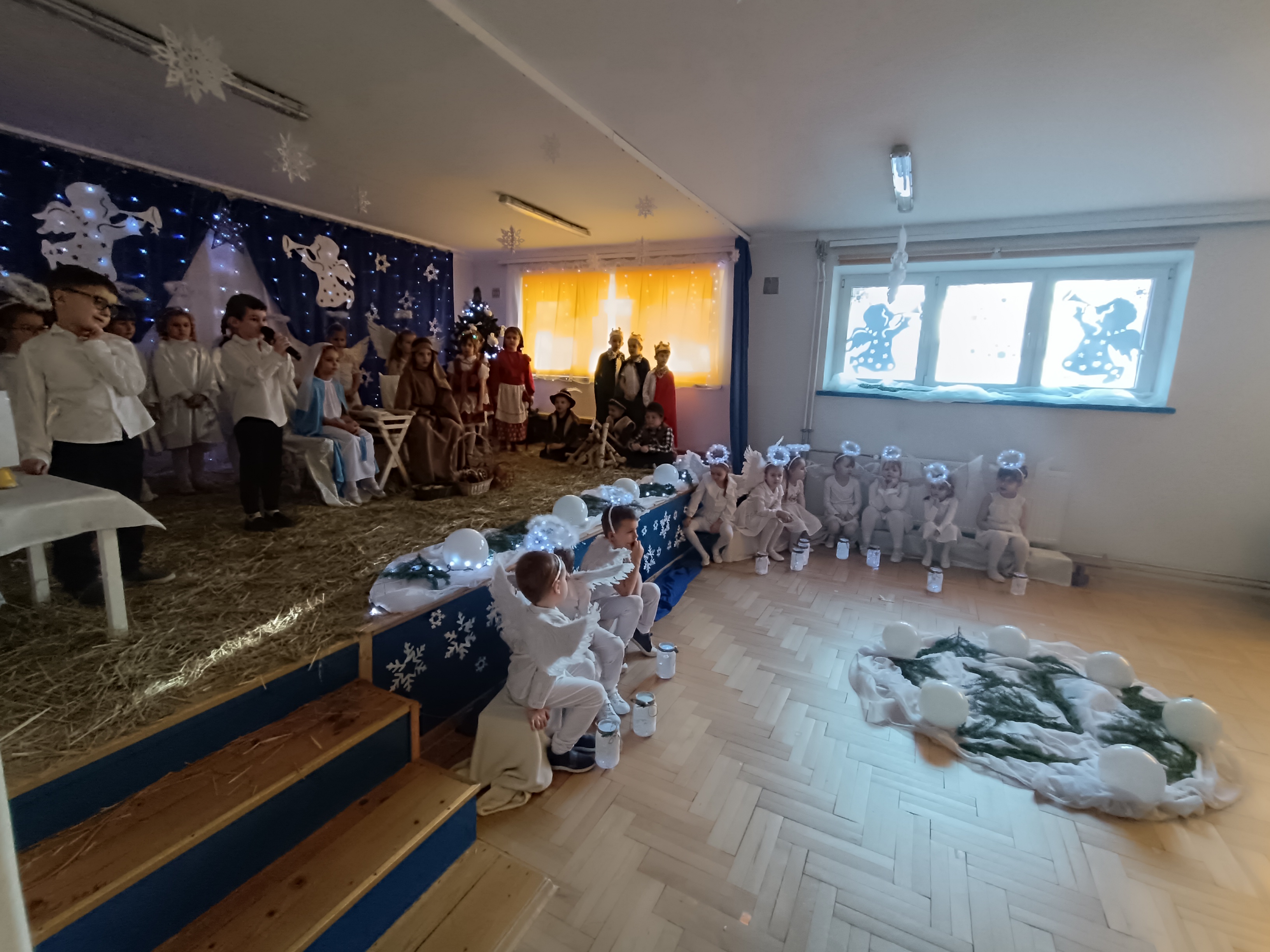 Nasze przedszkolaki z grup 4 i 5, wspólnie z Panią Dyrektor oraz swoimi wychowawcami, zaprosiły uczniów klas pierwszych ze Szkoły Podstawowej nr 6 im. Władysława Broniewskiego oraz Szkoły Podstawowej nr 5 im. Jana III Sobieskiego wraz z nauczycielami oraz Dyrektorem na uroczyste przedstawienie - Jasełka, które wzbudziło duże zainteresowanie u zaproszonych gości.