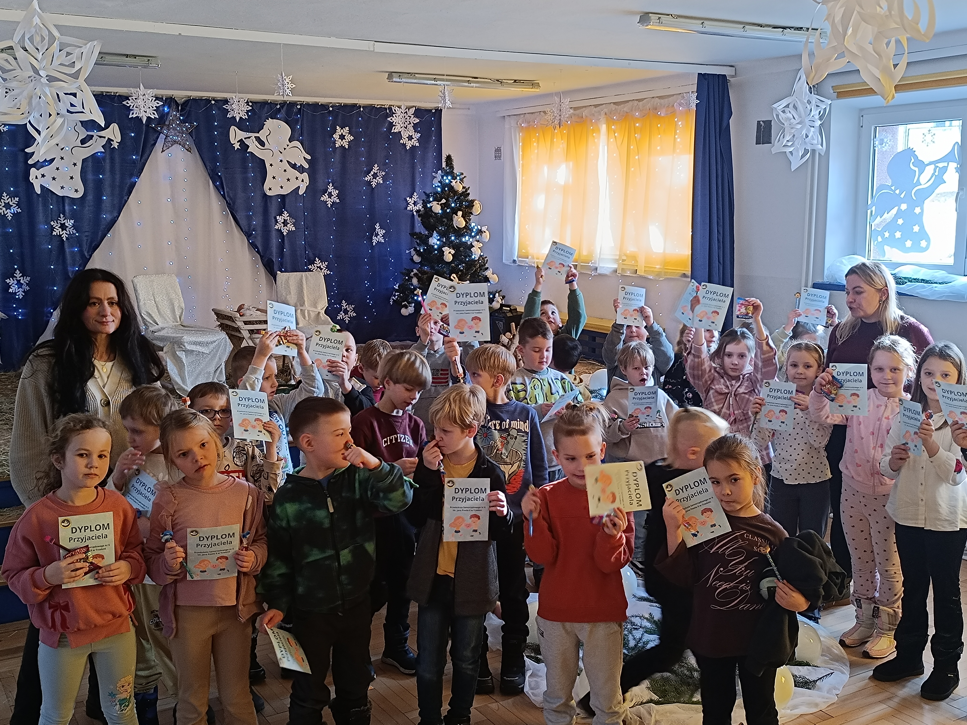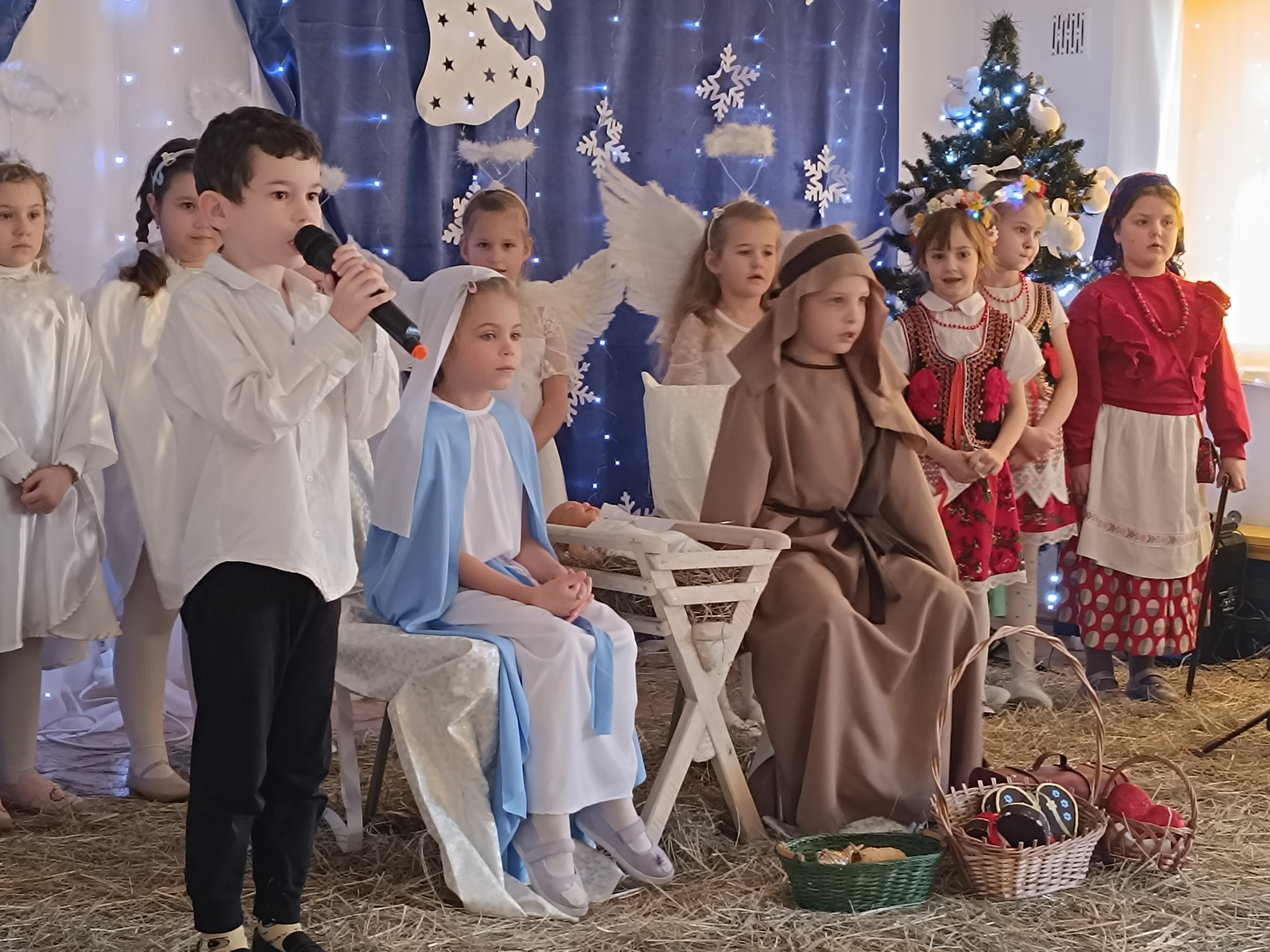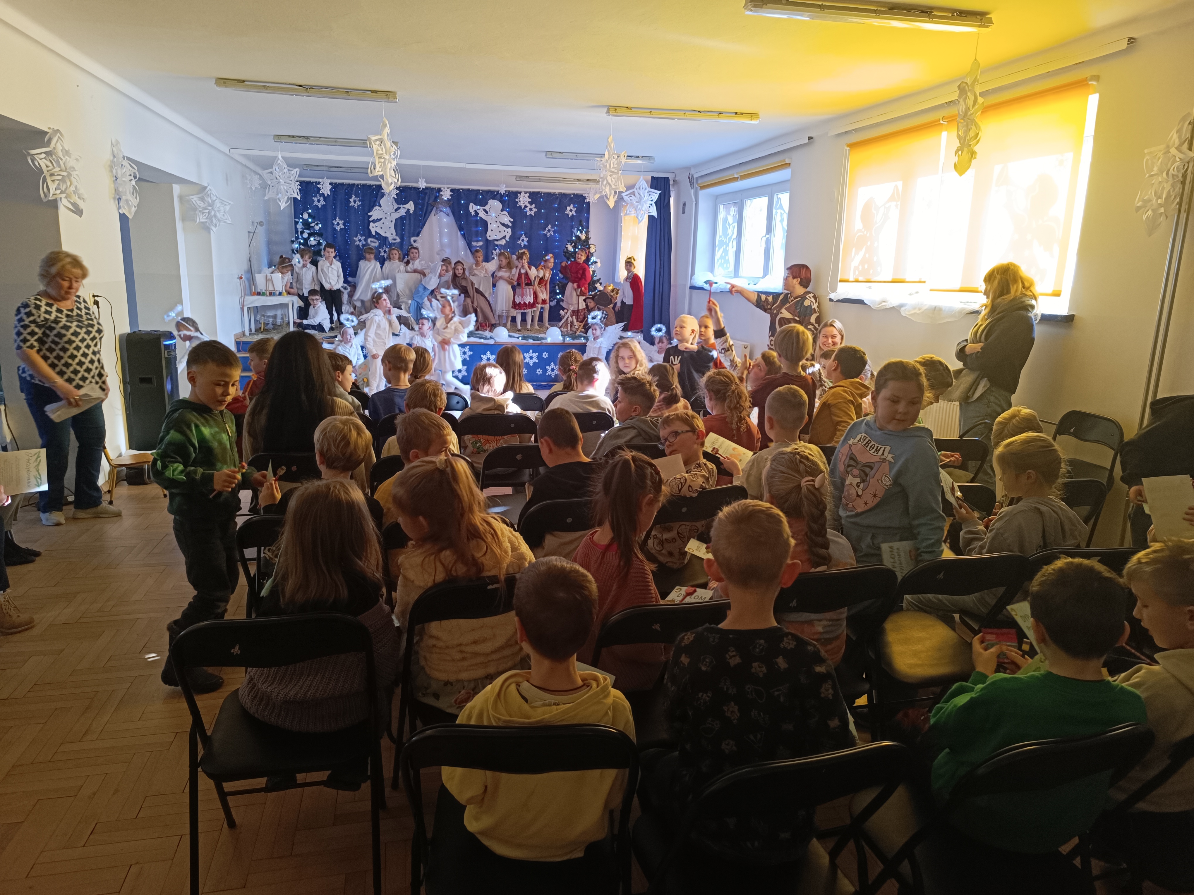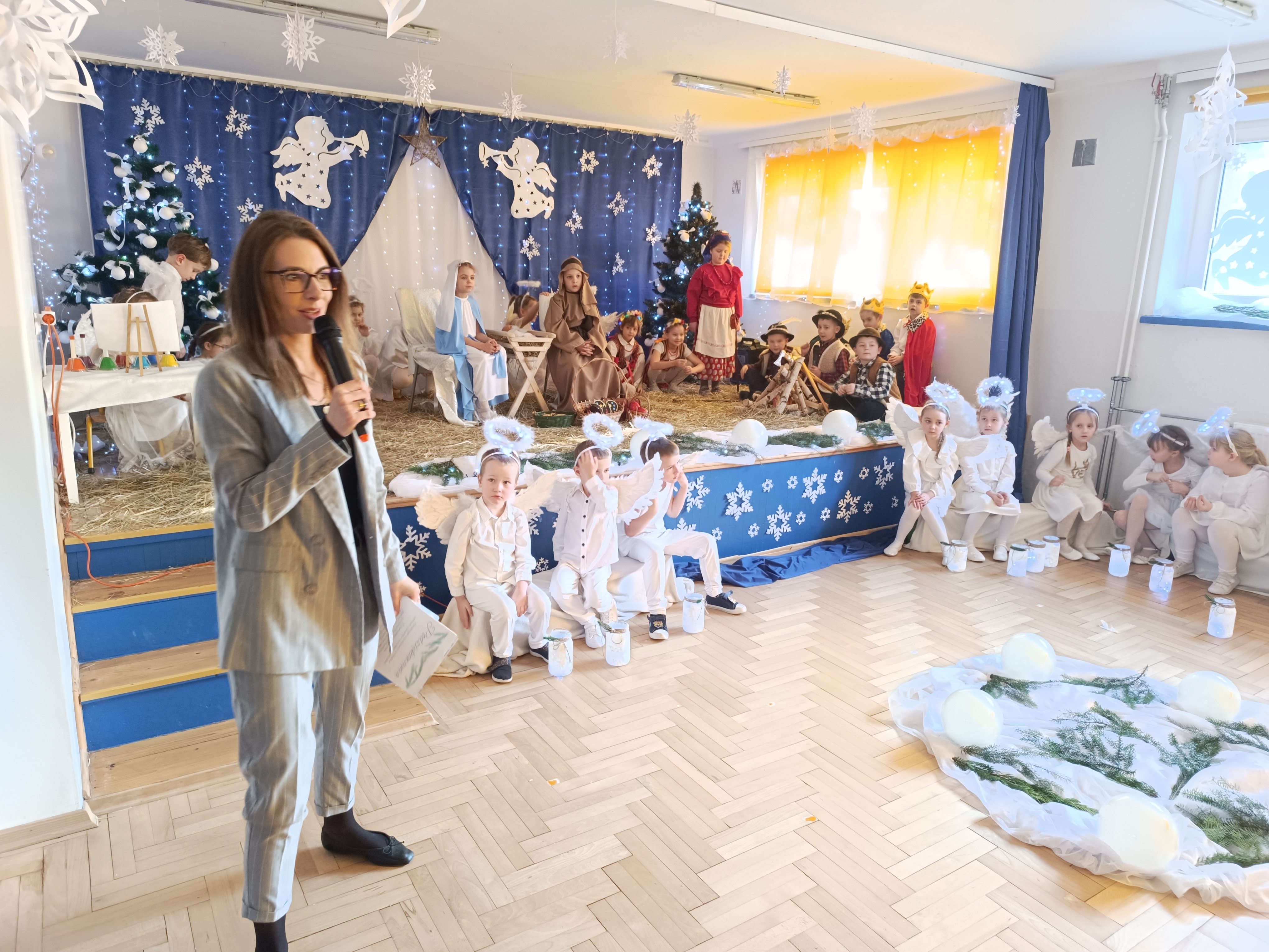 Nasze przedszkolaki z grup 4 i 5, wspólnie z Panią Dyrektor oraz swoimi wychowawcami, zaprosiły uczniów klas pierwszych ze Szkoły Podstawowej nr 6 im. Władysława Broniewskiego oraz Szkoły Podstawowej nr 5 im. Jana III Sobieskiego wraz z nauczycielami oraz Dyrektorem na uroczyste przedstawienie - Jasełka, które wzbudziło duże zainteresowanie u zaproszonych gości.
