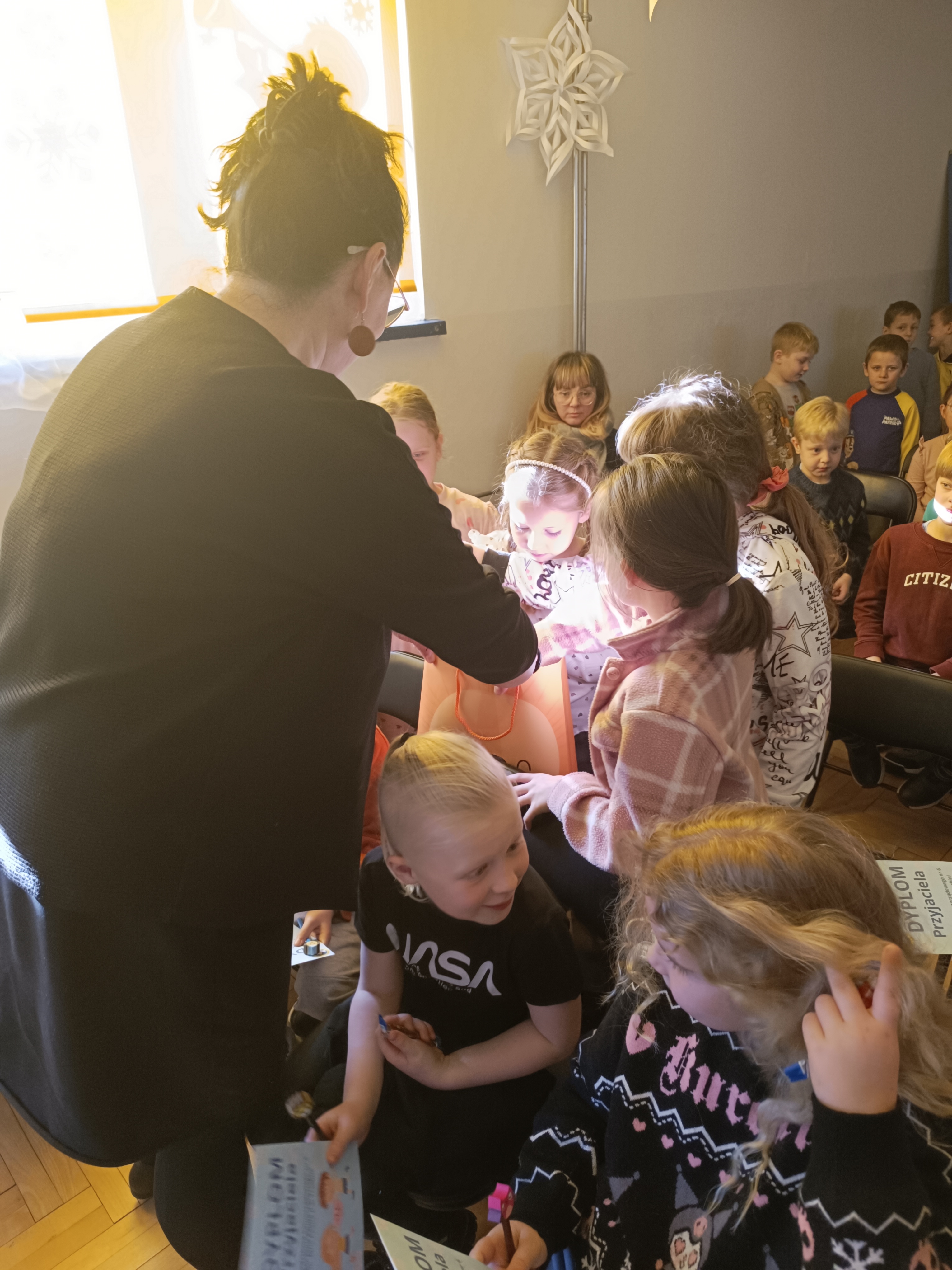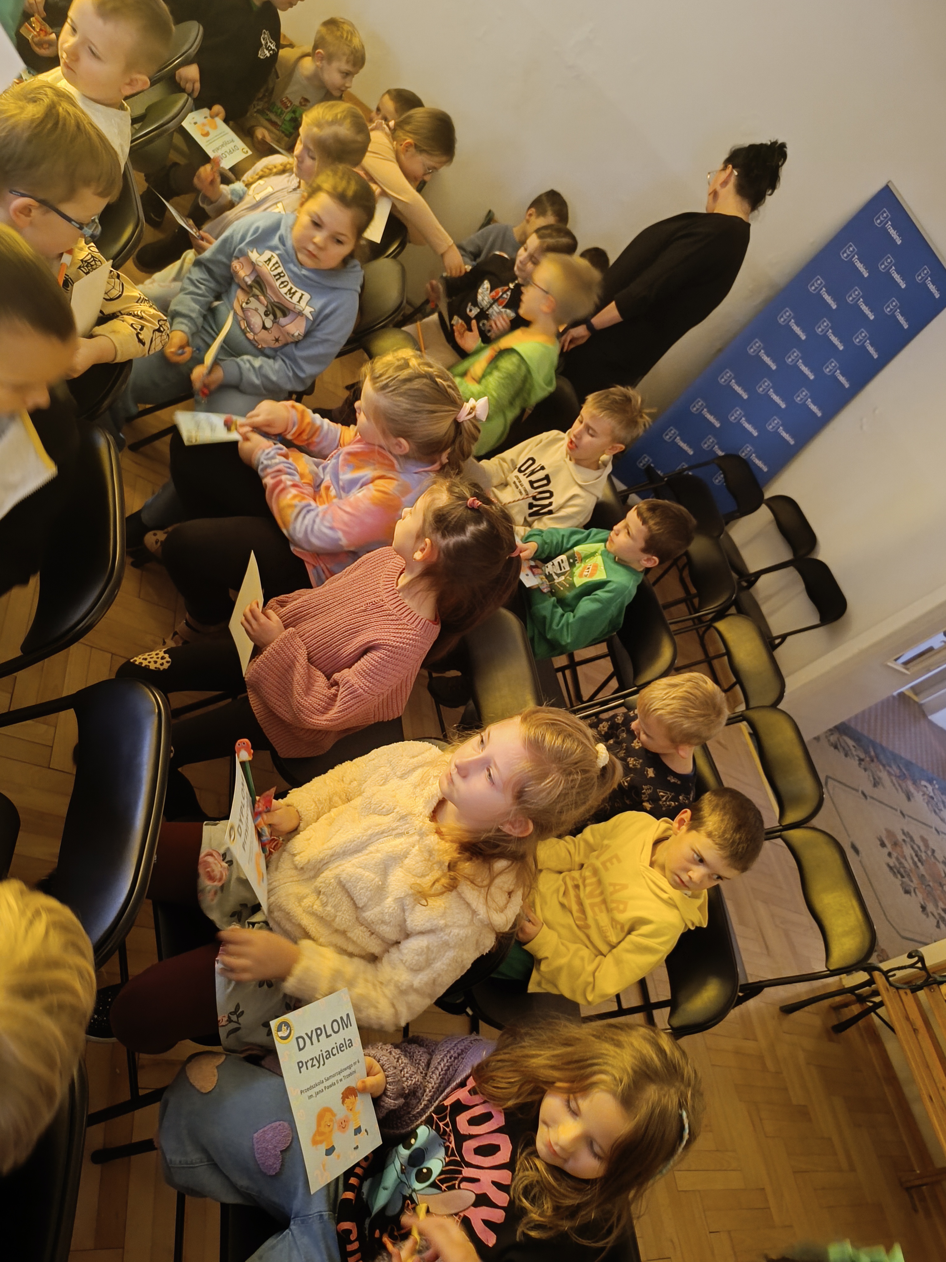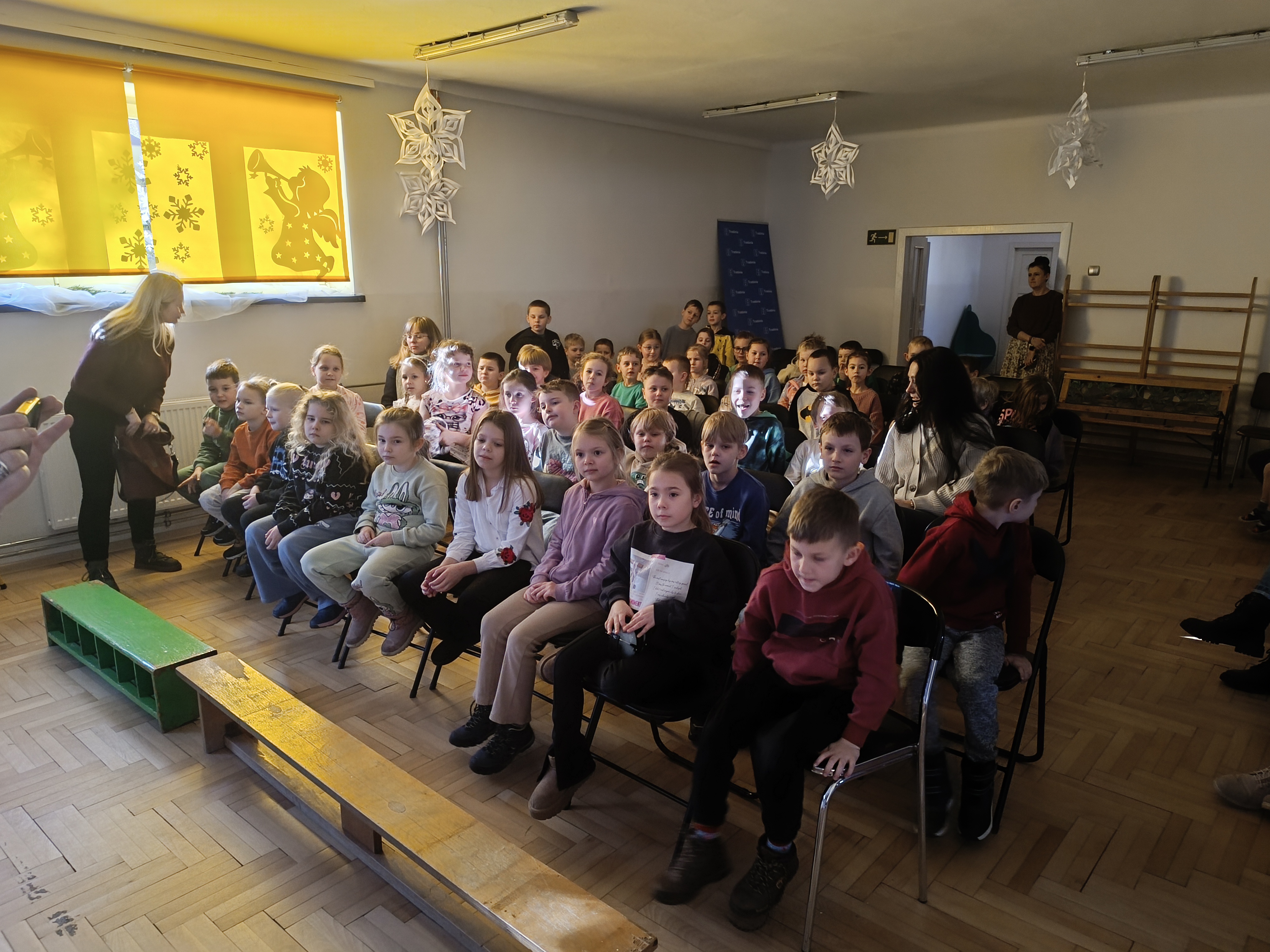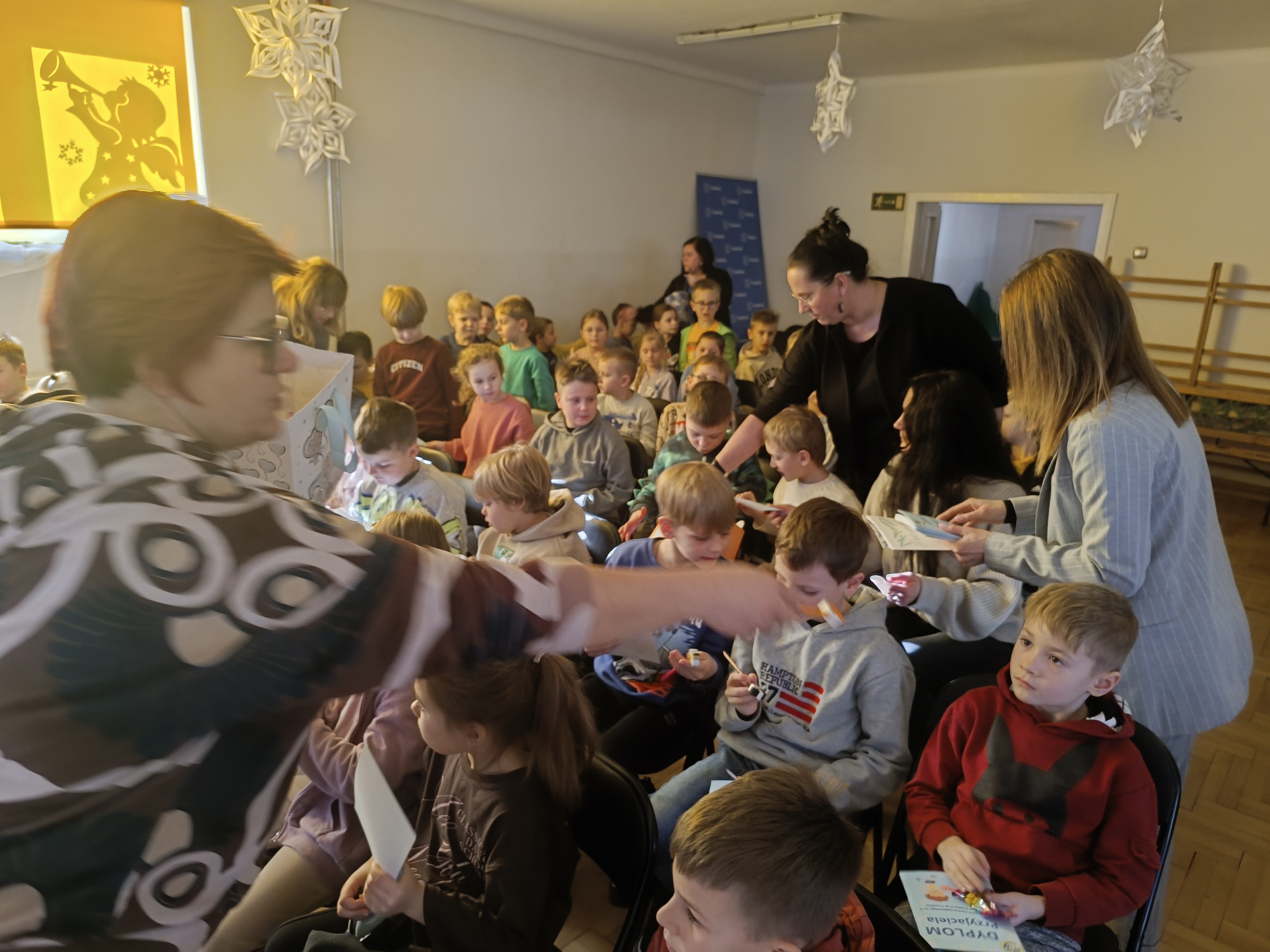 Wizyta przebiegała w bardzo miłej atmosferze i była wartościowym doświadczeniem zarówno dla przedszkolaków, jak i pierwszoklasistów. Przedszkolaki zostały nagrodzone gromkimi brawami i uśmiechami.