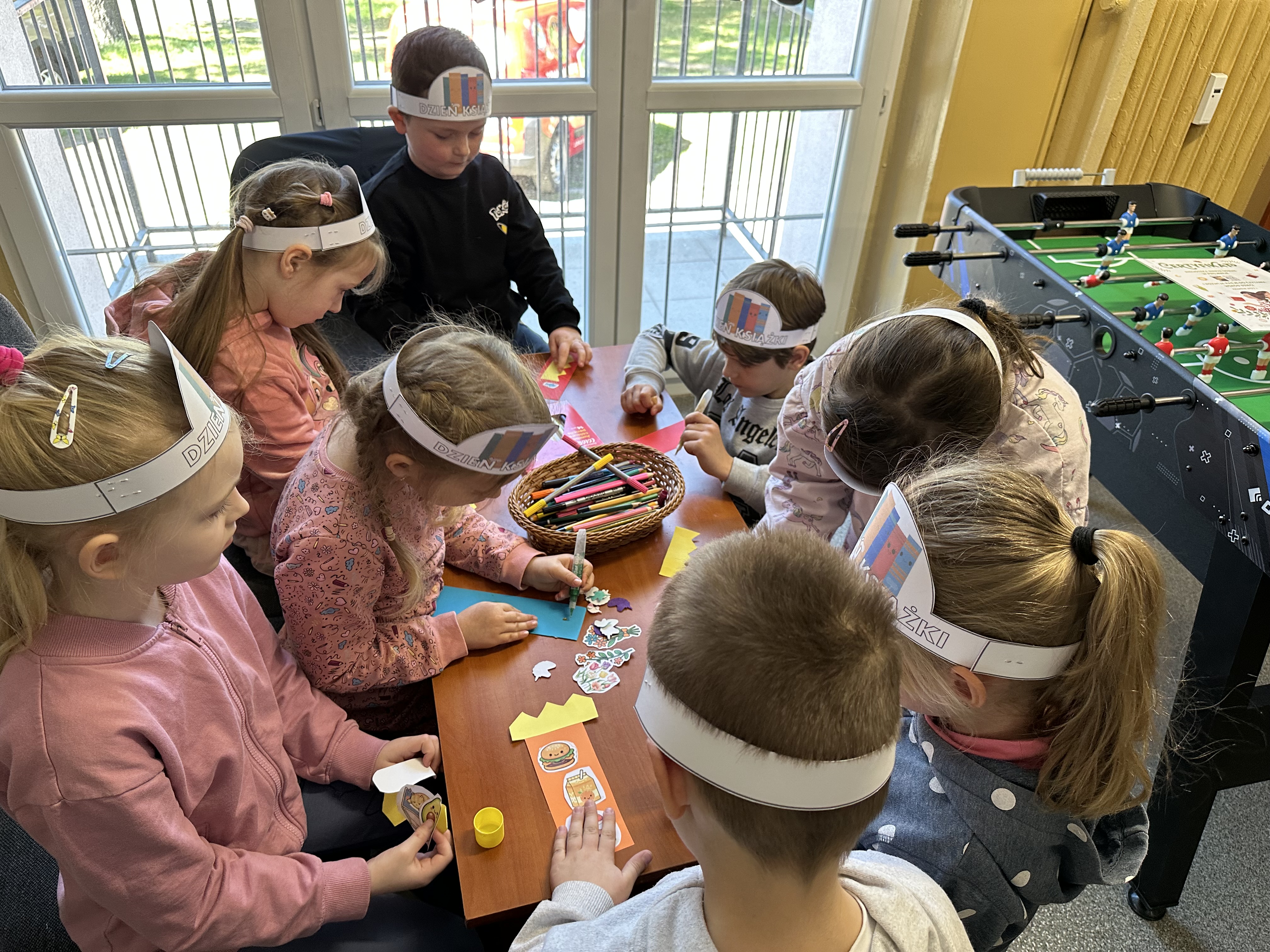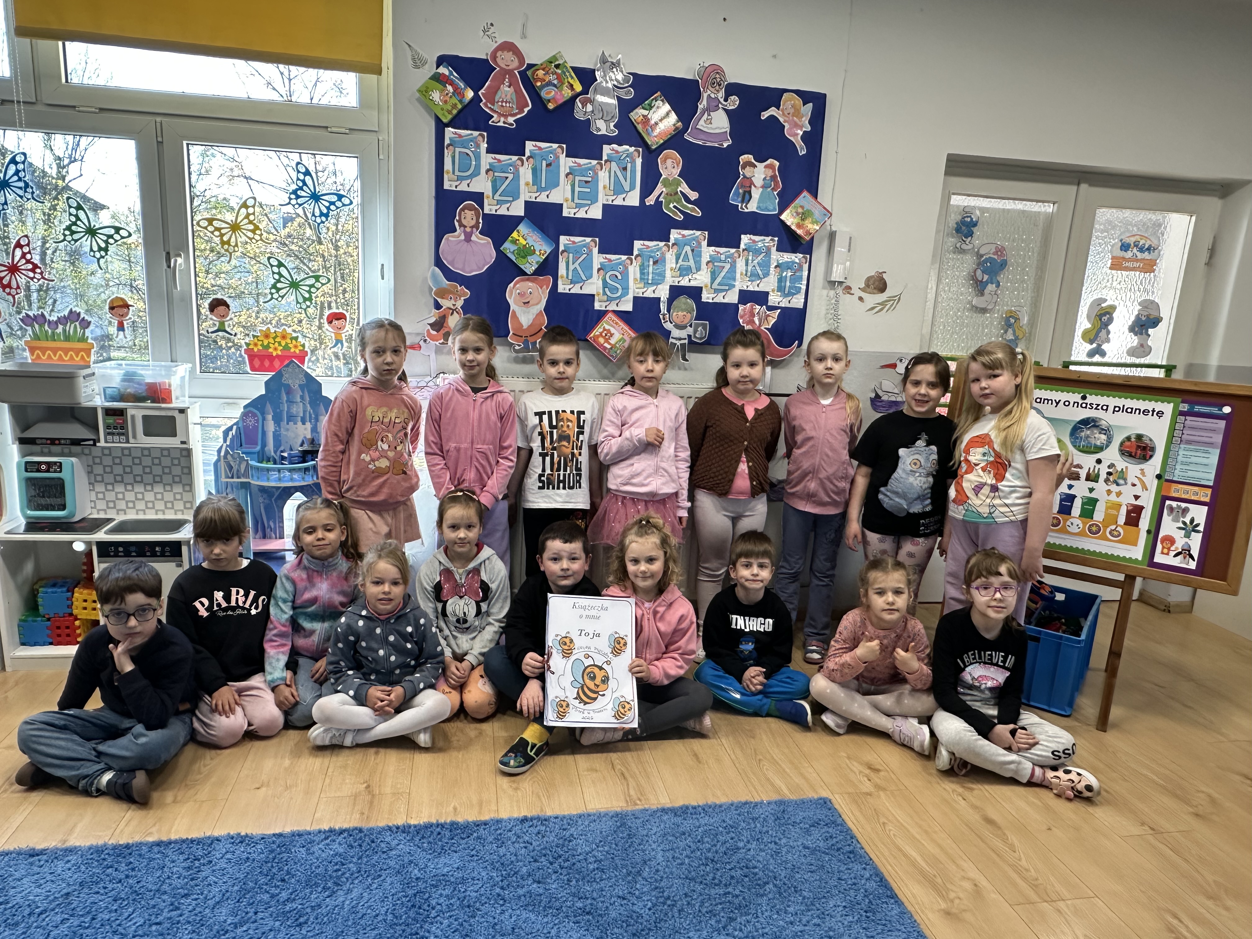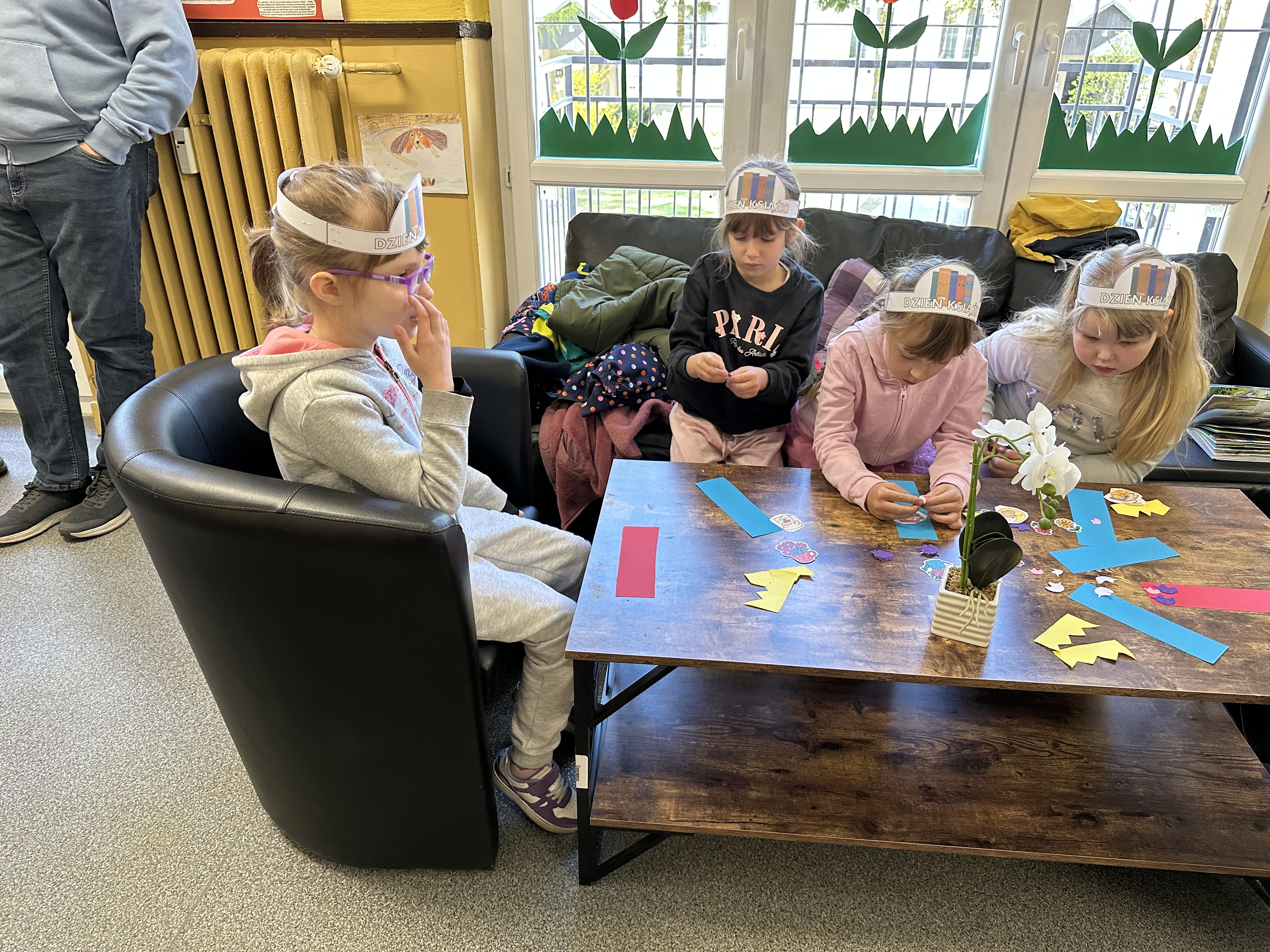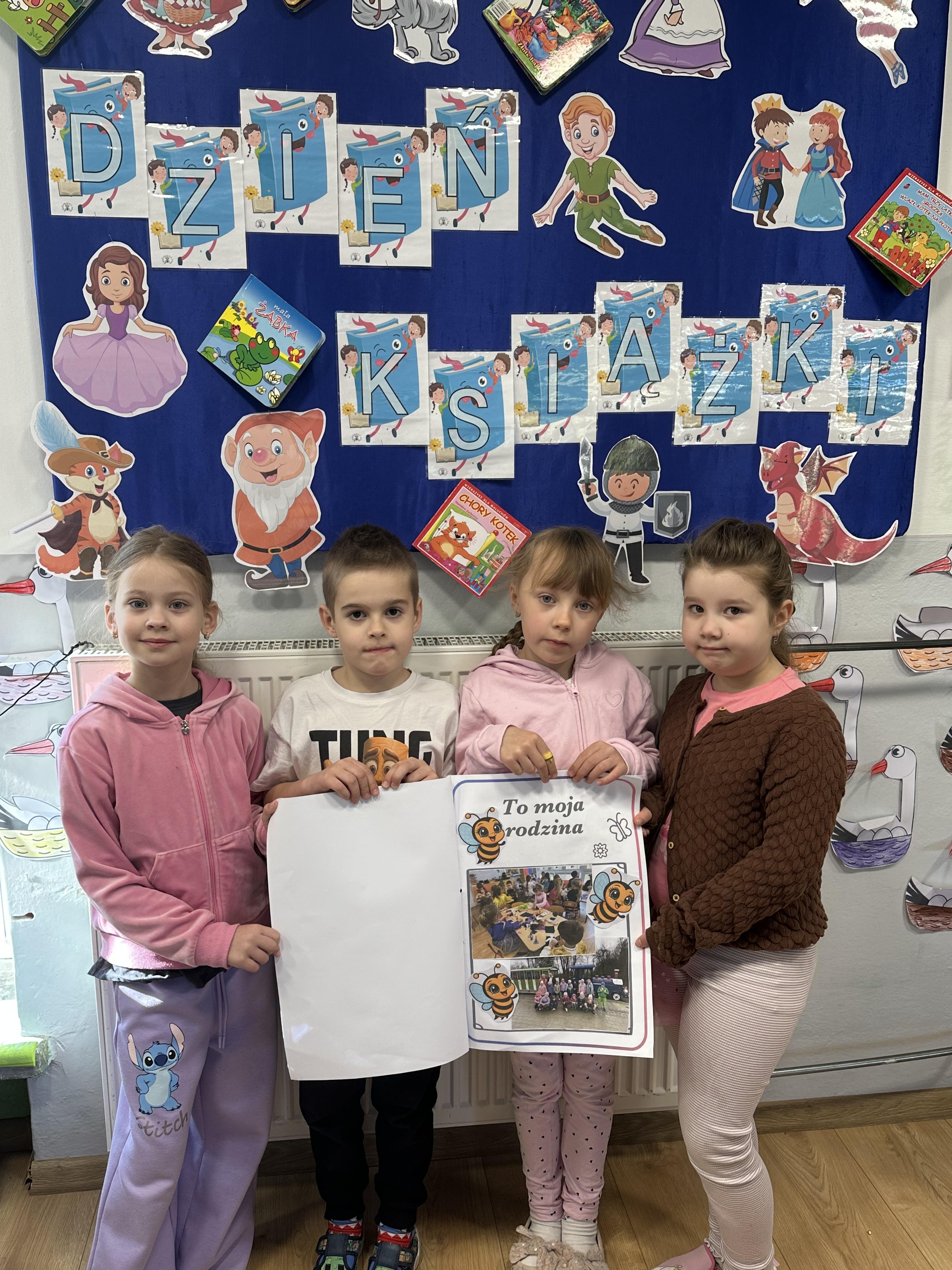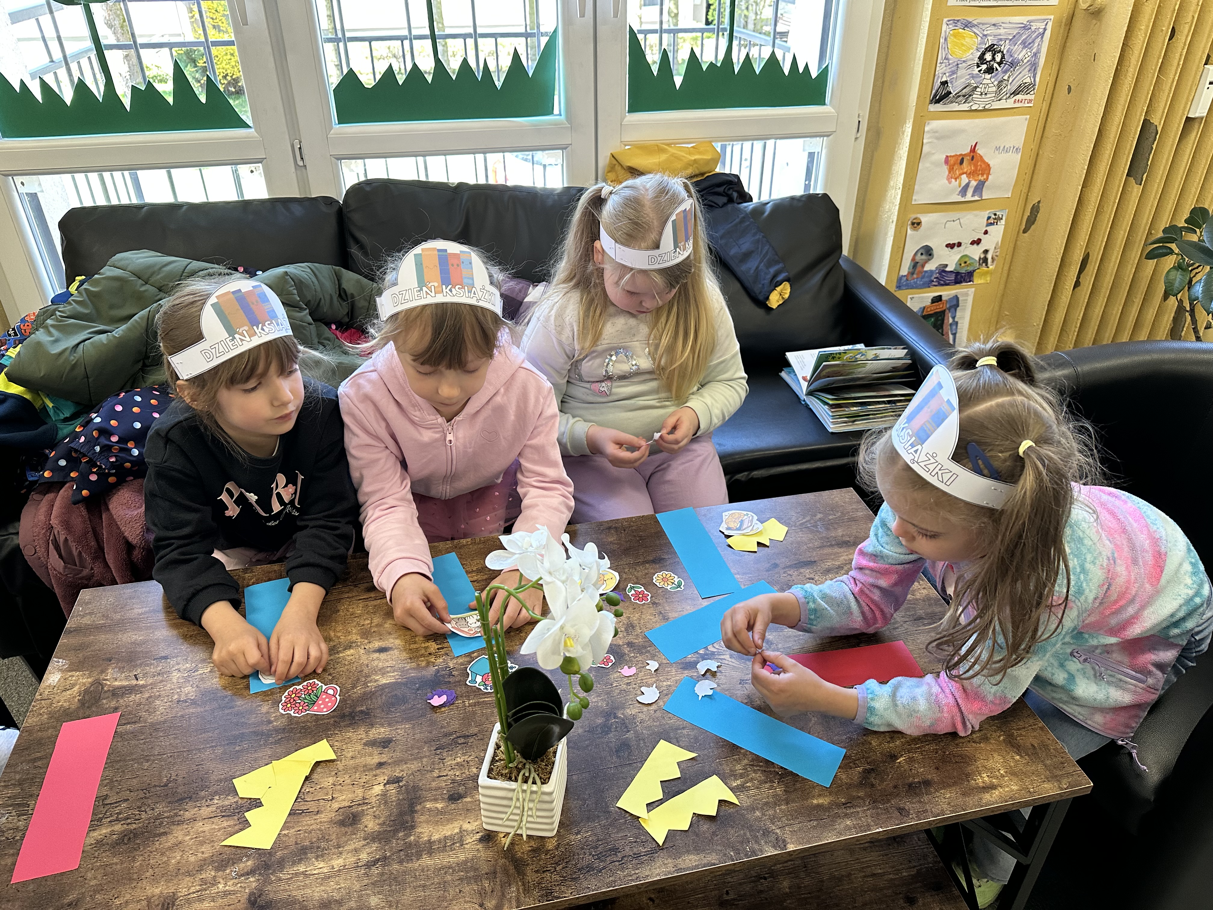 Na początku spotkania pani bibliotekarka oprowadziła dzieci po bibliotece, prezentując jej wygląd oraz rozmieszczenie poszczególnych działów. Dzieci dowiedziały się, jak można zostać czytelnikiem oraz jakie obowiązują zasady wypożyczania i dbania o książki. Szczególną uwagę zwrócono na odpowiednie zachowanie w bibliotece - ciszę, szacunek do książek oraz innych czytelników. Podczas spotkania dzieci utrwaliły sobie etapy powstawania książki - od pomysłu autora, poprzez ilustracje, aż po druk i trafienie książki na półkę biblioteczną. Była to bardzo ciekawa i pouczająca część zajęć. W dalszej części wizyty starszaki zaprezentowały przygotowany wcześniej wiersz, czym sprawiły pani bibliotekarce wiele radości. Następnie miały okazję samodzielnie oglądać książki, co wzbudziło duże zainteresowanie i zachęciło do sięgania po literaturę. Kolejnym punktem spotkania było wykonanie zakładek do książek. Dzieci wykazały się dużą kreatywnością i starannością podczas pracy plastycznej. Na zakończenie wizyty dzieci wręczyły pani bibliotekarce upominek – książeczkę wykonaną własnoręcznie. W podziękowaniu za aktywny udział i zaangażowanie każde dziecko otrzymało pamiątkowy dyplom.