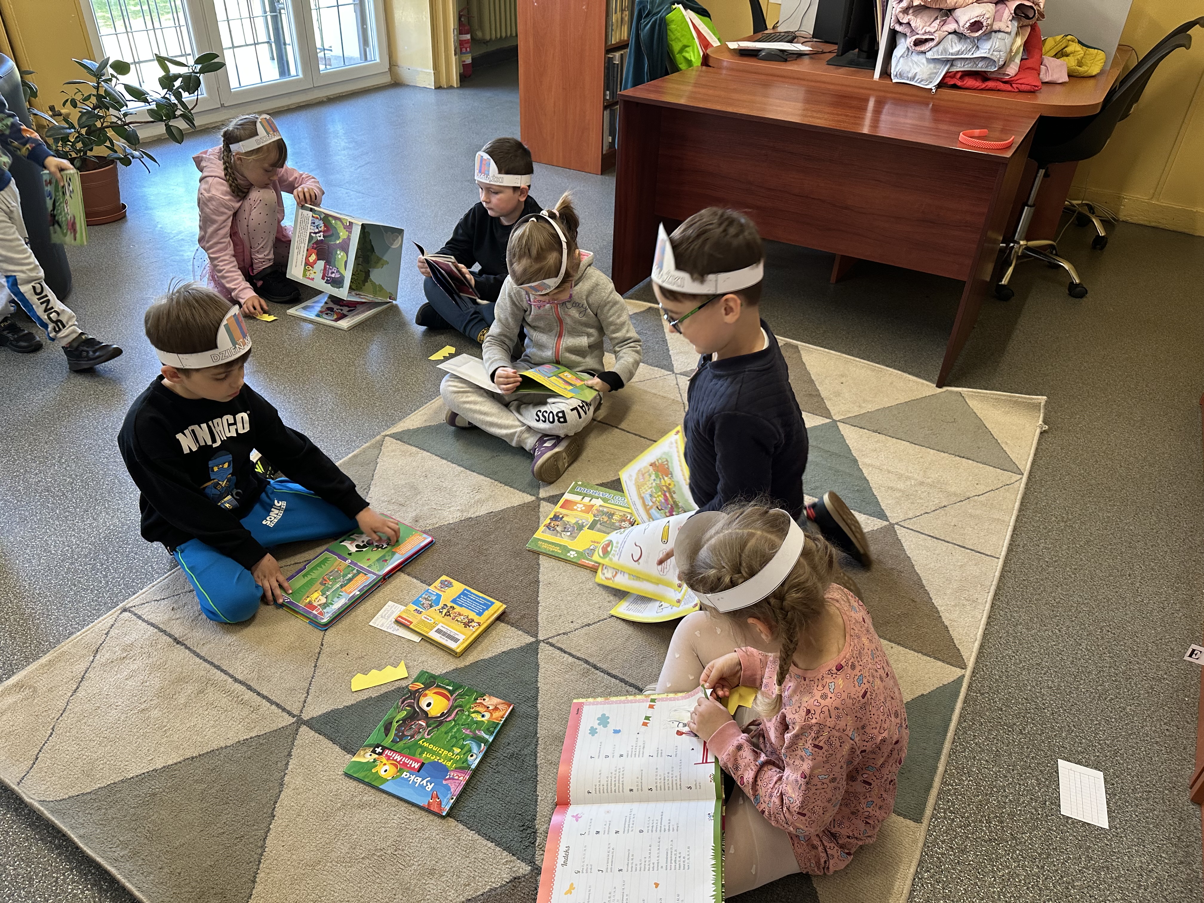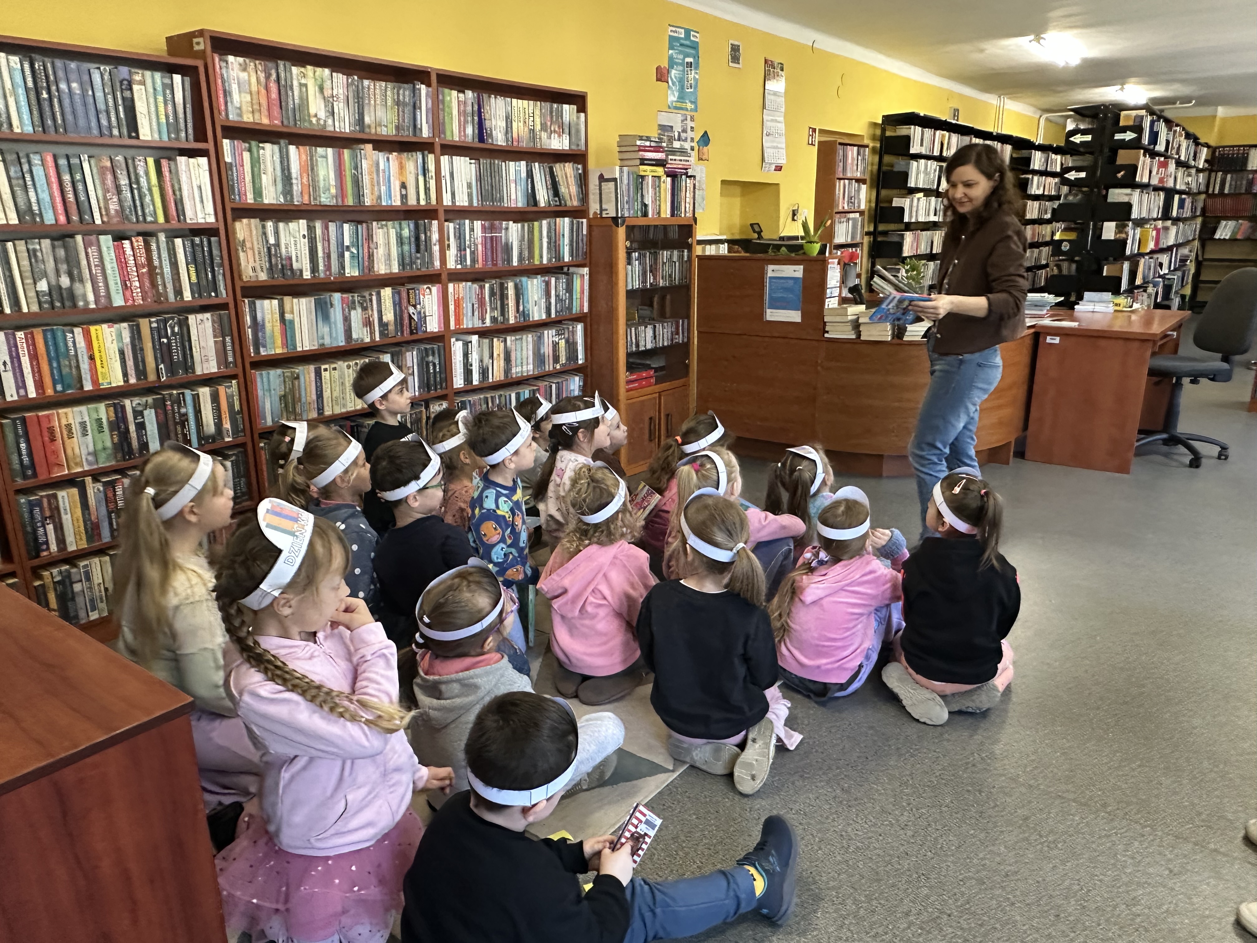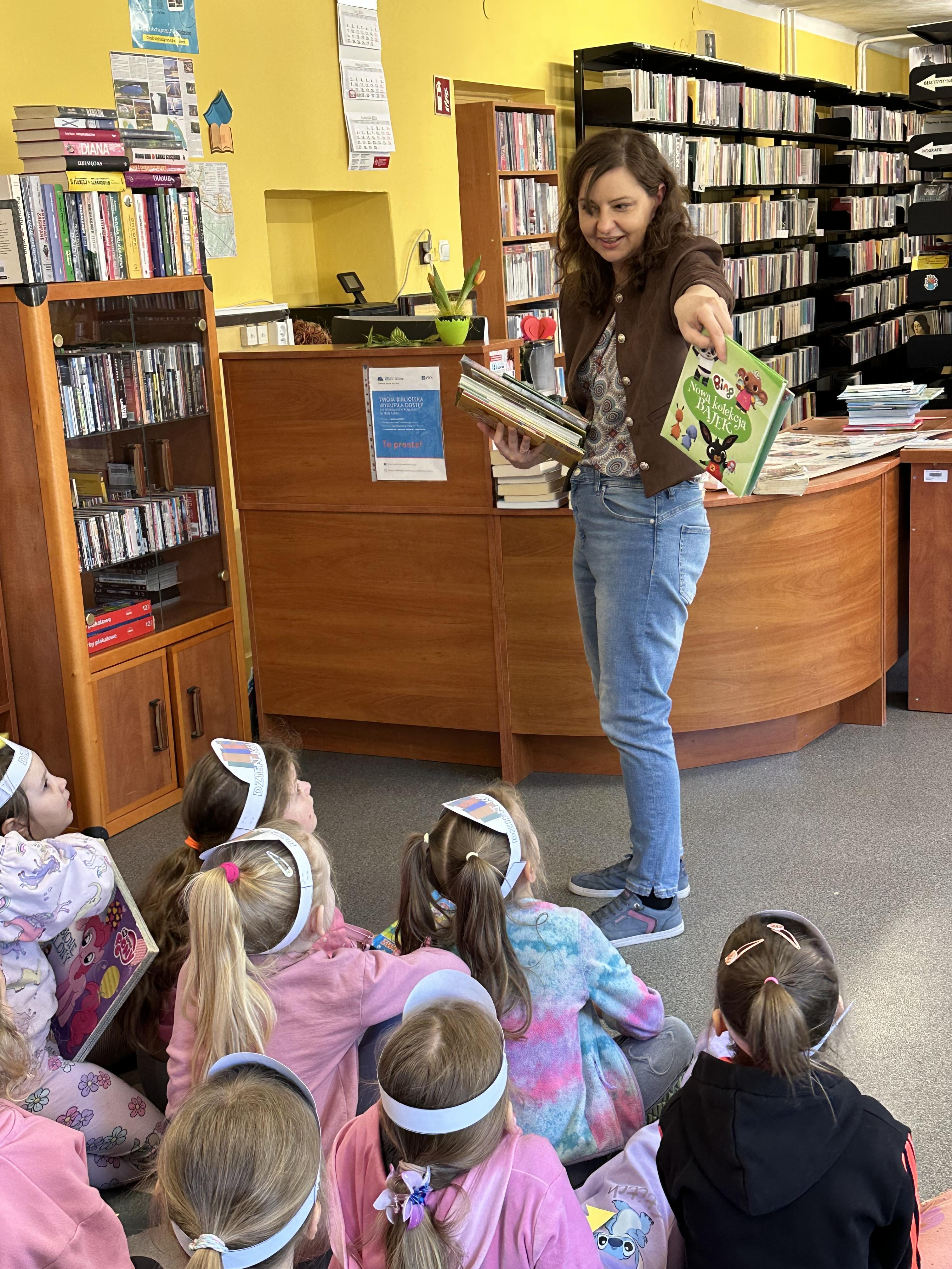 Celem wizyty było zapoznanie się z funkcjonowaniem biblioteki, zasadami wypożyczania książek oraz właściwym zachowaniem w takim miejscu.