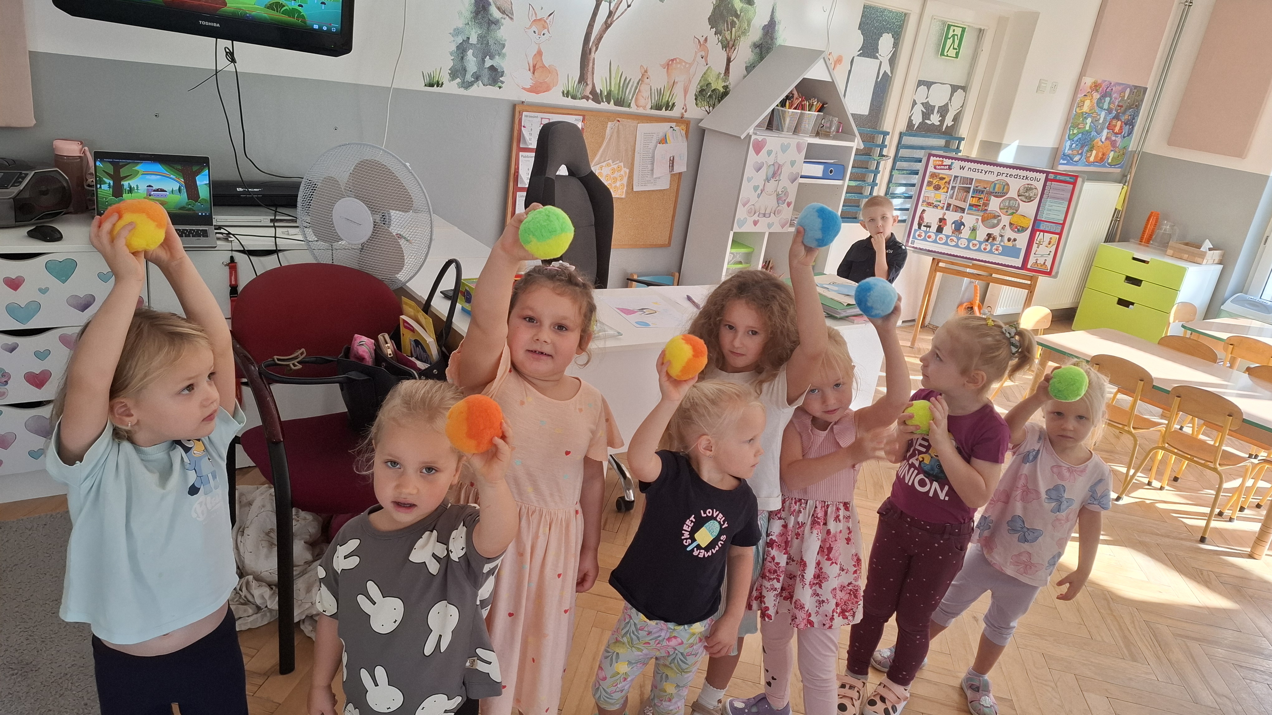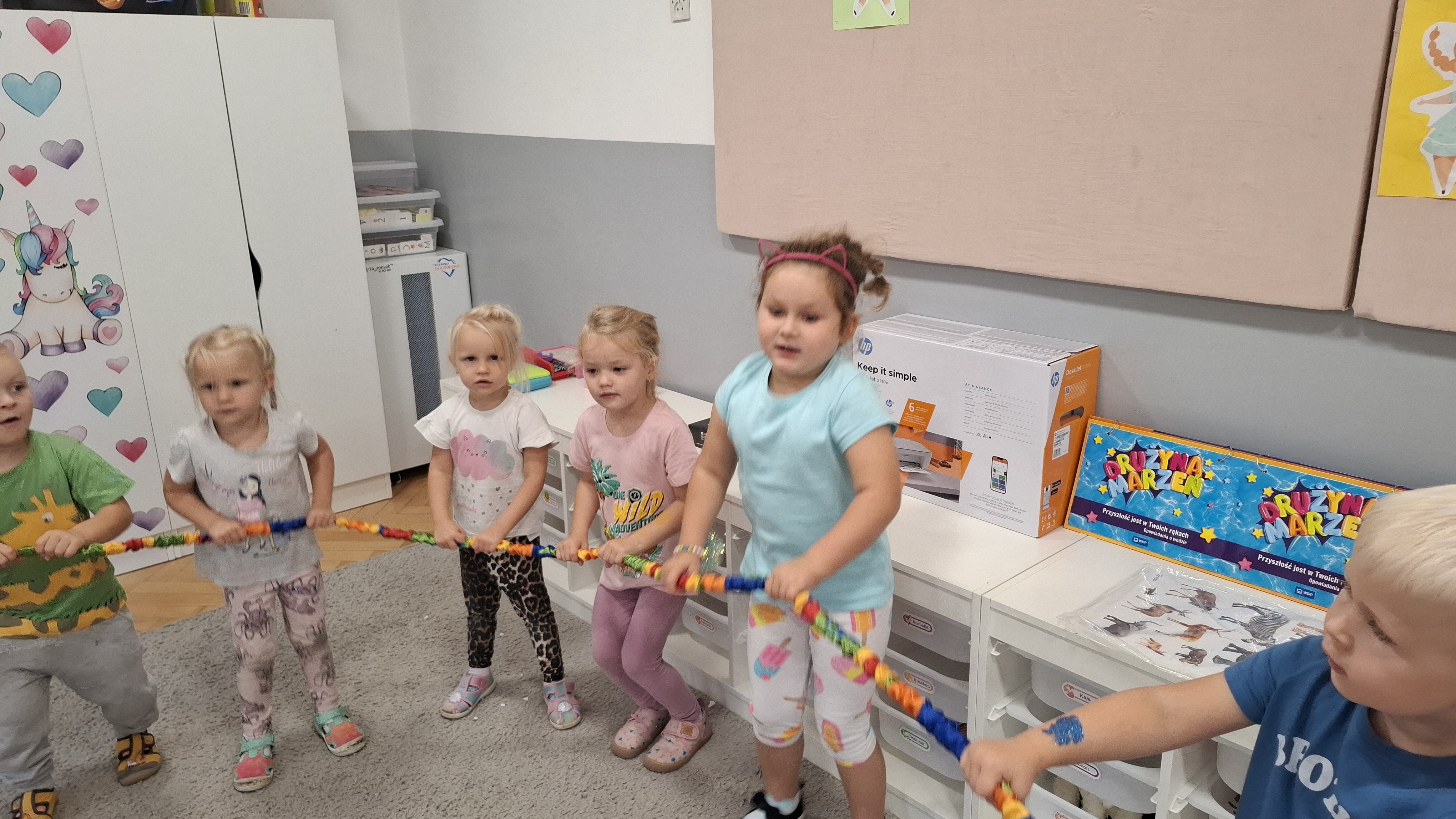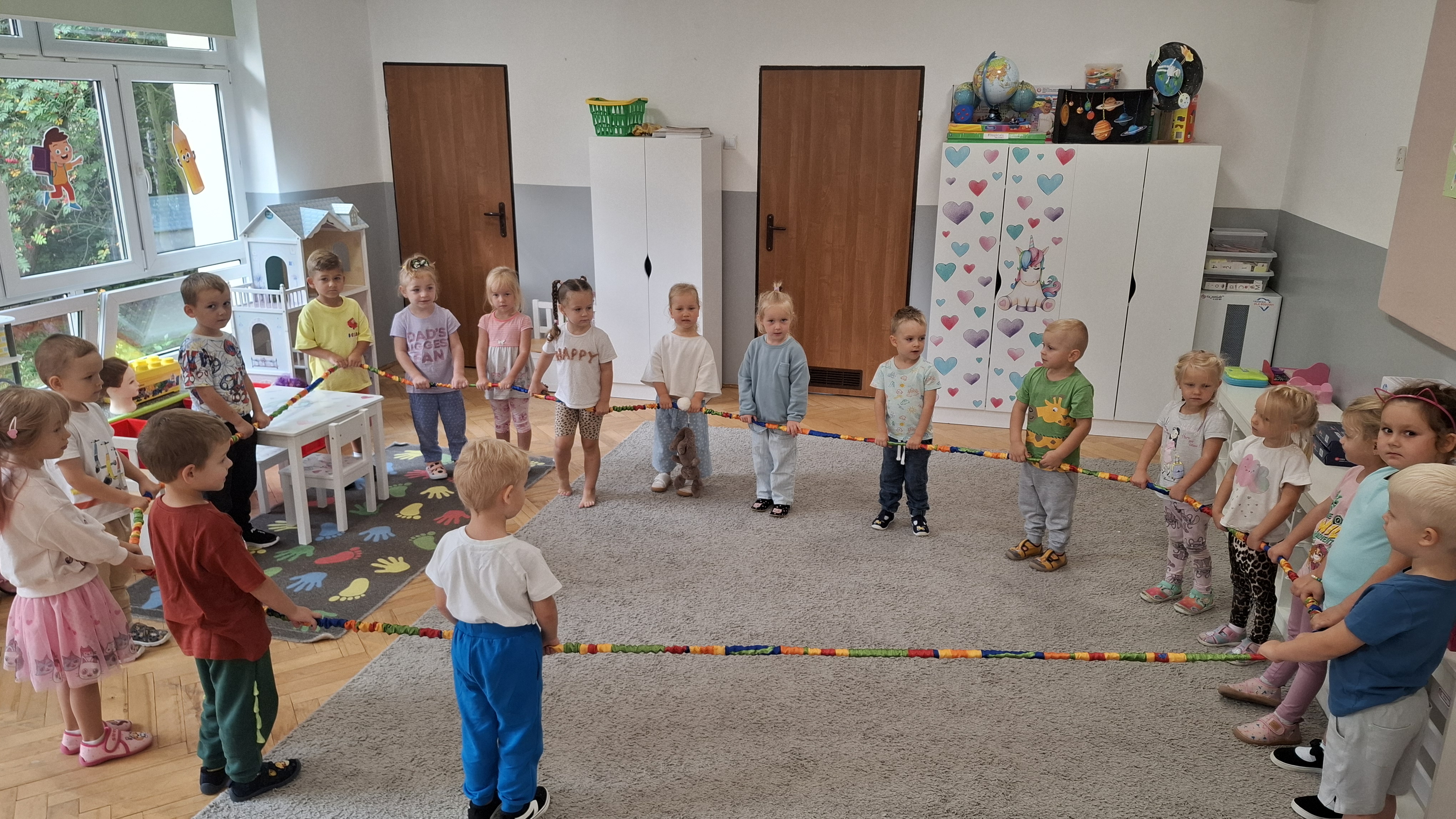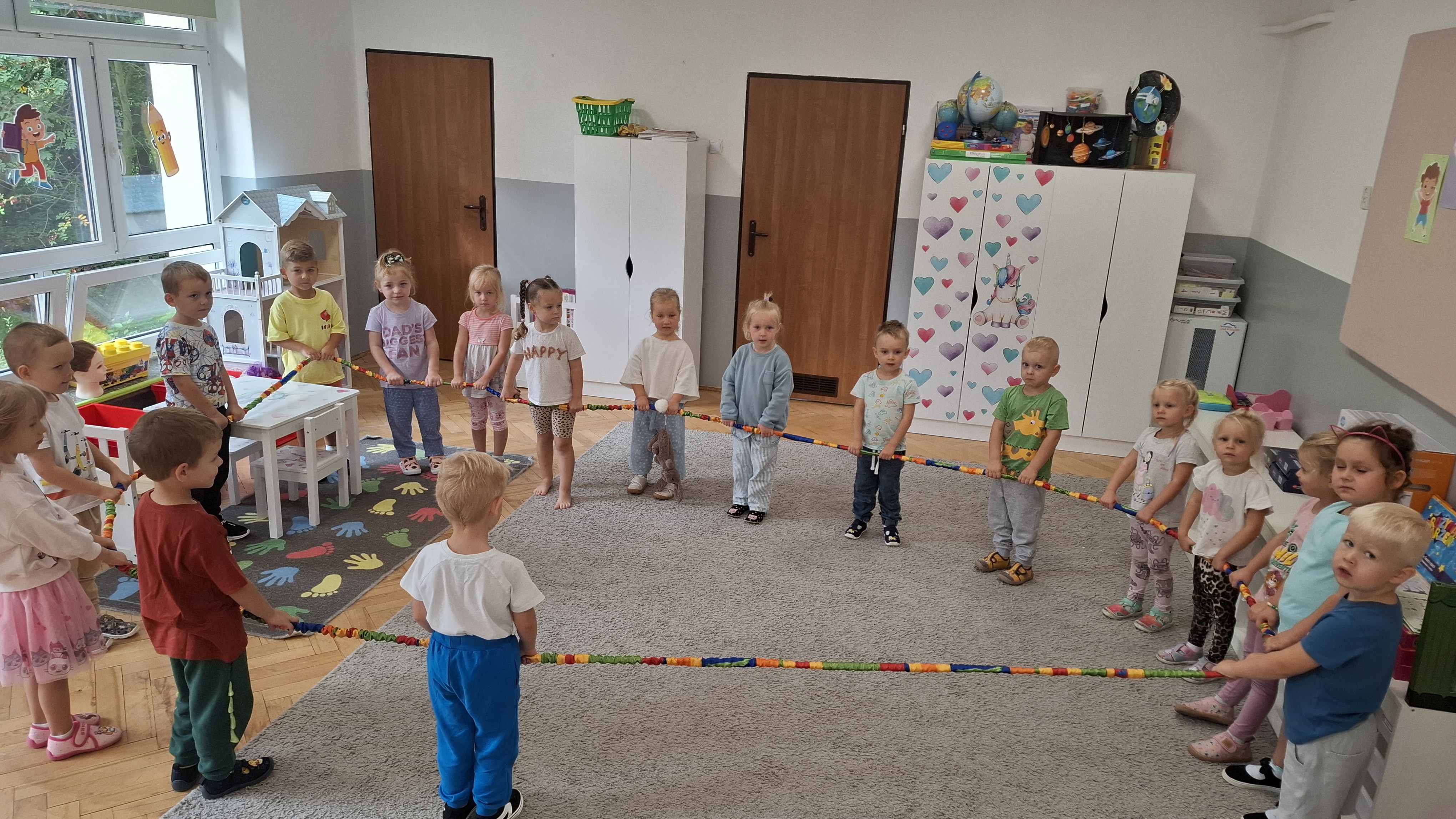 W ostatnim tygodniu w przedszkolu prowadziliśmy zajęcia poświęcone m.in. nauce dobrych manier. Naszym celem było wsparcie dzieci w rozwijaniu umiejętności społecznych i zachęcenie ich do kierowania się uprzejmością w codziennym życiu. Dzieci wysłuchały opowiadania W. Kosteckiej „Dobra atmosfera”, które skłoniło je do refleksji, jak należy się zachowywać, aby wszyscy dobrze czuli się w grupie. Dzięki zabawie „Pociąg dobrych manier” utrwaliły z kolei bardzo istotną formę komunikacji, jaką są zwroty grzecznościowe. Ustaliliśmy również zasady grupowe, aby uwrażliwić dzieci na potrzebę ich stosowania.