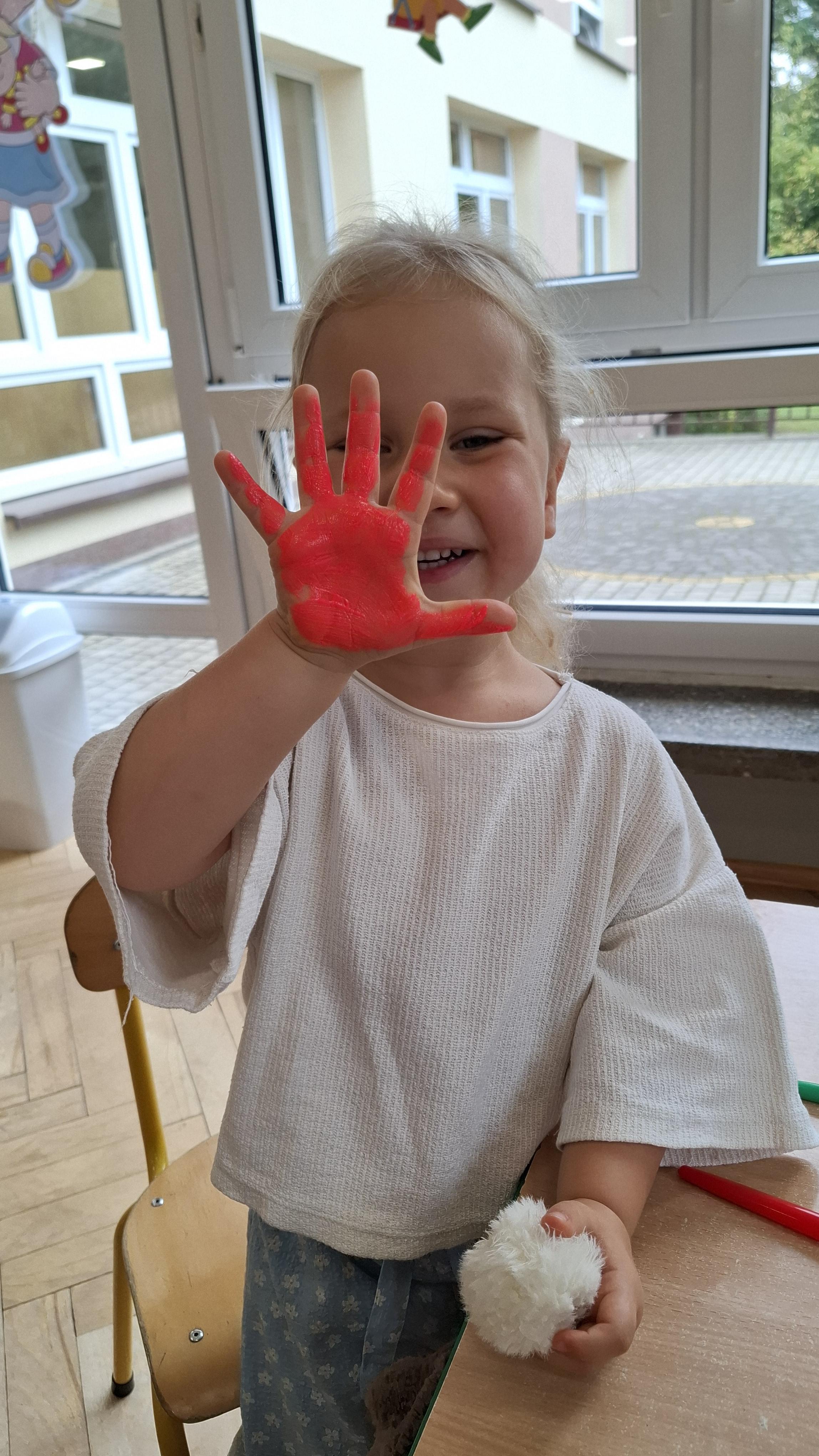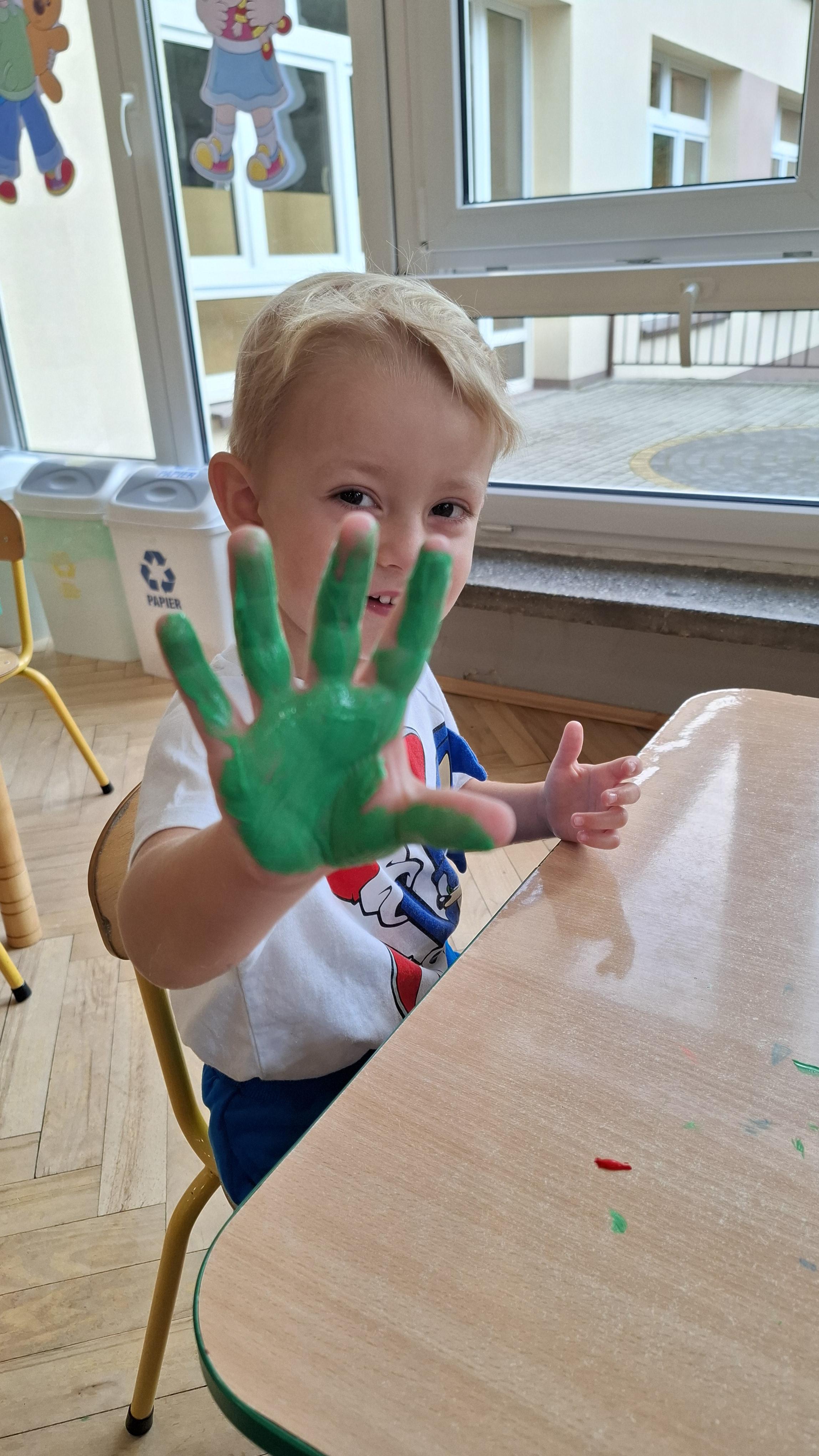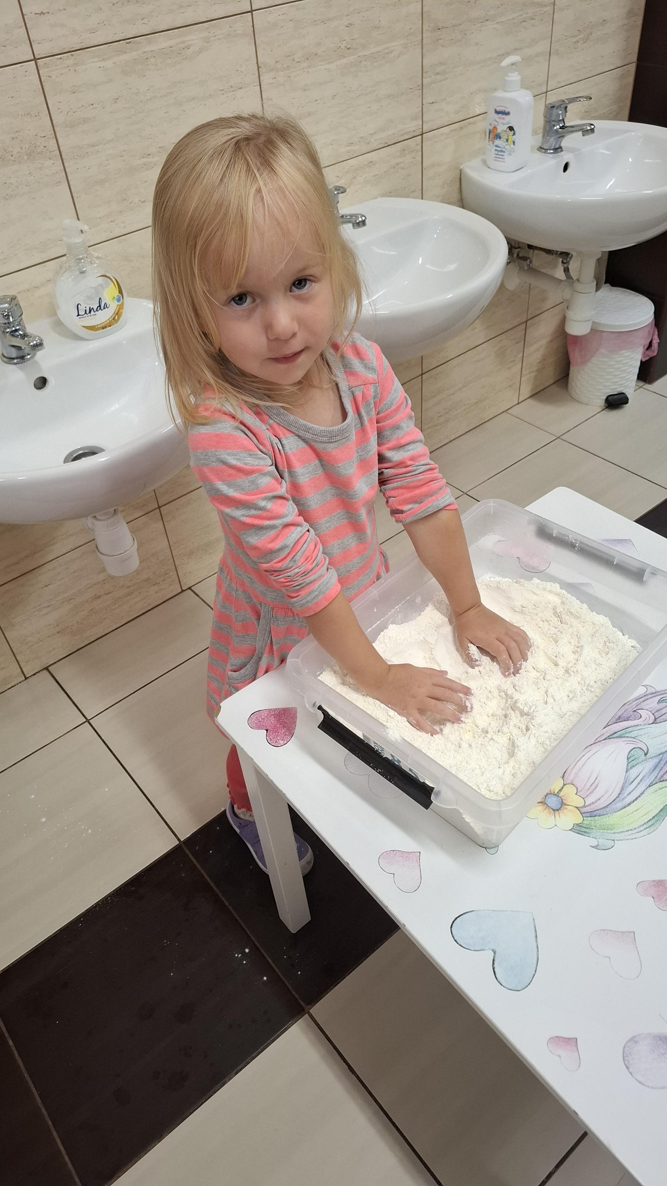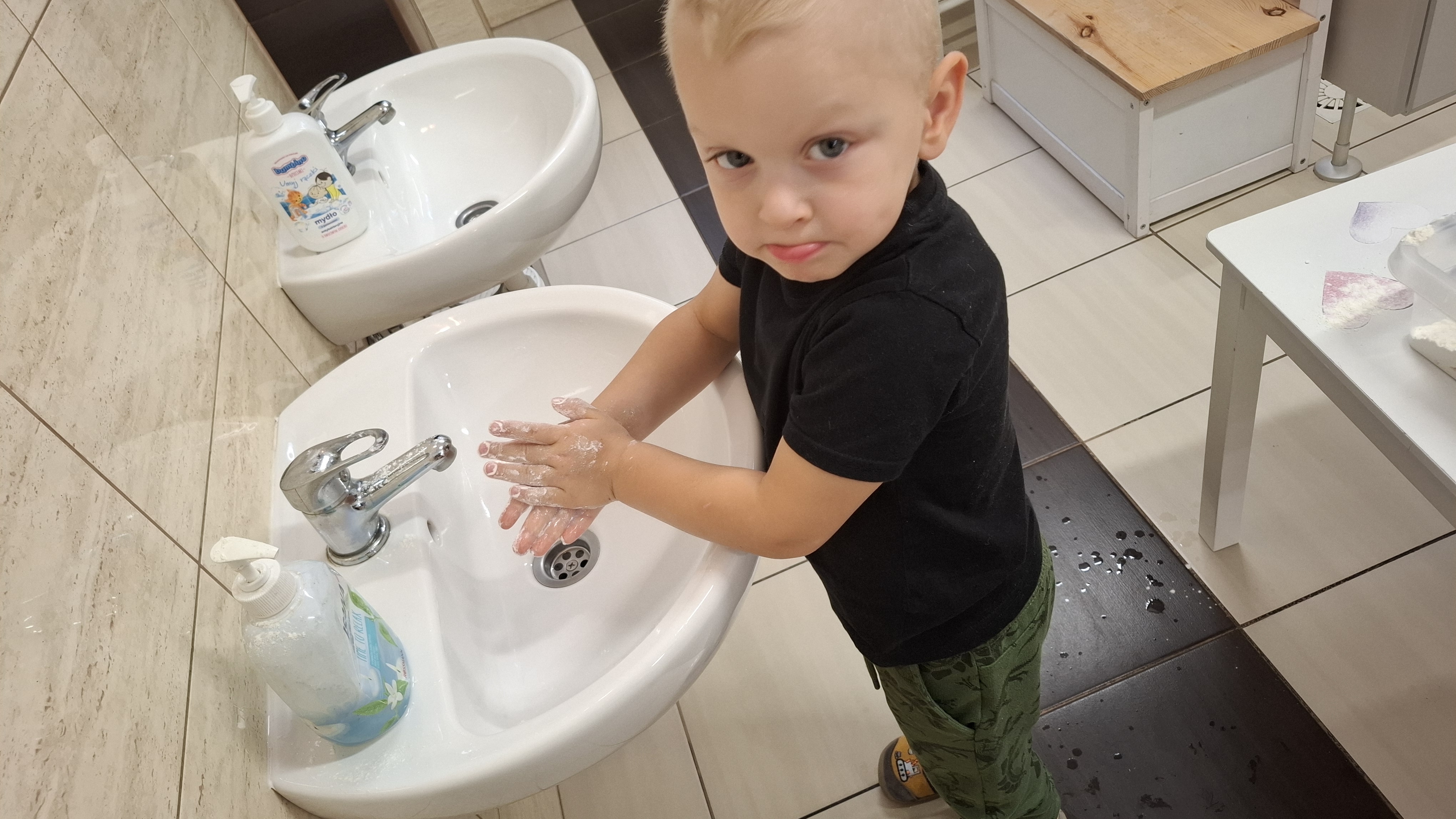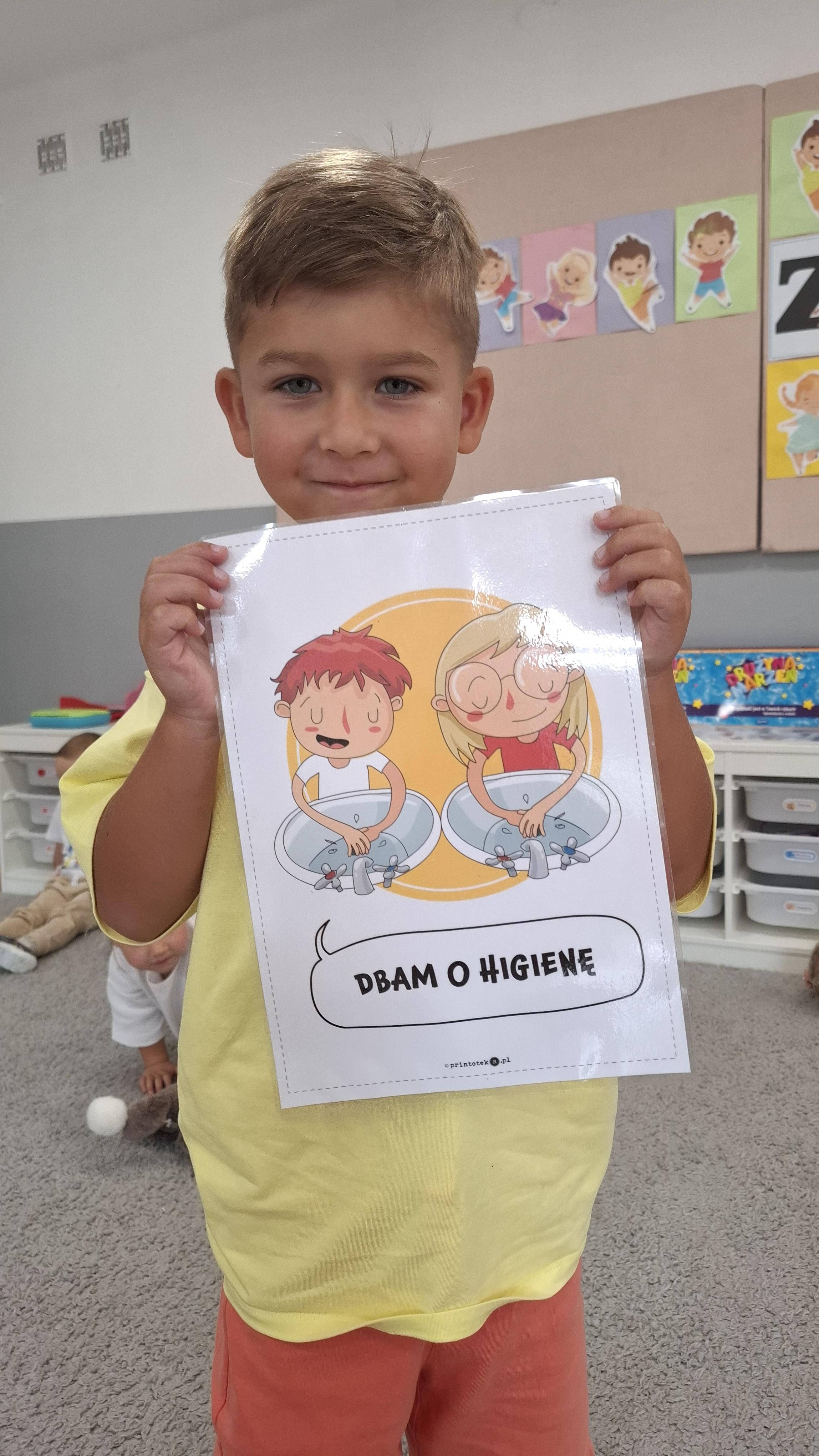 Ponieważ naszą codziennością w przedszkolu jest dbanie o higienę osobistą, nie zapominamy oczywiście o myciu rąk przed posiłkami. Za pomocą zabaw takich jak „W świecie czystości” dzieci utrwaliły natomiast nazwy przyborów higienicznych i ich przeznaczenie. Oprócz tego przeprowadziliśmy bardzo ciekawy eksperyment „Mydło i zarazki”, który uświadomił wszystkim, jak mydło działa na zarazki i jak ważne jest dbanie o higienę.