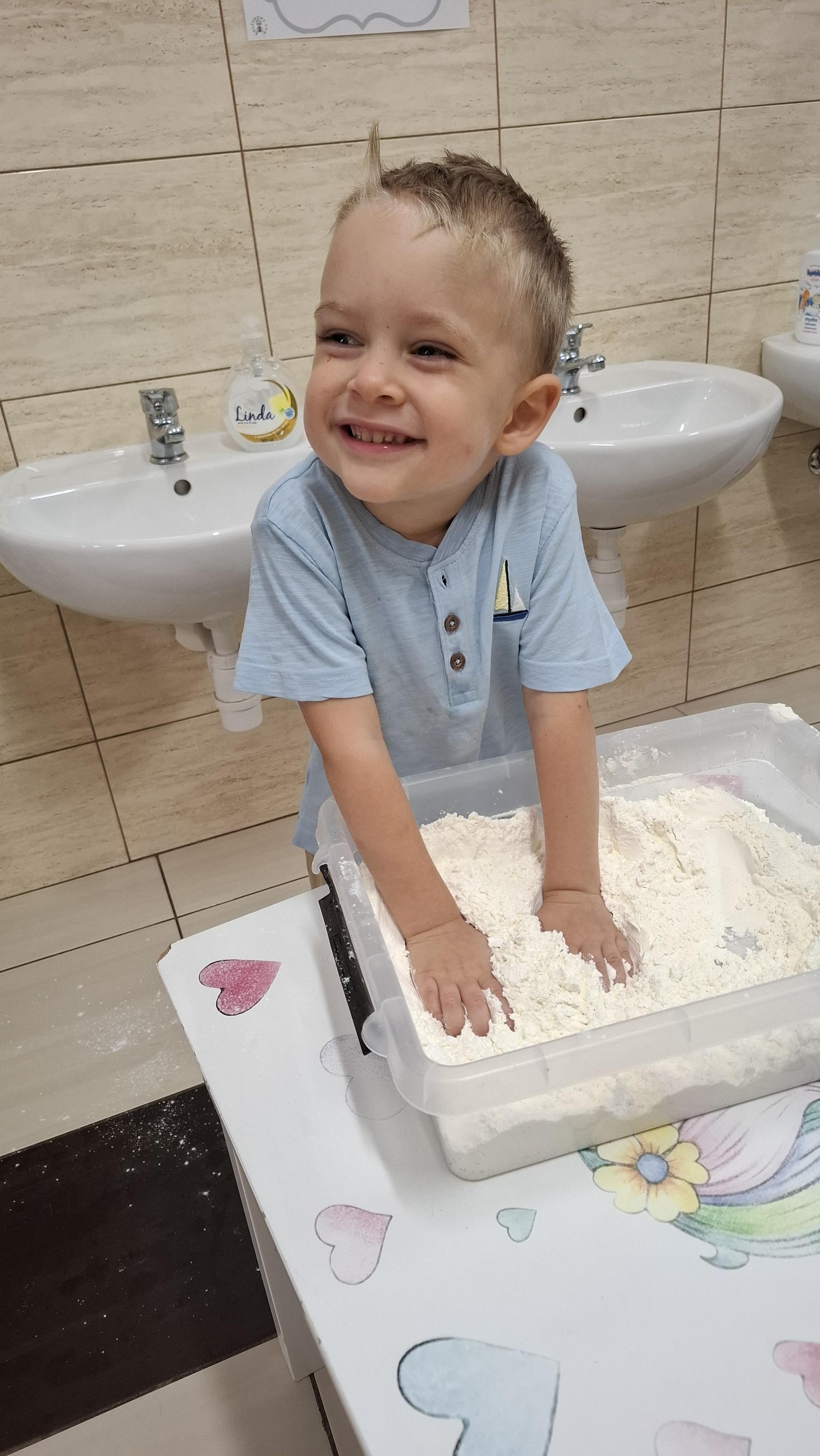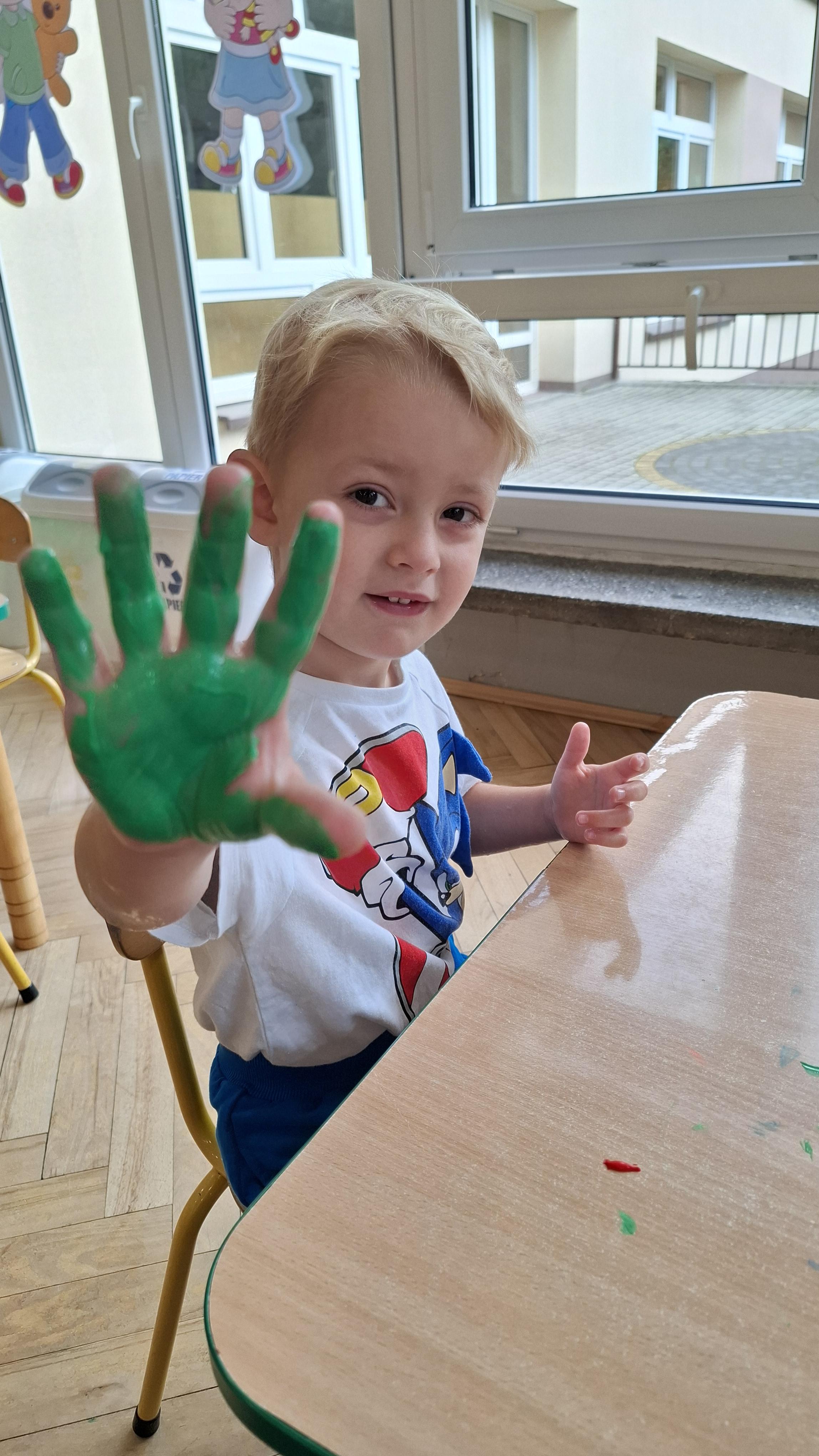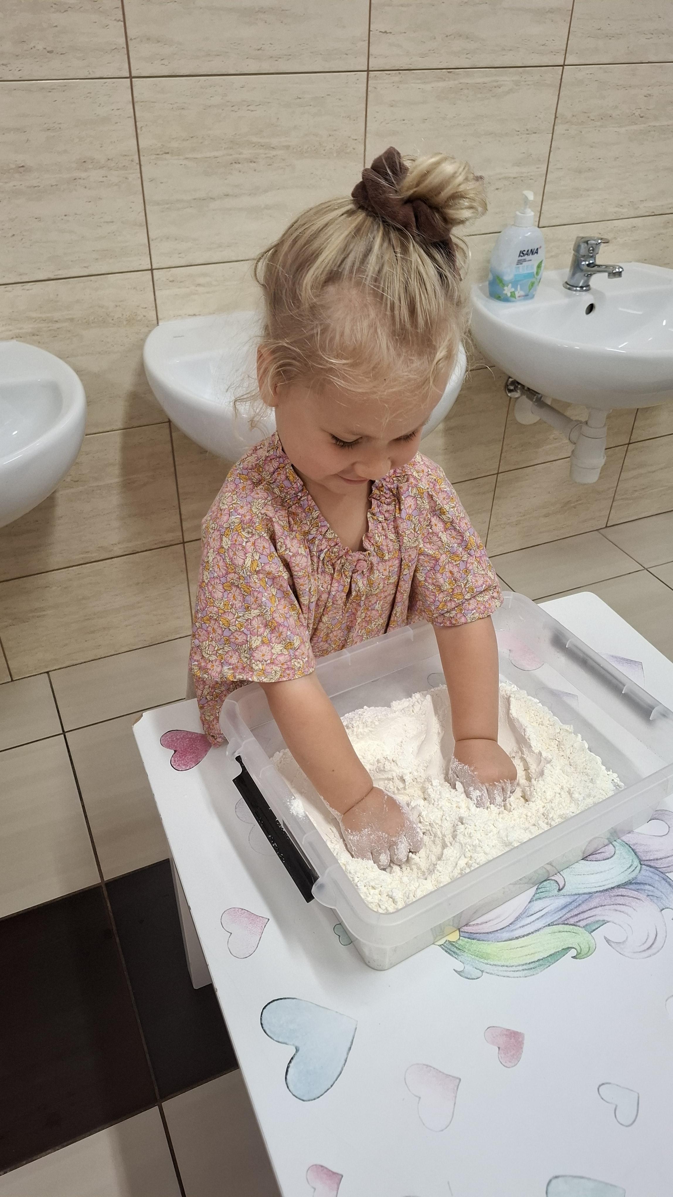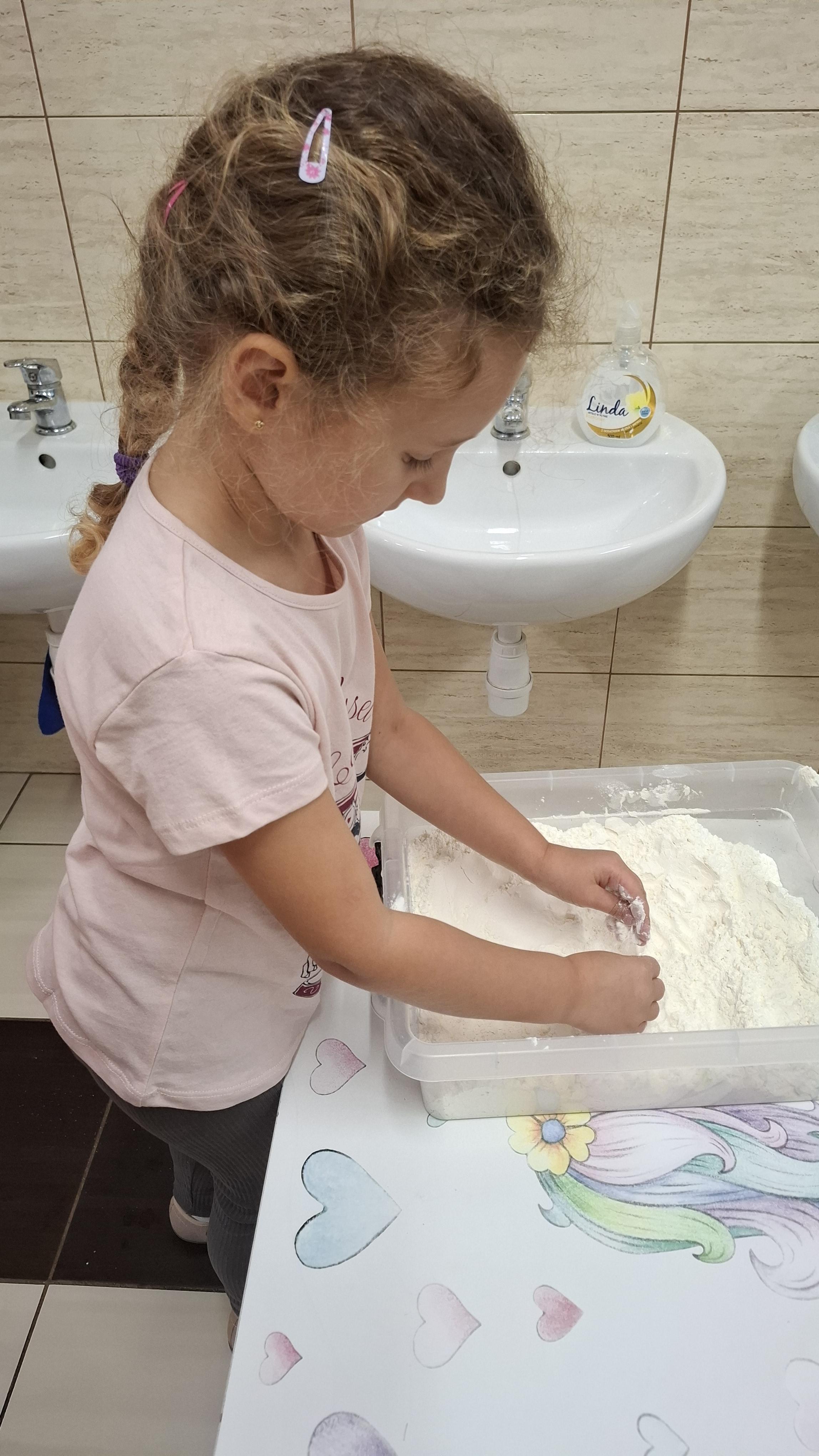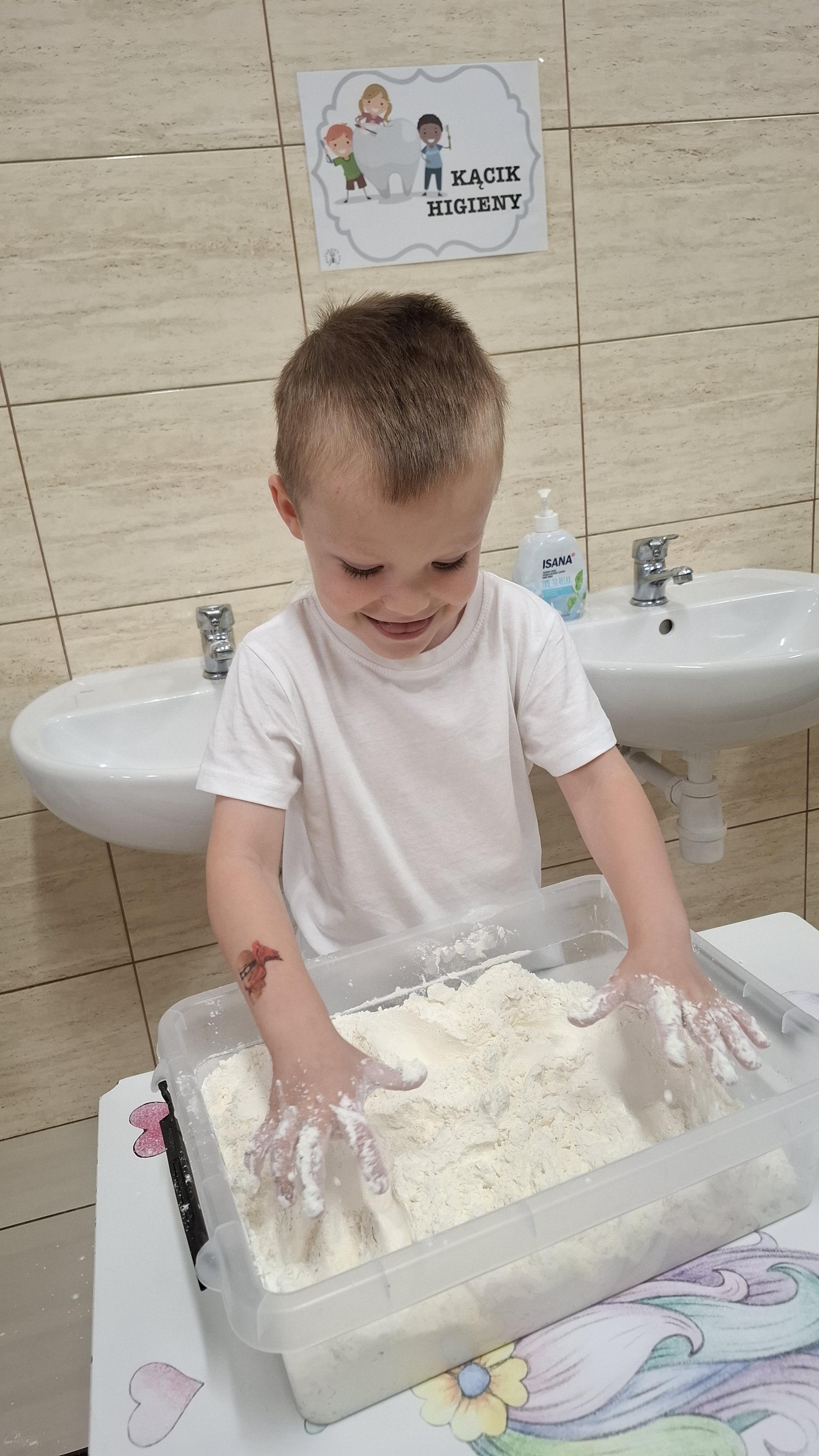 Ponieważ naszą codziennością w przedszkolu jest dbanie o higienę osobistą, nie zapominamy oczywiście o myciu rąk przed posiłkami. Za pomocą zabaw takich jak „W świecie czystości” dzieci utrwaliły natomiast nazwy przyborów higienicznych i ich przeznaczenie. Oprócz tego przeprowadziliśmy bardzo ciekawy eksperyment „Mydło i zarazki”, który uświadomił wszystkim, jak mydło działa na zarazki i jak ważne jest dbanie o higienę.