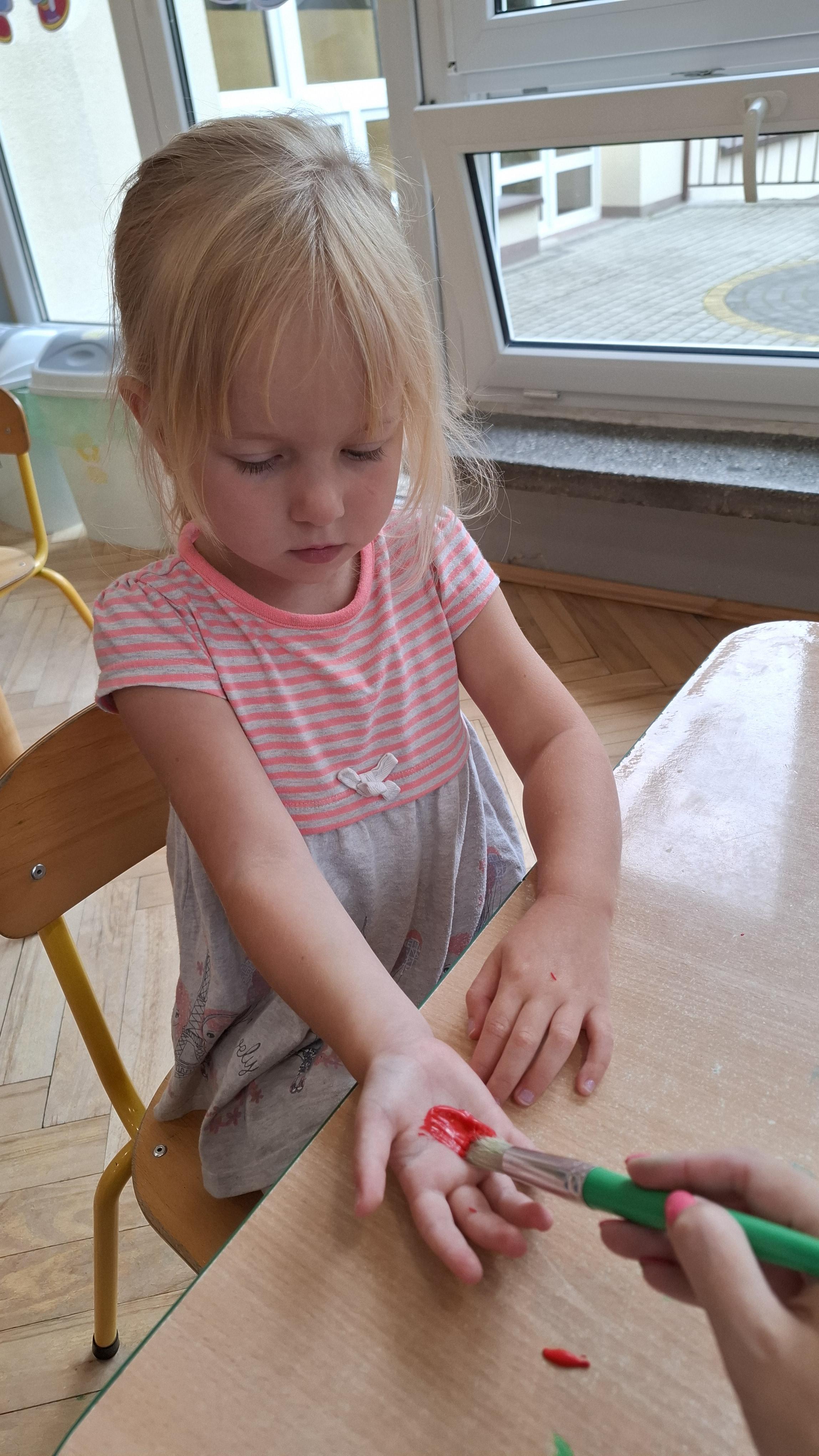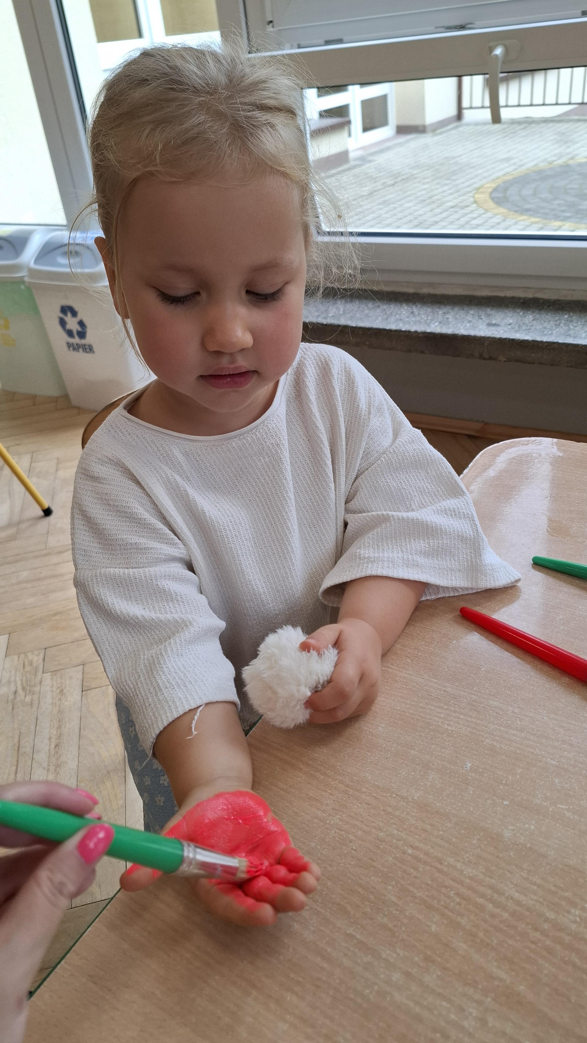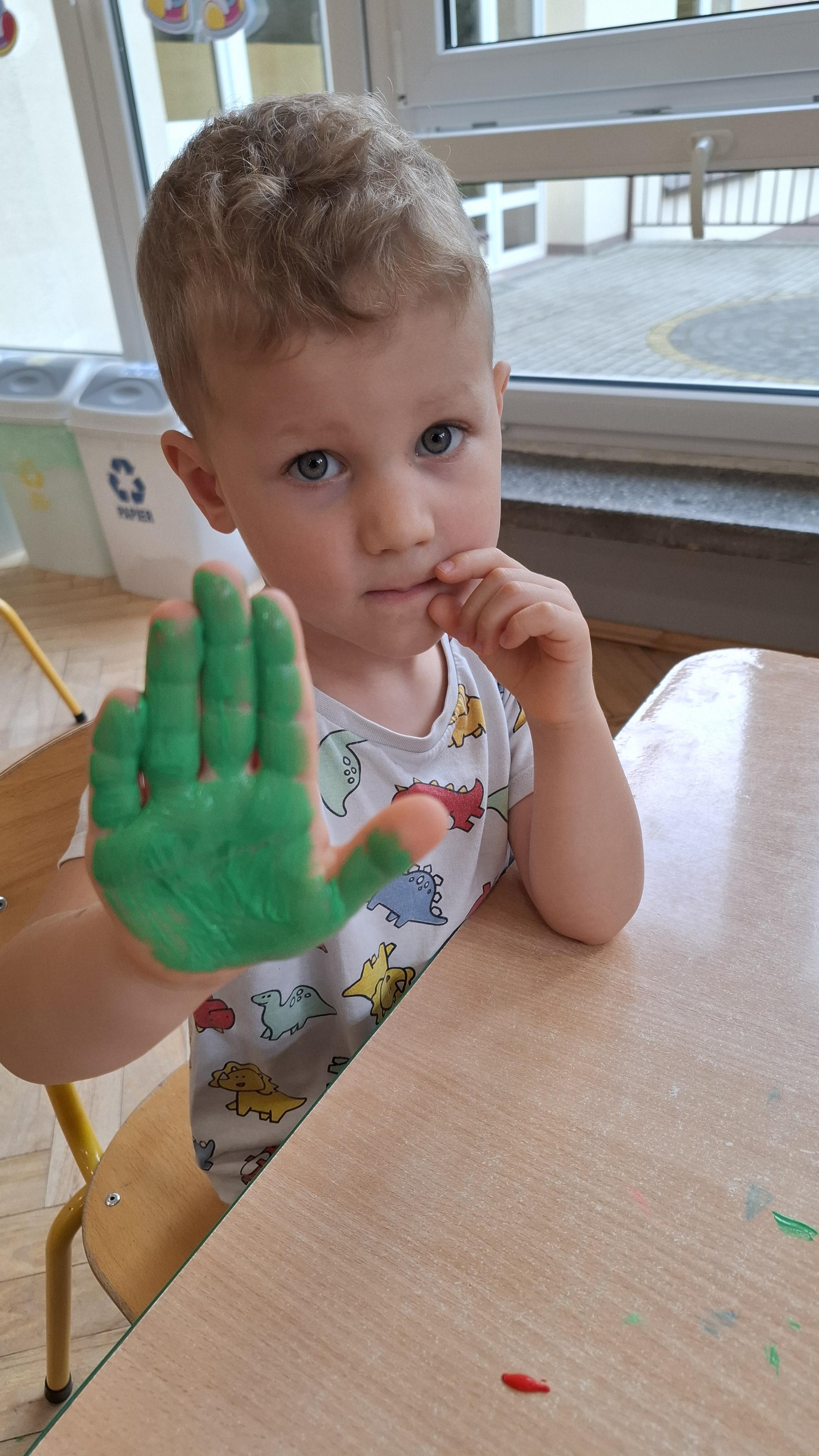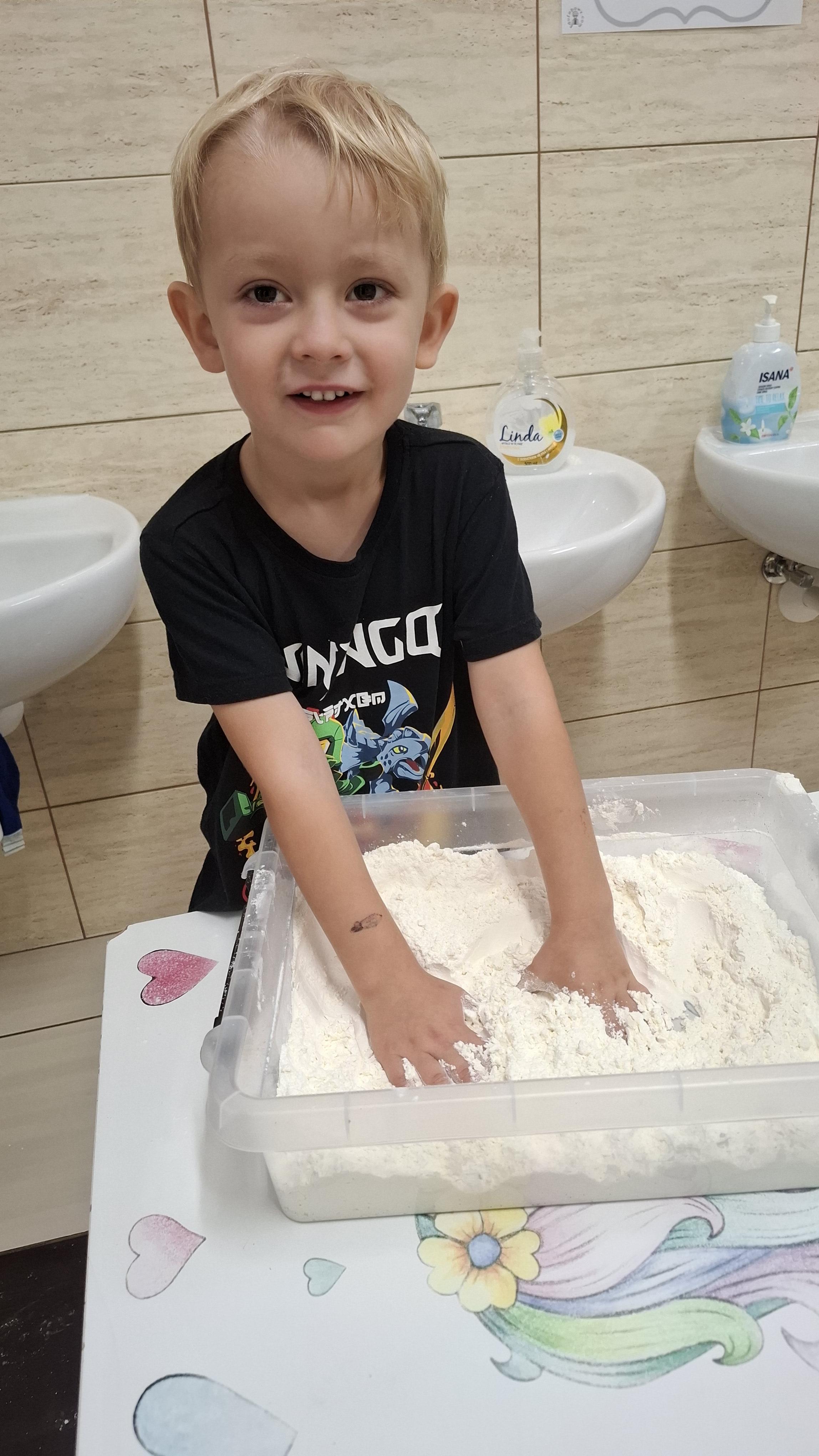 Ponieważ naszą codziennością w przedszkolu jest dbanie o higienę osobistą, nie zapominamy oczywiście o myciu rąk przed posiłkami. Za pomocą zabaw takich jak „W świecie czystości” dzieci utrwaliły natomiast nazwy przyborów higienicznych i ich przeznaczenie. Oprócz tego przeprowadziliśmy bardzo ciekawy eksperyment „Mydło i zarazki”, który uświadomił wszystkim, jak mydło działa na zarazki i jak ważne jest dbanie o higienę.