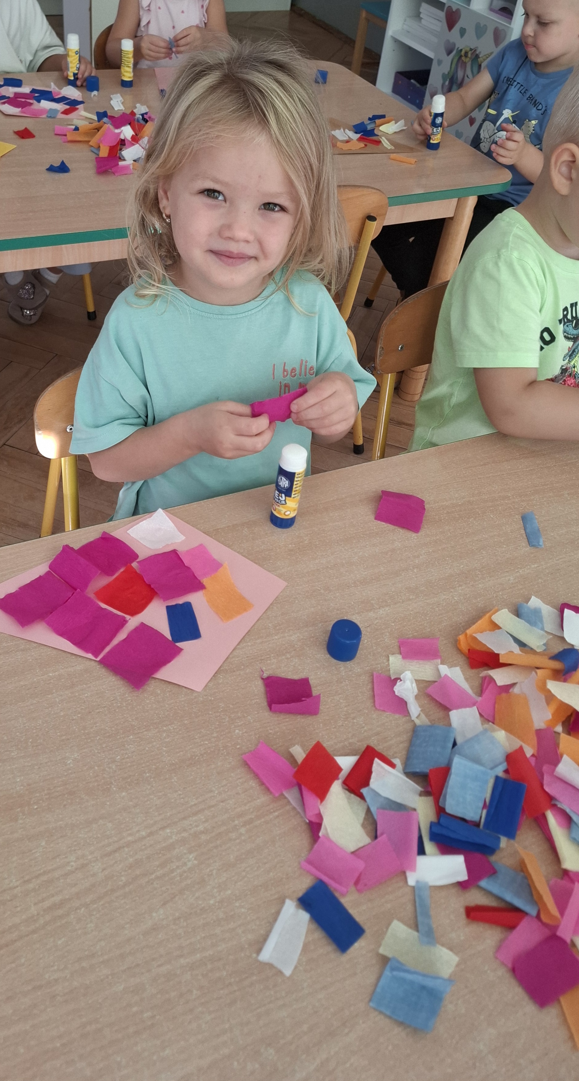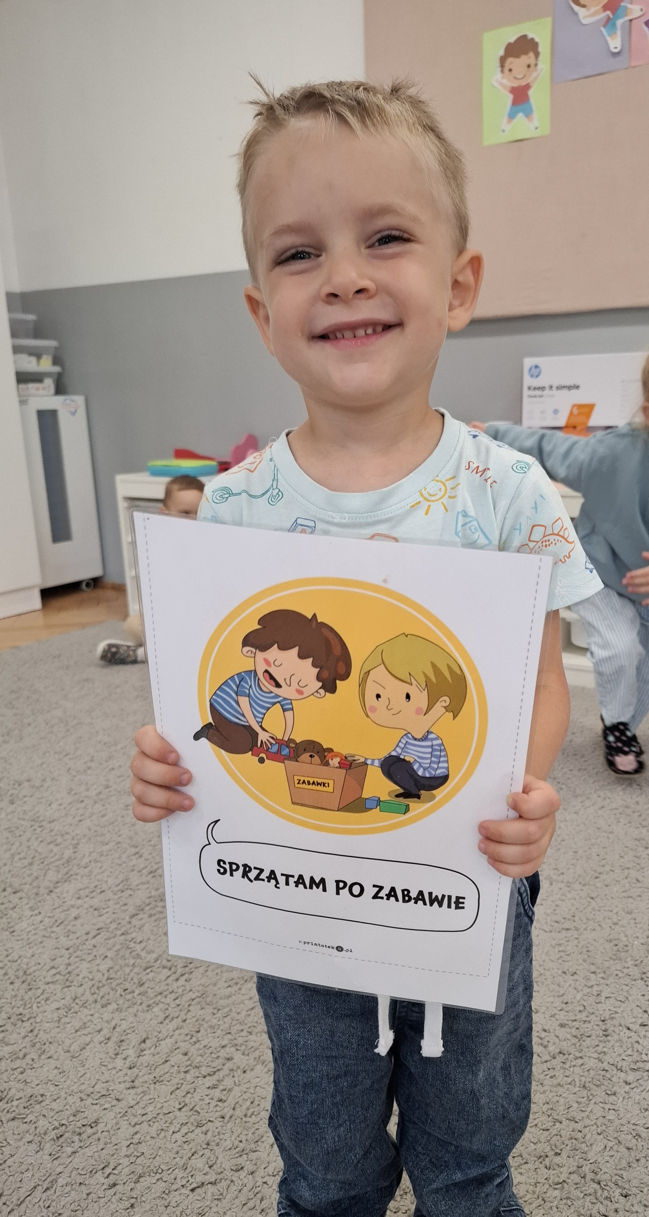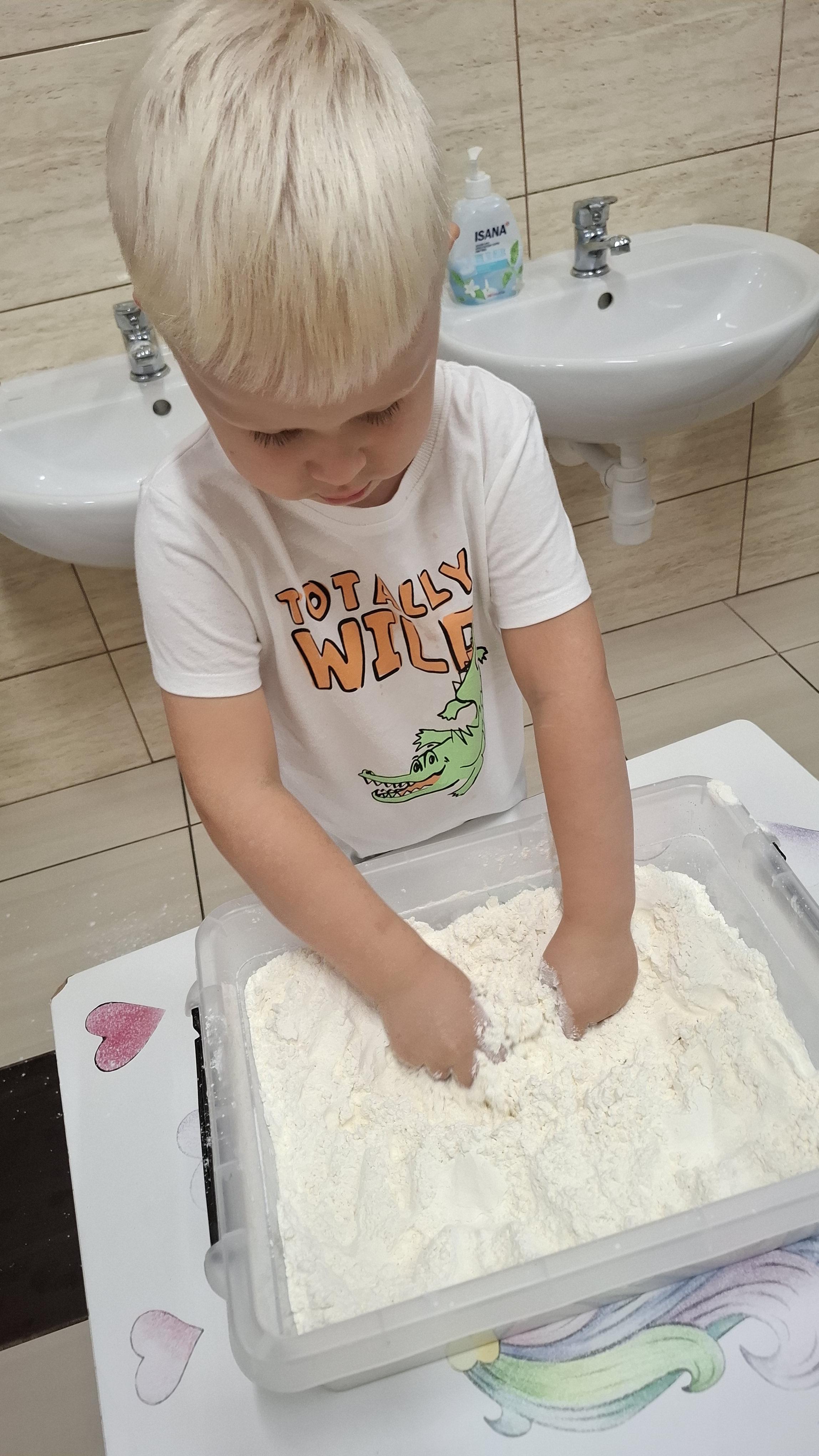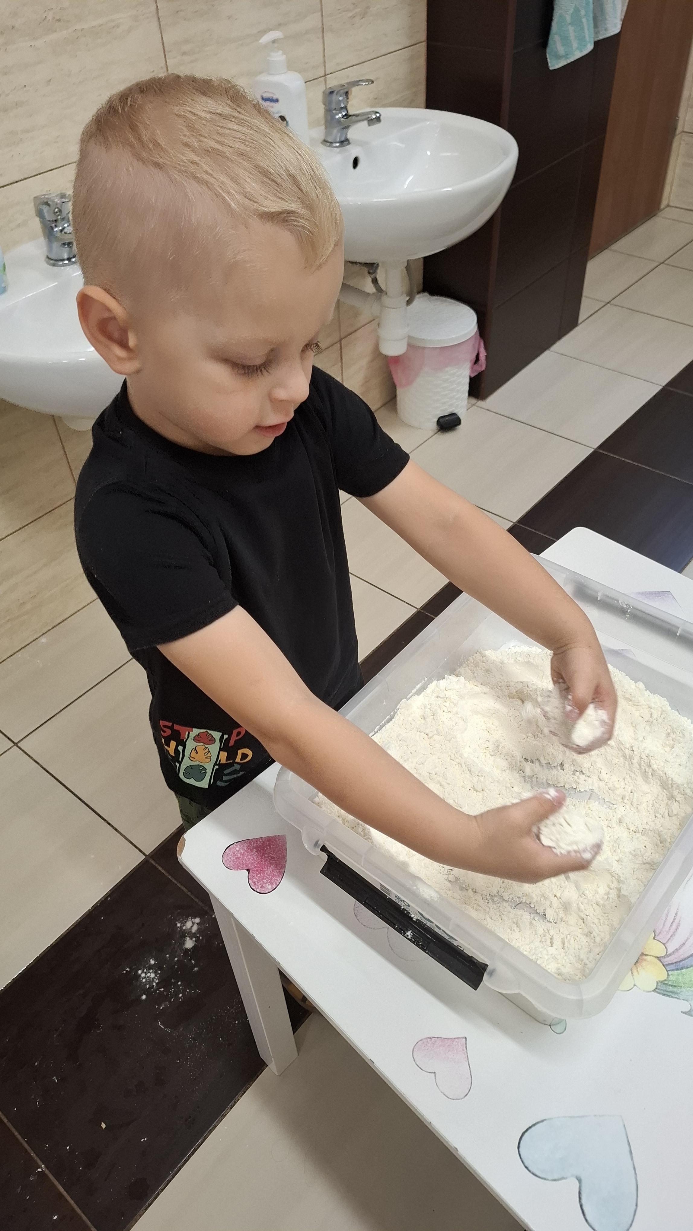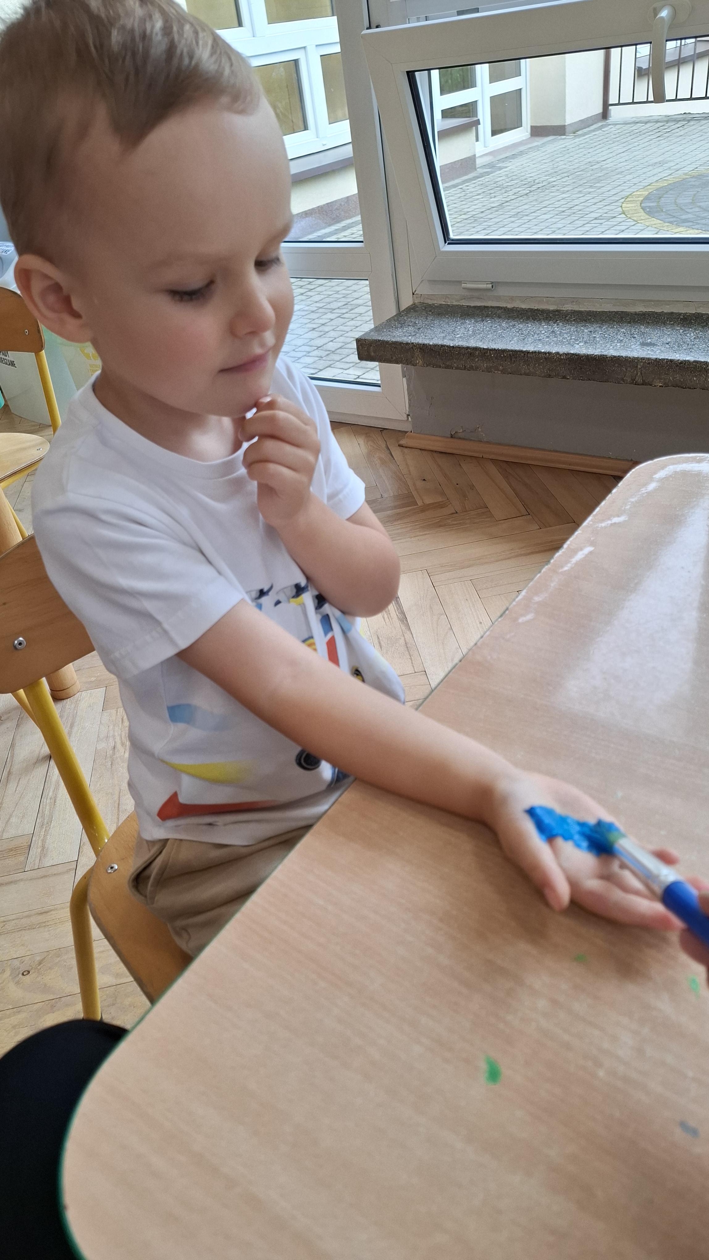 Ponieważ naszą codziennością w przedszkolu jest dbanie o higienę osobistą, nie zapominamy oczywiście o myciu rąk przed posiłkami. Za pomocą zabaw takich jak „W świecie czystości” dzieci utrwaliły natomiast nazwy przyborów higienicznych i ich przeznaczenie. Oprócz tego przeprowadziliśmy bardzo ciekawy eksperyment „Mydło i zarazki”, który uświadomił wszystkim, jak mydło działa na zarazki i jak ważne jest dbanie o higienę.