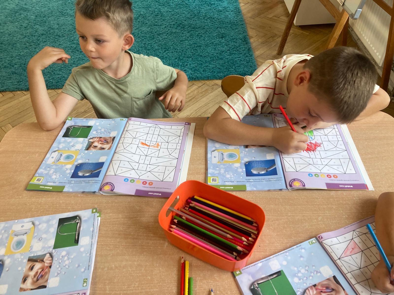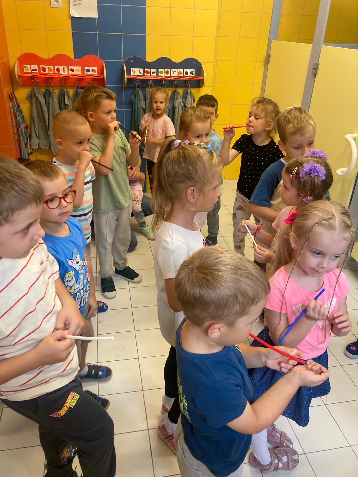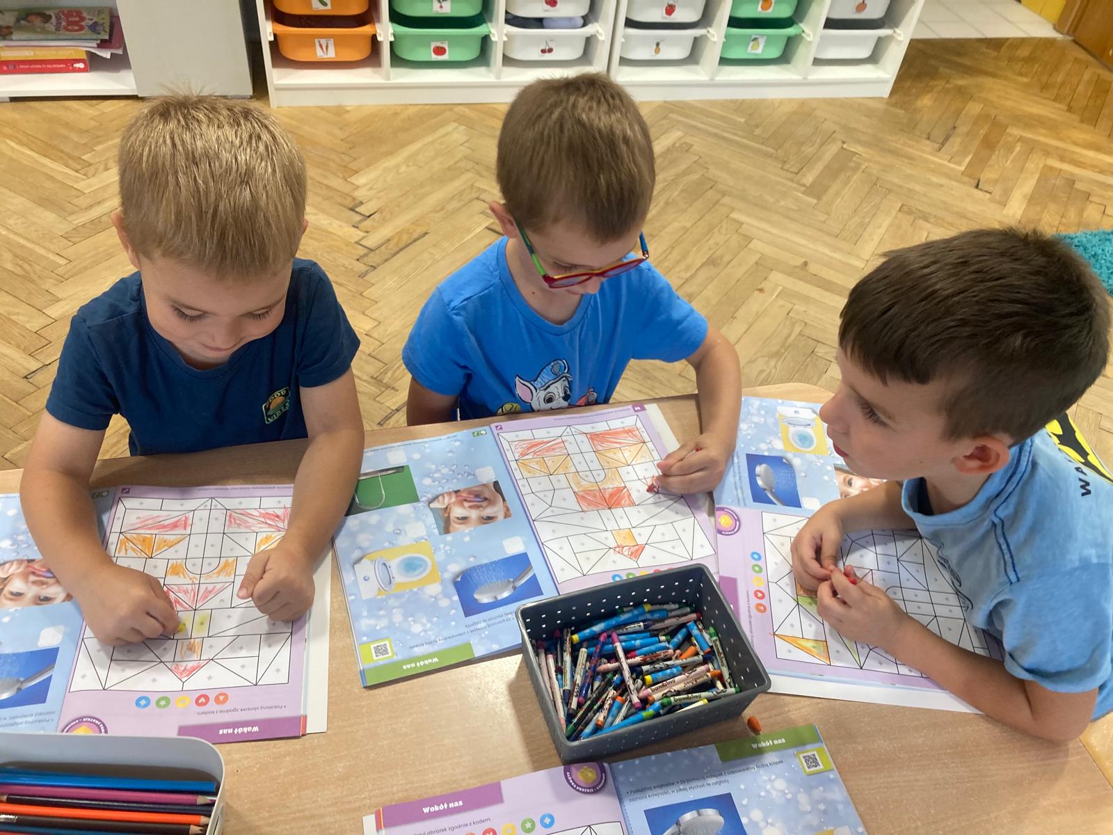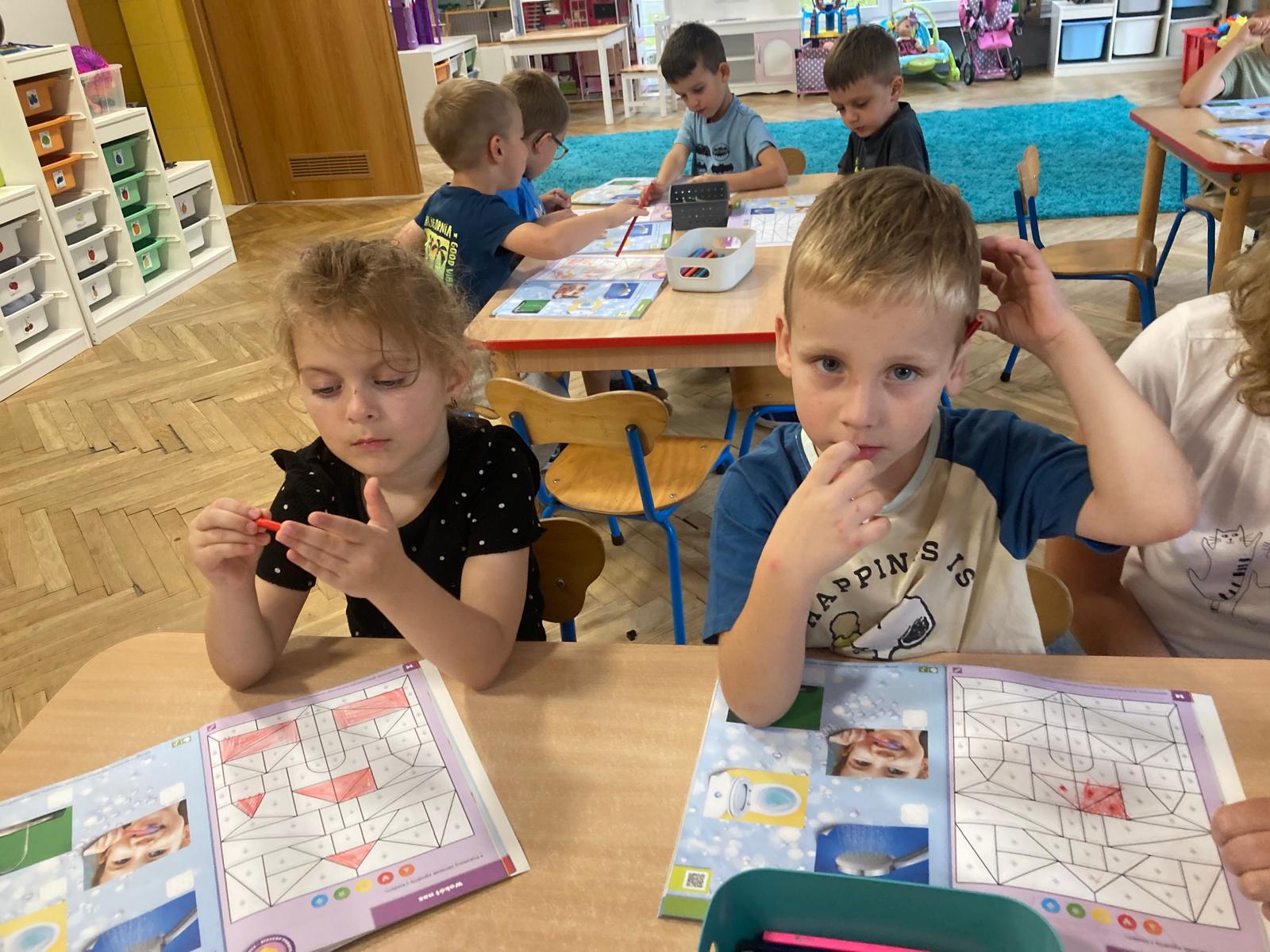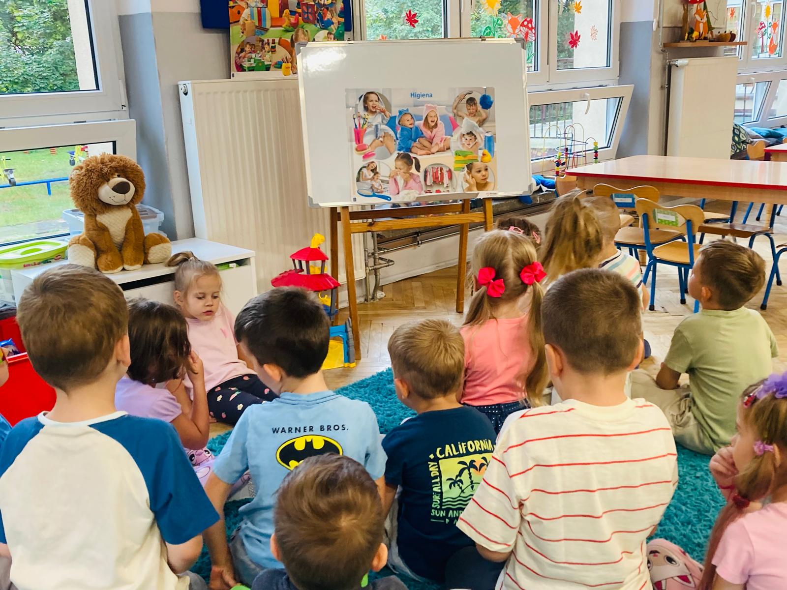 W tym tygodniu ustaliliśmy KODEKS GRUPY, omówiliśmy zasady zachowania , które umilą nam pobyt w przedszkolu, wzmocnią poczucie odpowiedzialności za swoje działania,rozwiną umiejetność dokonania samooceny. Poznaliśmy nasze otoczenie: pomieszczenia przedszkola, pracowników.Rozwijaliśmy umiejetności określania położenia przedmiotów w przestrzeni, ćwiczyliśmy używanie zaimków: na . po , oboka, za, przed.Kształtowaliśmy umiejetnośći logicznego myślenia oraz umiejetności współpracy w małych zespołch. Rozmawialiśmy o higienie , potrzebie dbania o czystość całego ciała . Bawiliśmy się mydłem utrwalając nawyki higieniczne a także "produkowaliśmy " pianę :)