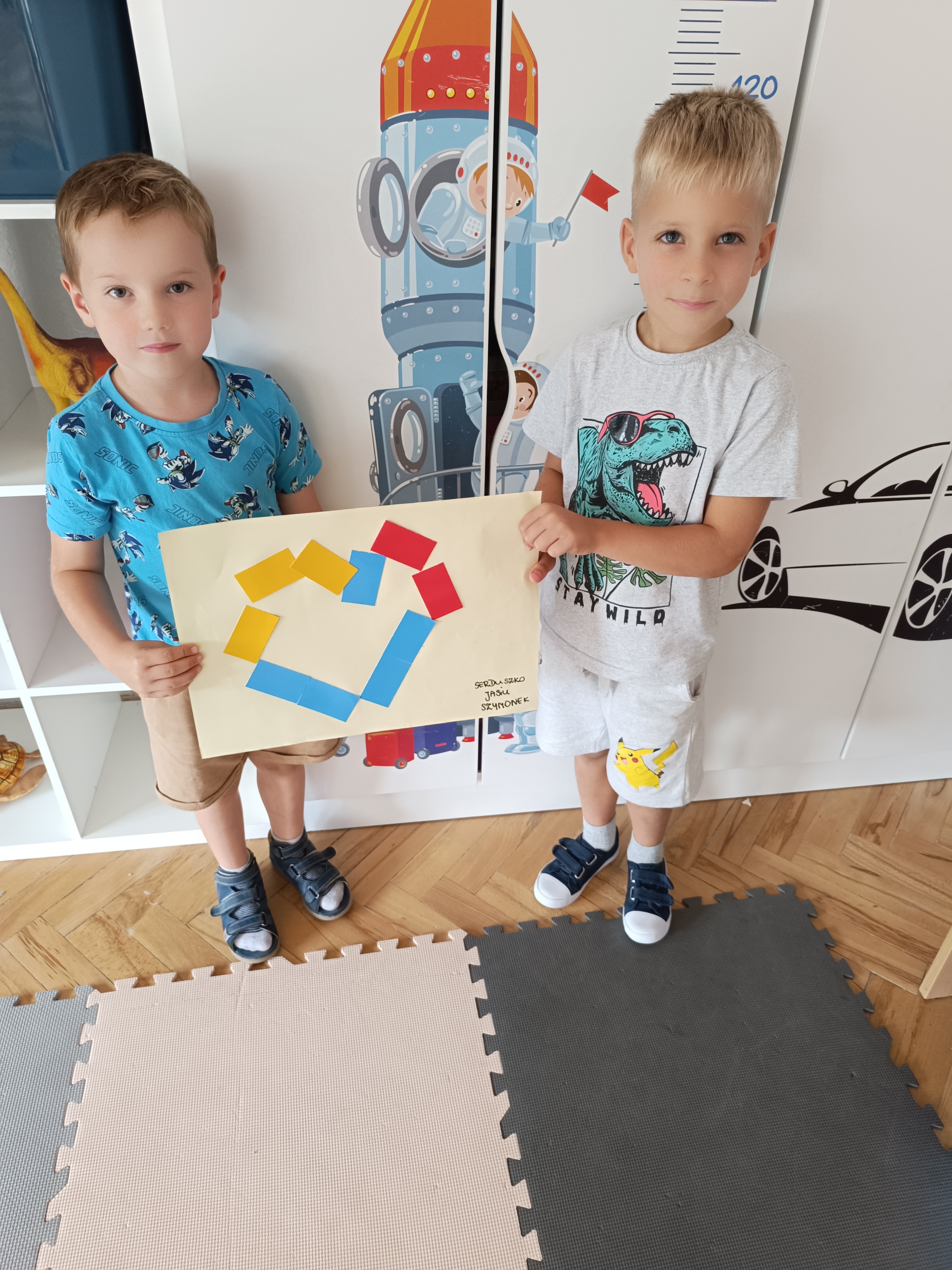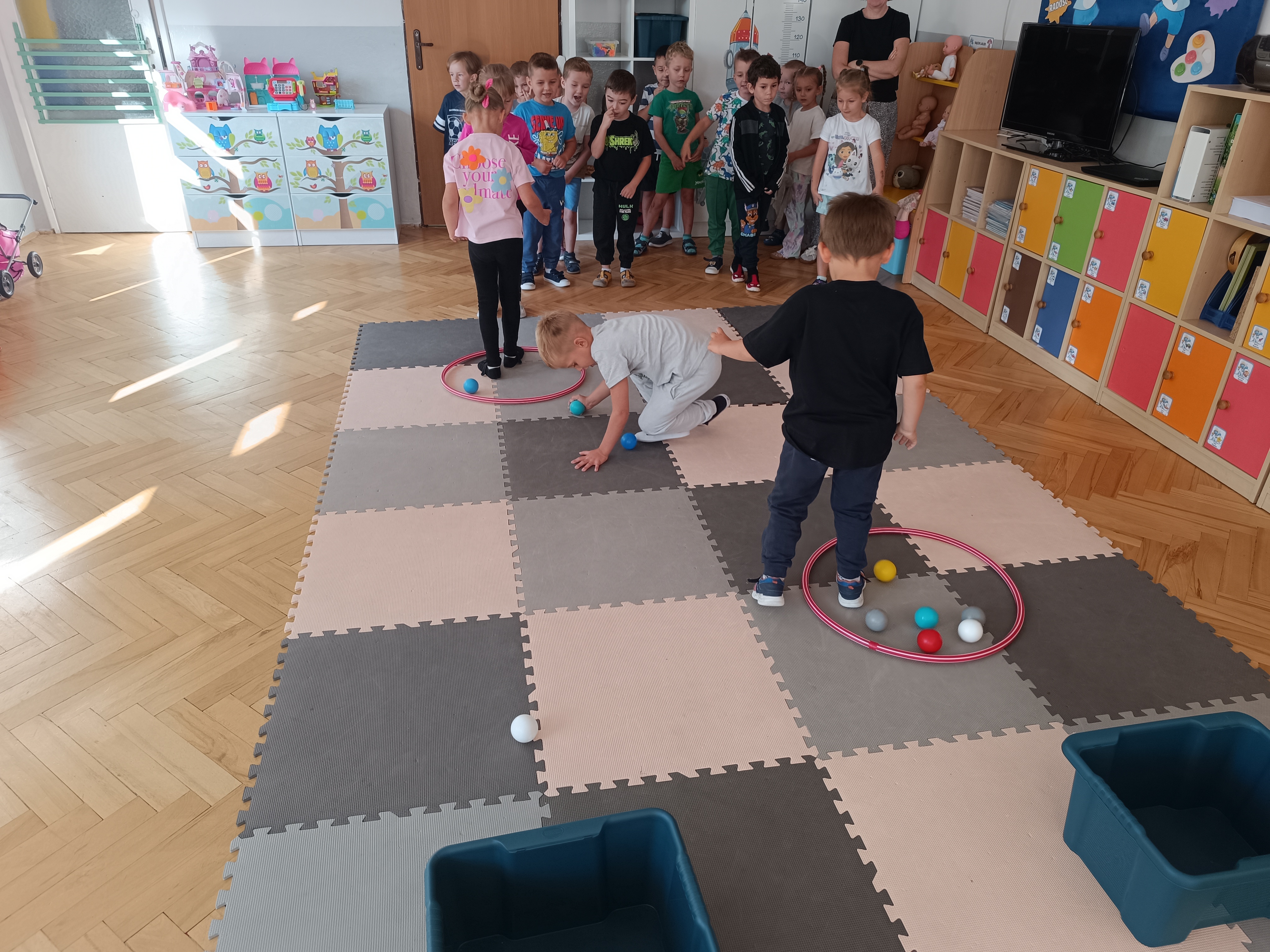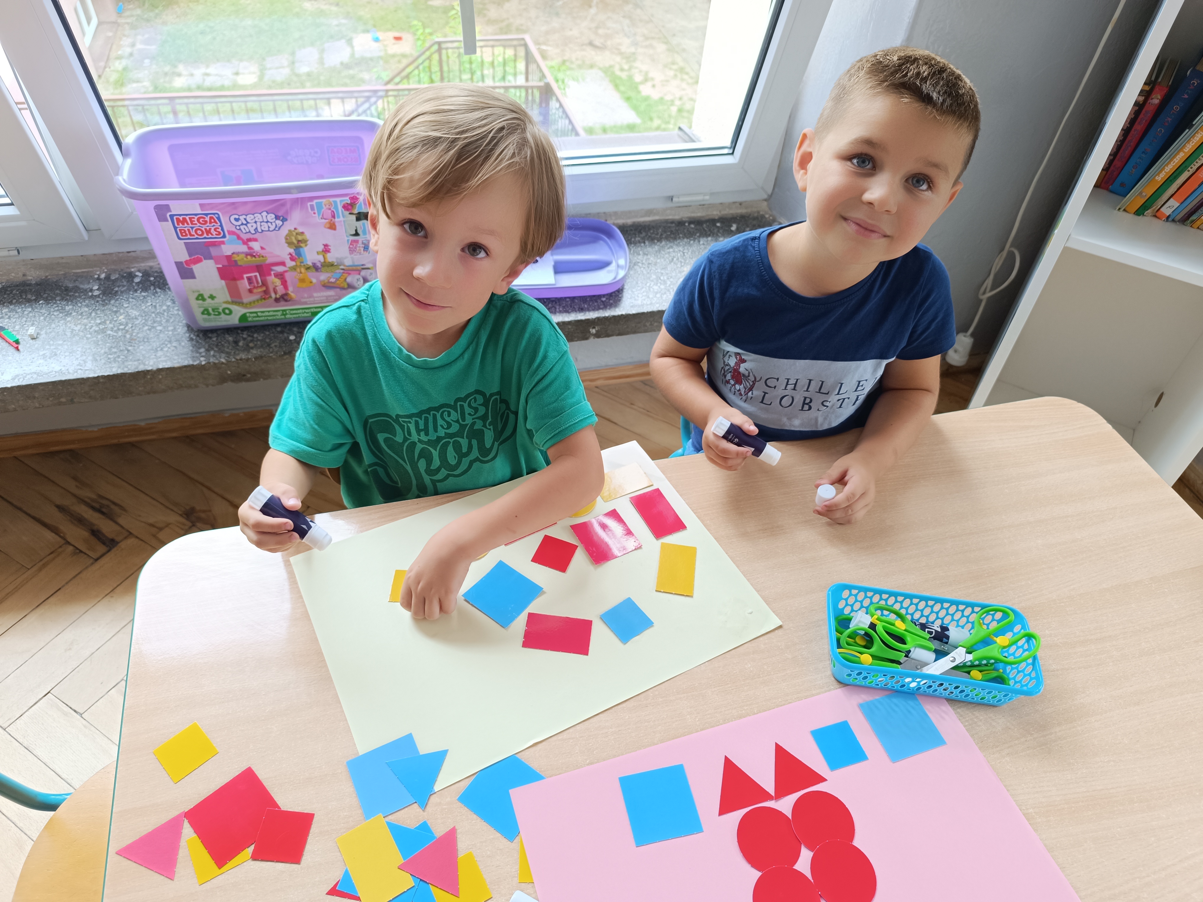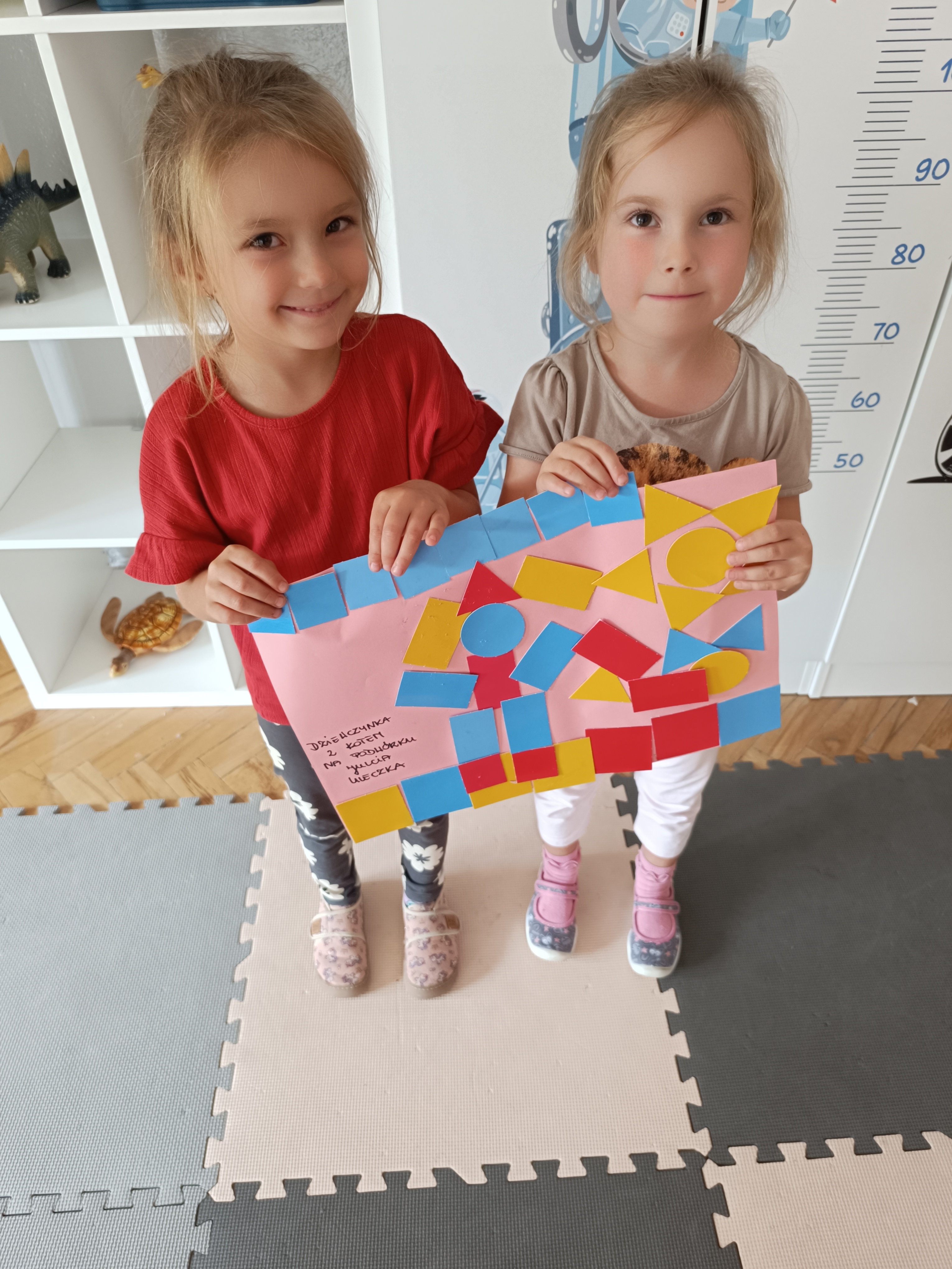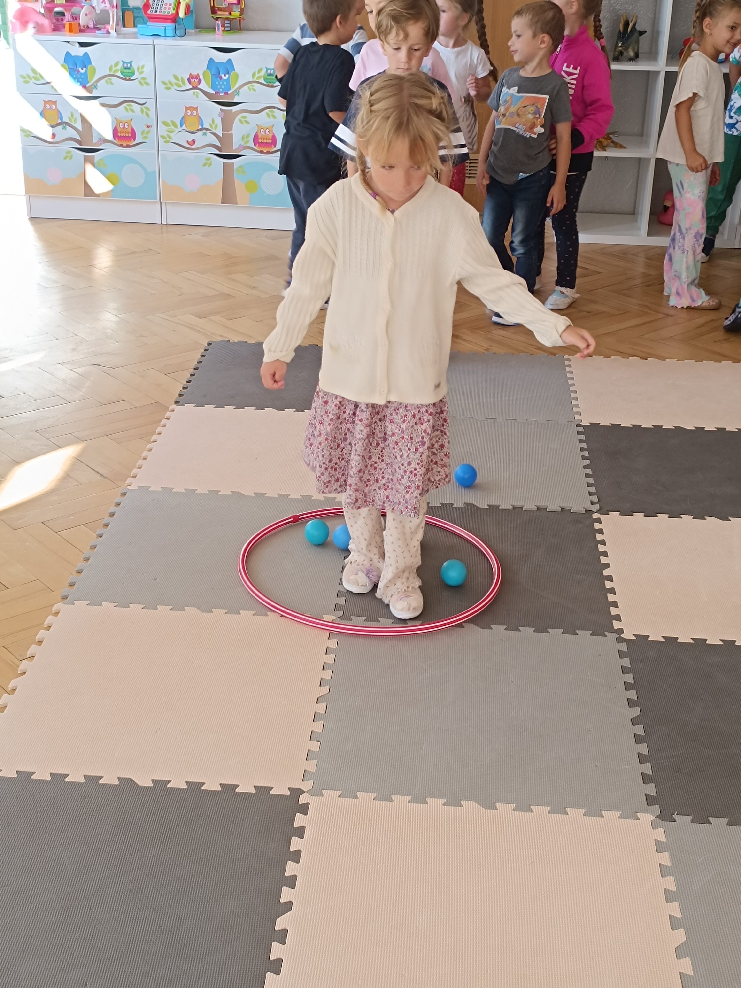 Układaliśmy misia, dom z figur geometrycznych, utrwalając ich nazwy. Przeliczyliśmy na figurach geometrycznych. Braliśmy udział w przeróżnych zabawach ruchowych. Oczywiście nie zabrakło wyjścia na plac zabaw przedszkolny.