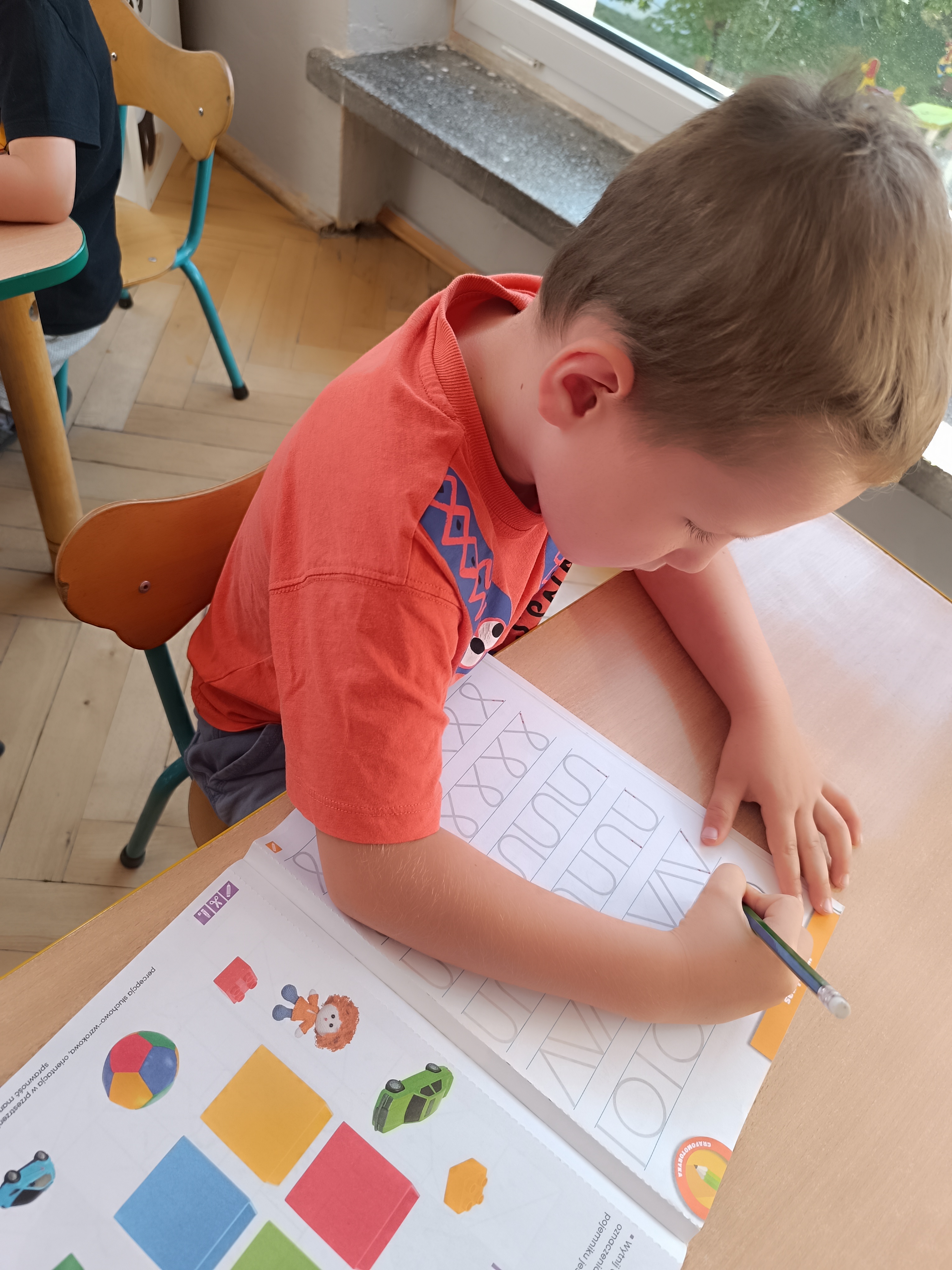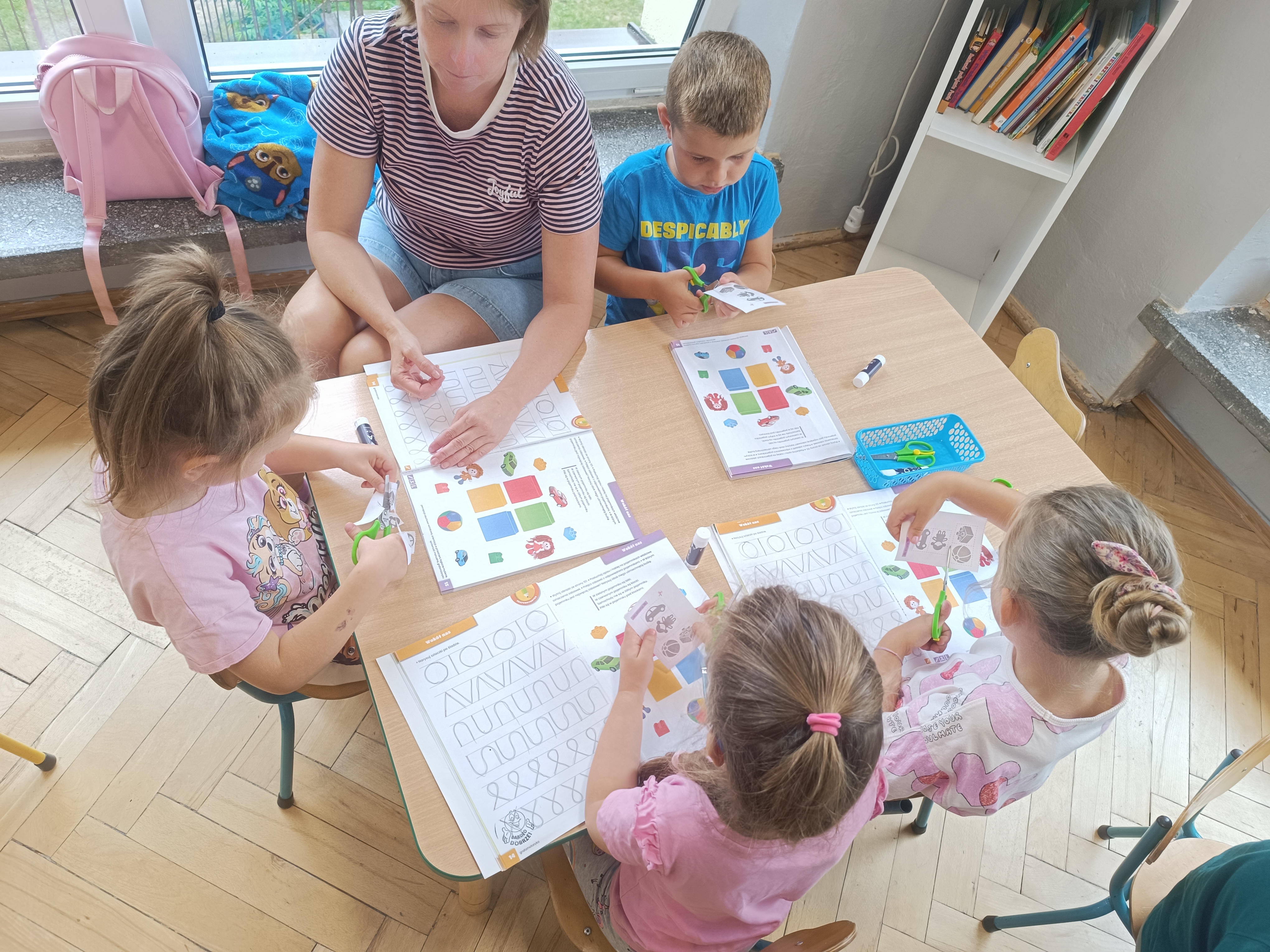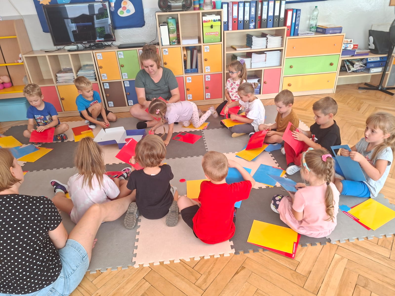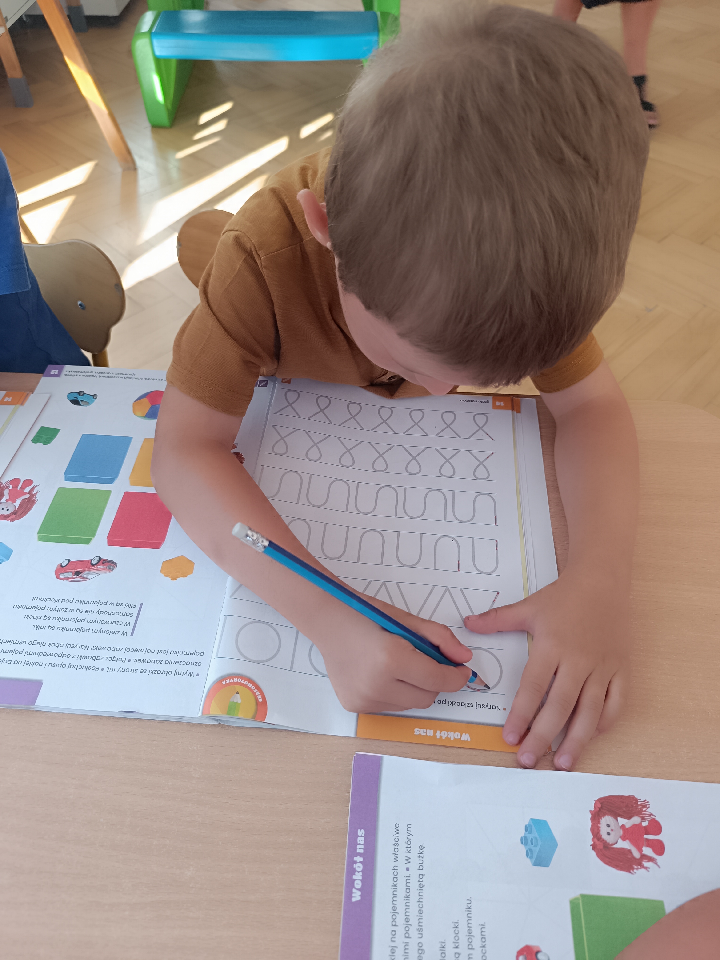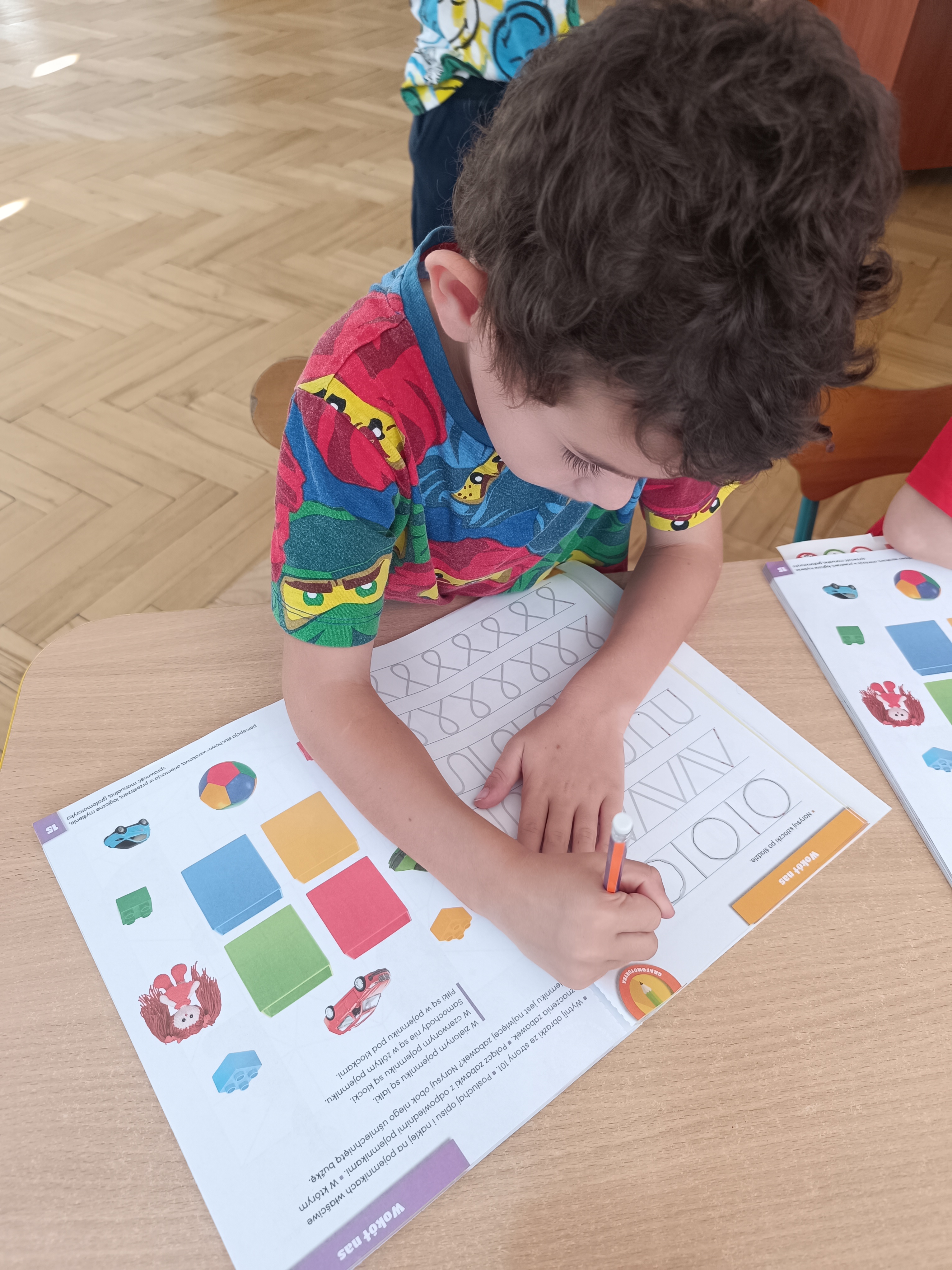 Układaliśmy misia, dom z figur geometrycznych, utrwalając ich nazwy. Przeliczyliśmy na figurach geometrycznych. Braliśmy udział w przeróżnych zabawach ruchowych. Oczywiście nie zabrakło wyjścia na plac zabaw przedszkolny.