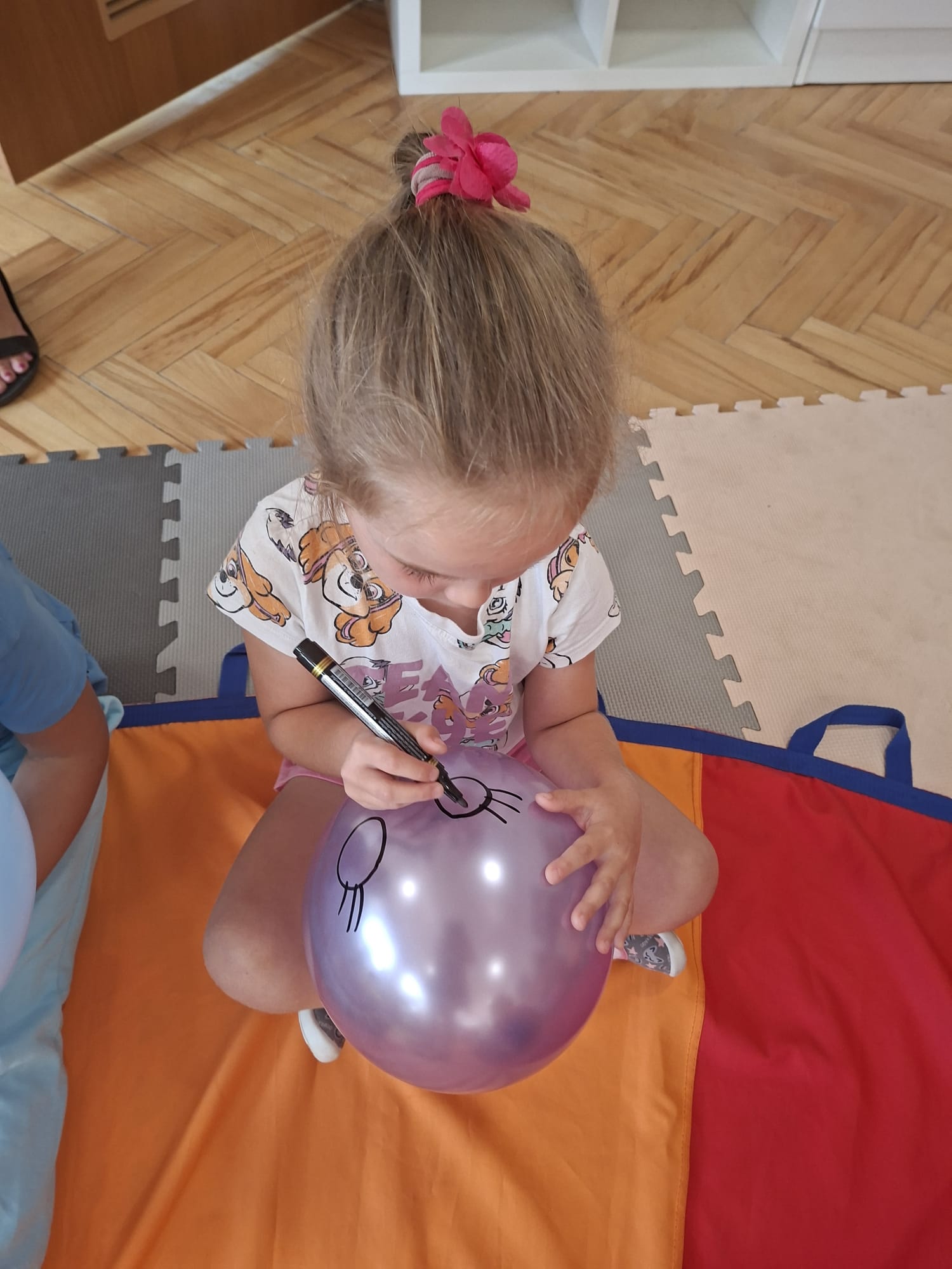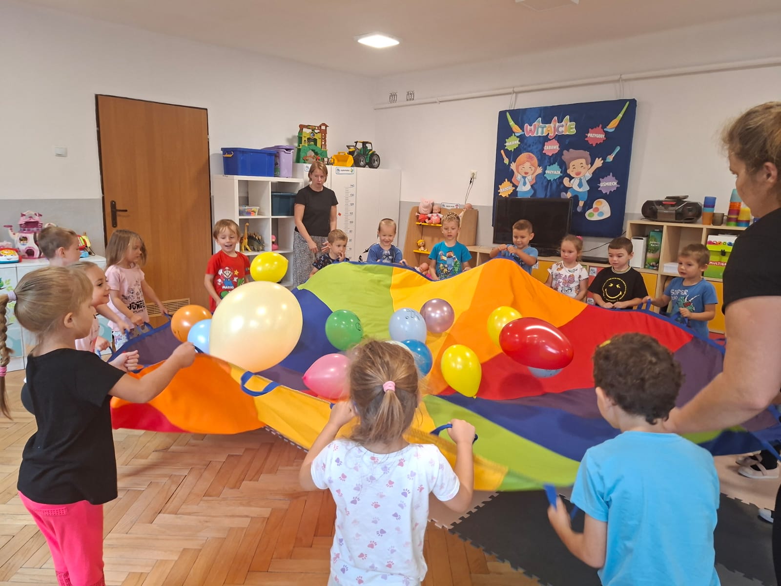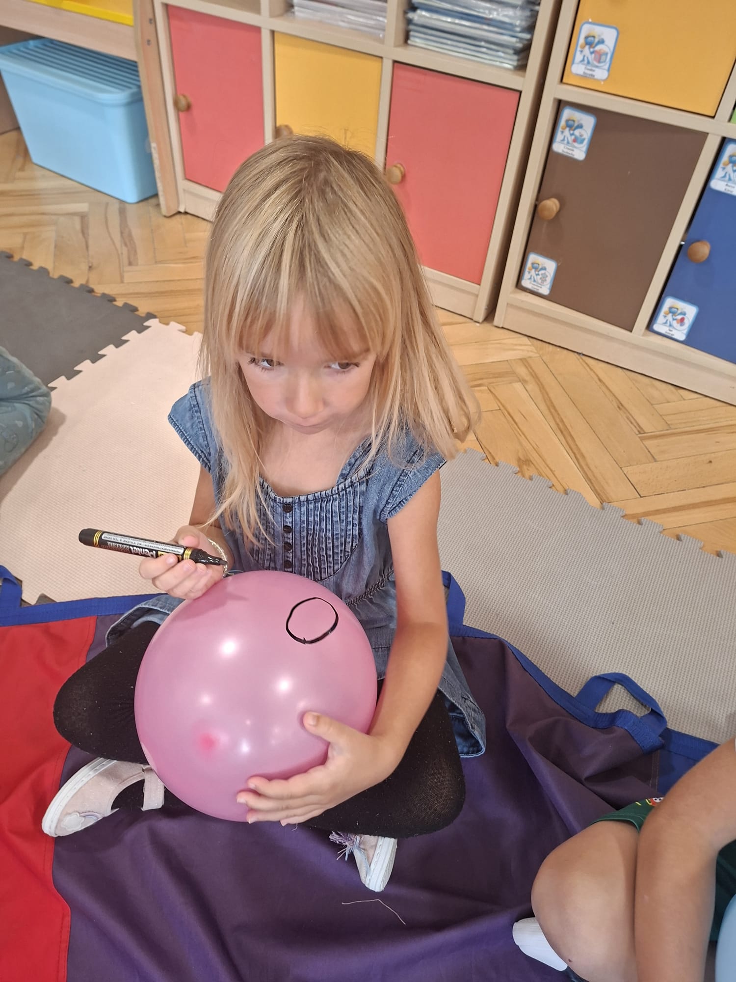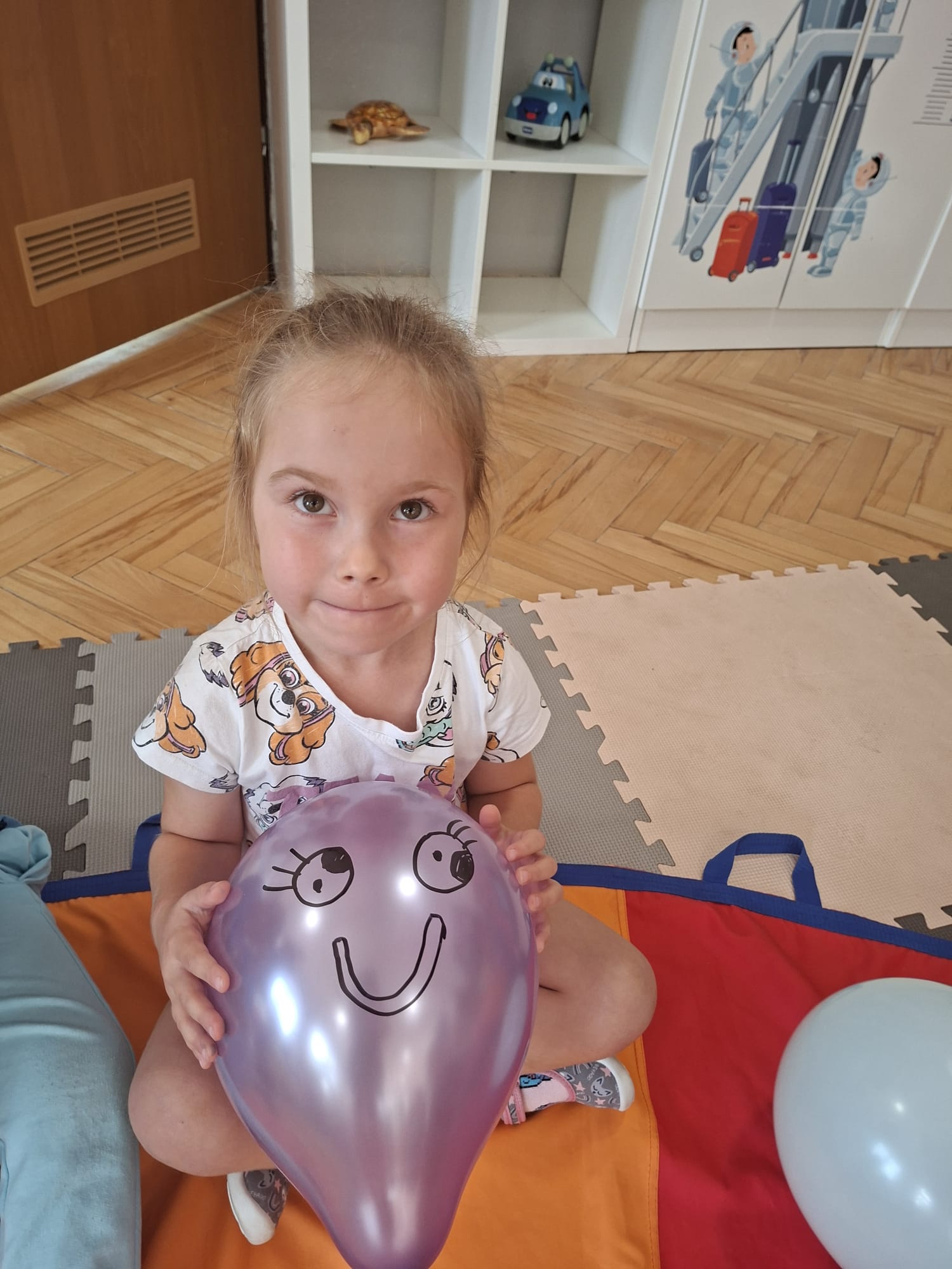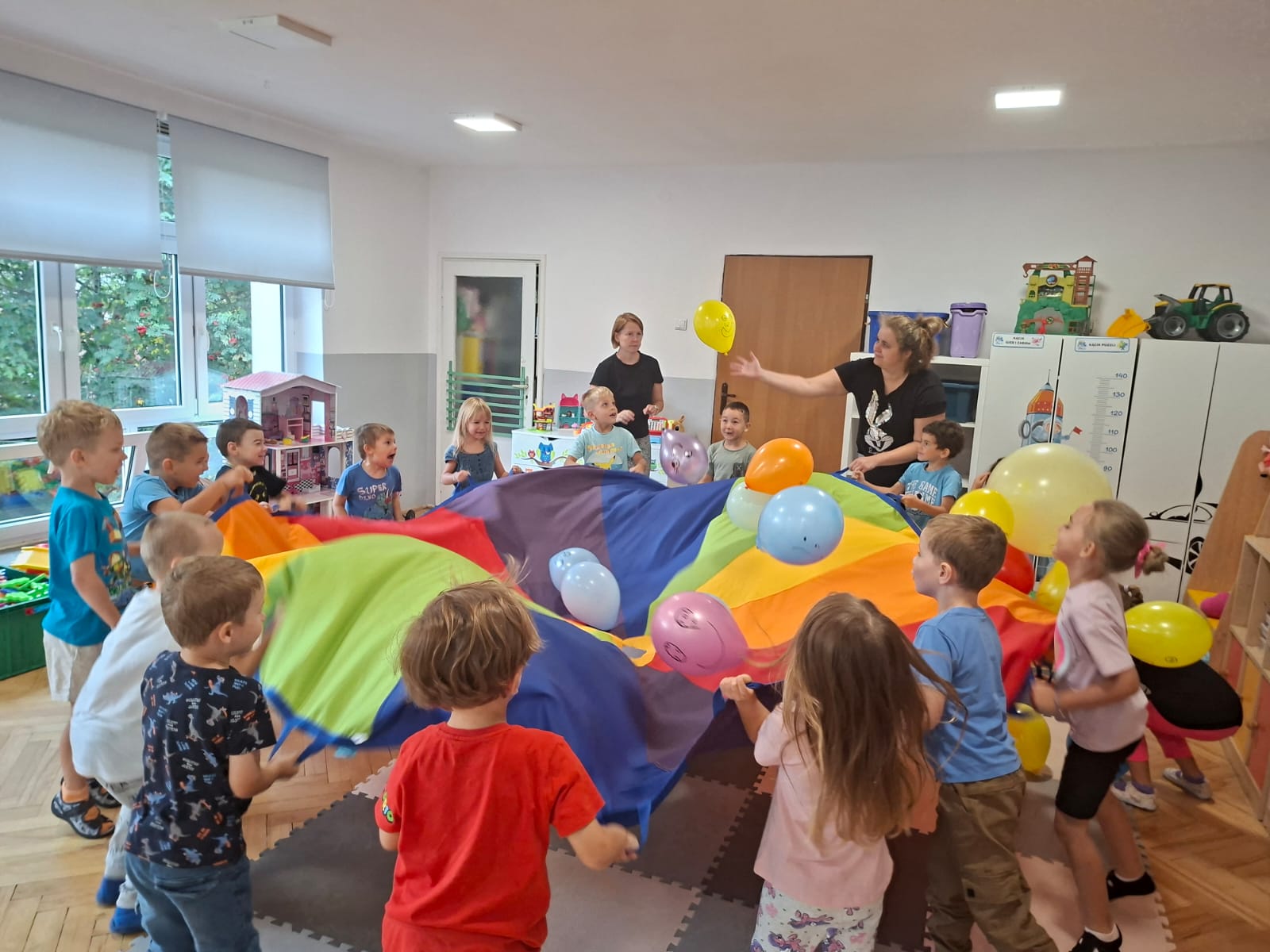 W minionym tygodniu przypominaliśmy sobie kodeks naszej grupy, słuchaliśmy opowiadania M. Pawlisz - "Kodeks - czemu nie" , rozmawiając wspólnie o nim. Rysowaliśmy na balonikach swoje emocje - rozmawiając później o nich , dlaczego dzisiaj tak się czujemy. Rozłożyliśmy balony na chuście animacyjnej szukając swojego balonika, bawiliśmy się z wykorzystaniem chusty.
