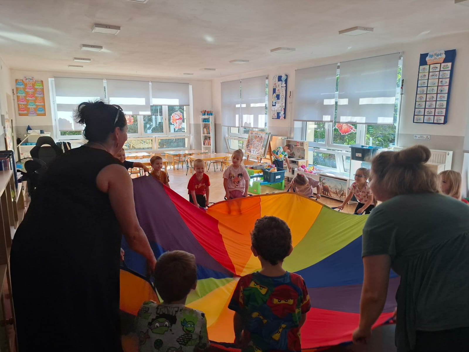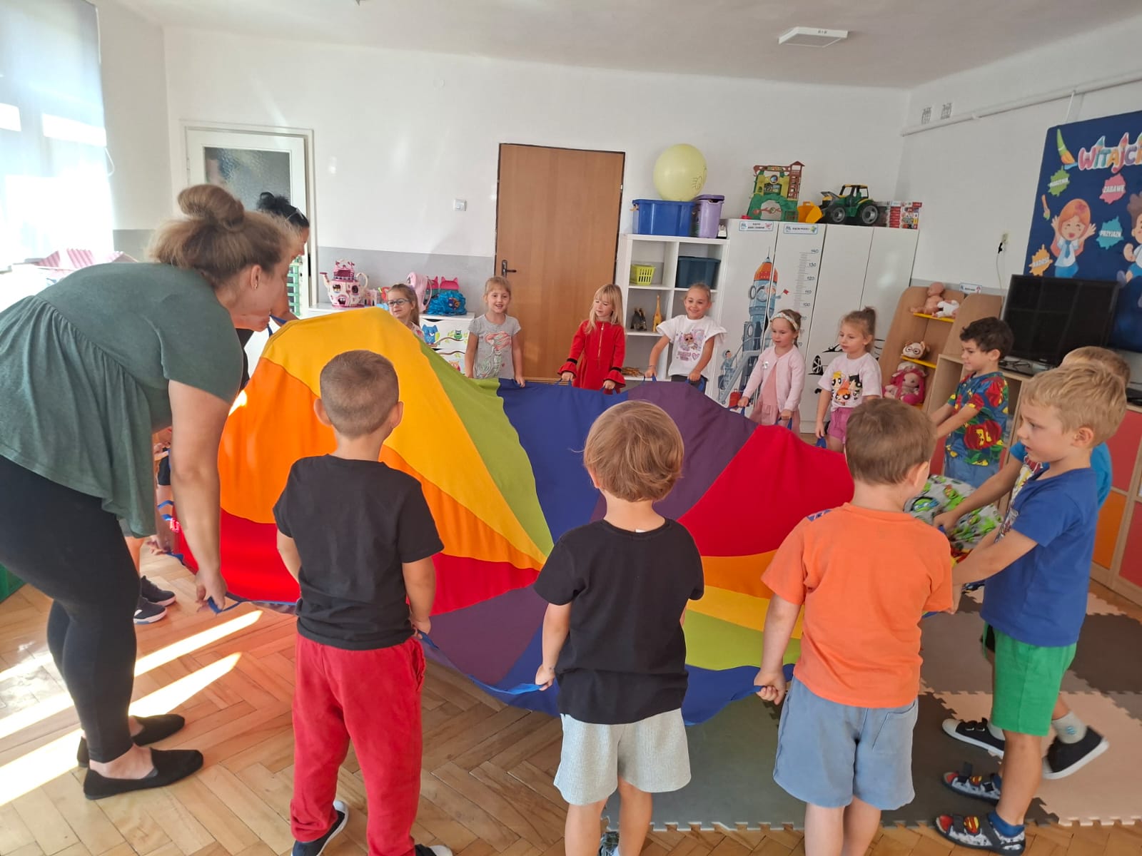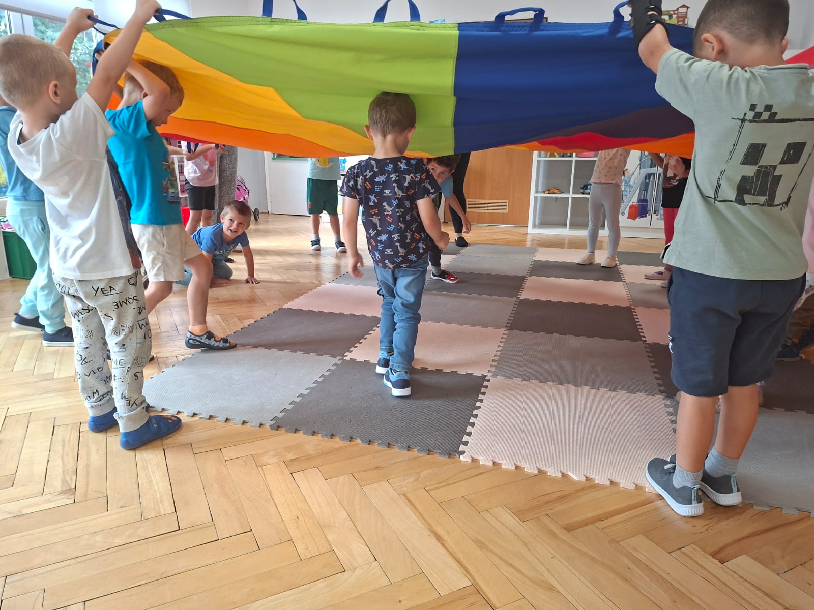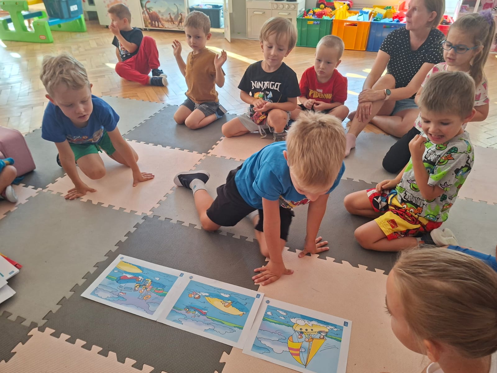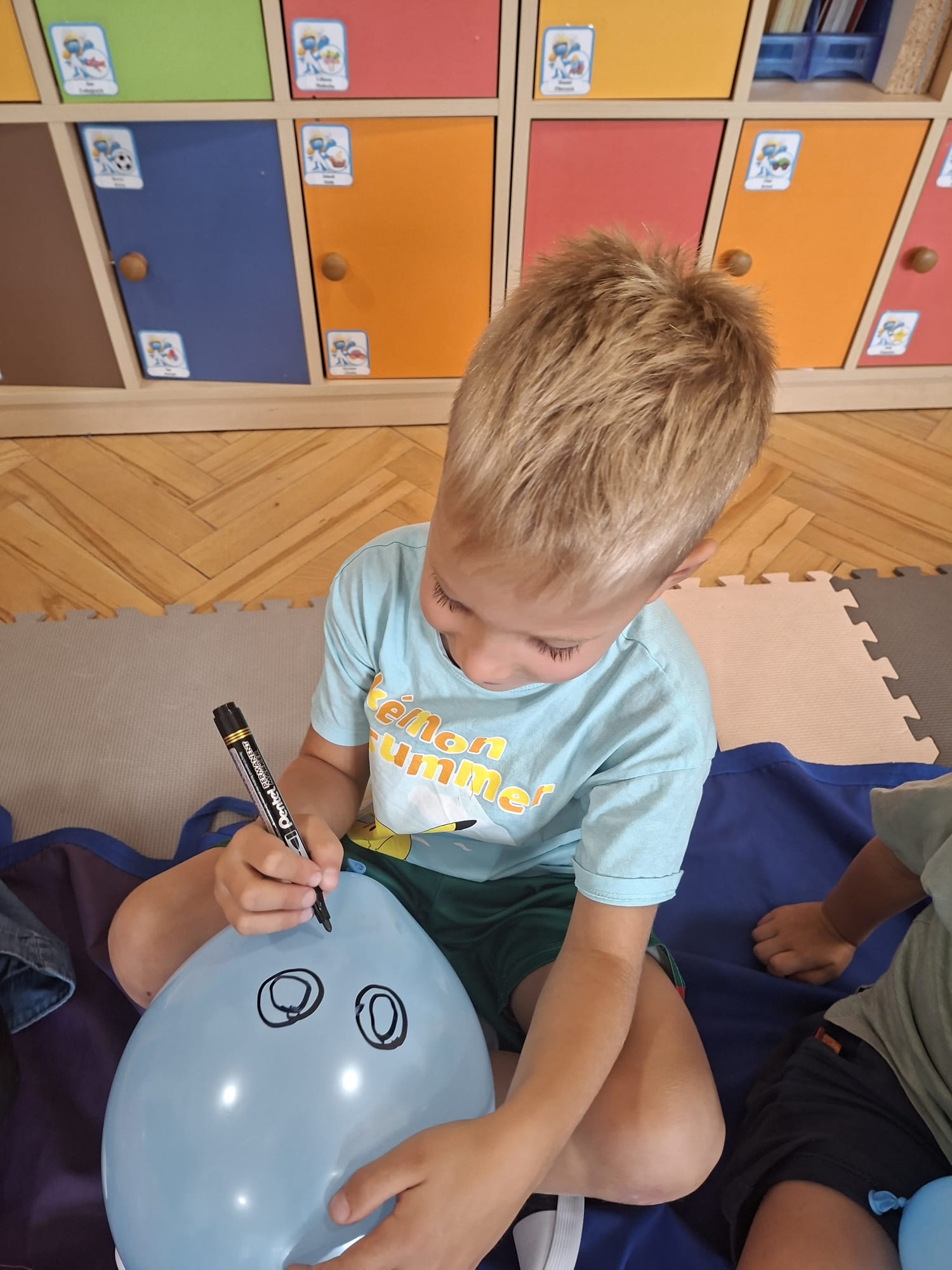 W minionym tygodniu przypominaliśmy sobie kodeks naszej grupy, słuchaliśmy opowiadania M. Pawlisz - "Kodeks - czemu nie" , rozmawiając wspólnie o nim. Rysowaliśmy na balonikach swoje emocje - rozmawiając później o nich , dlaczego dzisiaj tak się czujemy. Rozłożyliśmy balony na chuście animacyjnej szukając swojego balonika, bawiliśmy się z wykorzystaniem chusty.