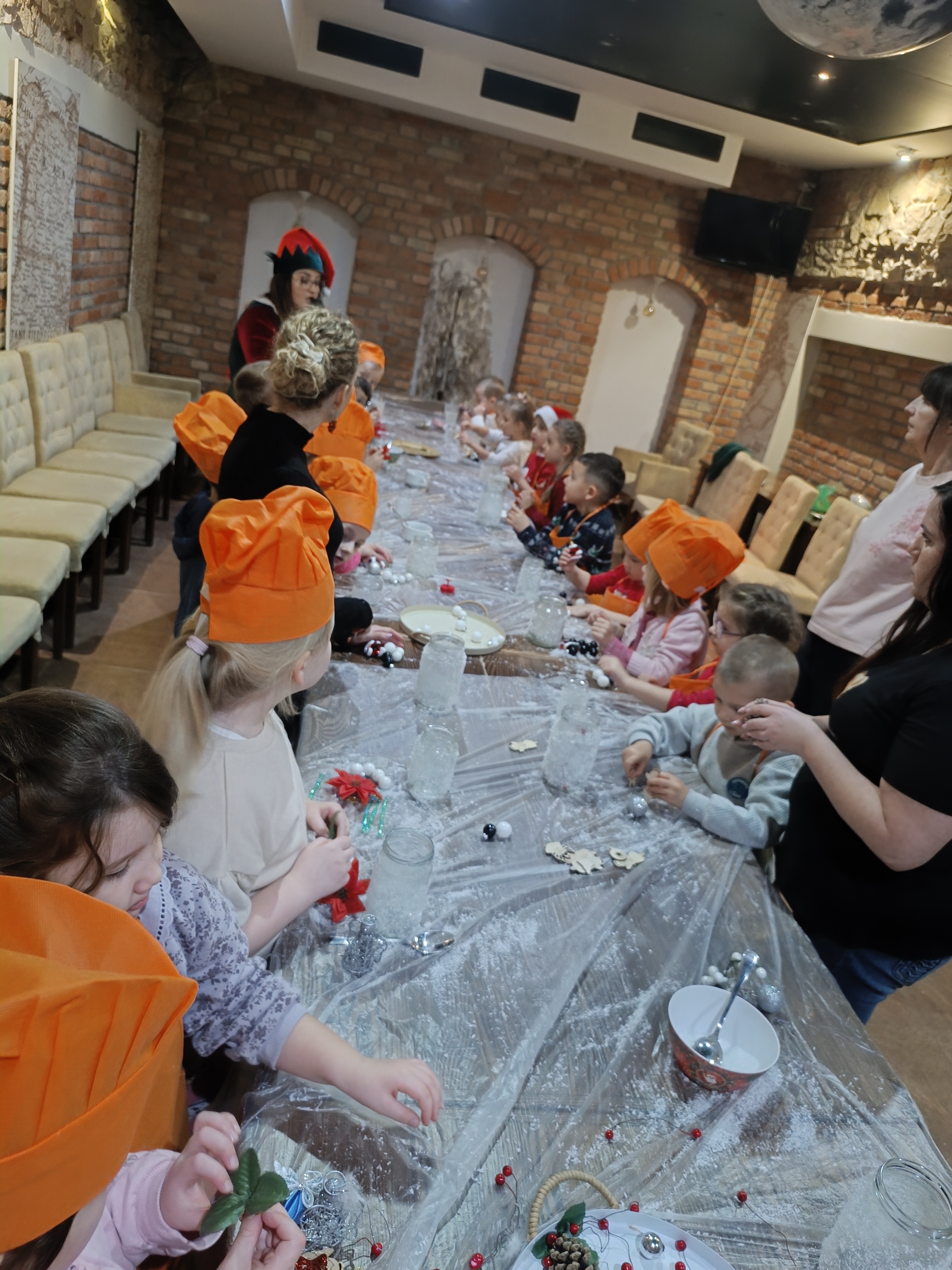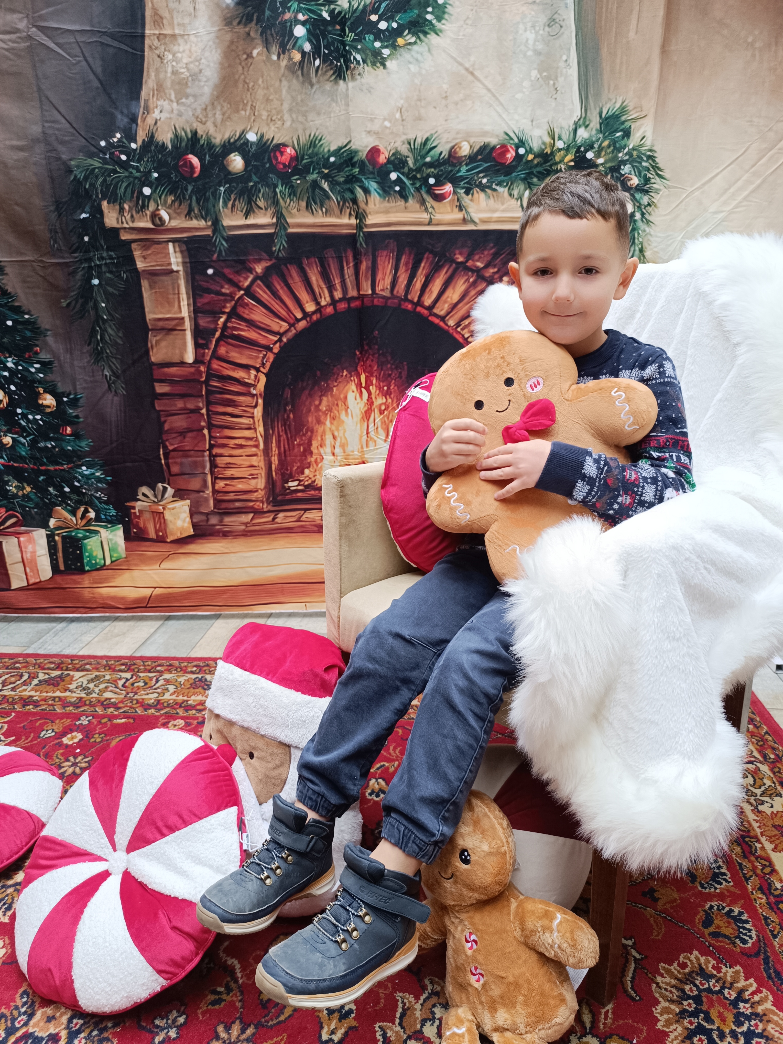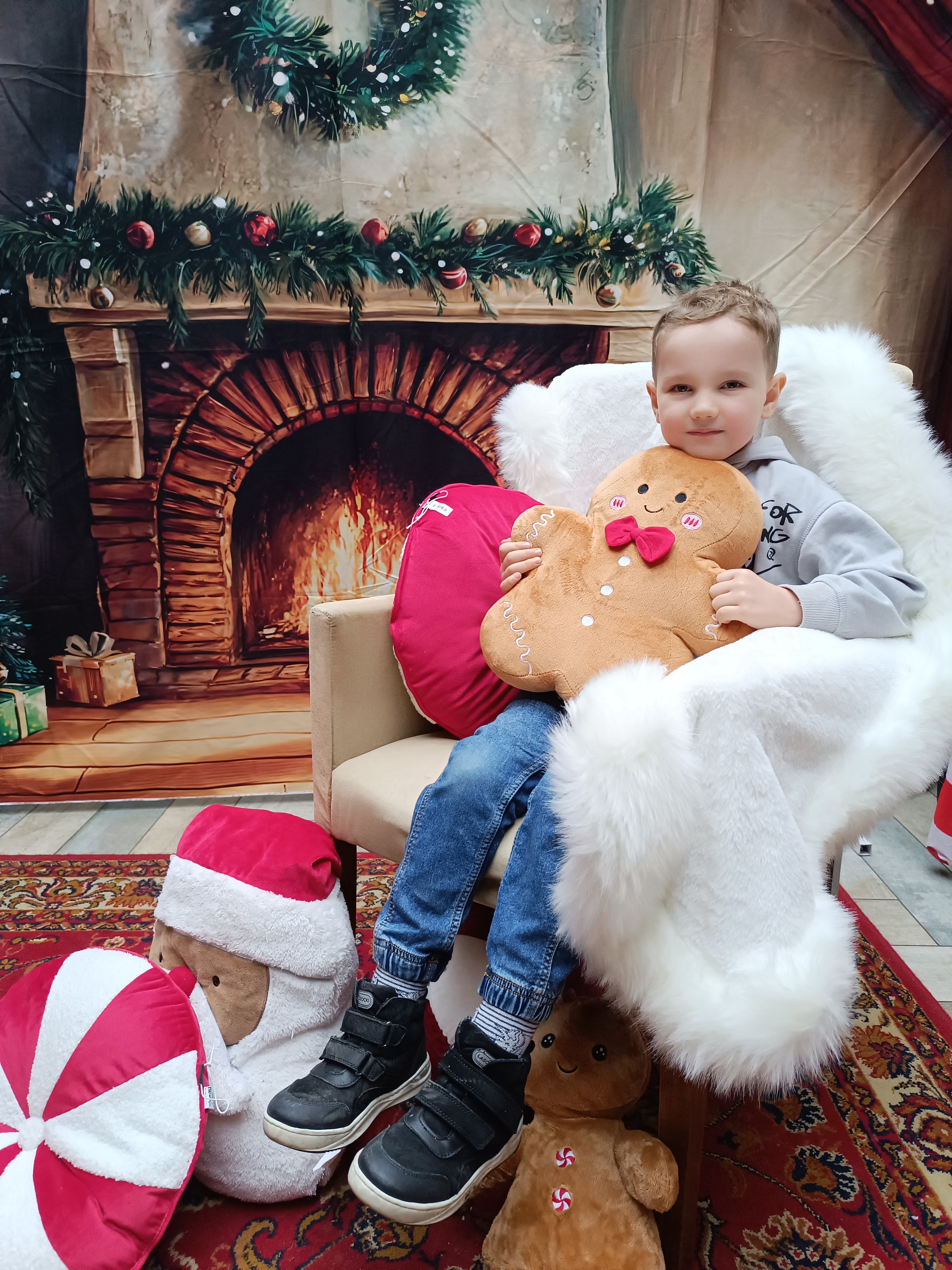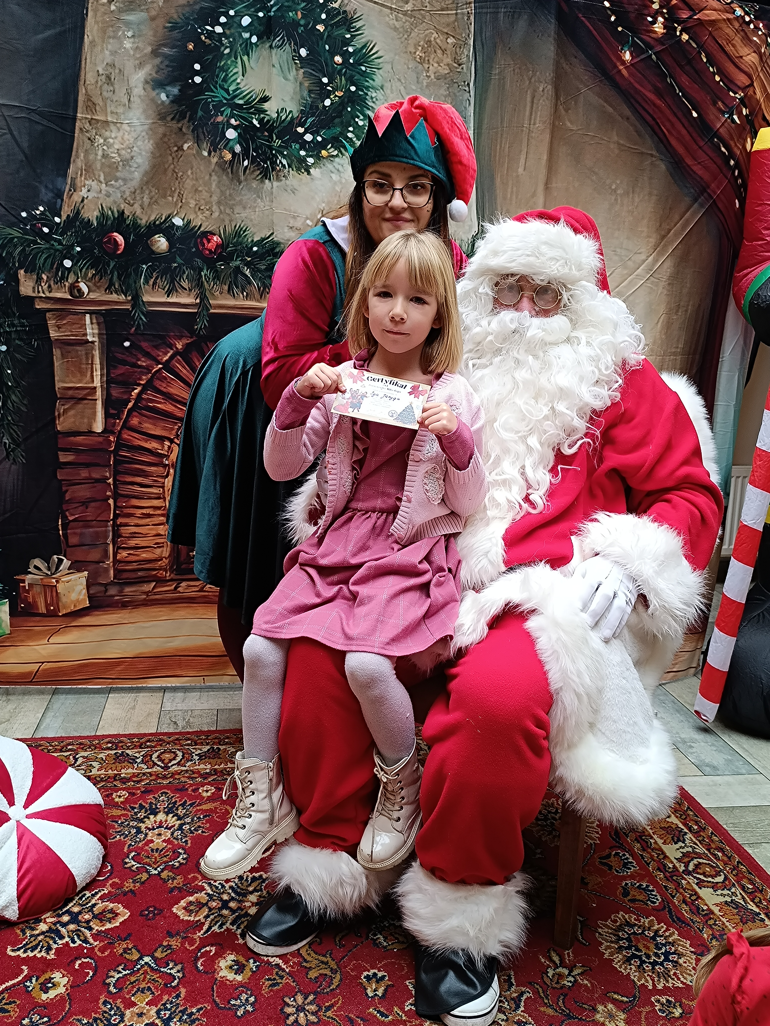 Następnie przedszkolaki przeszły do sali, gdzie panowała magiczna mikołajkowa atmosfera, tam dzieci uczestniczyły w zabawach ruchowo - muzycznych. Spotkały tam maskotkę Olafa. Głównym punktem wizyty w Fabryce Świątecznych Cudów , było spotkanie z Świętym Mikołajem, od którego każde dziecko otrzymało pamiątkowy certyfikt.