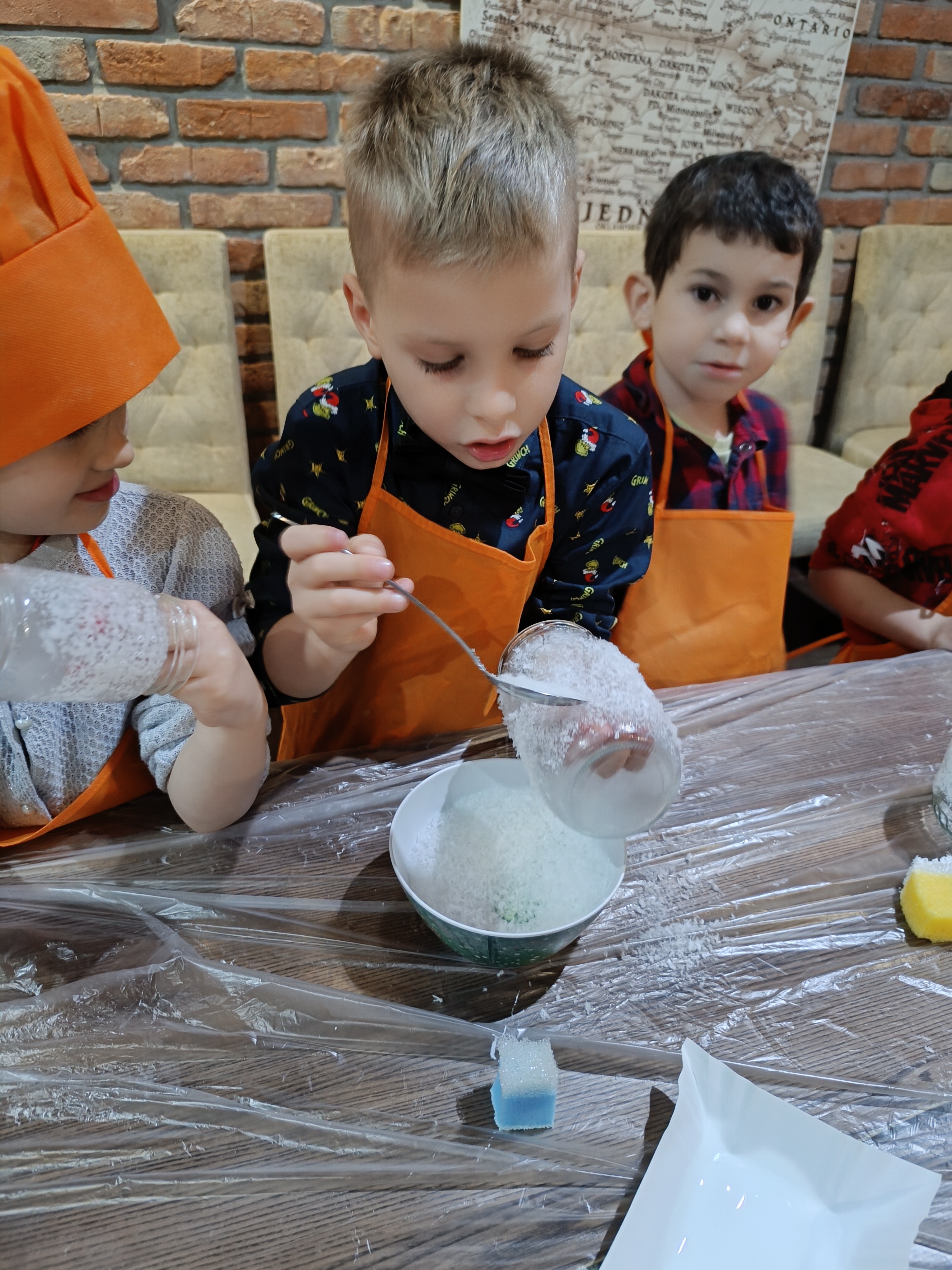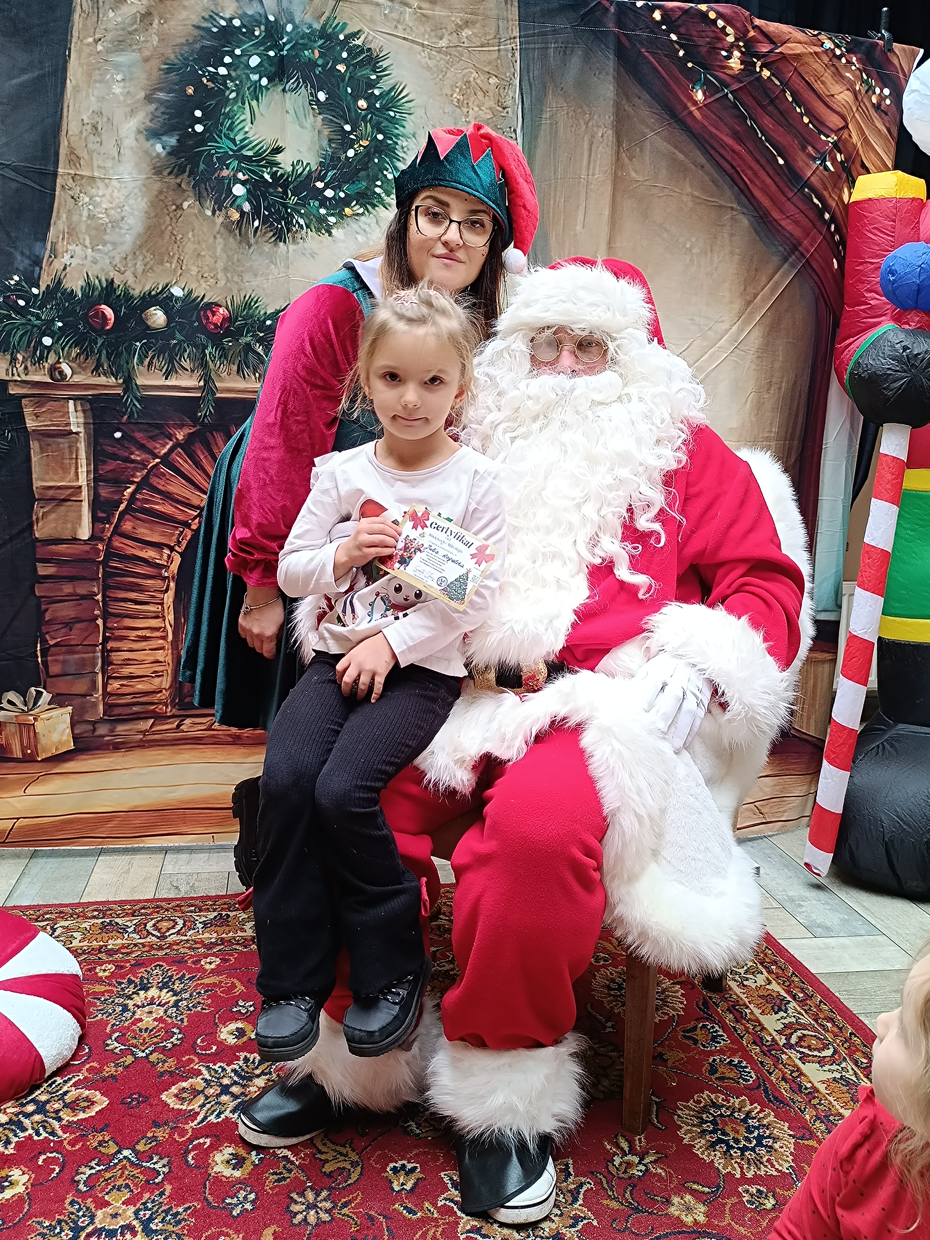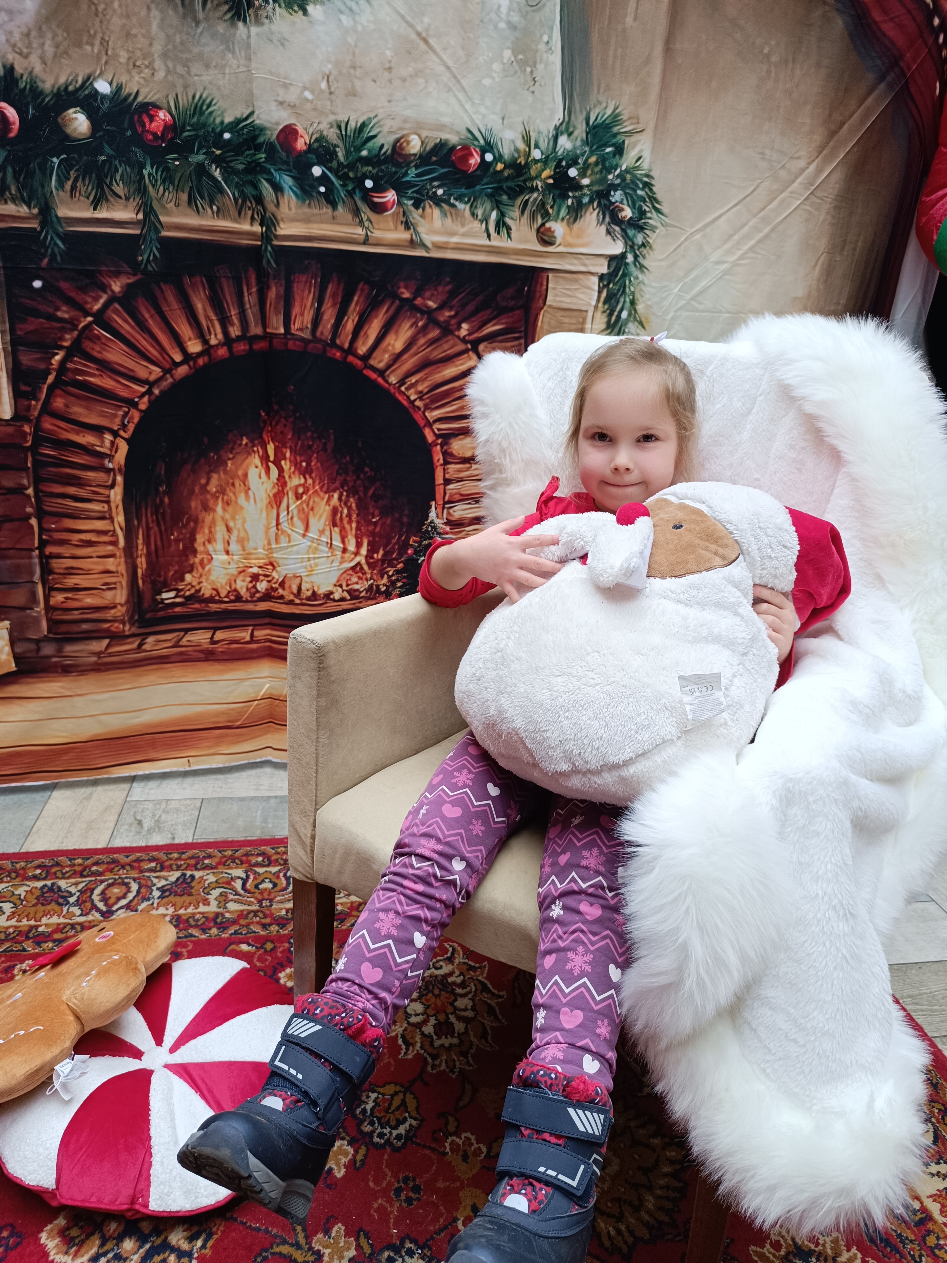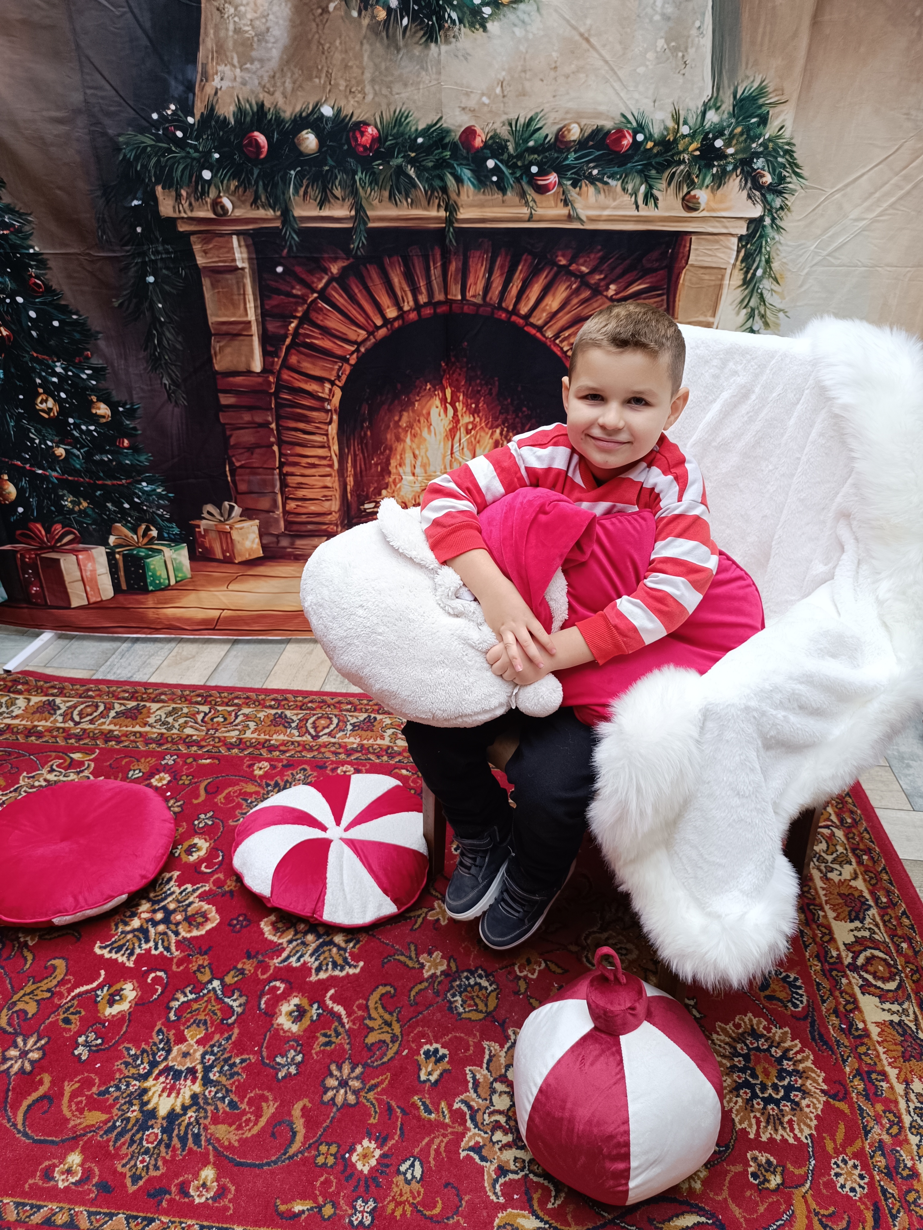 Następnie przedszkolaki przeszły do sali, gdzie panowała magiczna mikołajkowa atmosfera, tam dzieci uczestniczyły w zabawach ruchowo - muzycznych. Spotkały tam maskotkę Olafa. Głównym punktem wizyty w Fabryce Świątecznych Cudów , było spotkanie z Świętym Mikołajem, od którego każde dziecko otrzymało pamiątkowy certyfikt.