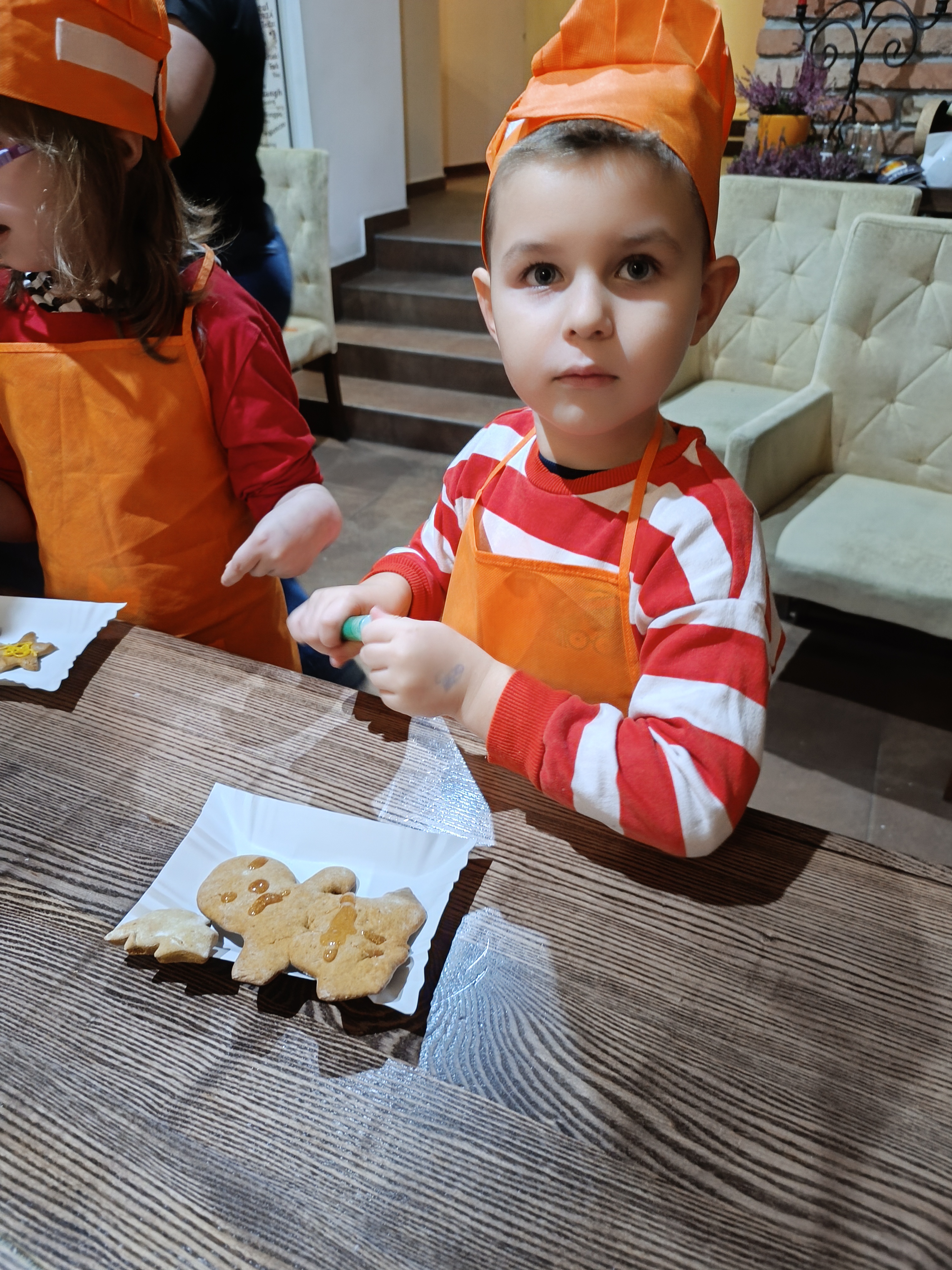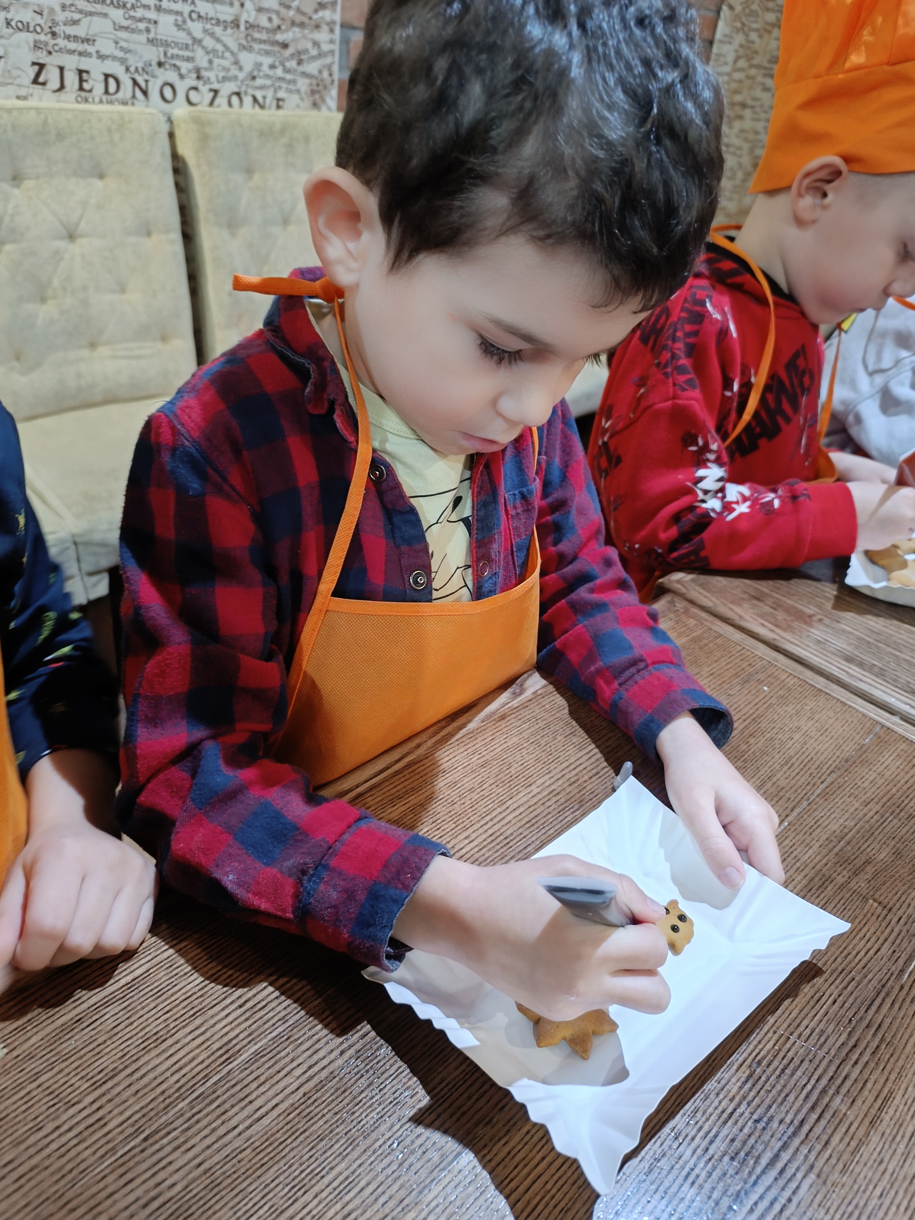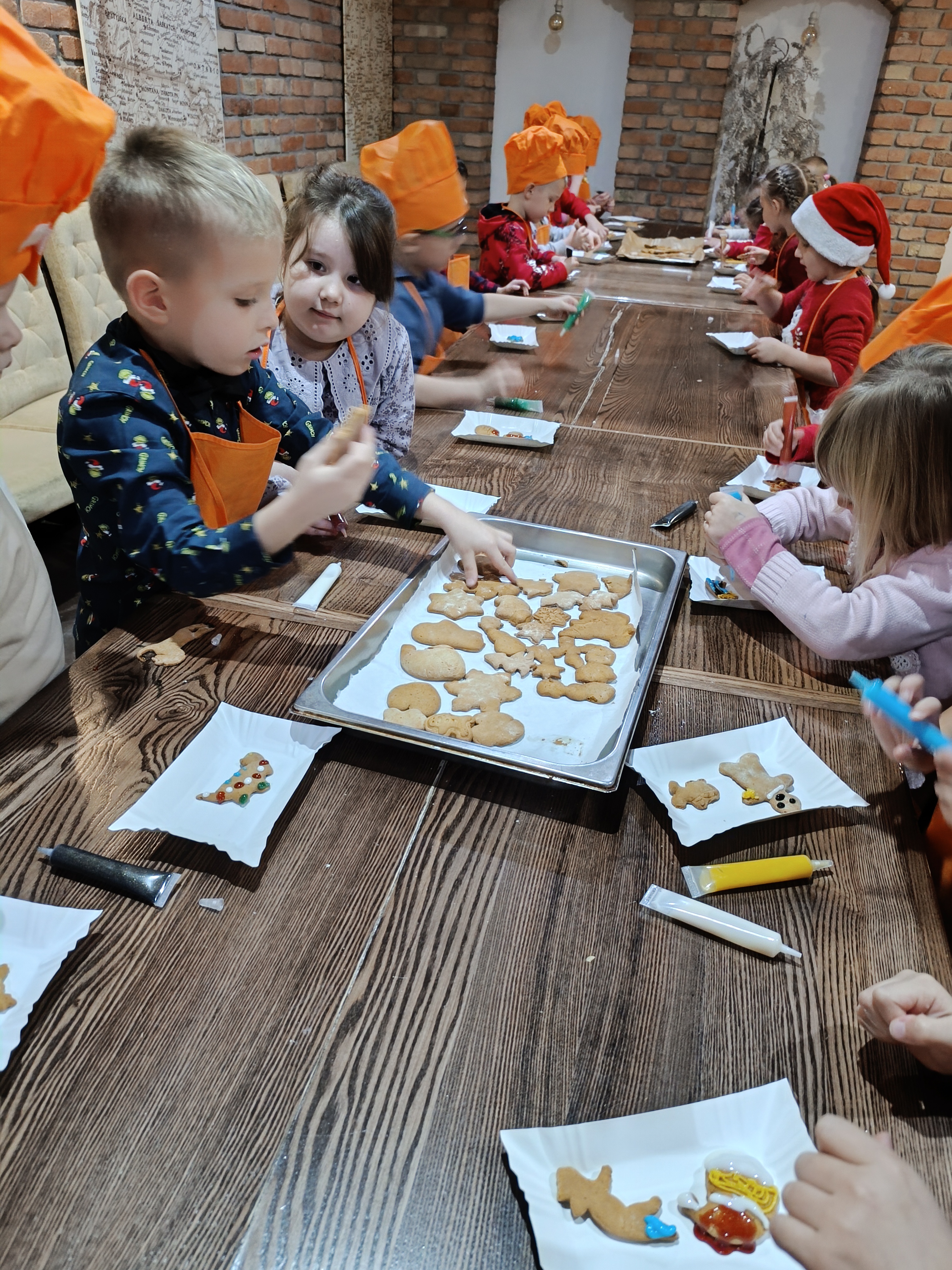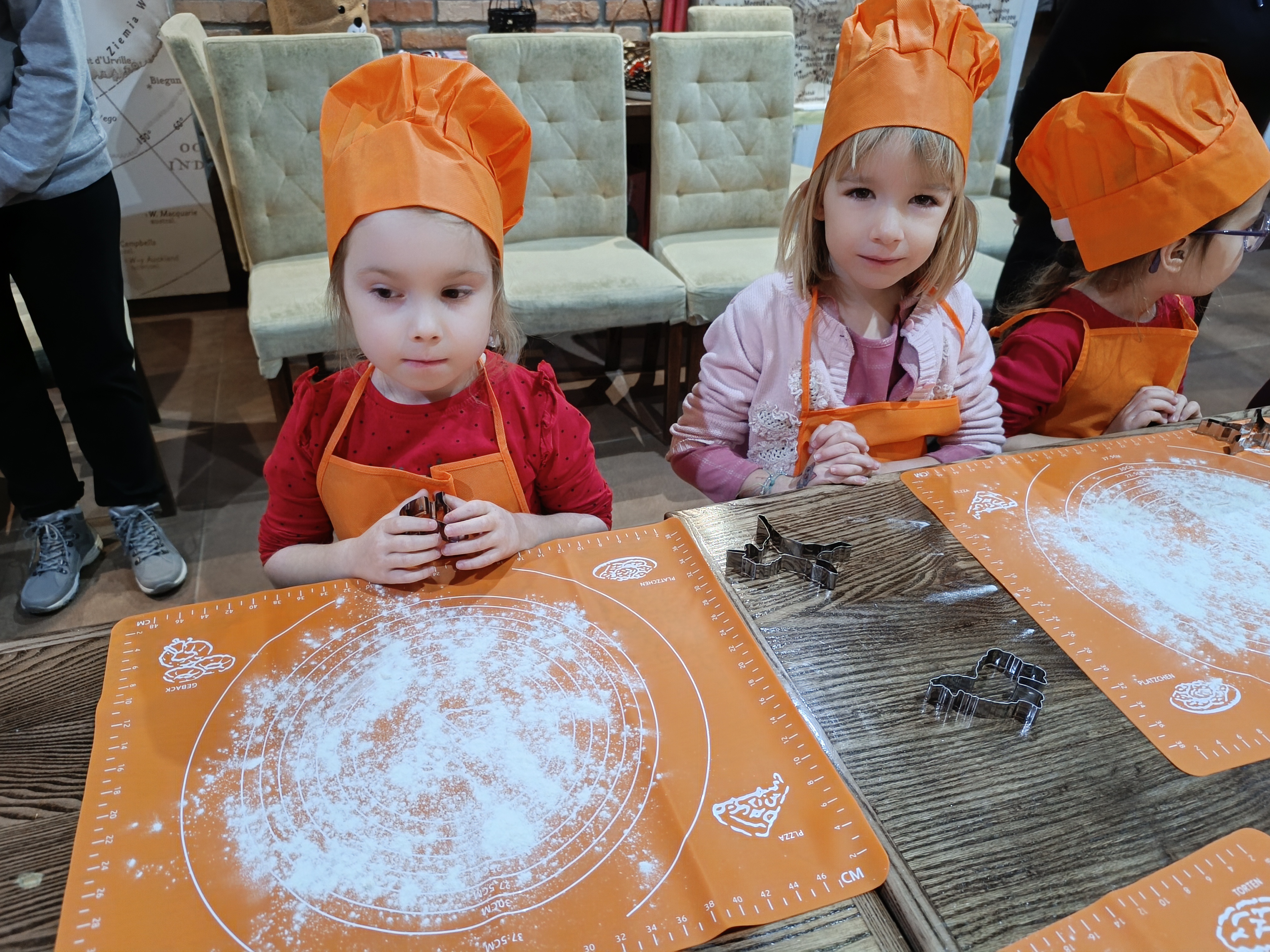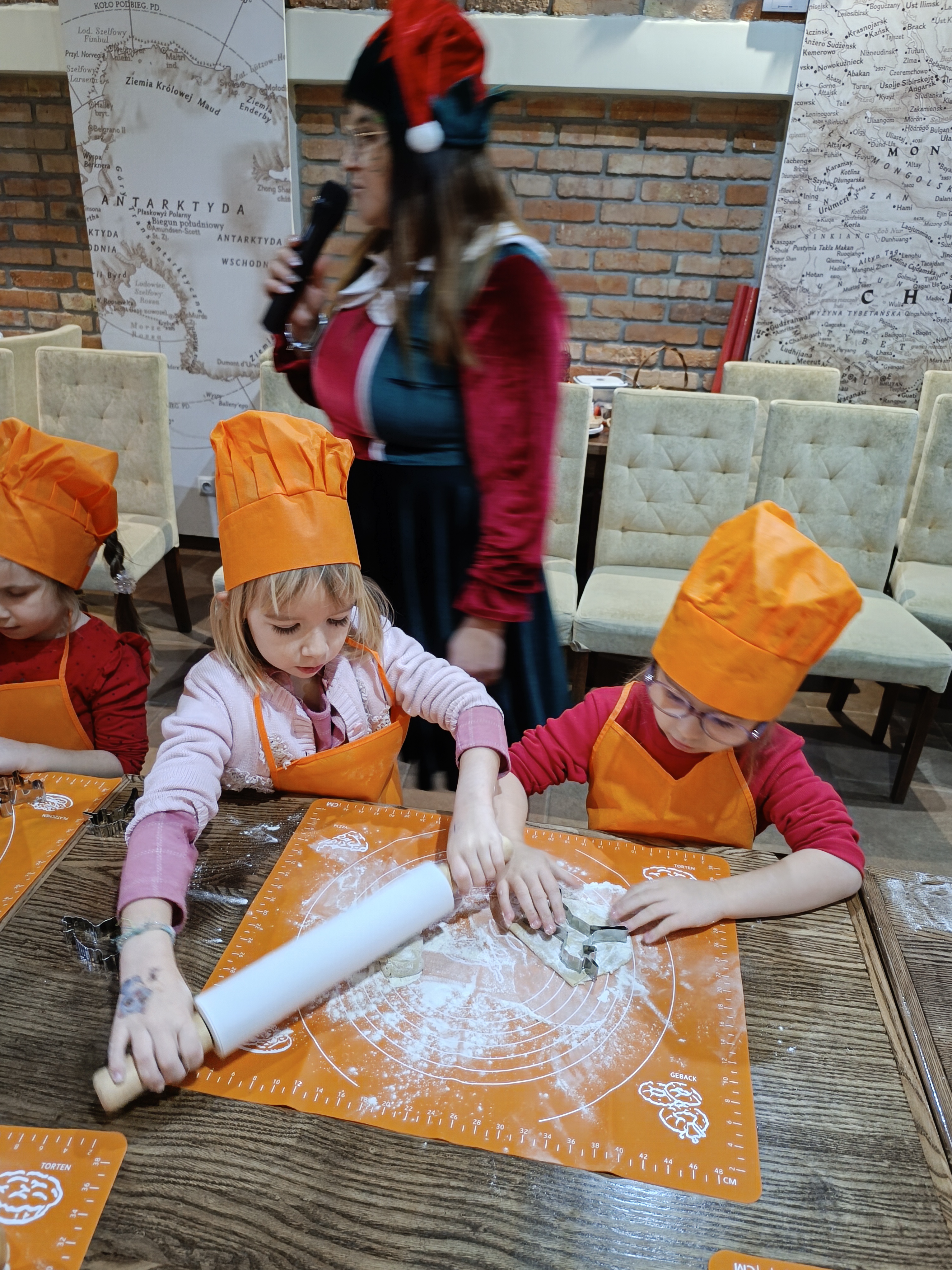 Samodzielnie piekły pierniczki, dostały ciasto, wałkowały je, wykrajały różne kształty świąteczne, a następnie zostały upieczone i ozdobione przez dzieci według własnych pomysłów.