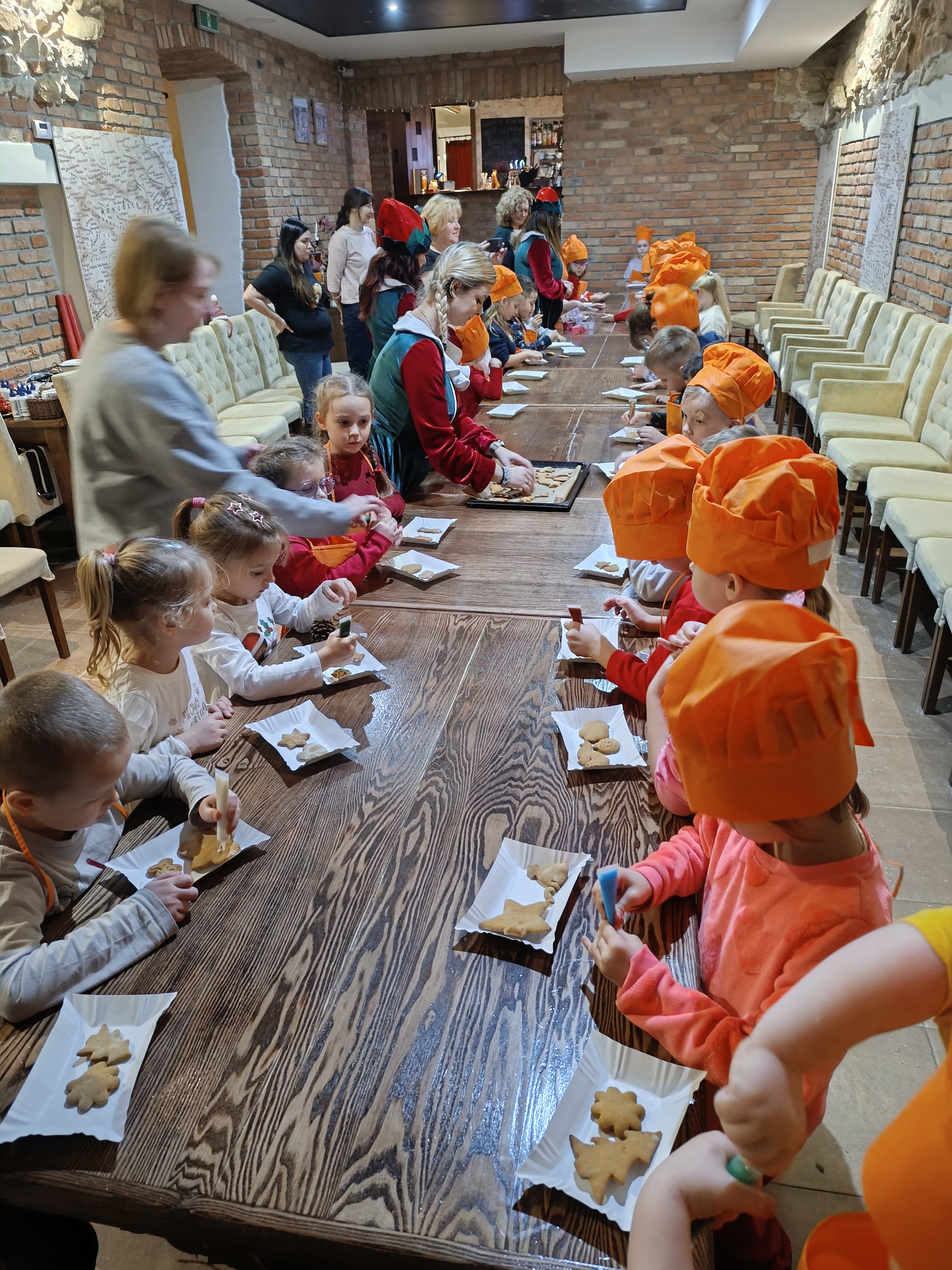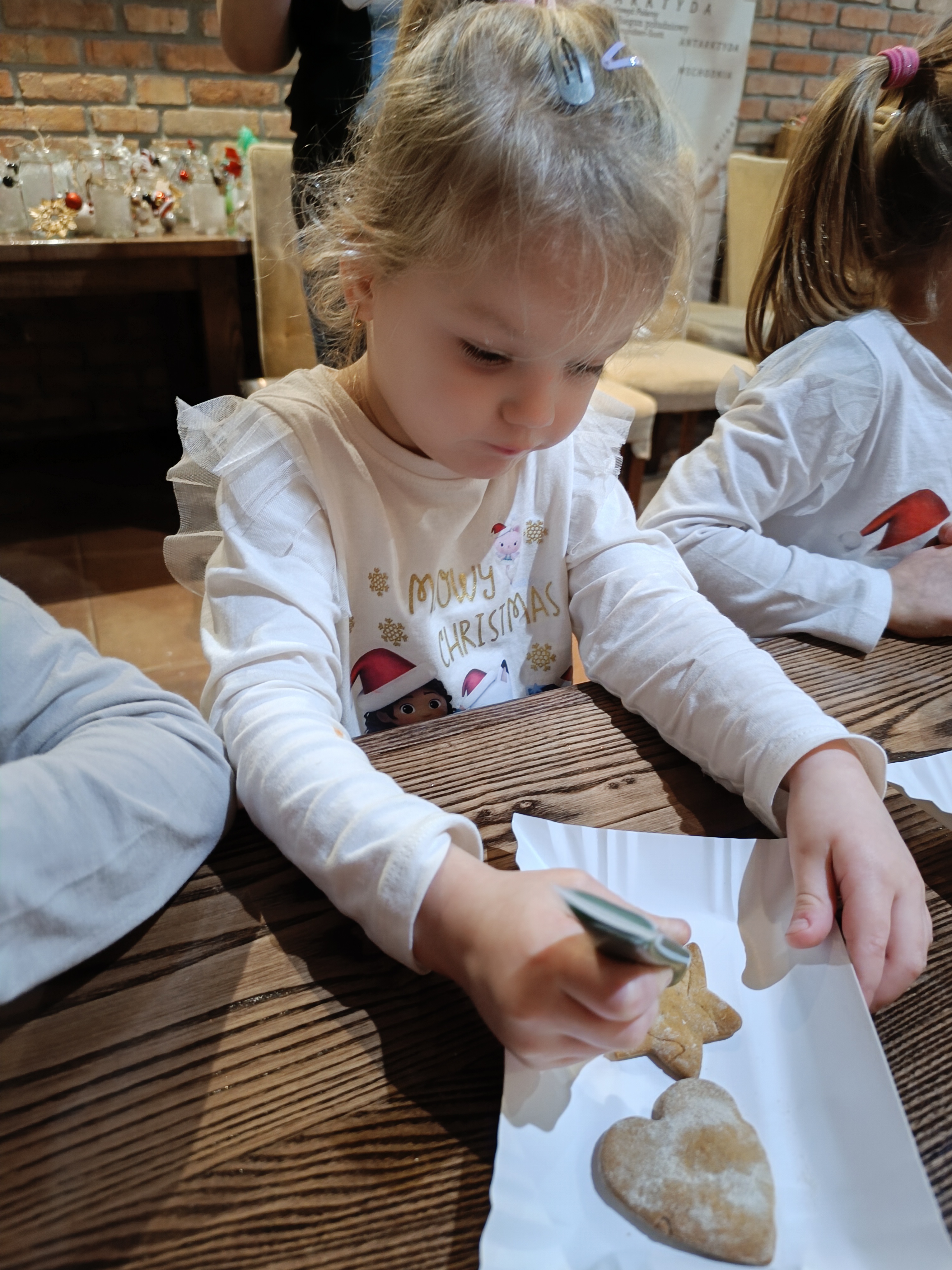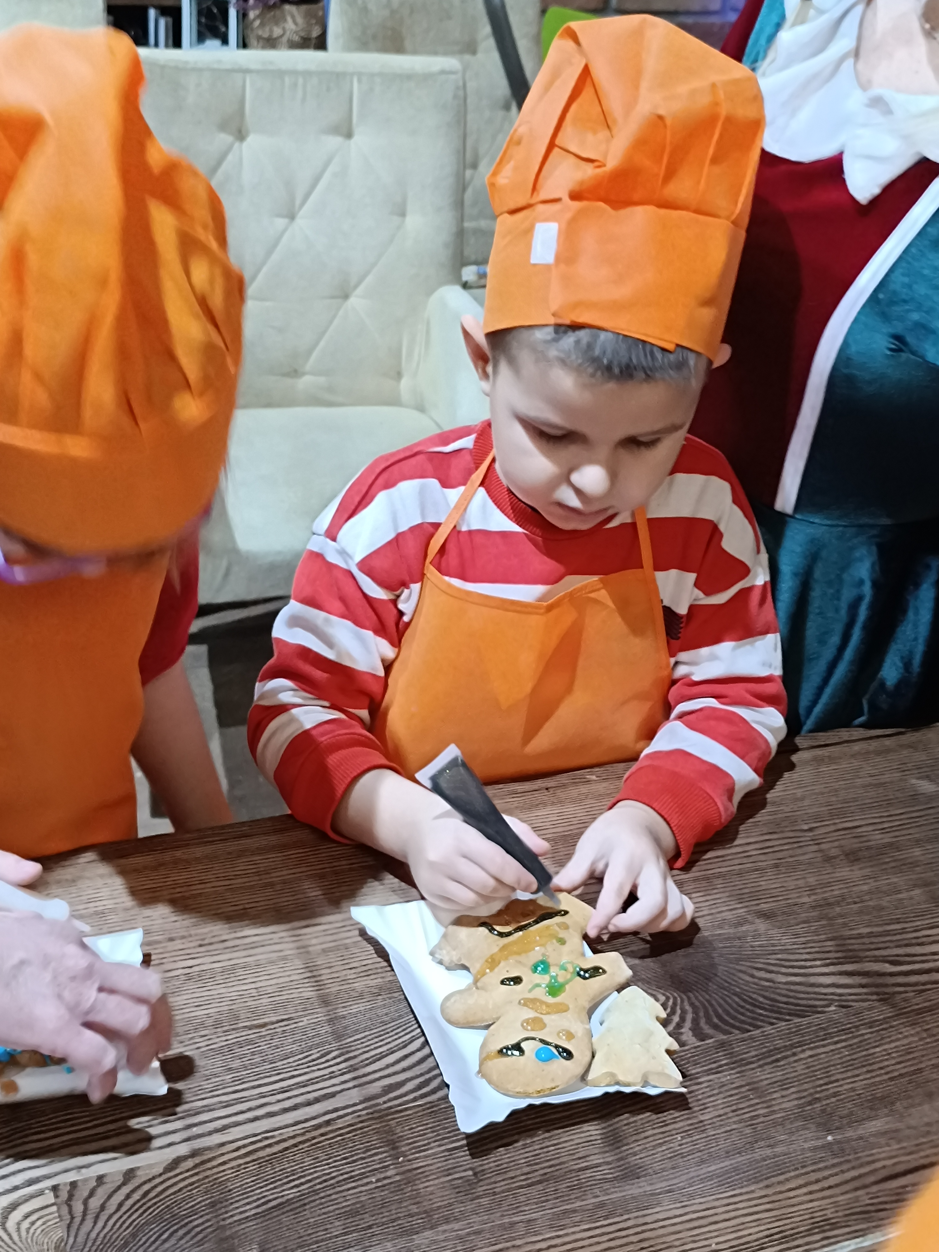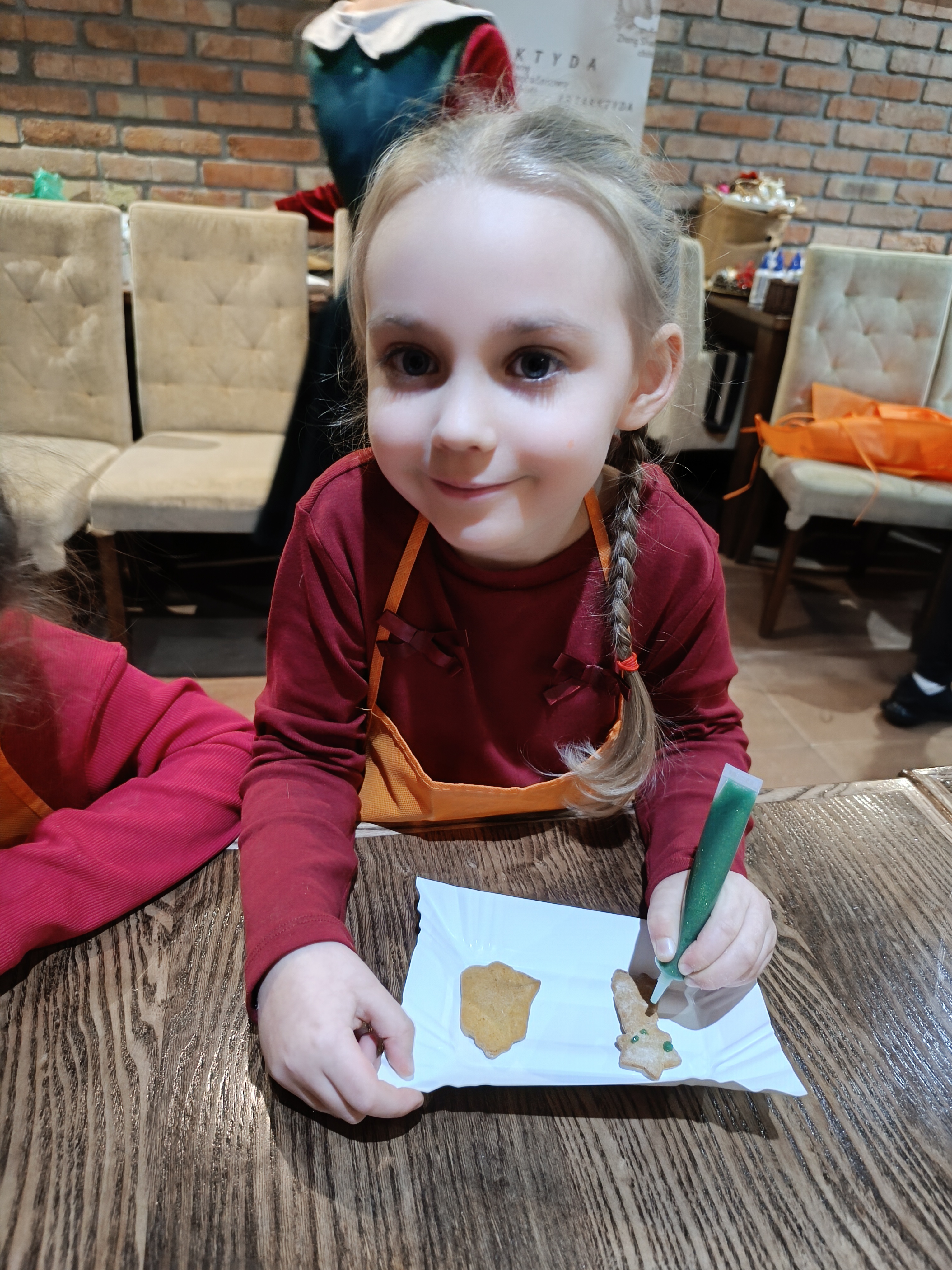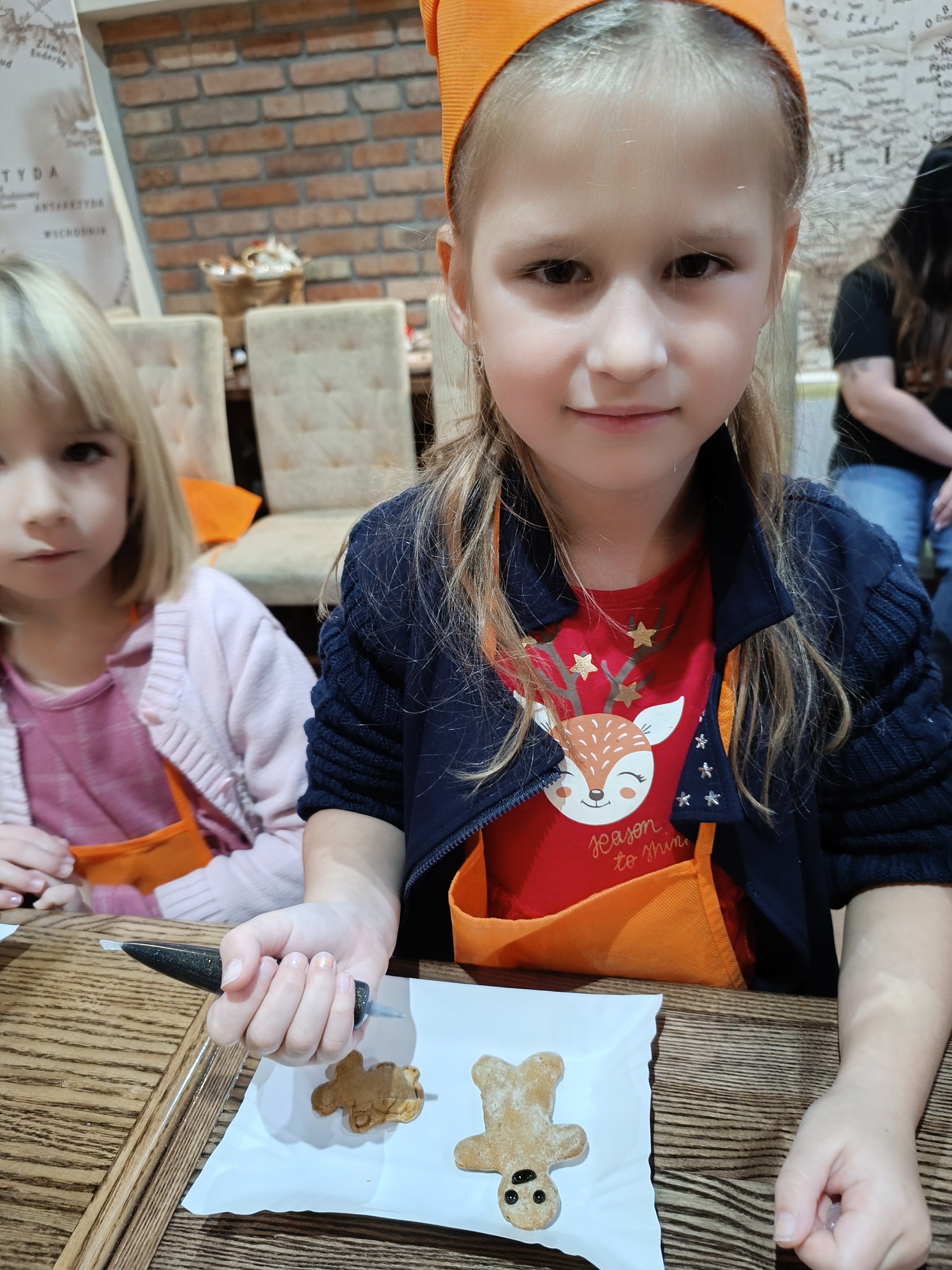 Samodzielnie piekły pierniczki, dostały ciasto, wałkowały je, wykrajały różne kształty świąteczne, a następnie zostały upieczone i ozdobione przez dzieci według własnych pomysłów.