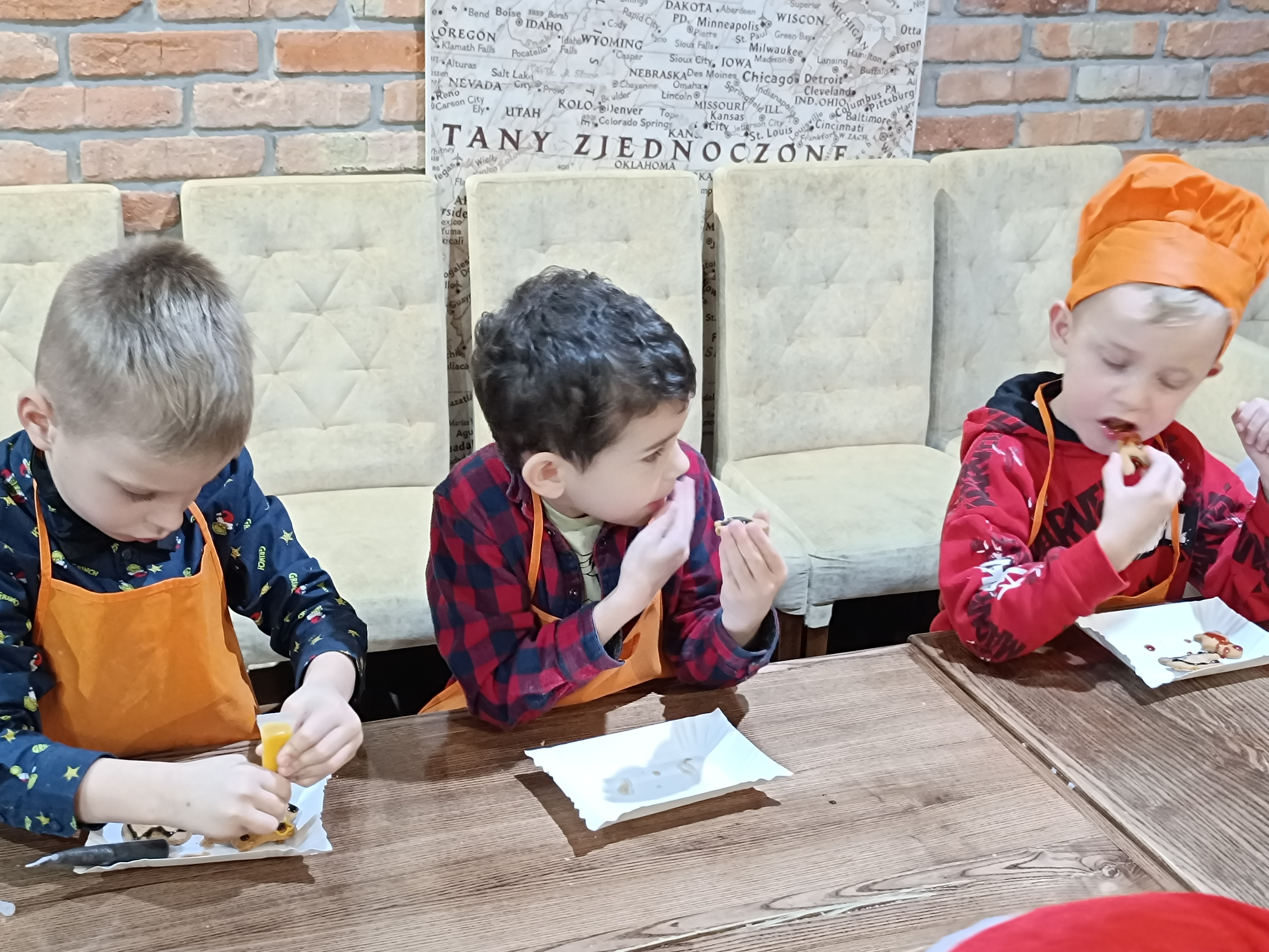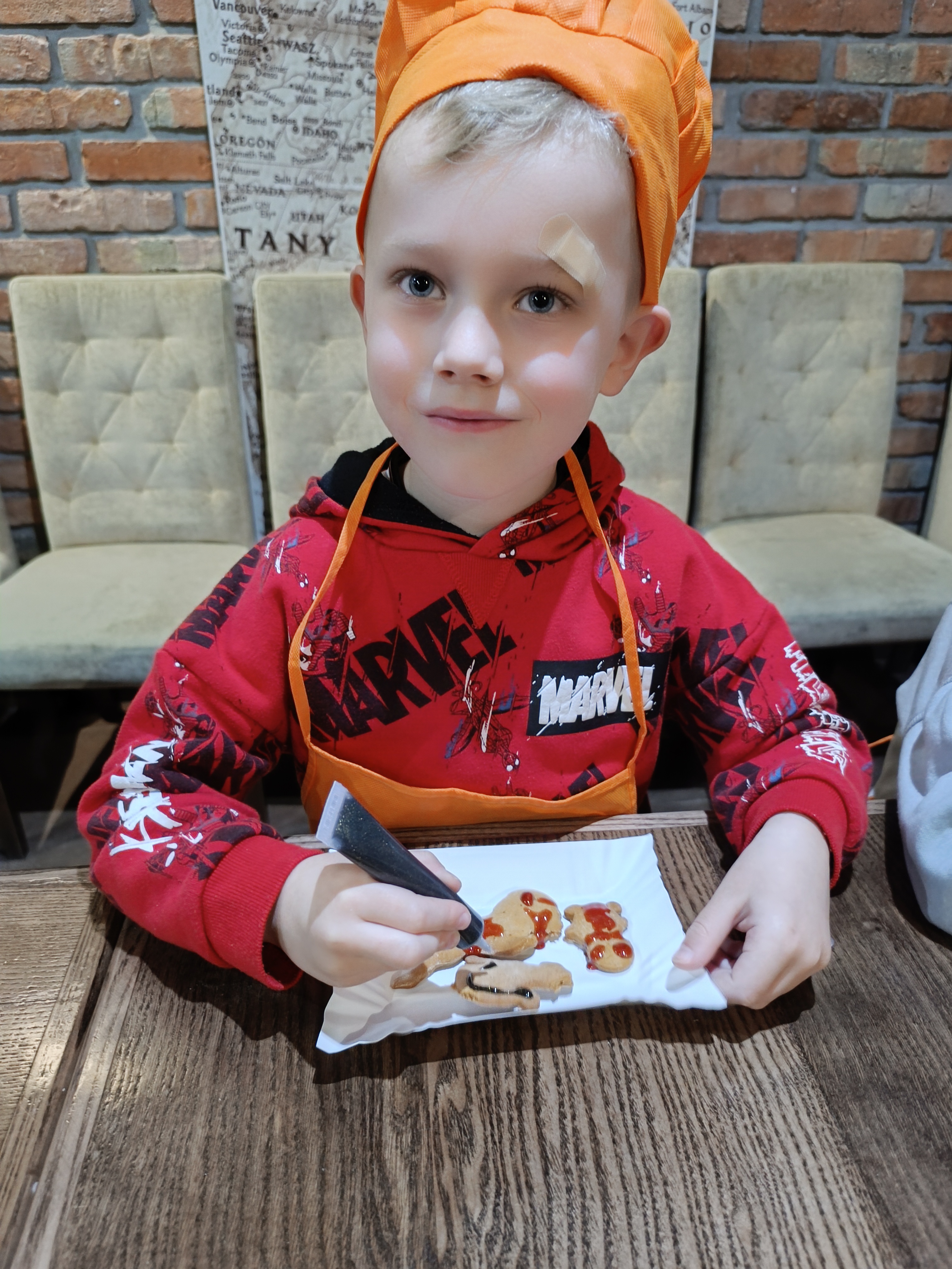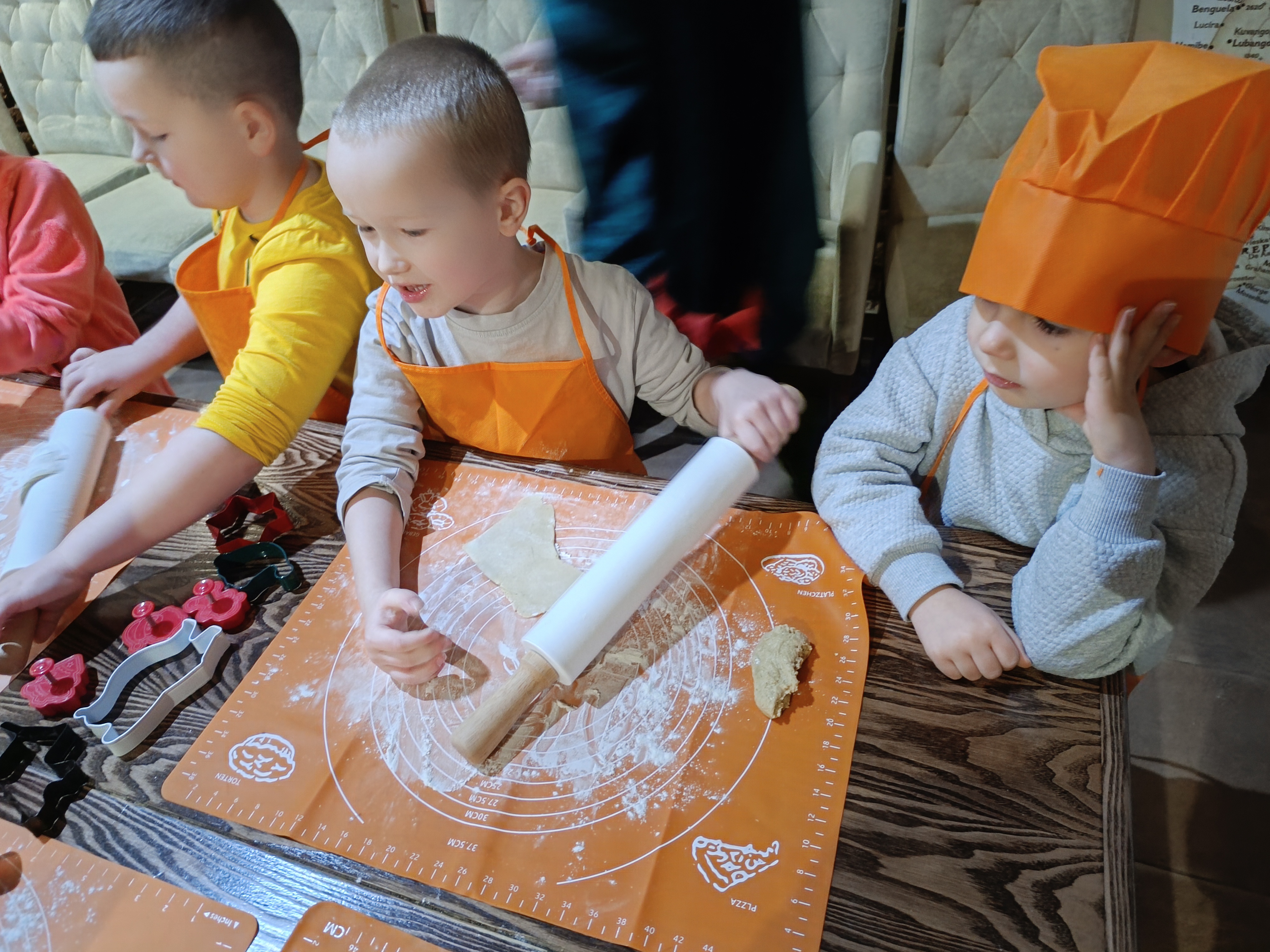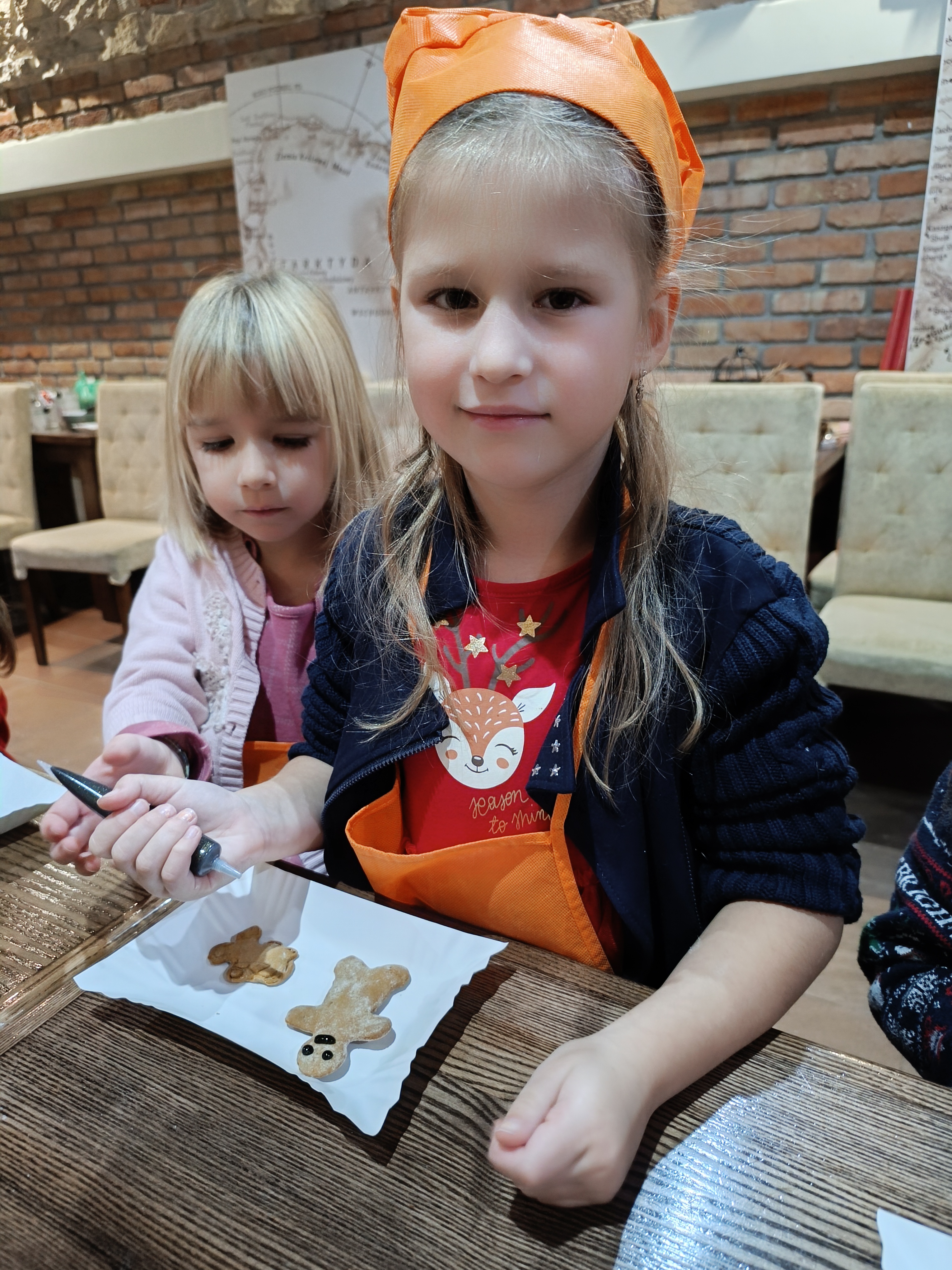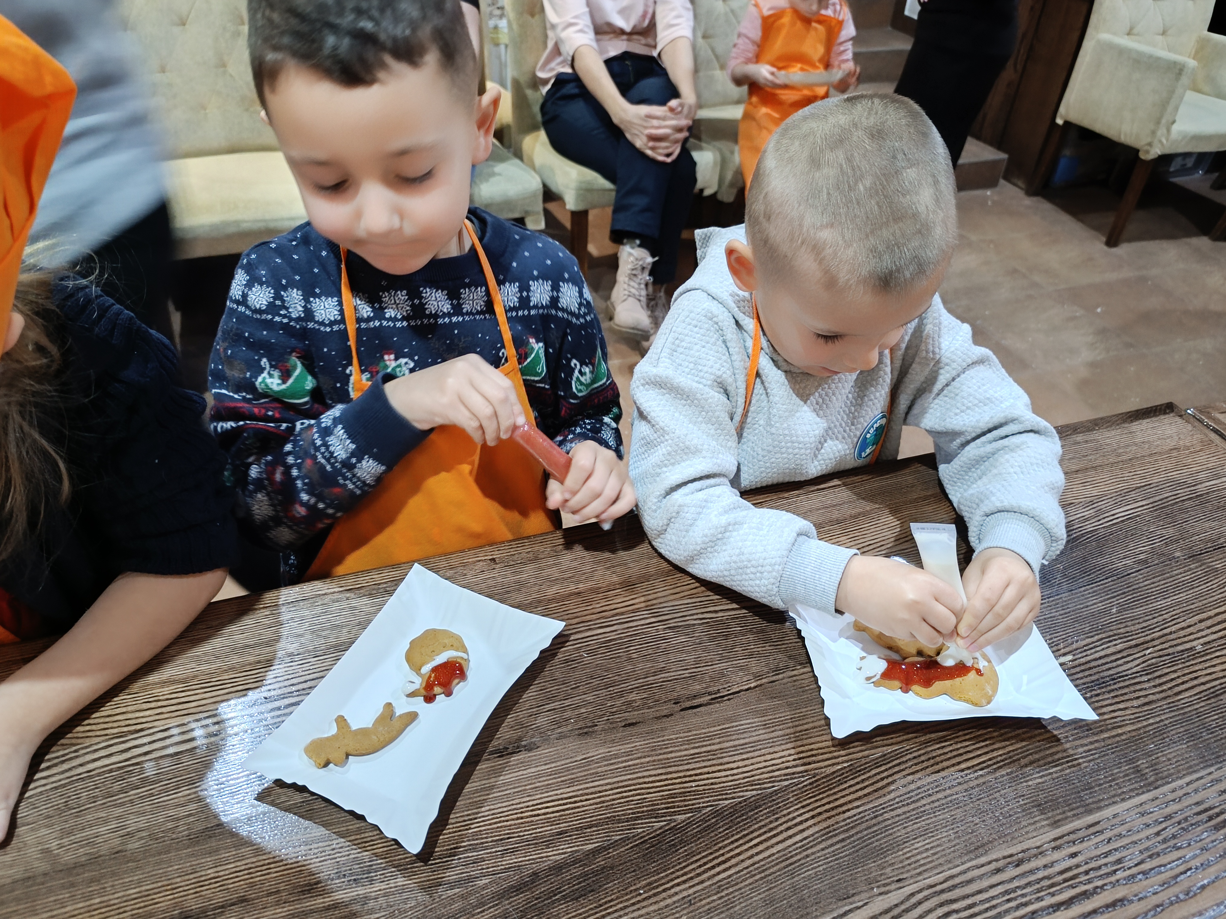 Samodzielnie piekły pierniczki, dostały ciasto, wałkowały je, wykrajały różne kształty świąteczne, a następnie zostały upieczone i ozdobione przez dzieci według własnych pomysłów.