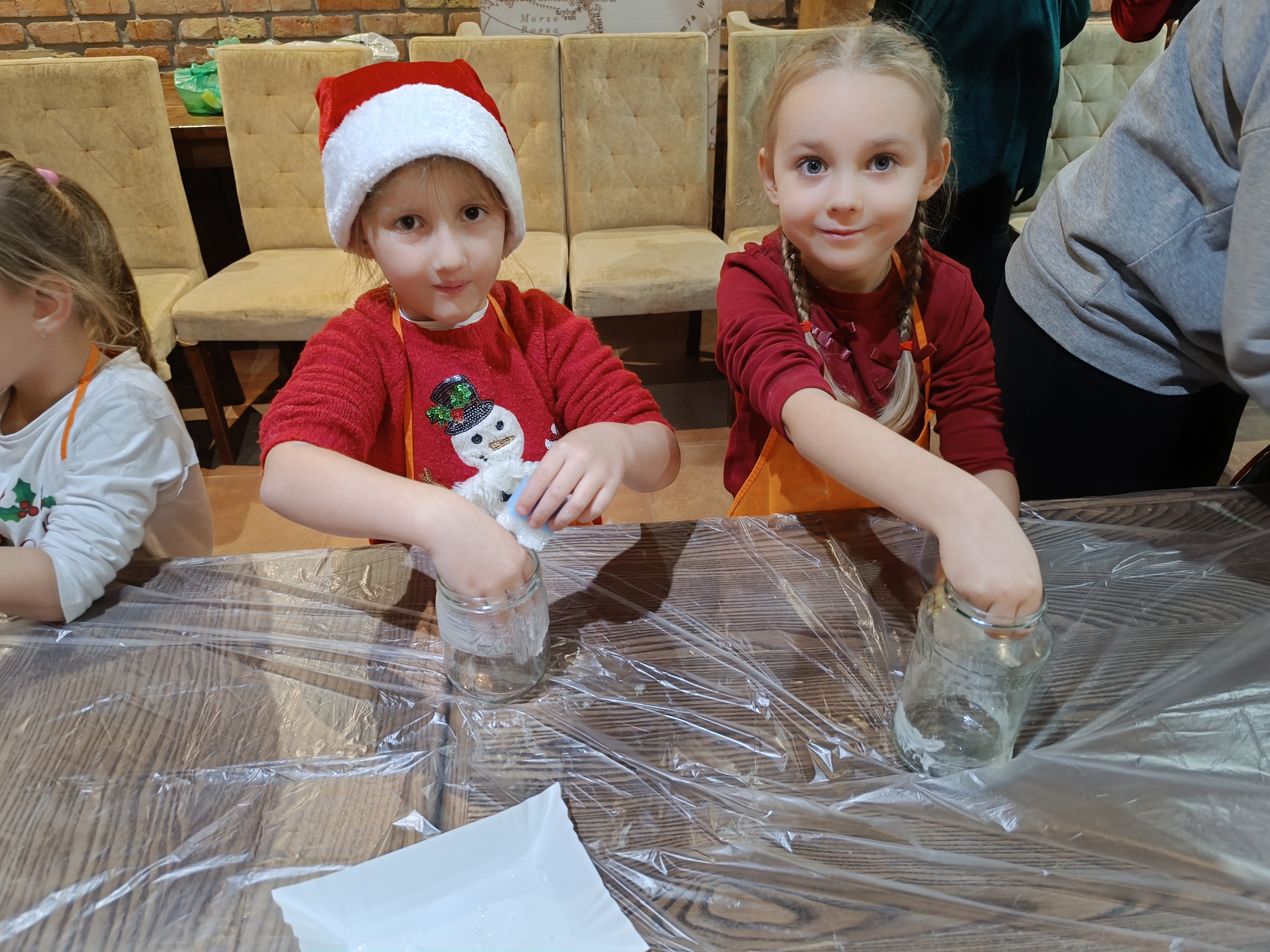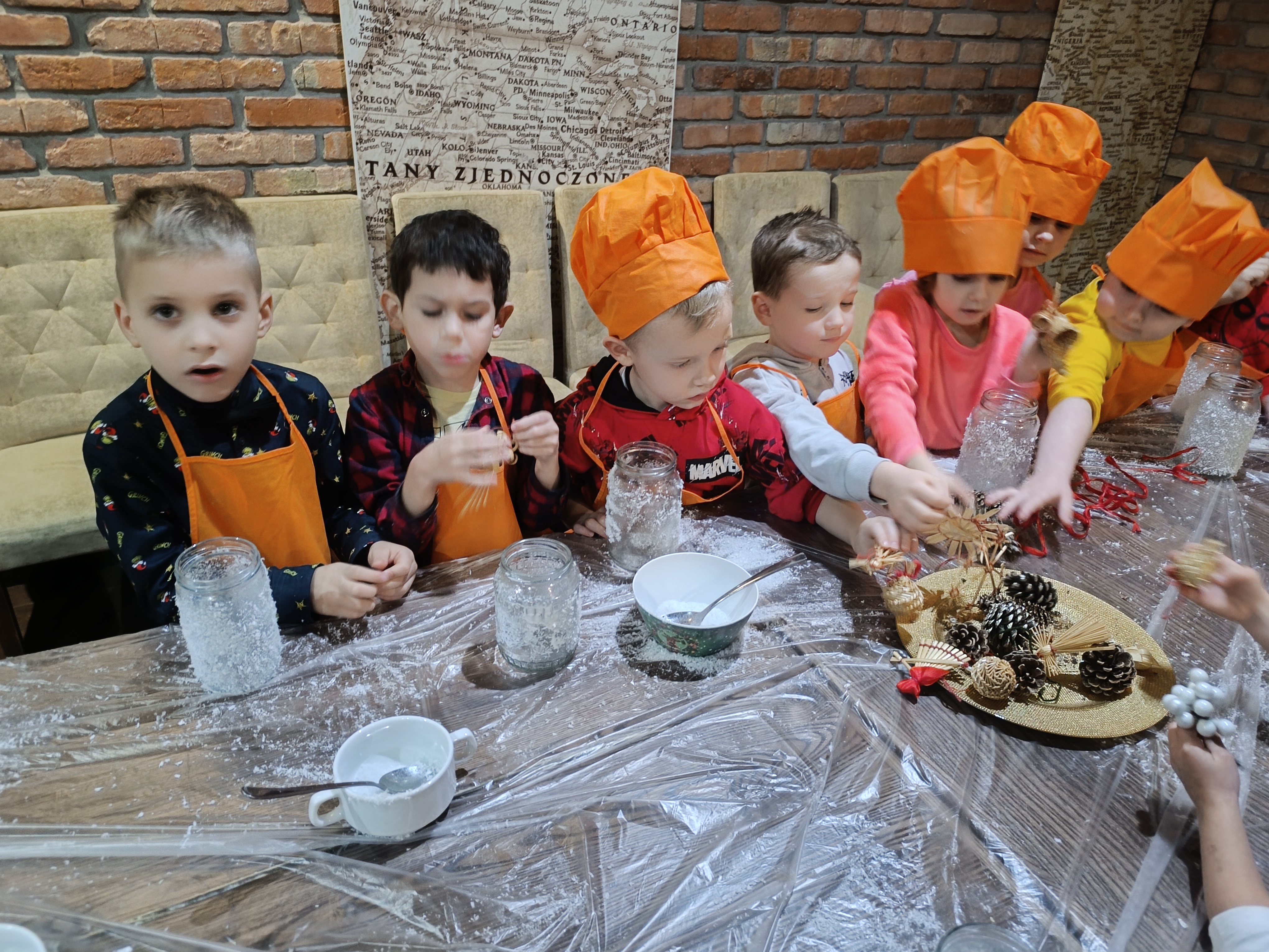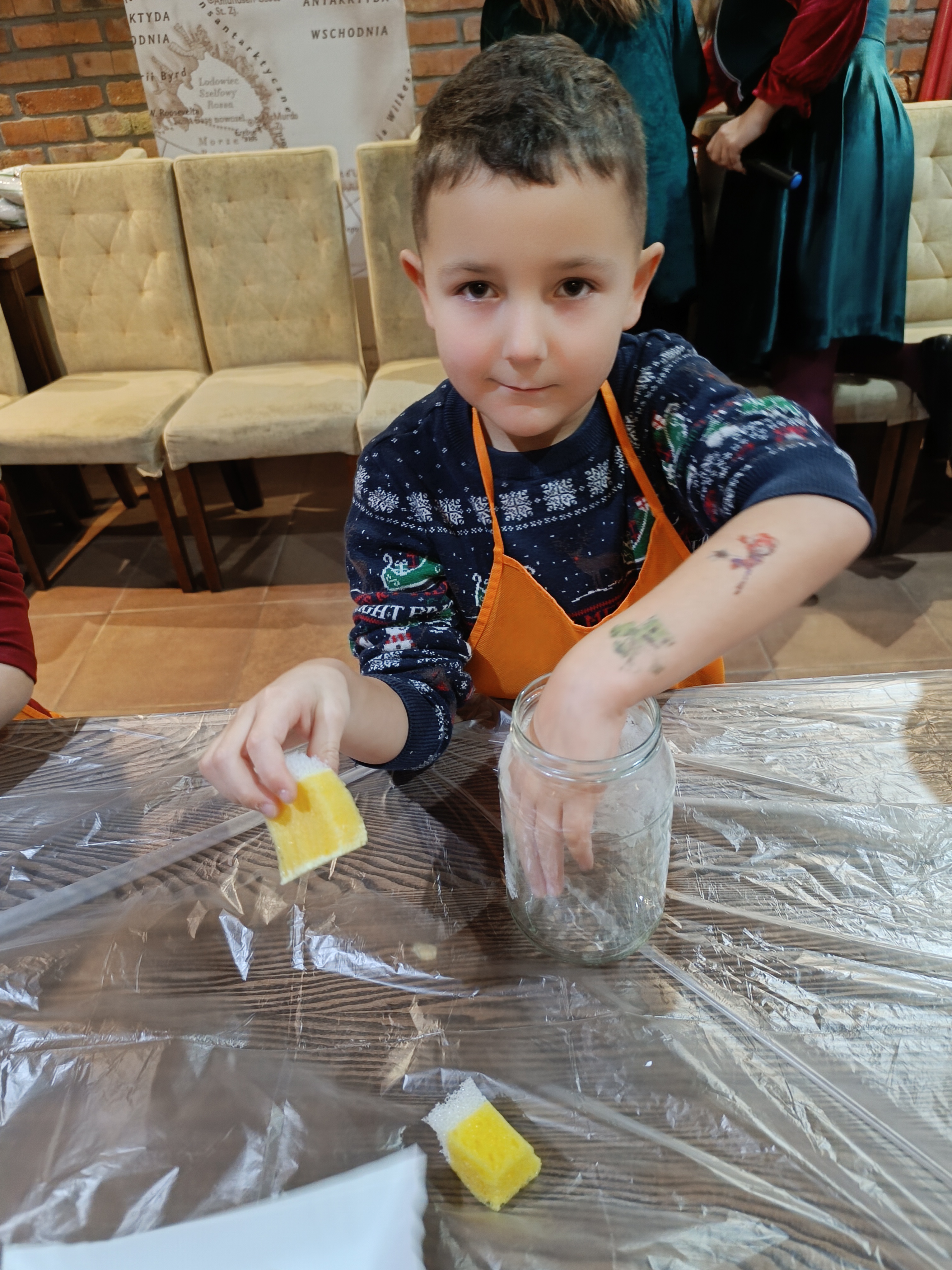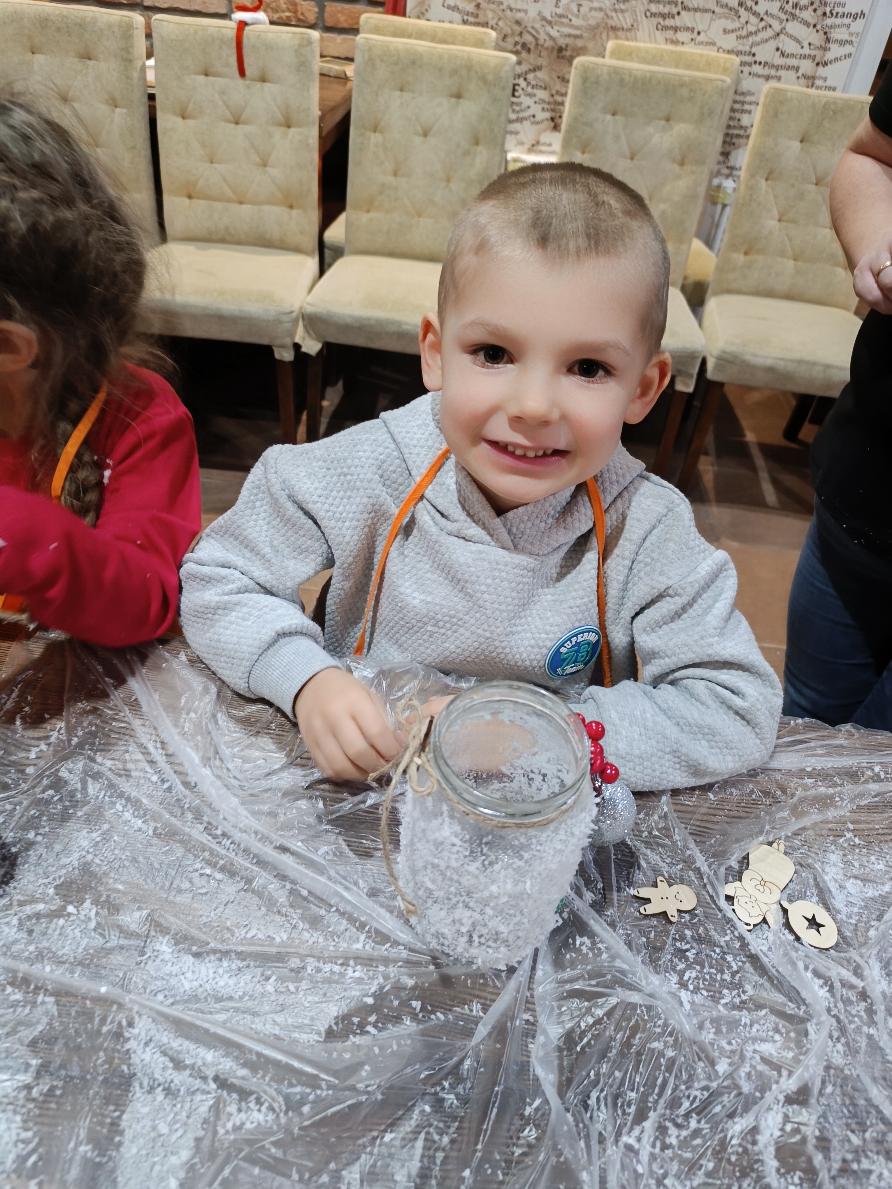 Tego dnia nie zabrakło również wykonania pięknych lampionów świątecznych – obsypywali je śniegiem sztucznym, przywiązywali różnorodne ozdoby.