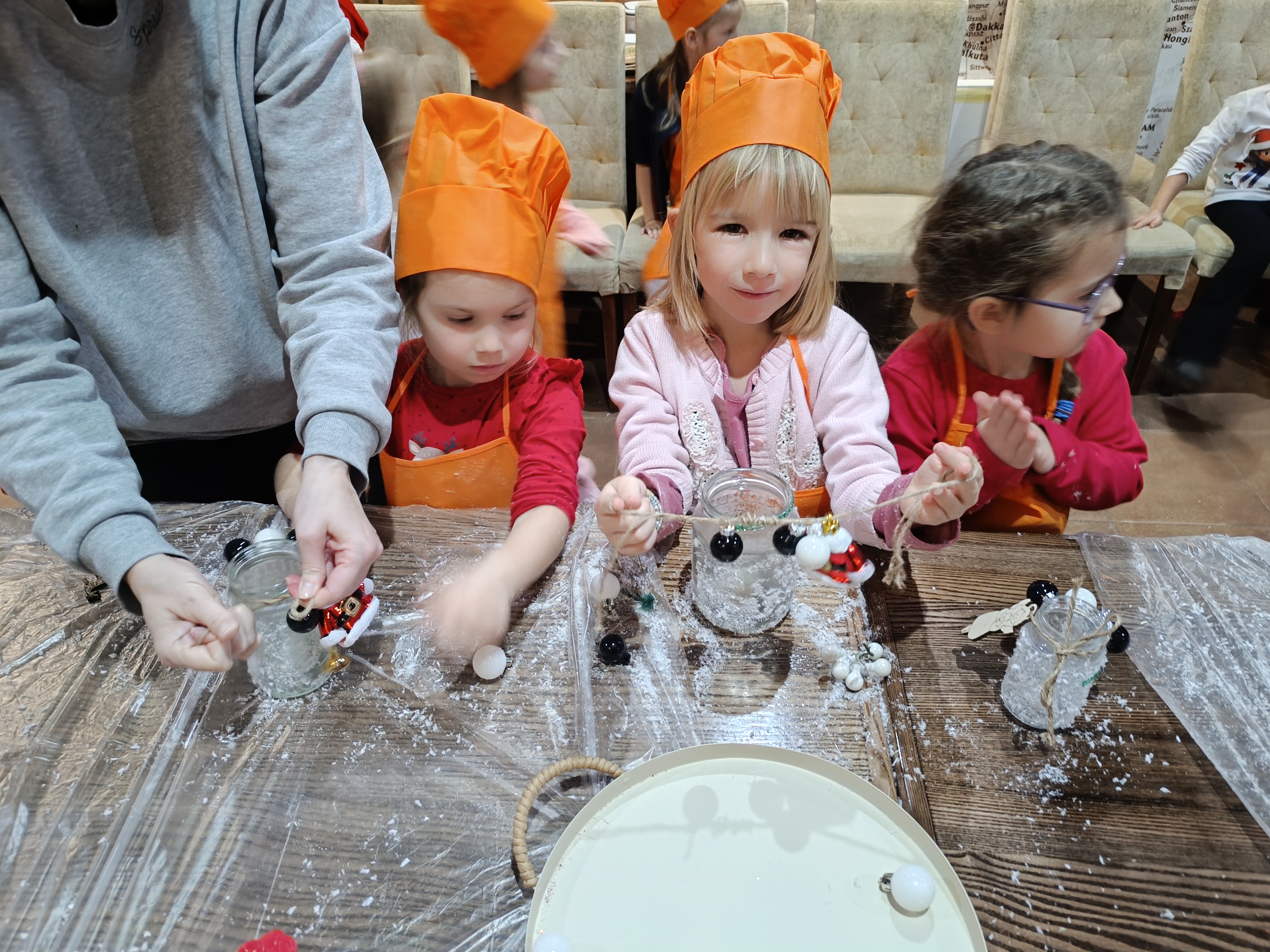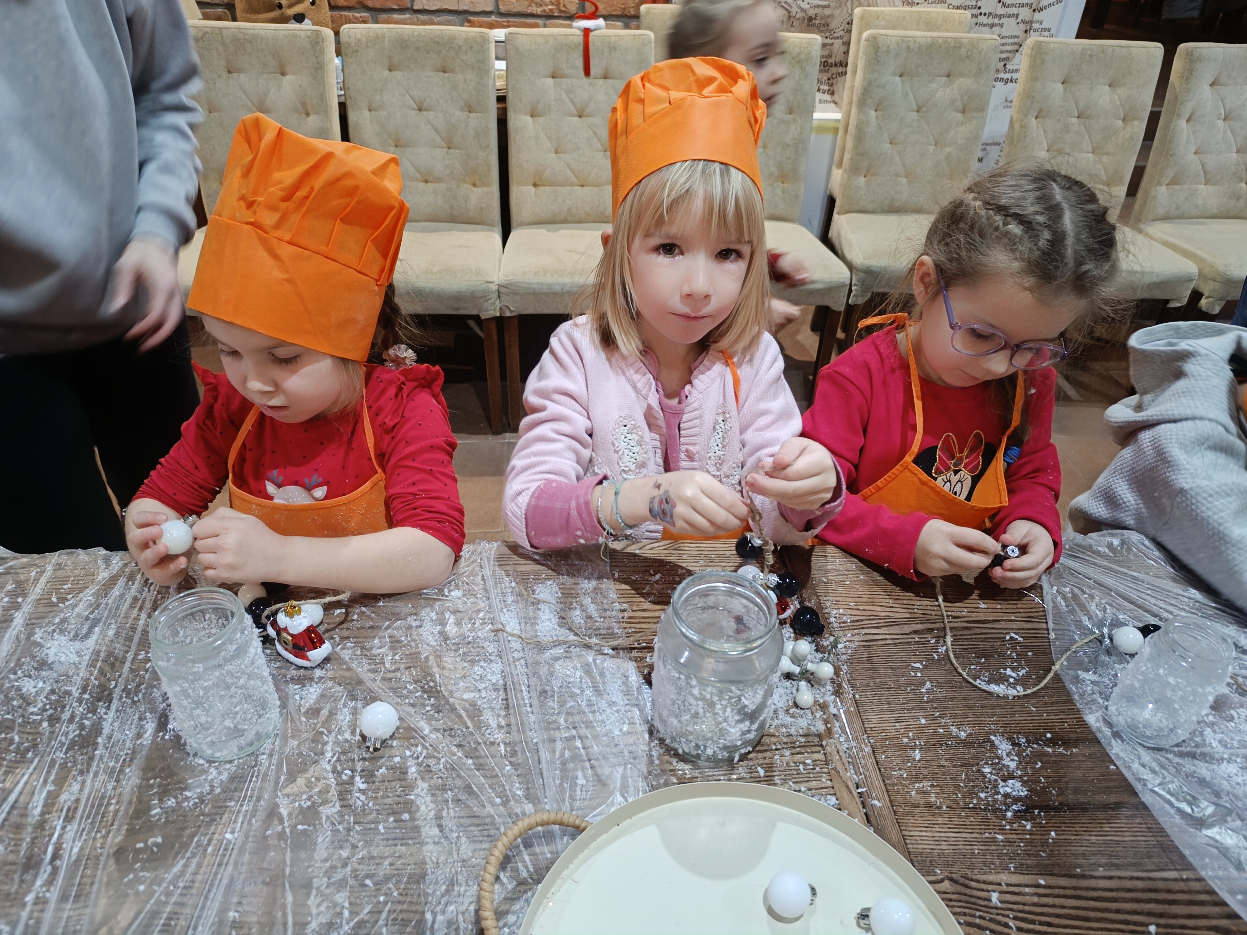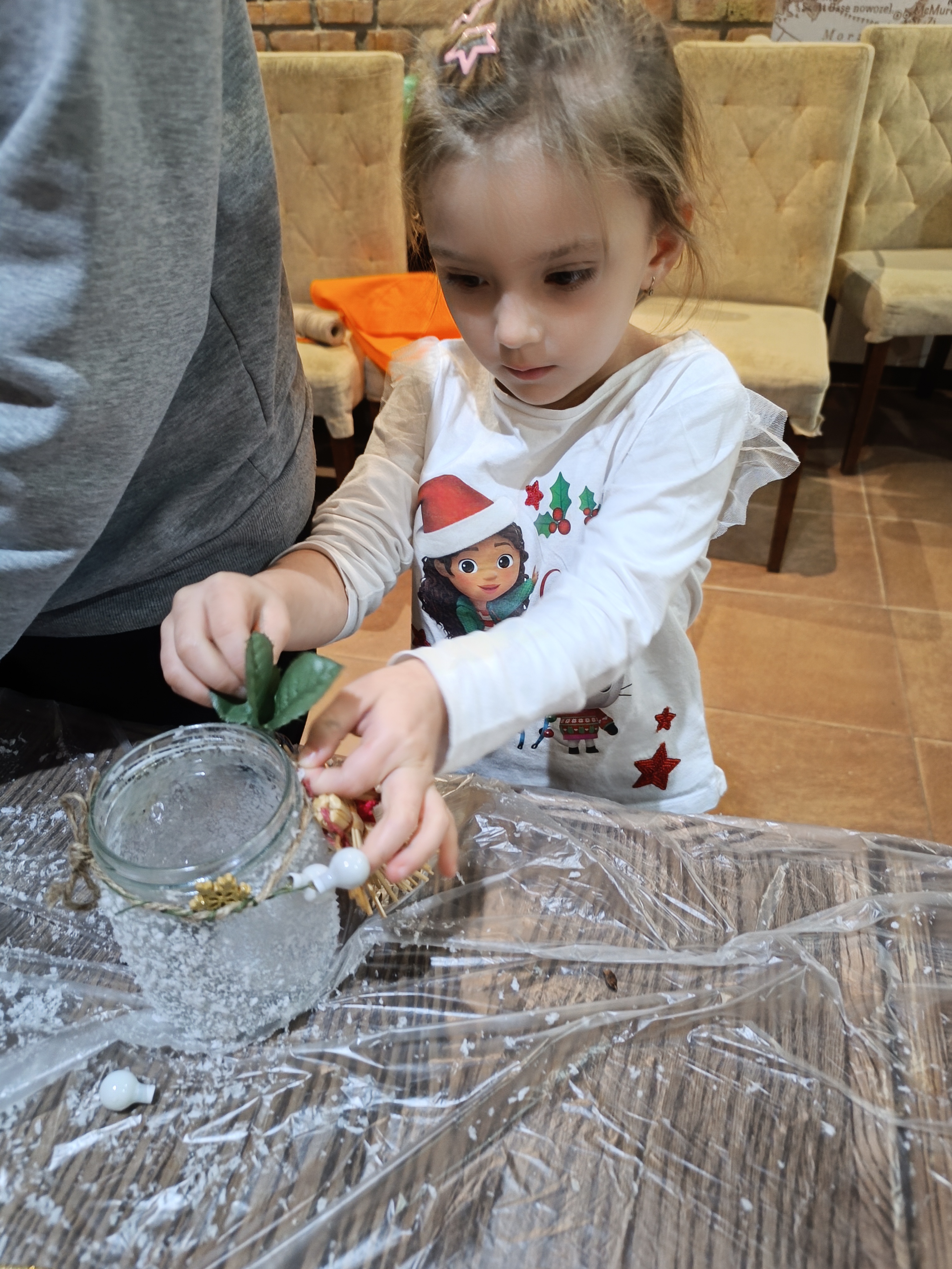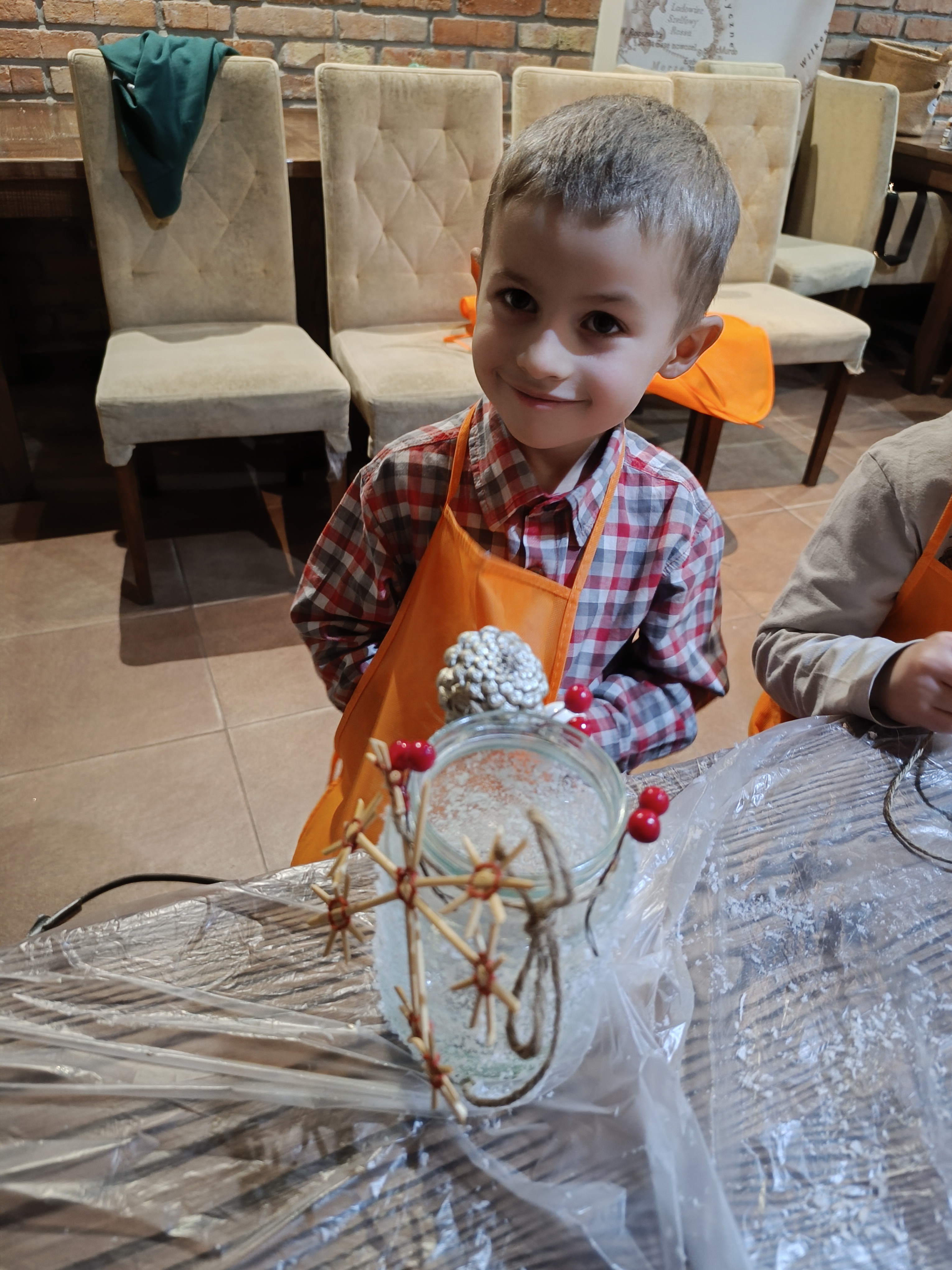 Tego dnia nie zabrakło również wykonania pięknych lampionów świątecznych – obsypywali je śniegiem sztucznym, przywiązywali różnorodne ozdoby.