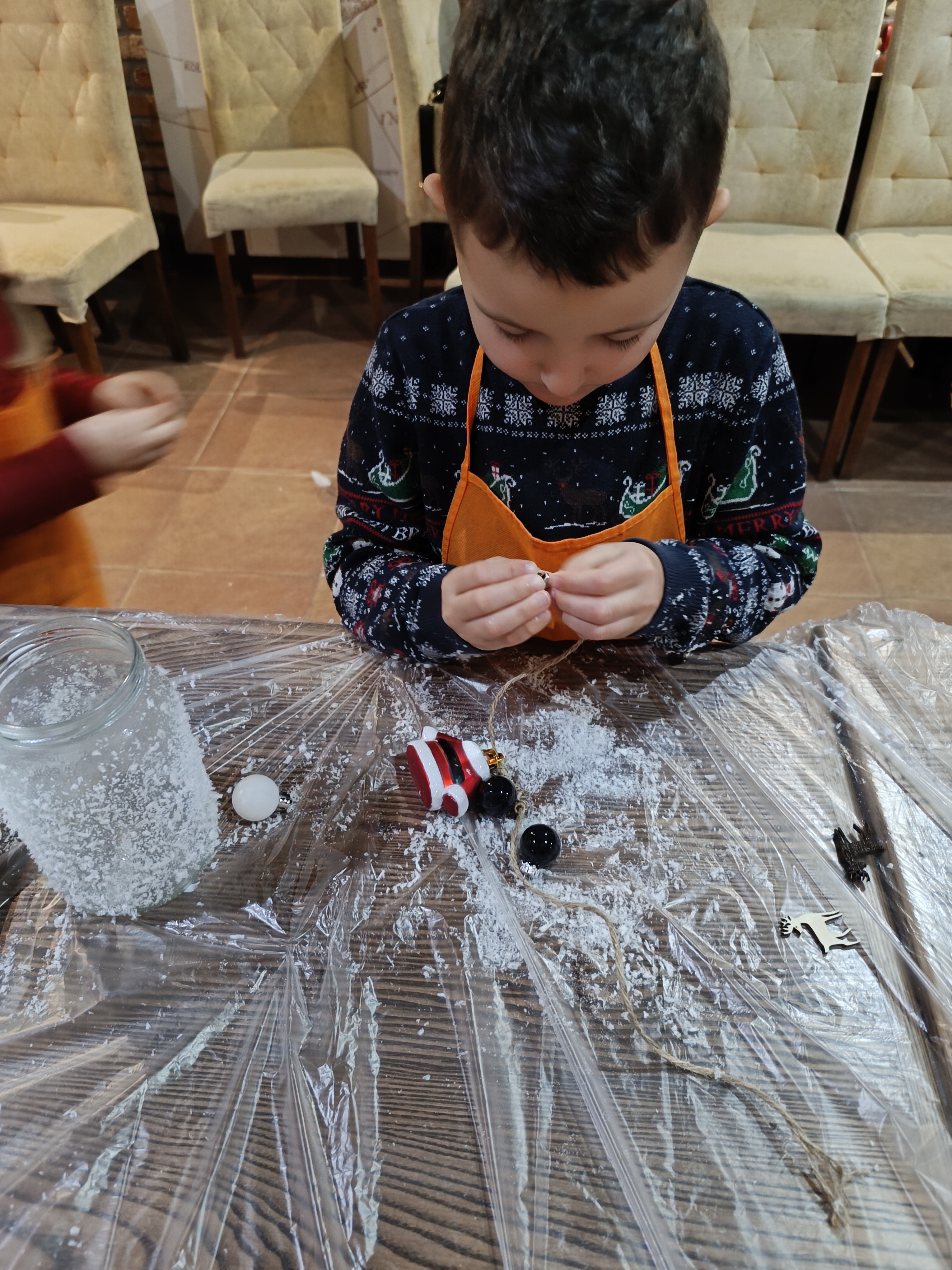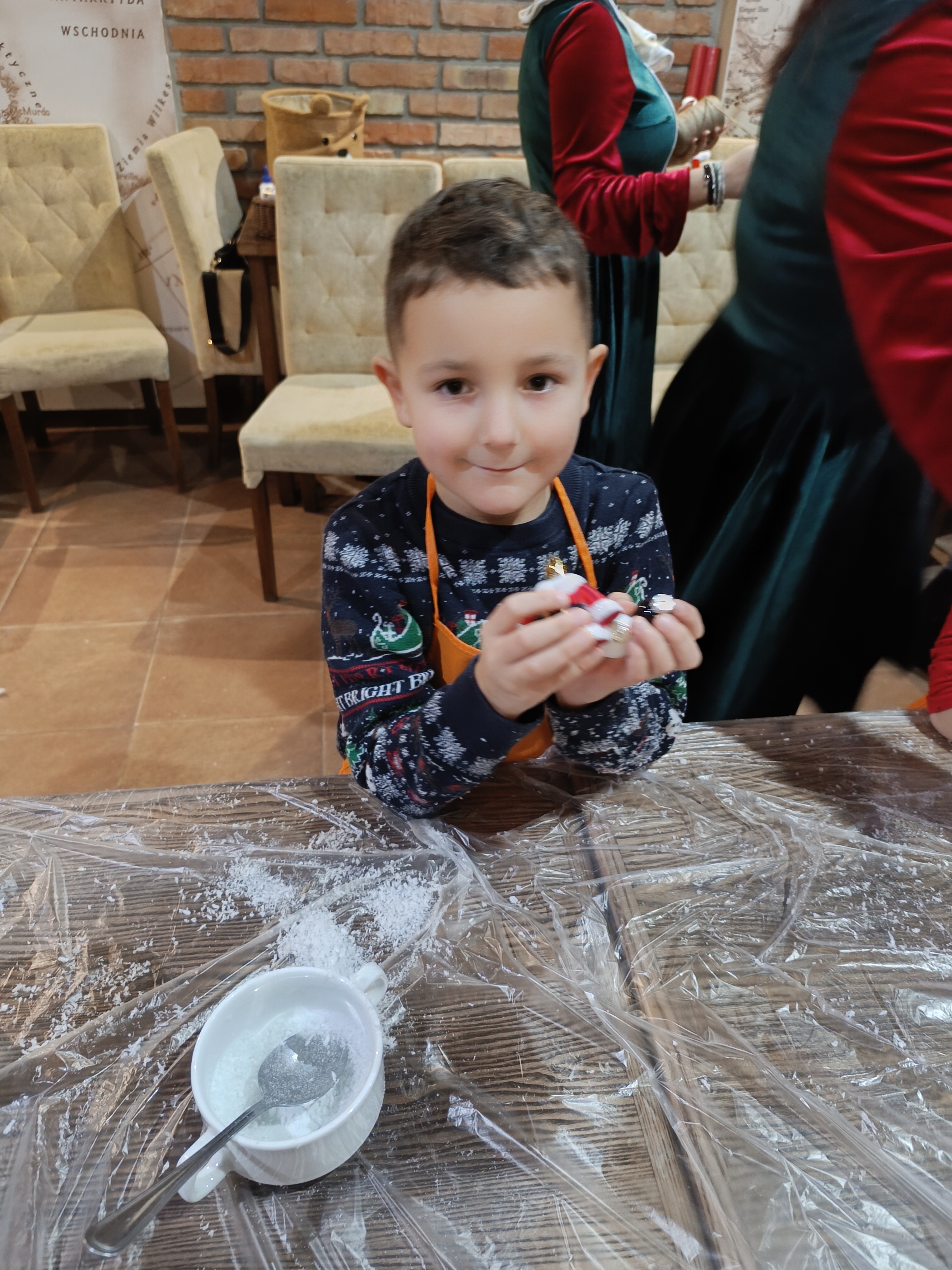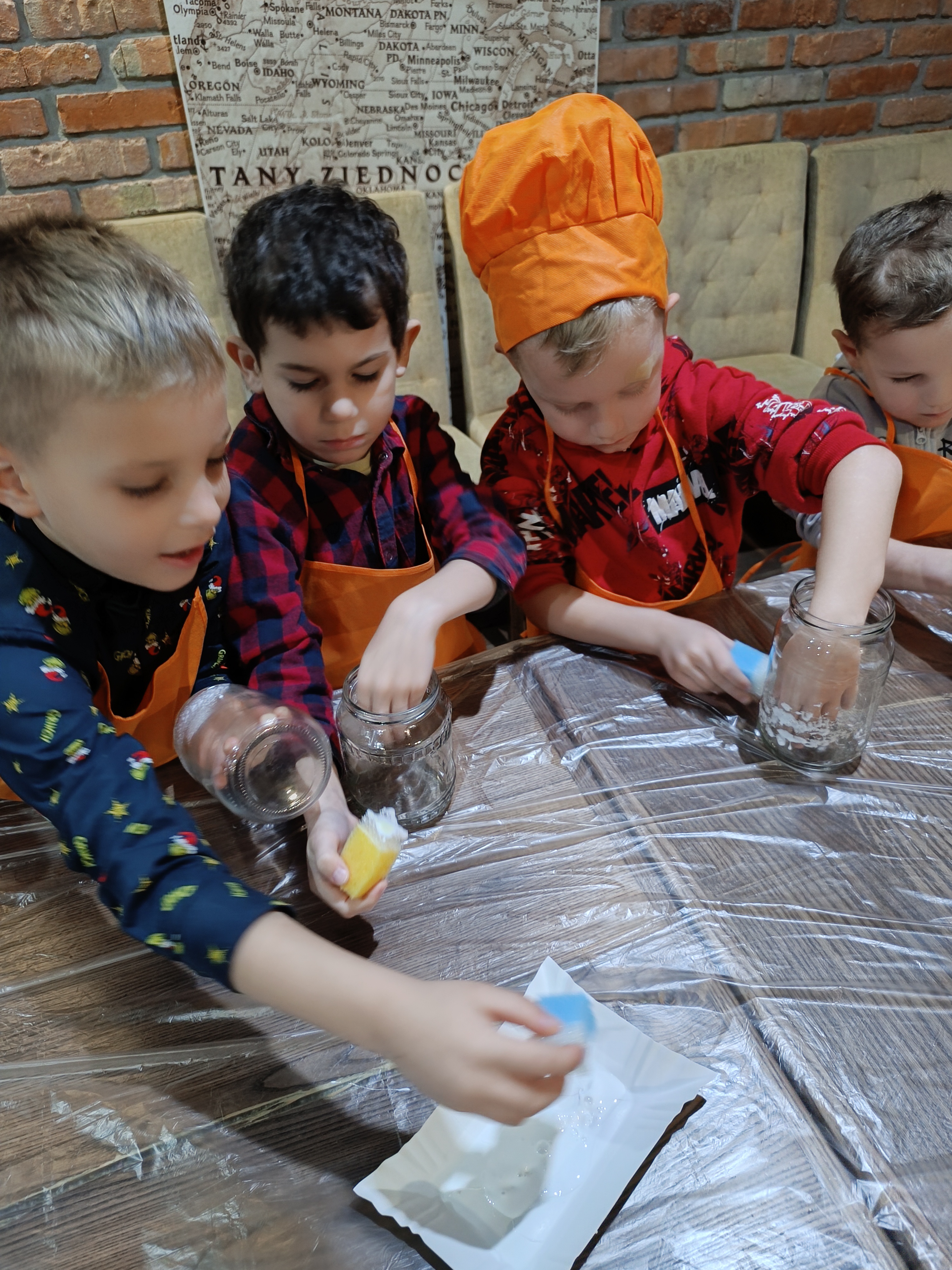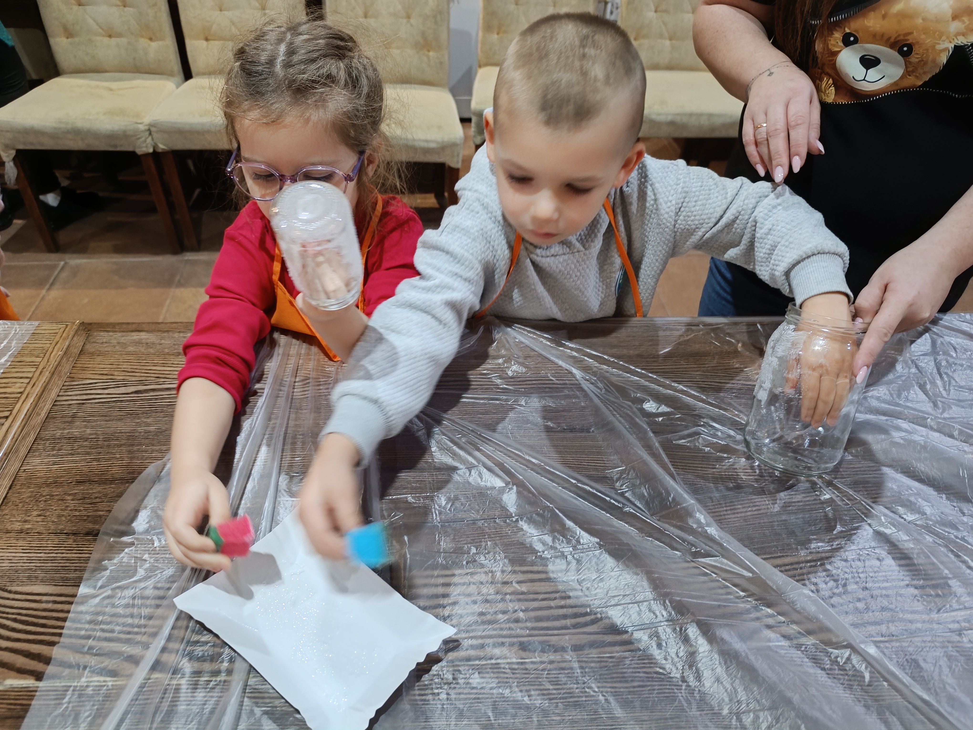 Tego dnia nie zabrakło również wykonania pięknych lampionów świątecznych – obsypywali je śniegiem sztucznym, przywiązywali różnorodne ozdoby.