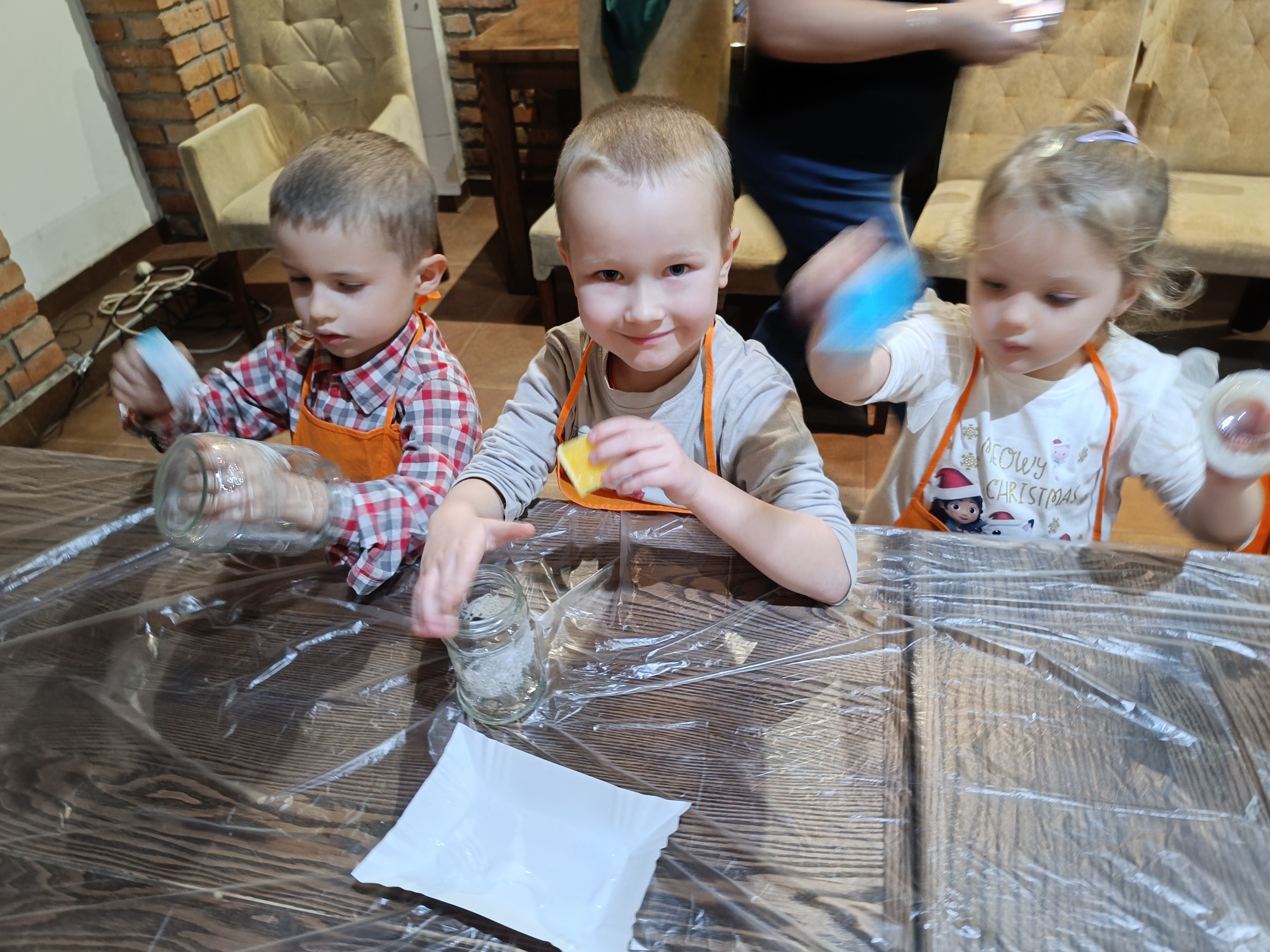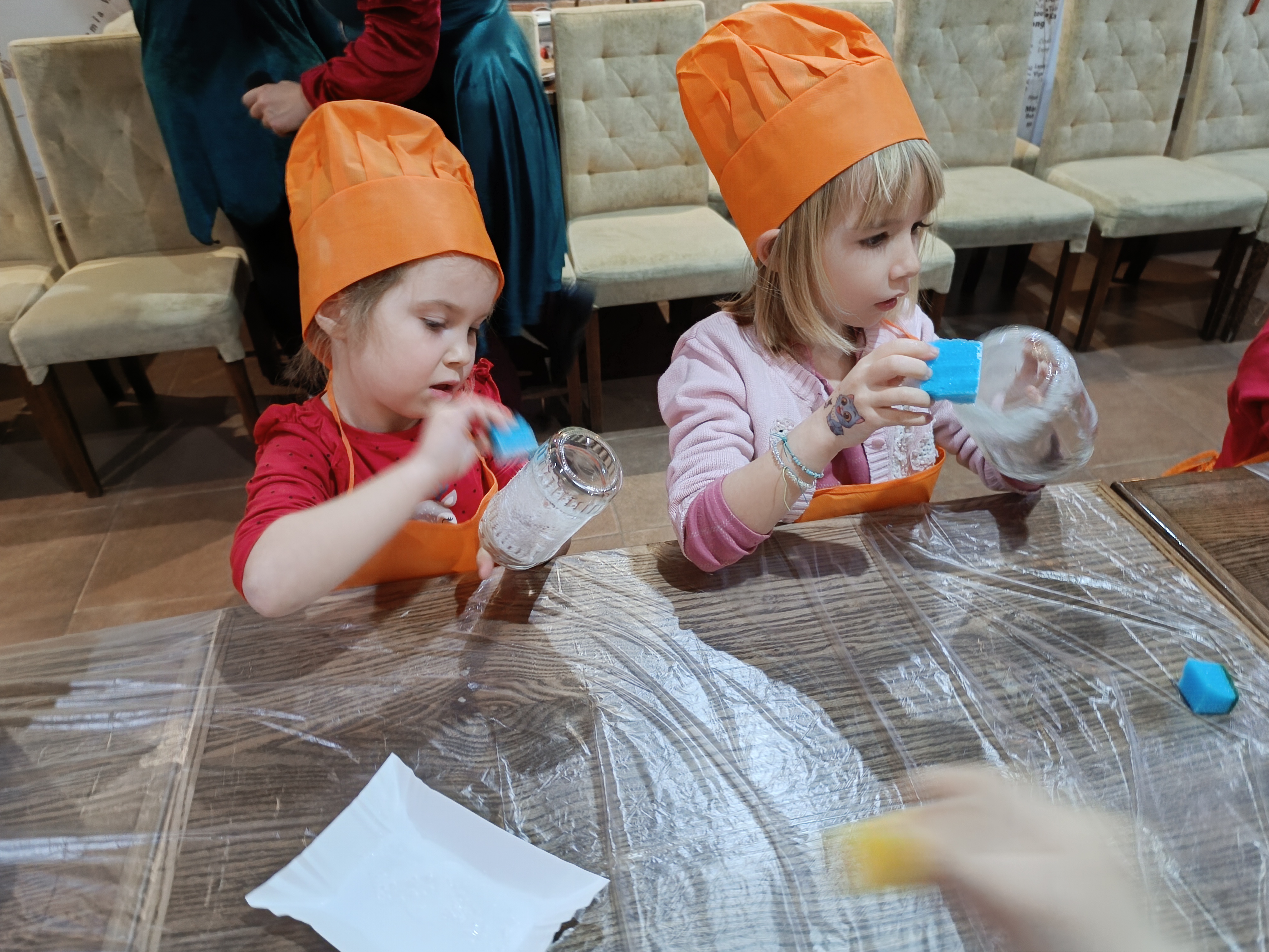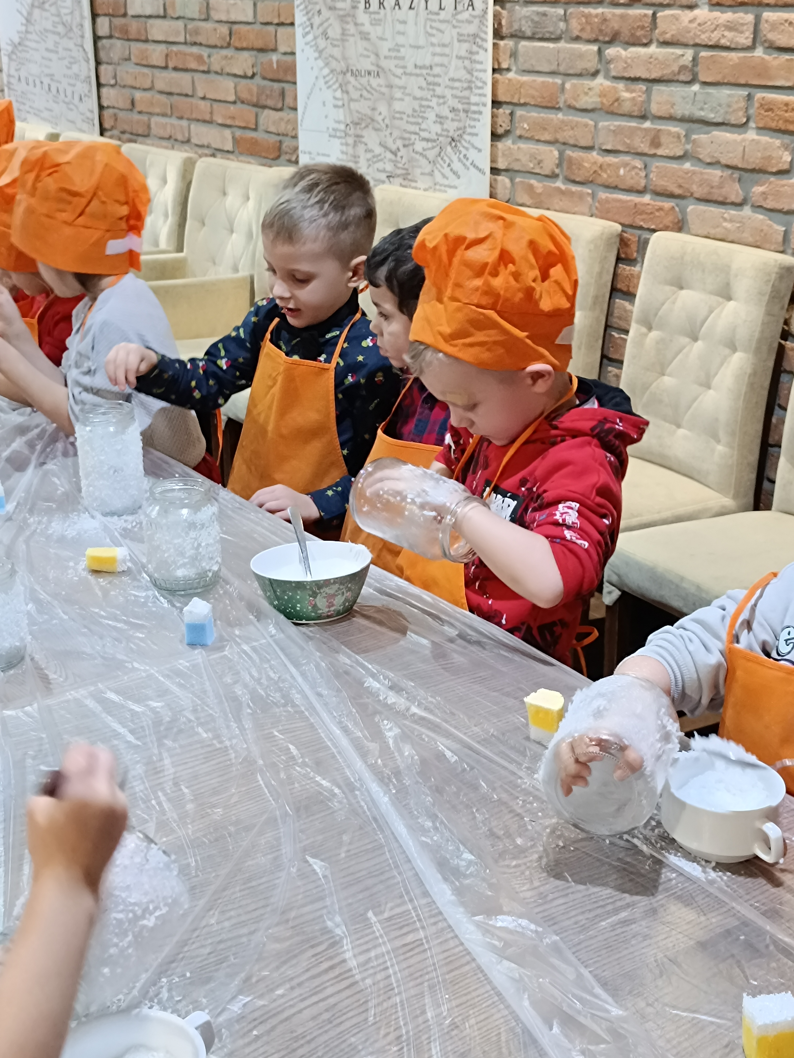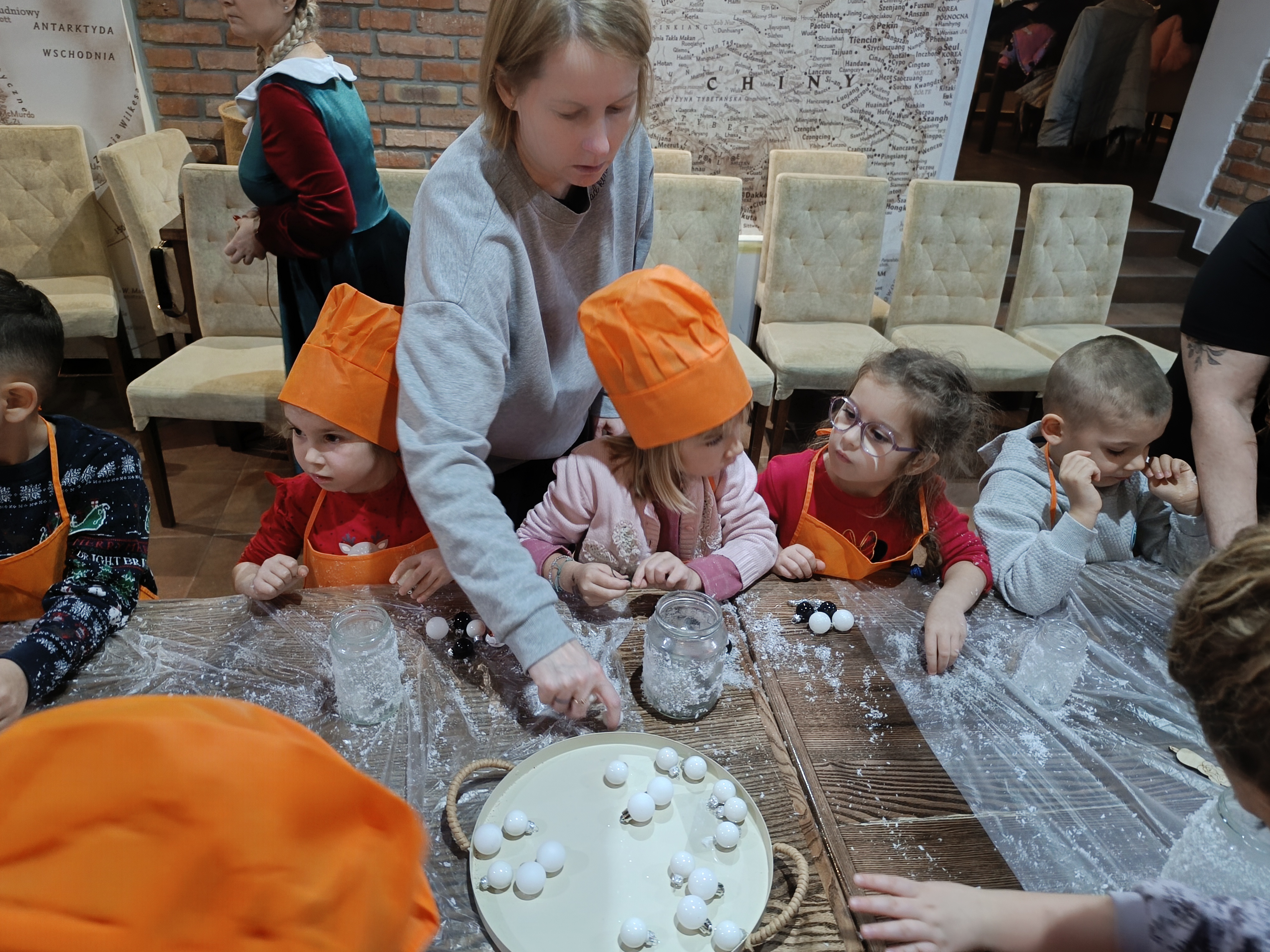 Tego dnia nie zabrakło również wykonania pięknych lampionów świątecznych – obsypywali je śniegiem sztucznym, przywiązywali różnorodne ozdoby.