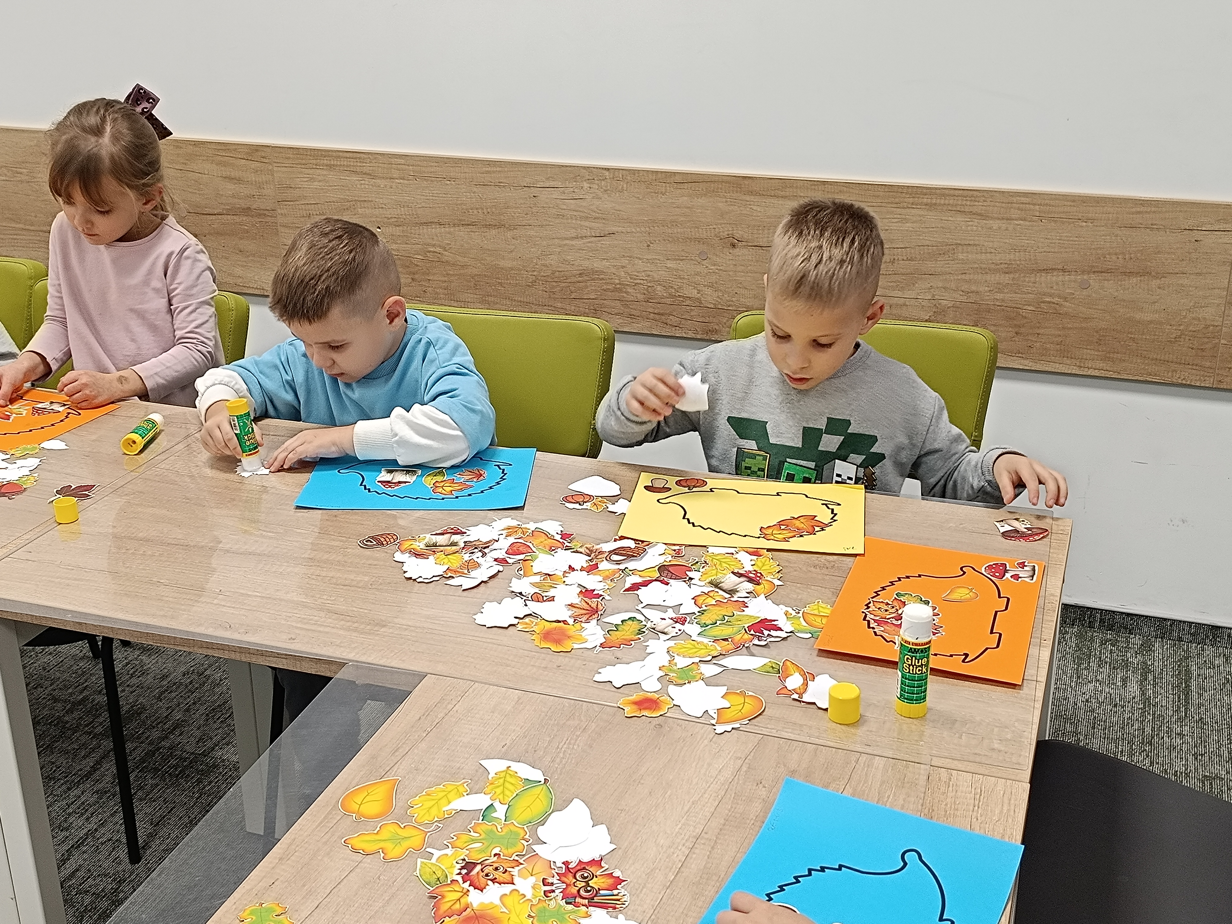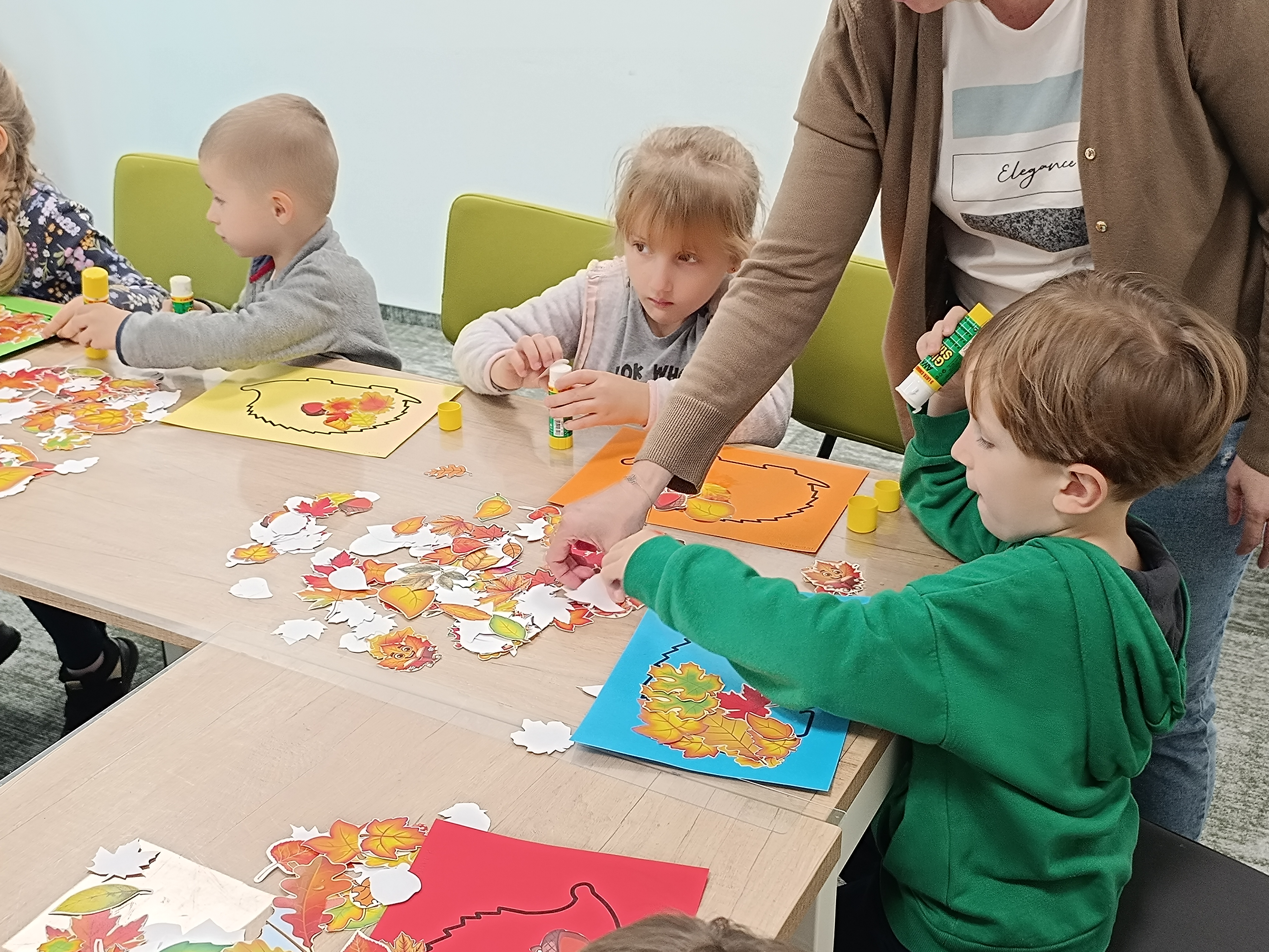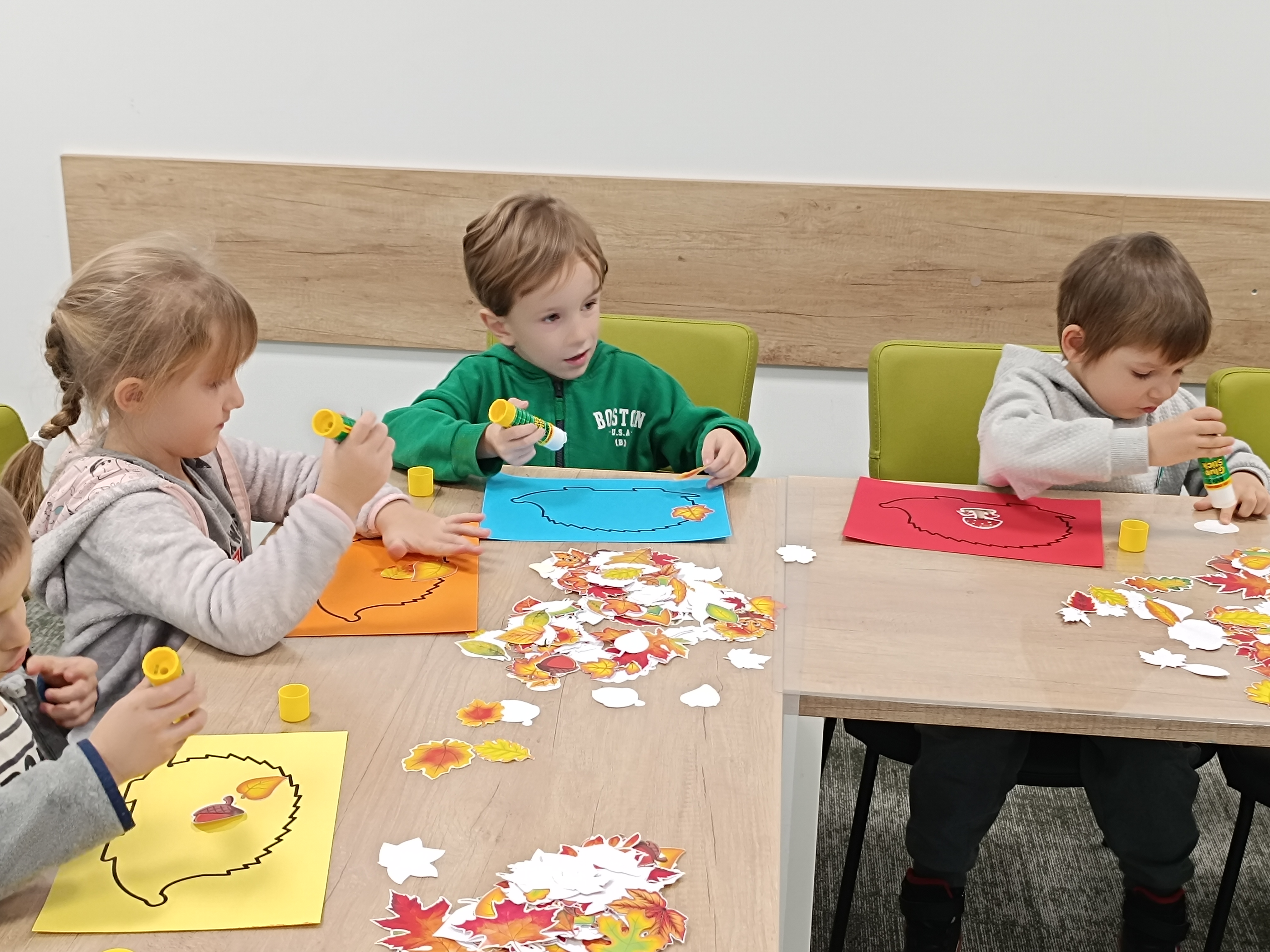 Na sam koniec dzieci zostały zaproszone na warsztaty plastyczne, gdzie wykonały jeżyka przykrytego kołderką z liści.