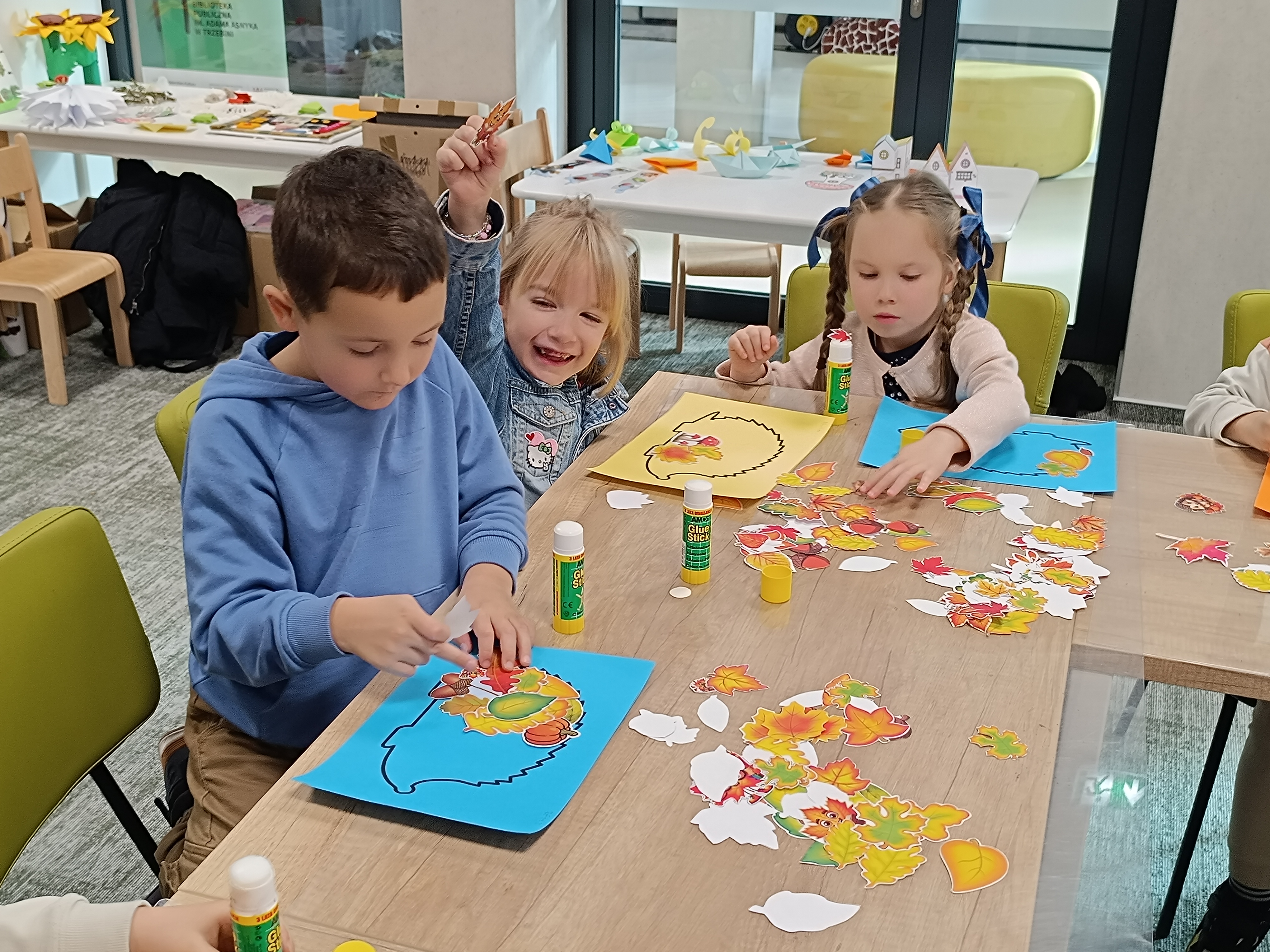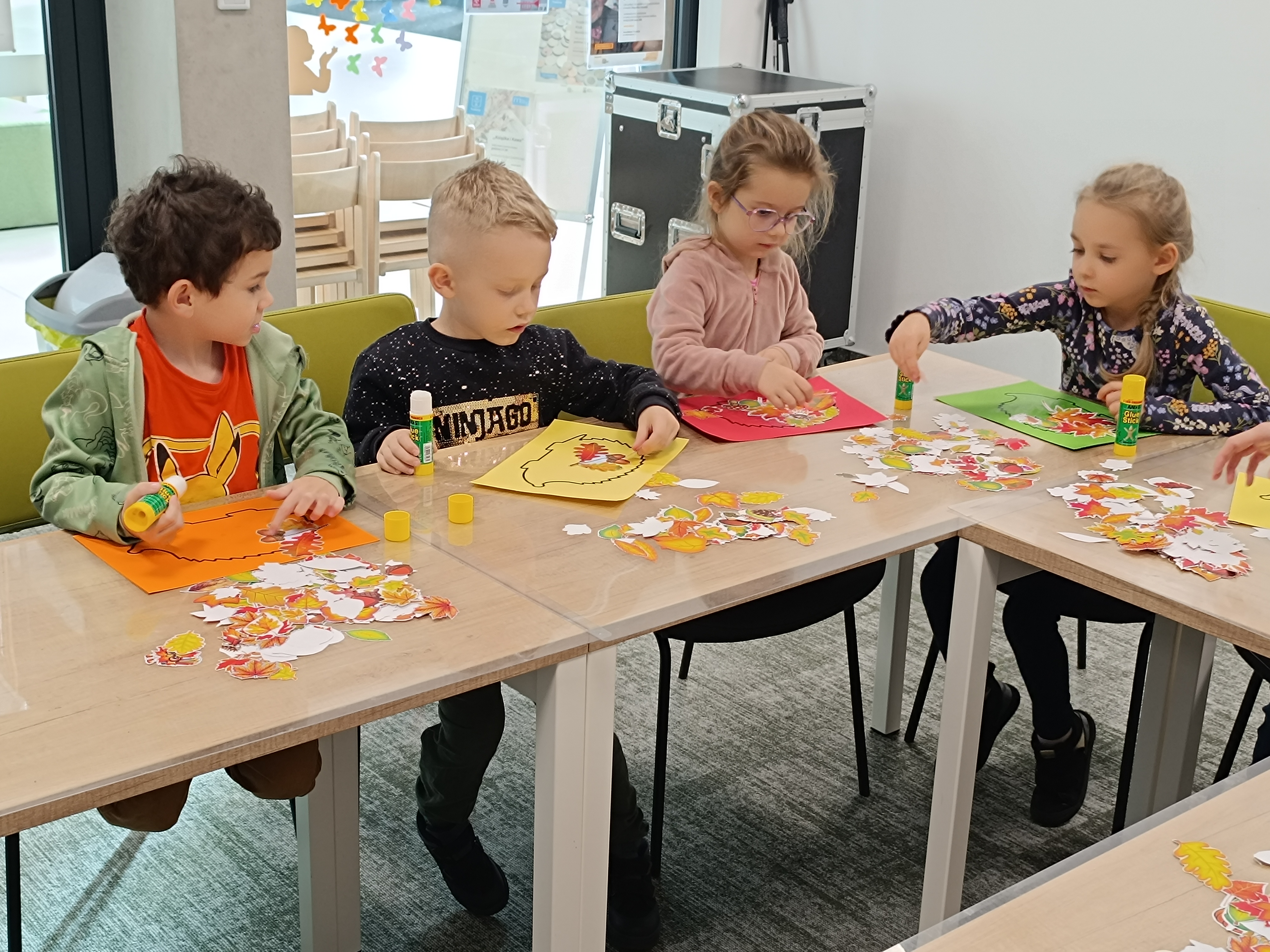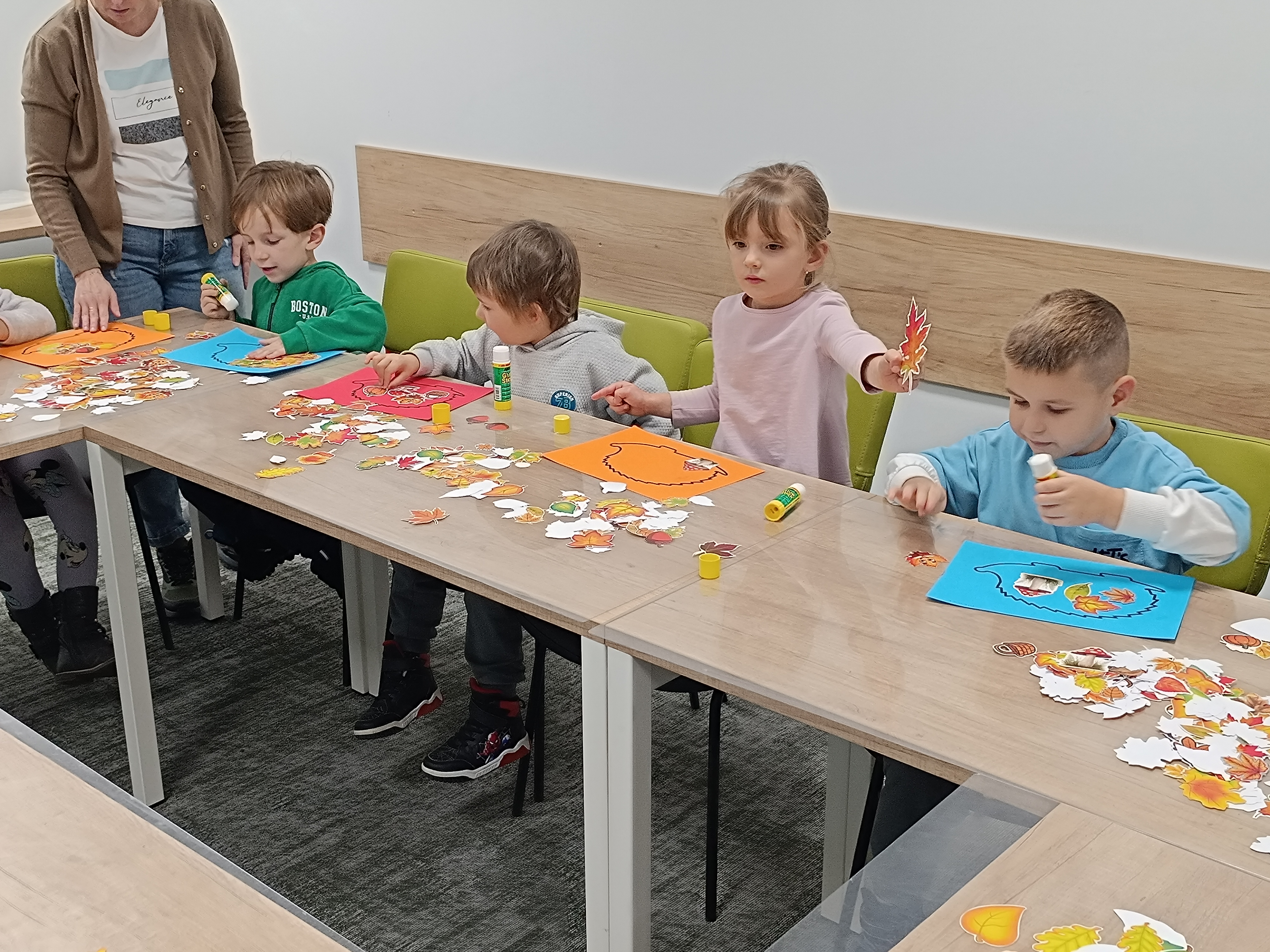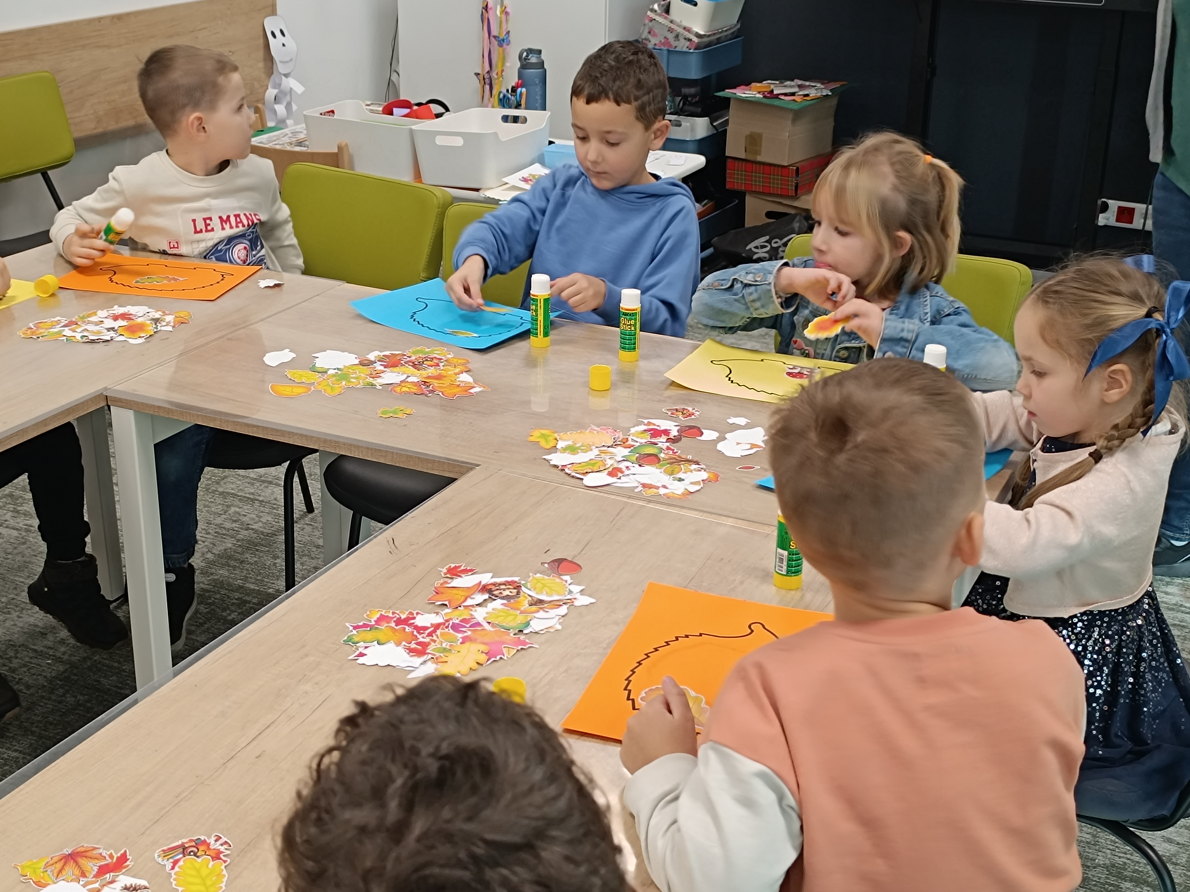 Na sam koniec dzieci zostały zaproszone na warsztaty plastyczne, gdzie wykonały jeżyka przykrytego kołderką z liści.