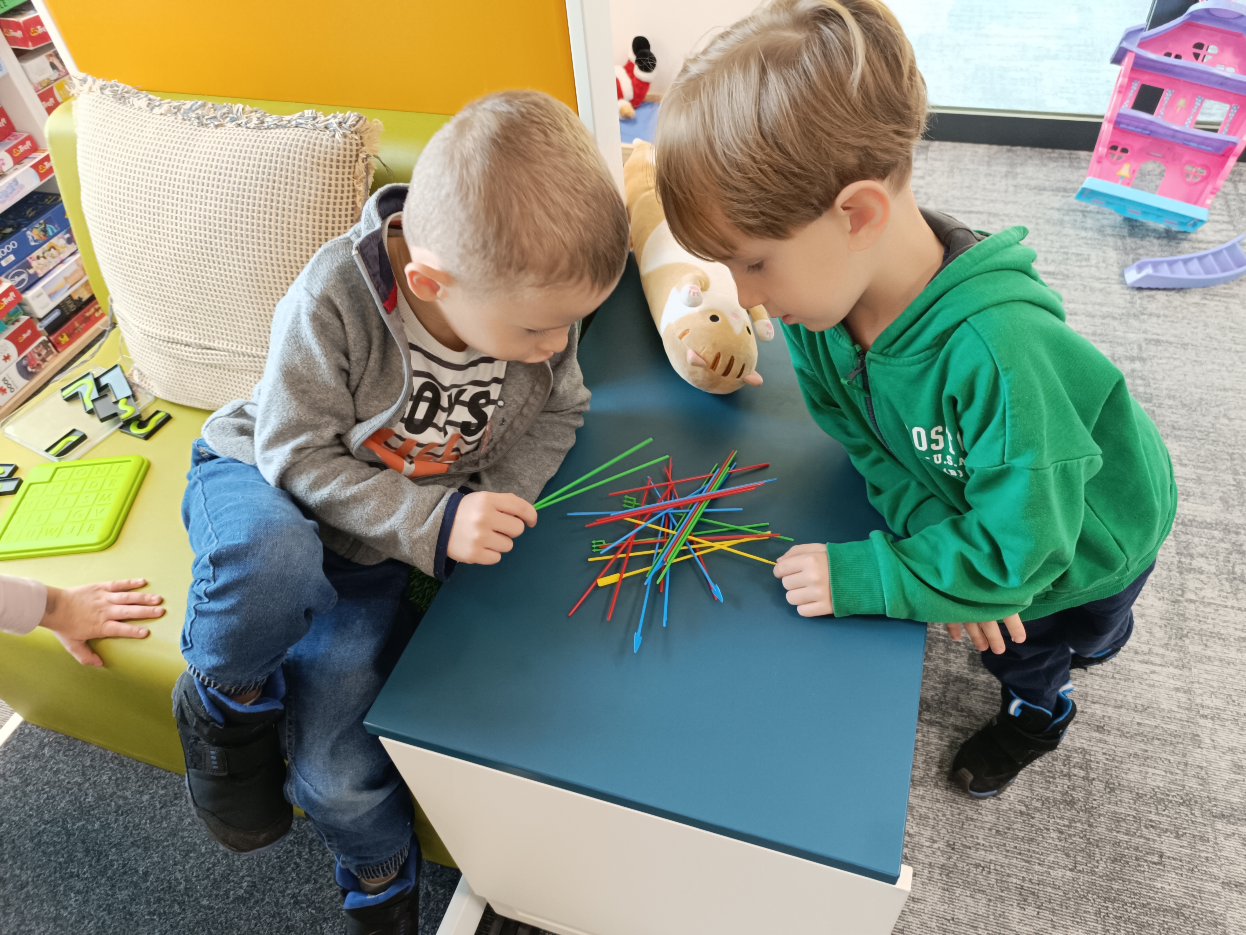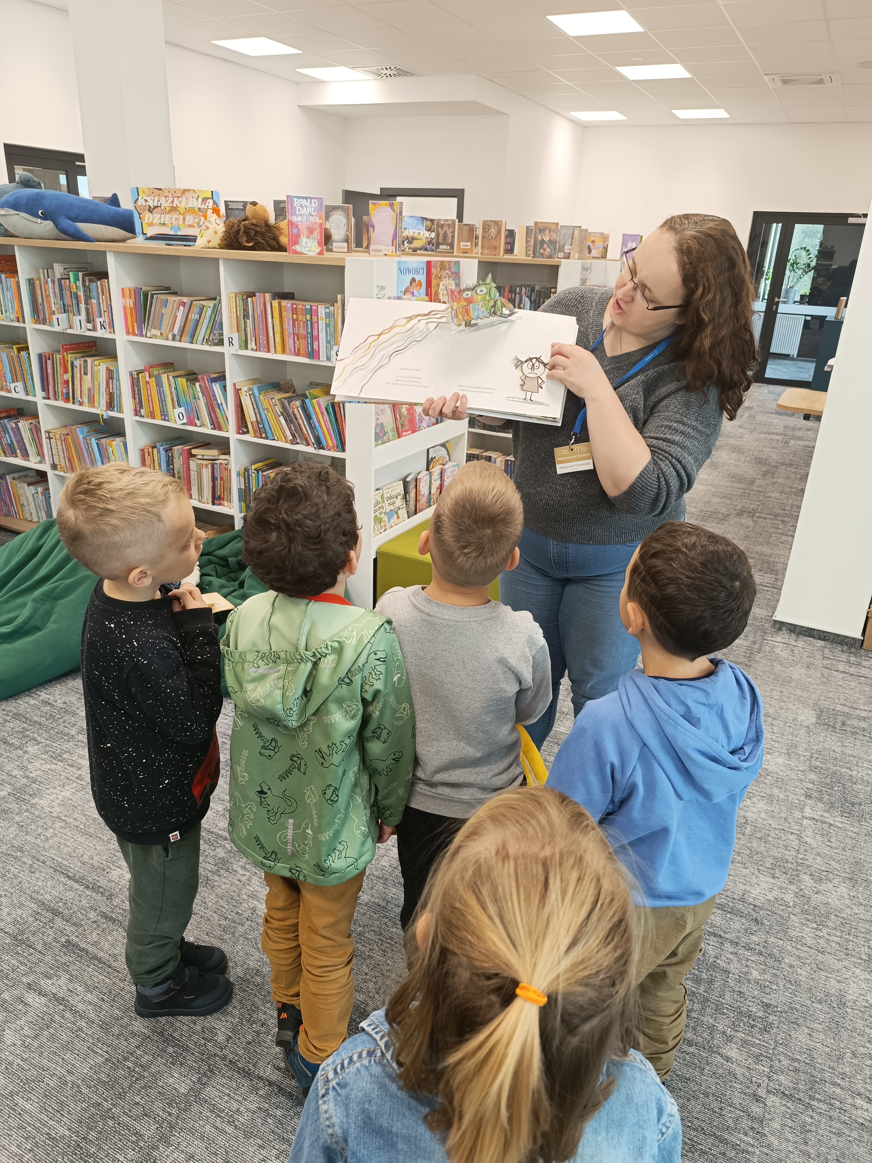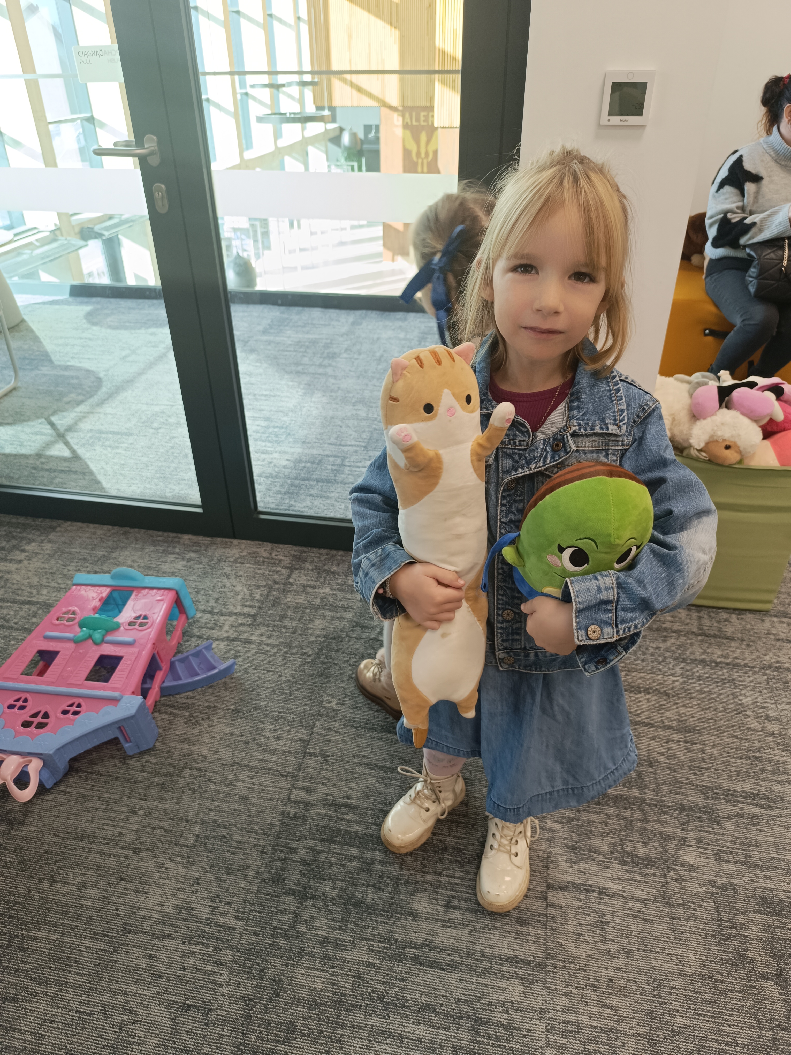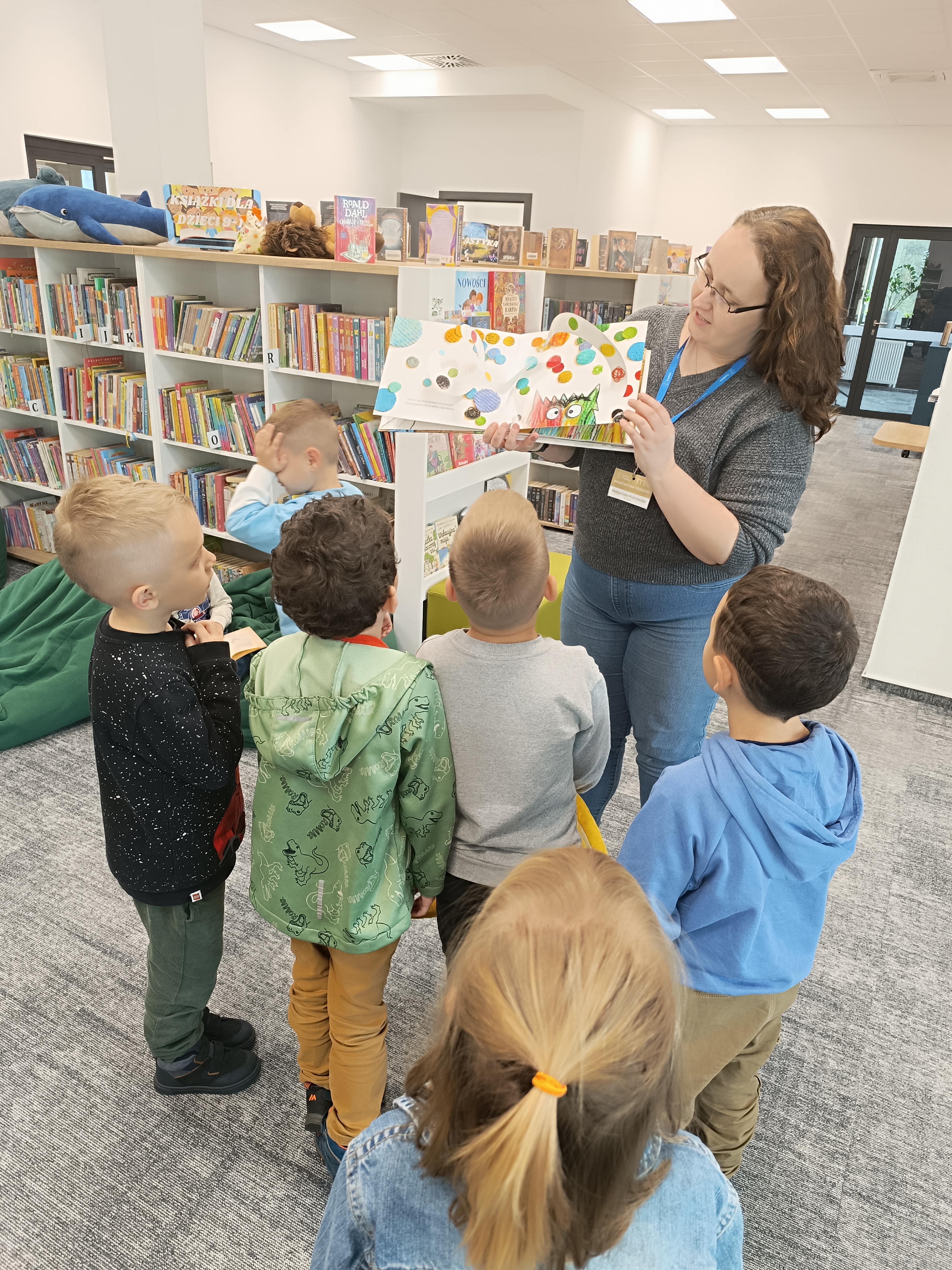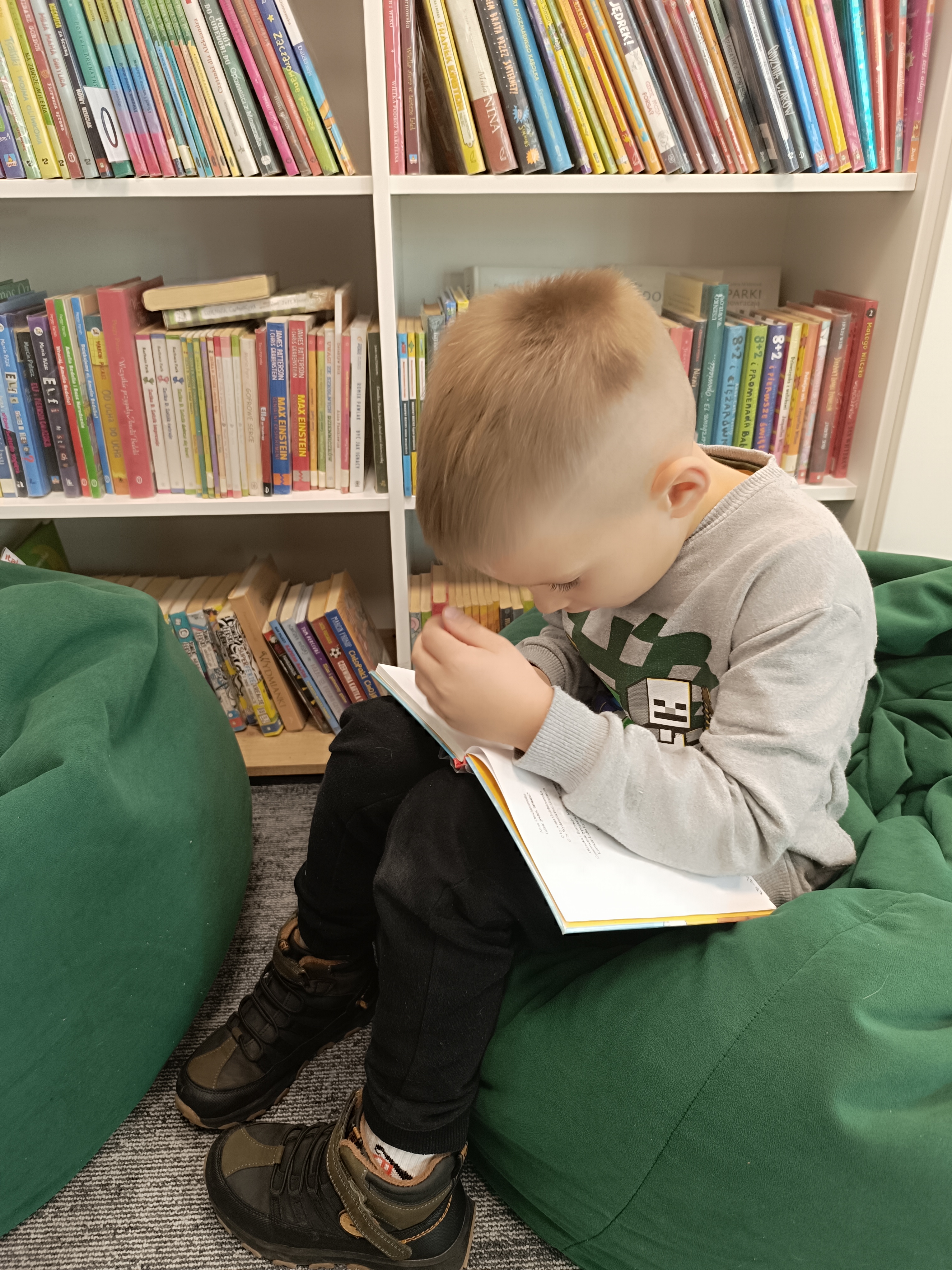 Smerfy później zwiedziły w bibliotece dział dziecięcy,w którym oglądały książki, bawiły się w wyznaczonej strefie zabawy.