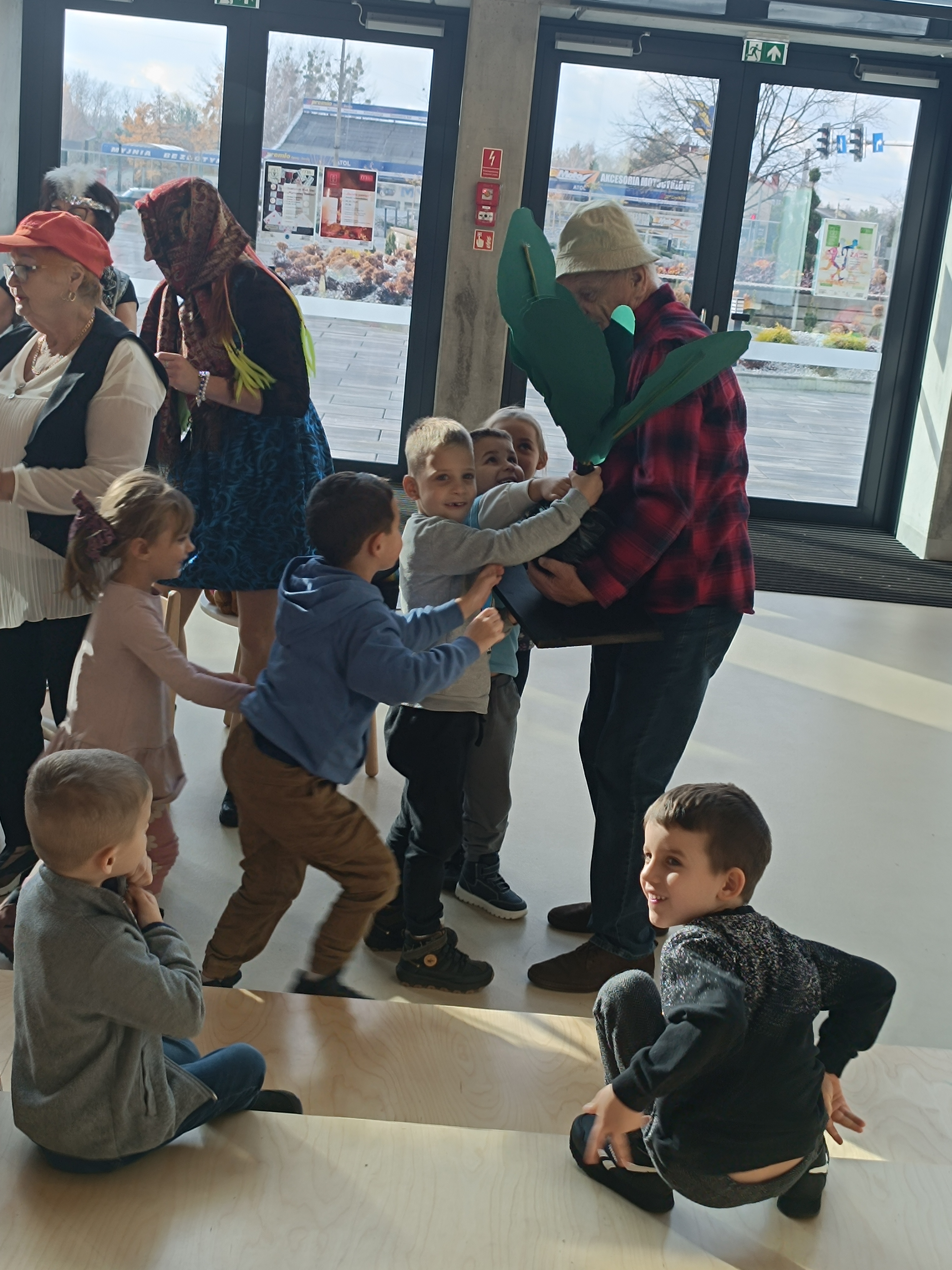 W tym tygodniu wybraliśmy się na wycieczkę do MANUFAKTURY w Trzebini, gdzie na dzieci czekało spotkanie z seniorami, którzy przygotowali dla nich inscenizacje do różnych wierszy dziecięcych. Dzieci miały okazję same wcielić się w rolę aktorów, biorąc udział w inscenizacji wiersza Juliana Tuwima pt.: " Rzepka".