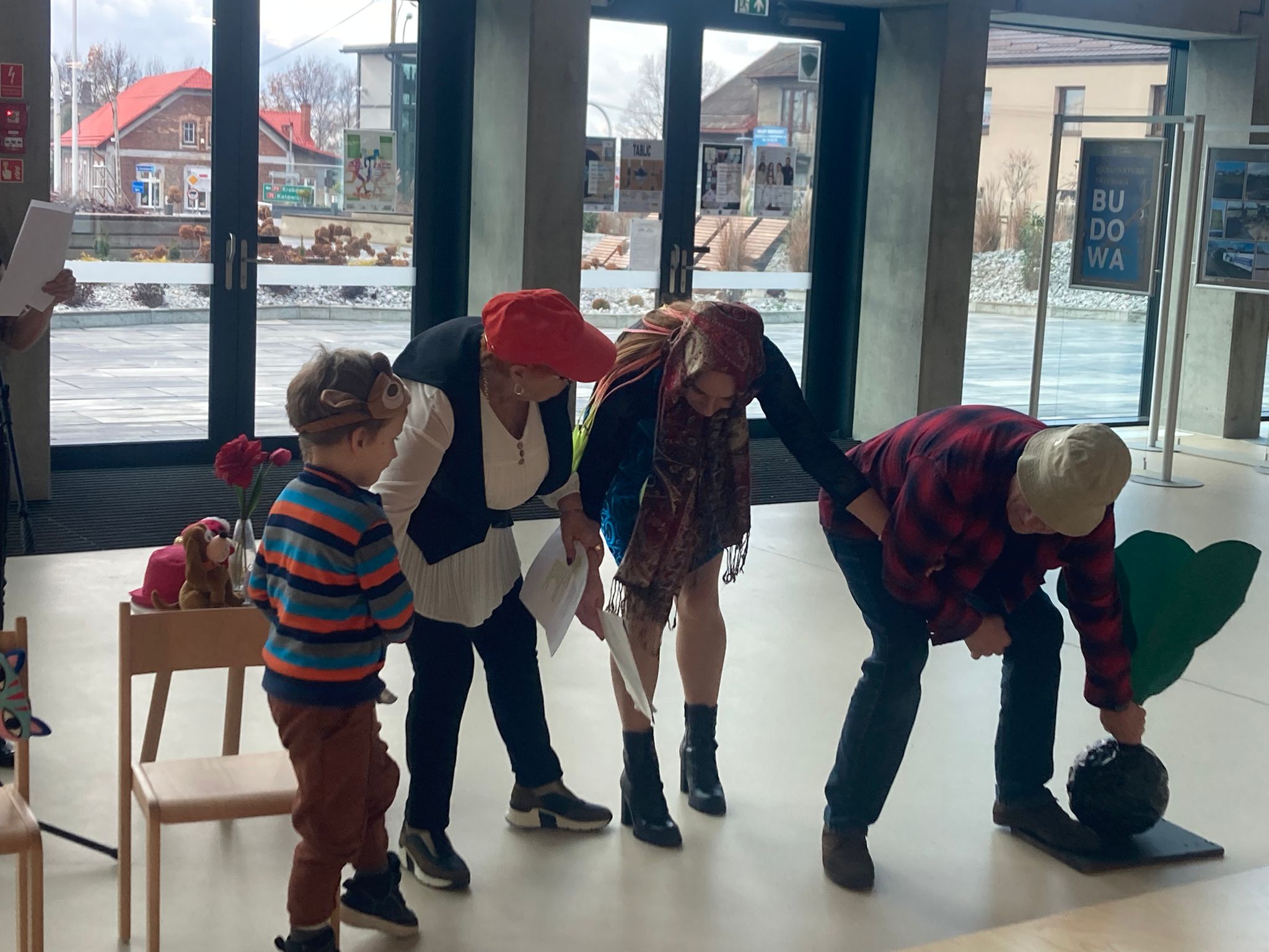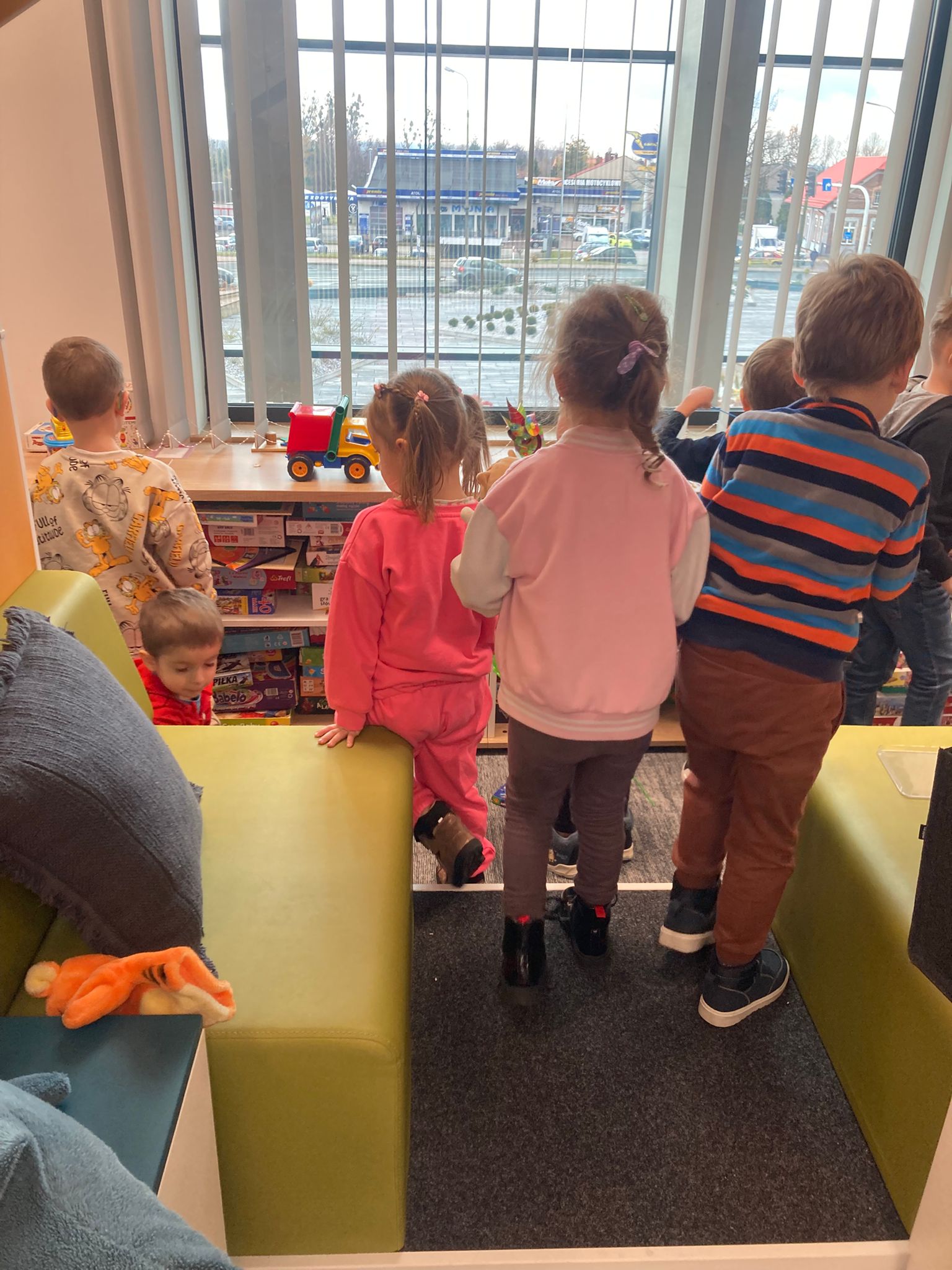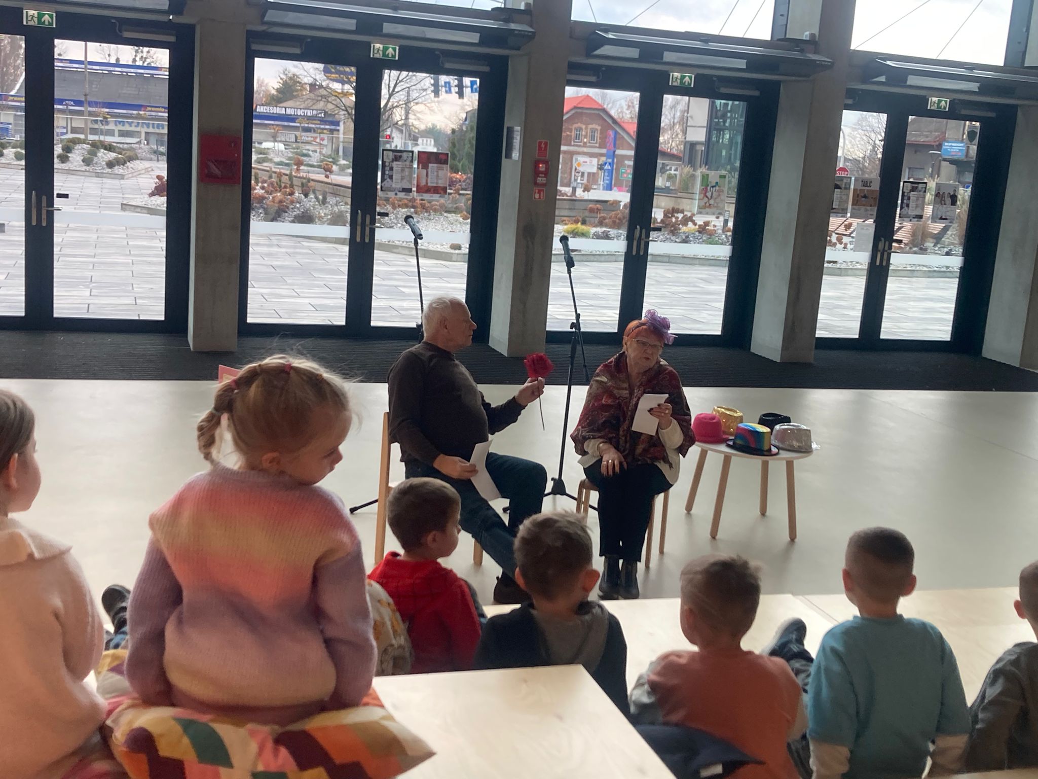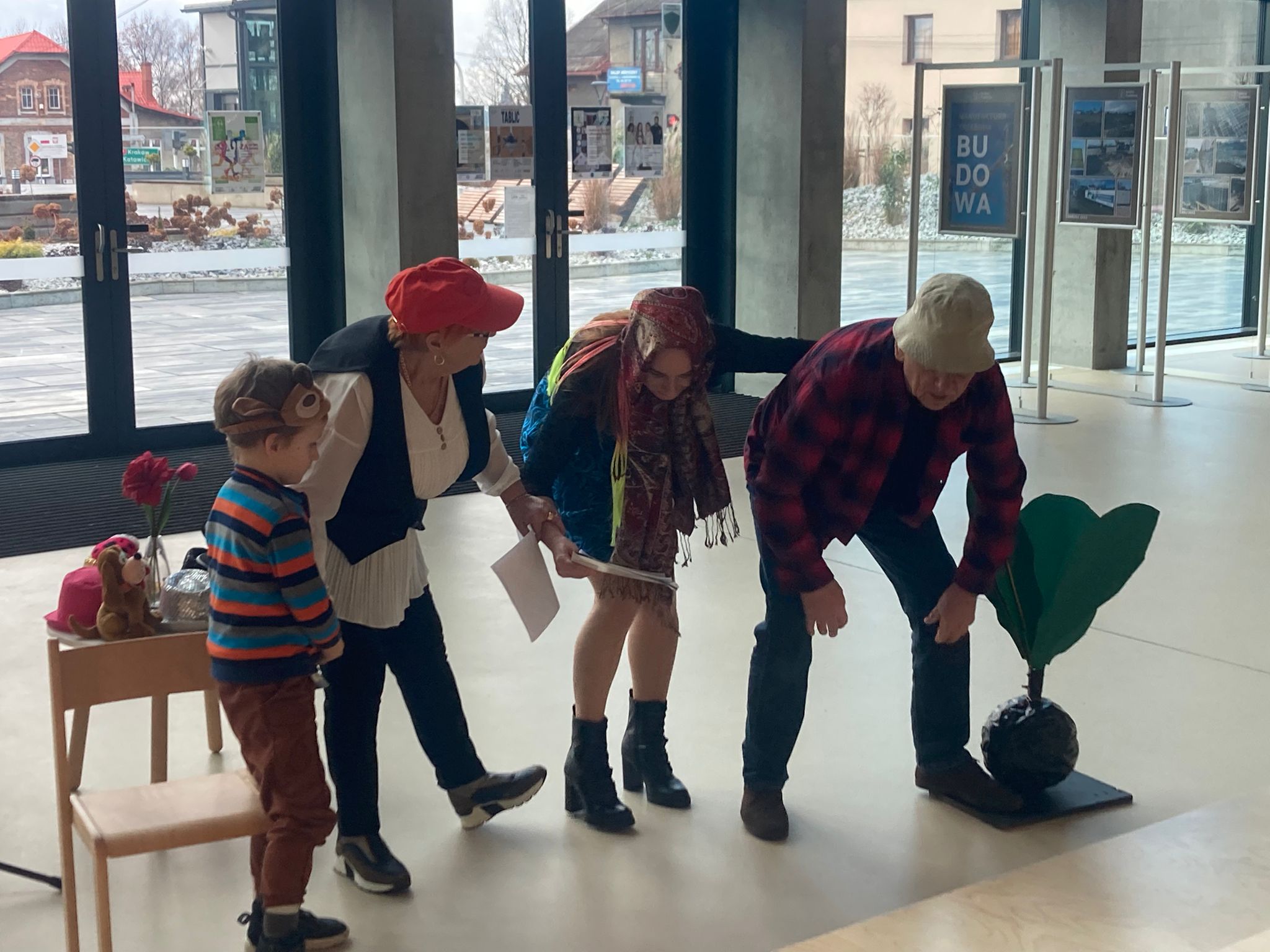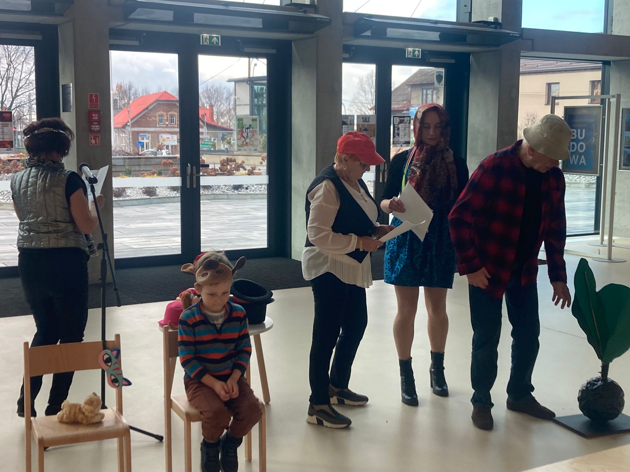 Wizytę rozpoczęliśmy od spotkania z seniorami,ktorzy przygotowali dla dzieciaków inscenizacje wierszy dziecięcych.Najbardziej spodobała się "Rzepka" Juliana Tuwima Dzieciaki z zaangażowaniem wcieliły się w rolę bohaterów i pomagały "wyrwać" rzepkę.Zabawa tak spodobała się dzieciakom że musiał być bis! Przedszkolaki zwiedziły bibliotekę - dział dziecięcy, bawiły się w strefie zabaw a także wzięły udział w warsztatach plastycznych , wykonały jesiennego jeżyka.