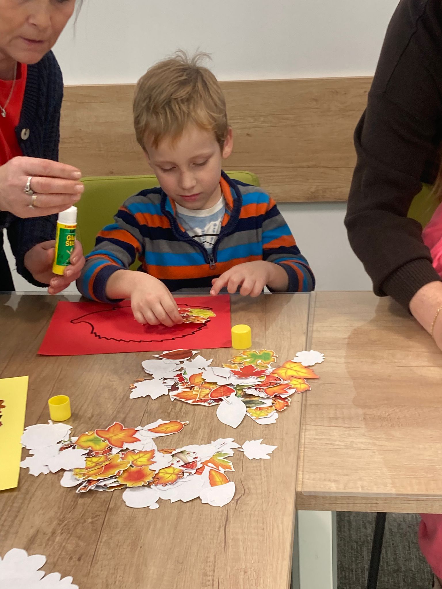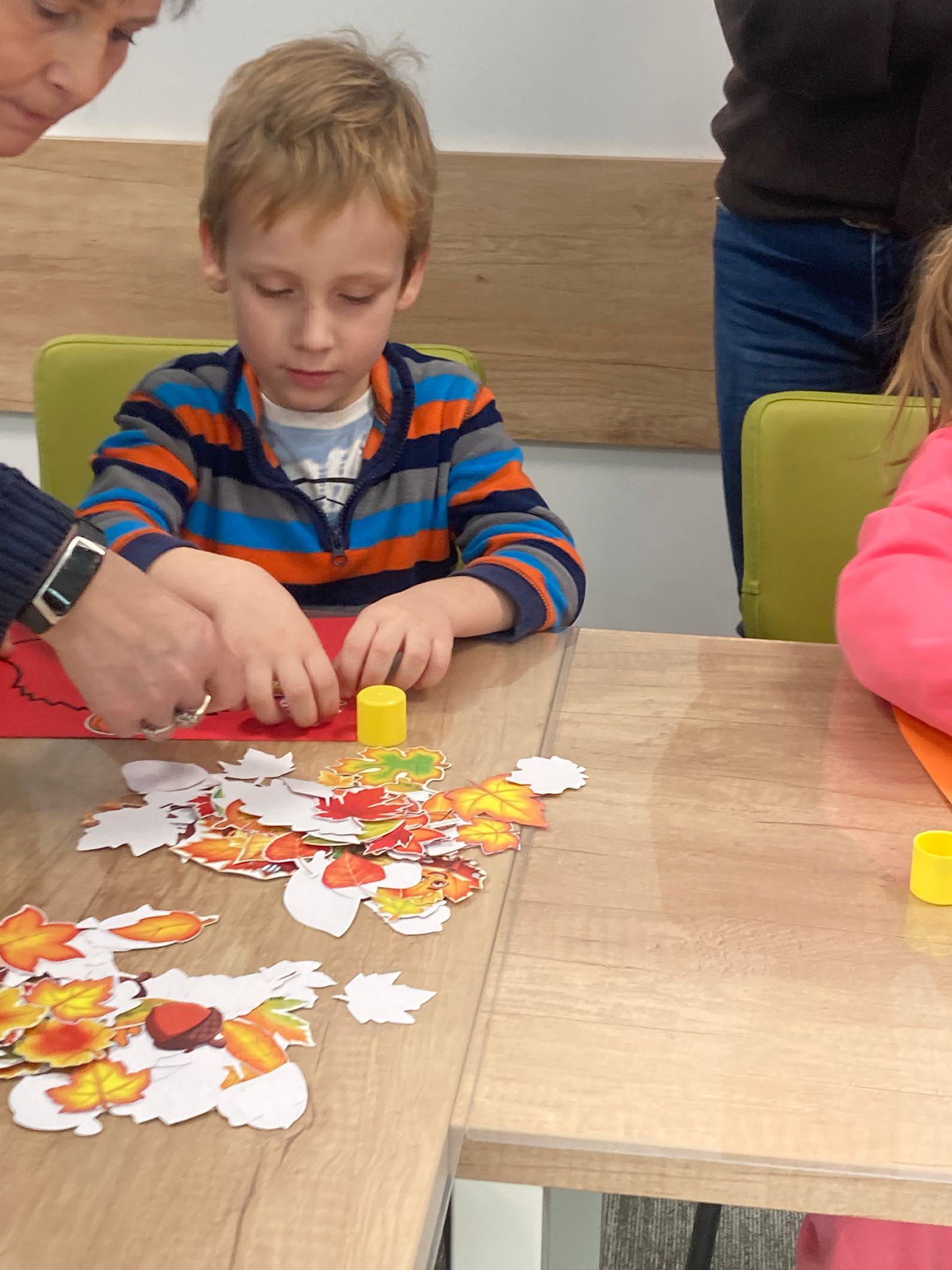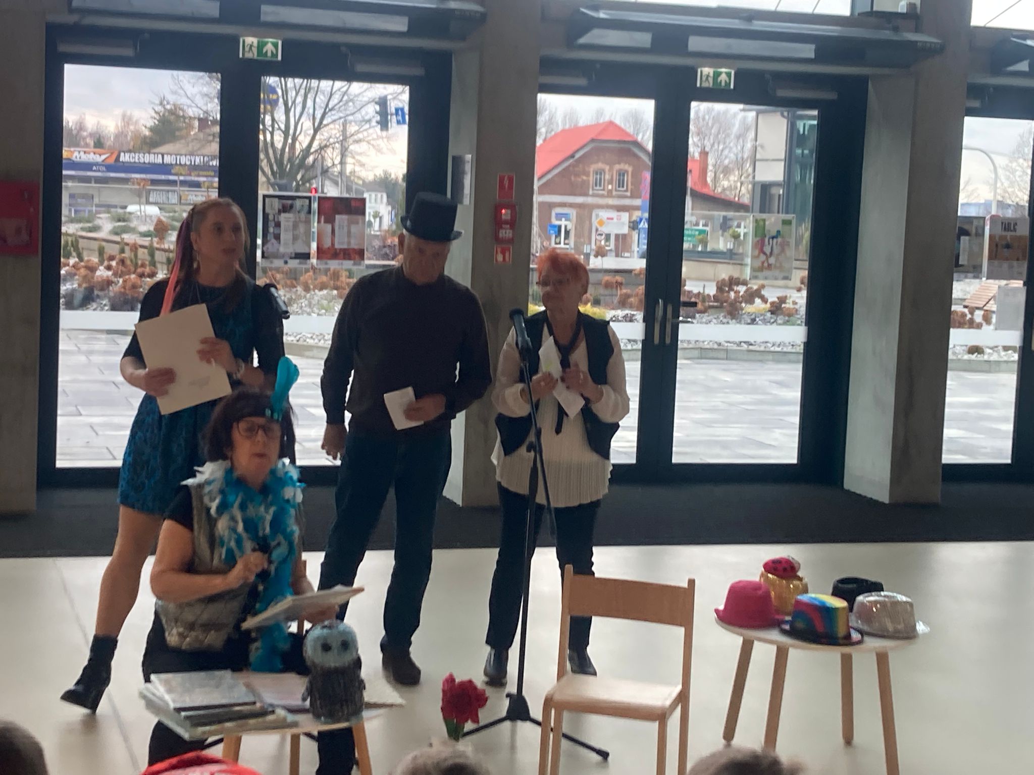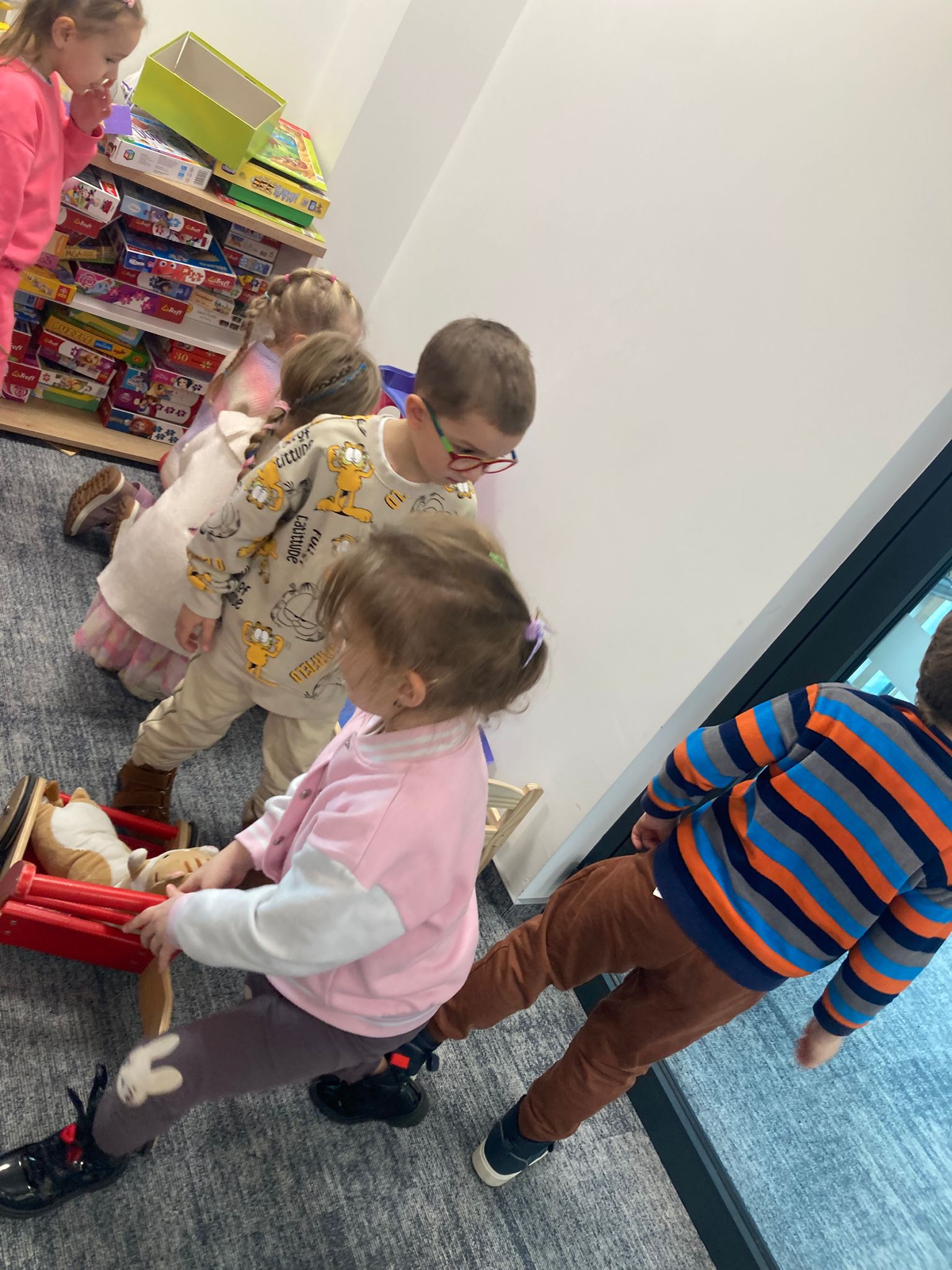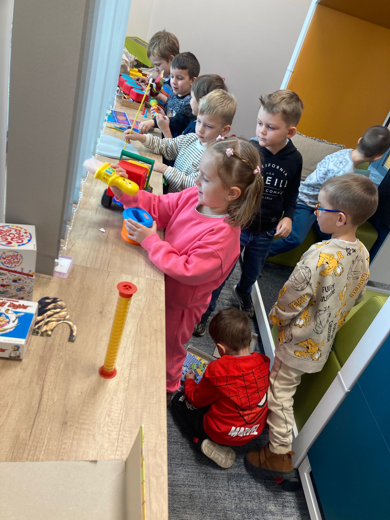 Wizytę rozpoczęliśmy od spotkania z seniorami,ktorzy przygotowali dla dzieciaków inscenizacje wierszy dziecięcych.Najbardziej spodobała się "Rzepka" Juliana Tuwima Dzieciaki z zaangażowaniem wcieliły się w rolę bohaterów i pomagały "wyrwać" rzepkę.Zabawa tak spodobała się dzieciakom że musiał być bis! Przedszkolaki zwiedziły bibliotekę - dział dziecięcy, bawiły się w strefie zabaw a także wzięły udział w warsztatach plastycznych , wykonały jesiennego jeżyka.