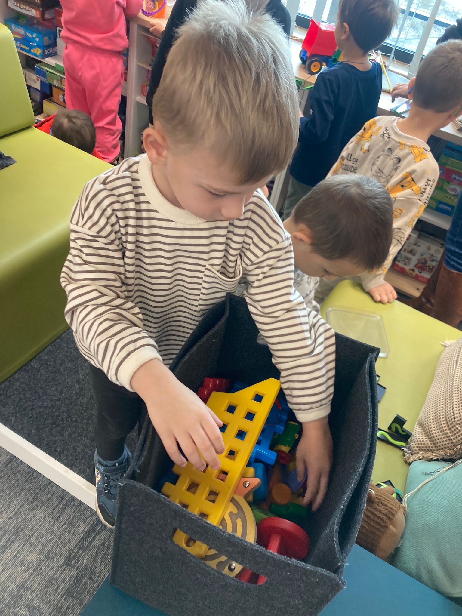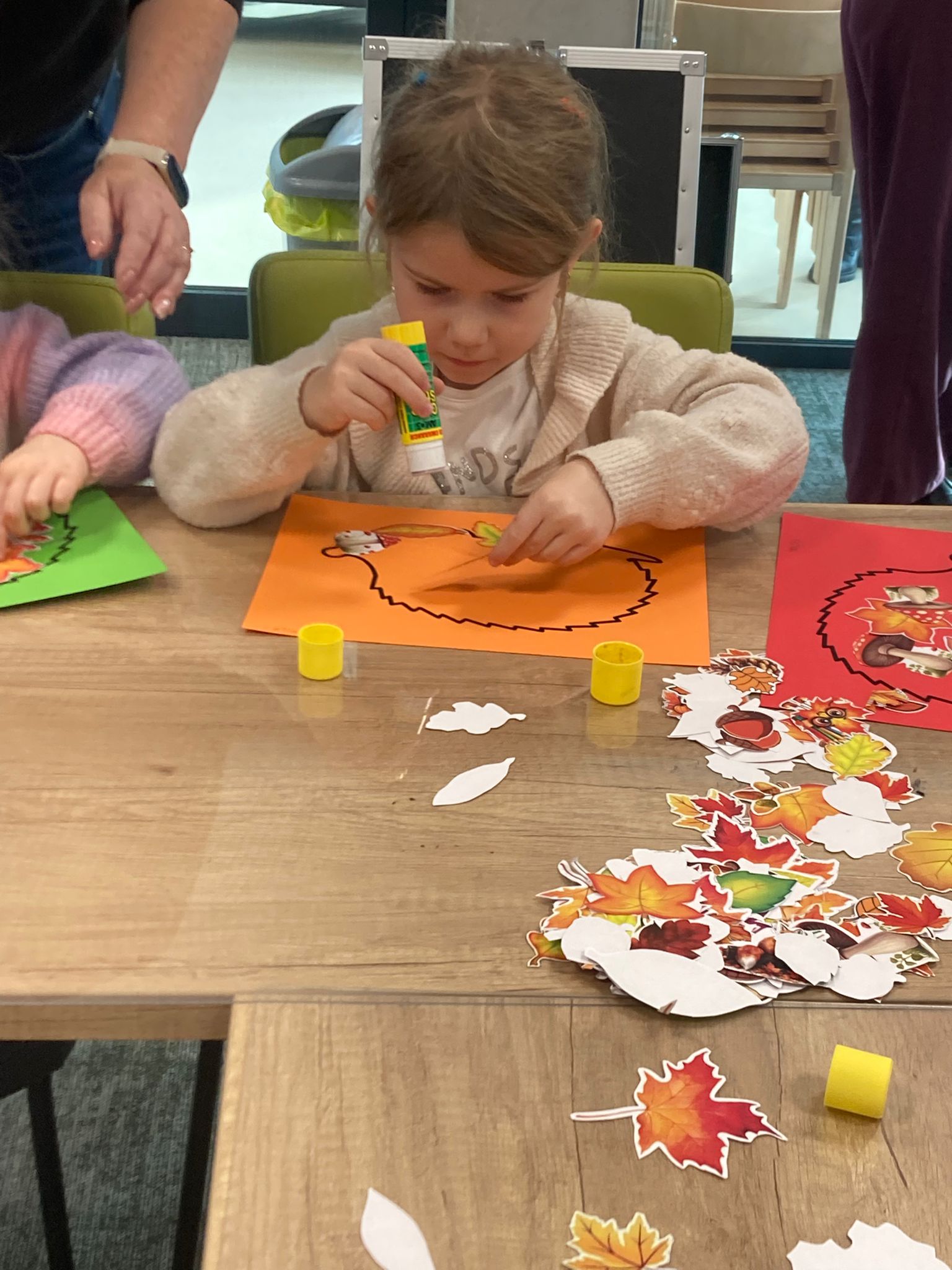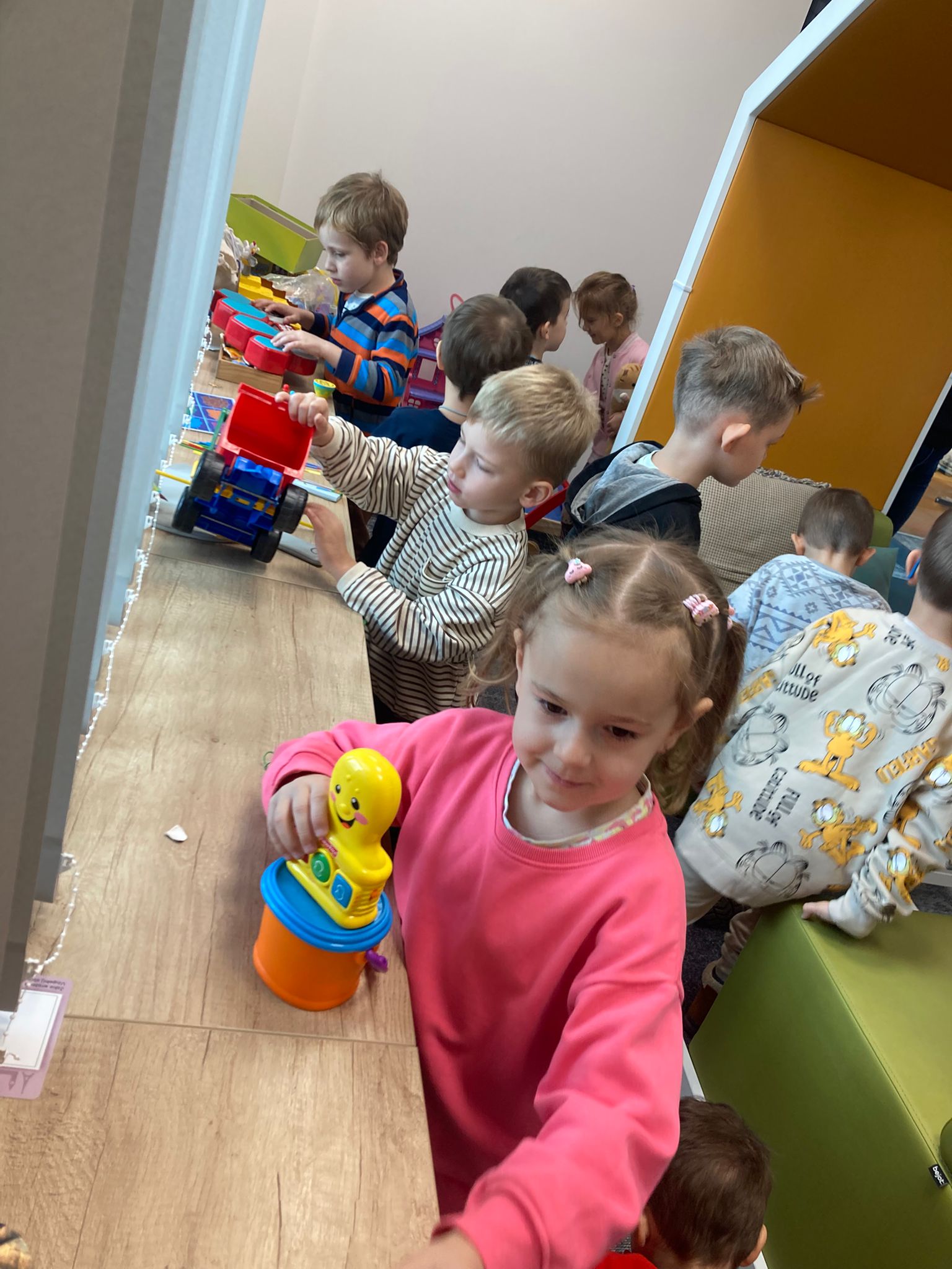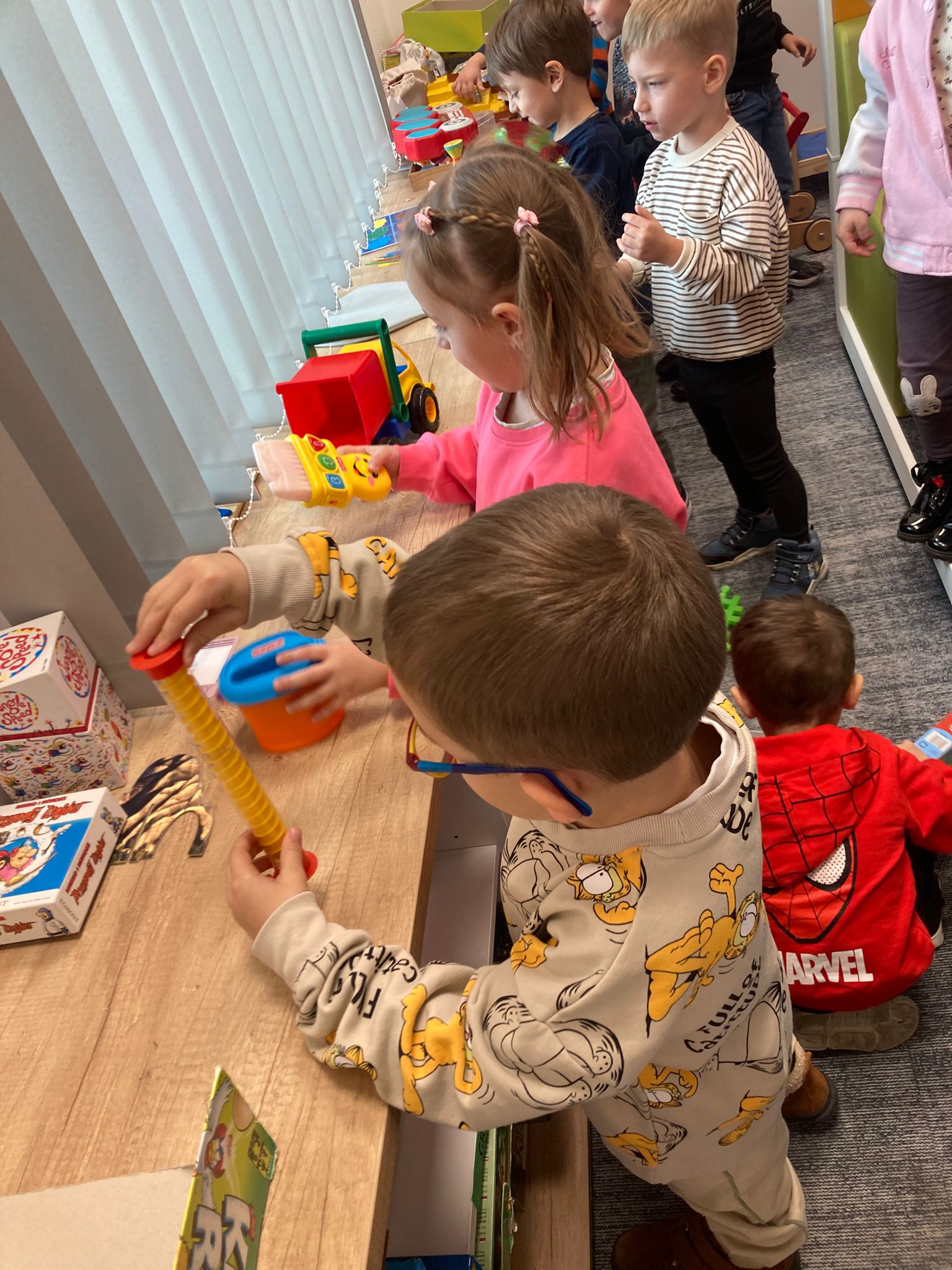 Wizytę rozpoczęliśmy od spotkania z seniorami,ktorzy przygotowali dla dzieciaków inscenizacje wierszy dziecięcych.Najbardziej spodobała się "Rzepka" Juliana Tuwima Dzieciaki z zaangażowaniem wcieliły się w rolę bohaterów i pomagały "wyrwać" rzepkę.Zabawa tak spodobała się dzieciakom że musiał być bis! Przedszkolaki zwiedziły bibliotekę - dział dziecięcy, bawiły się w strefie zabaw a także wzięły udział w warsztatach plastycznych , wykonały jesiennego jeżyka.