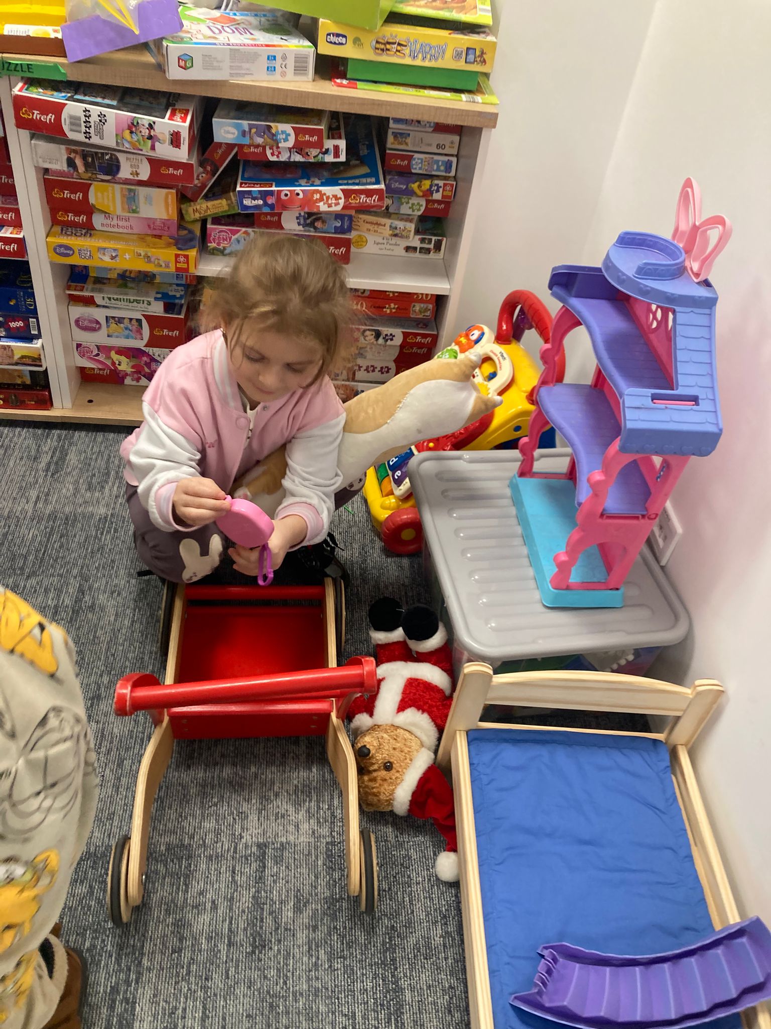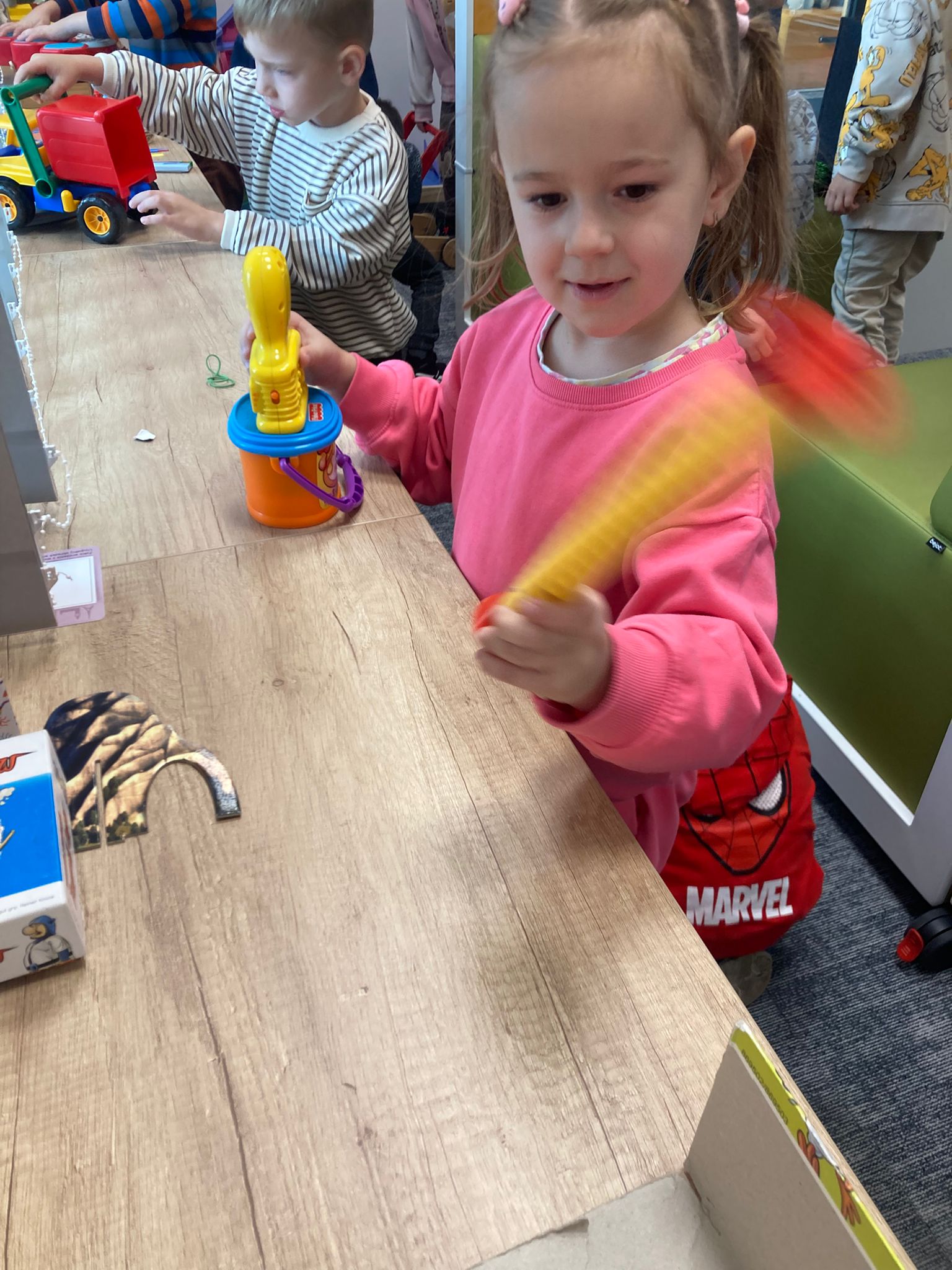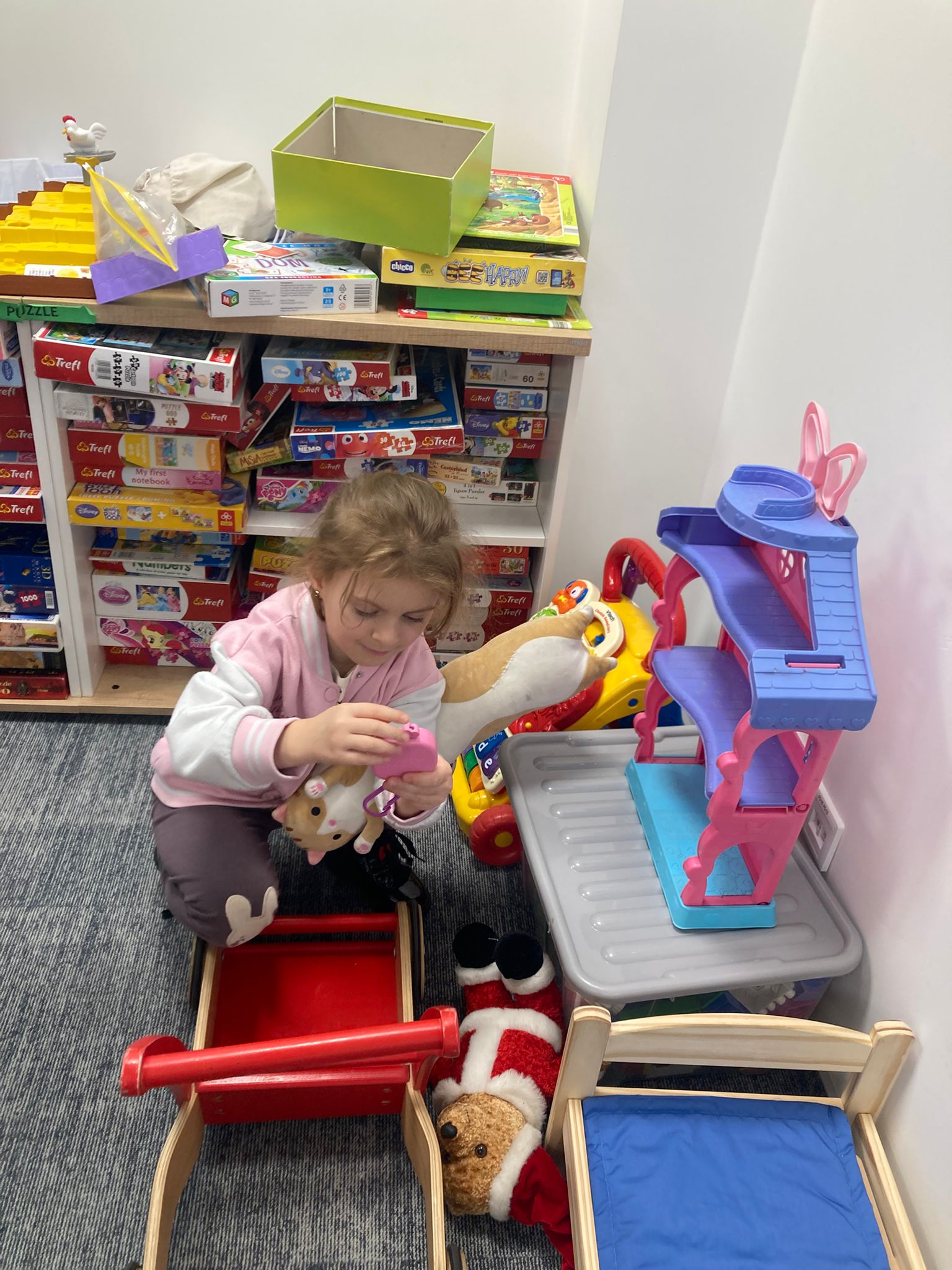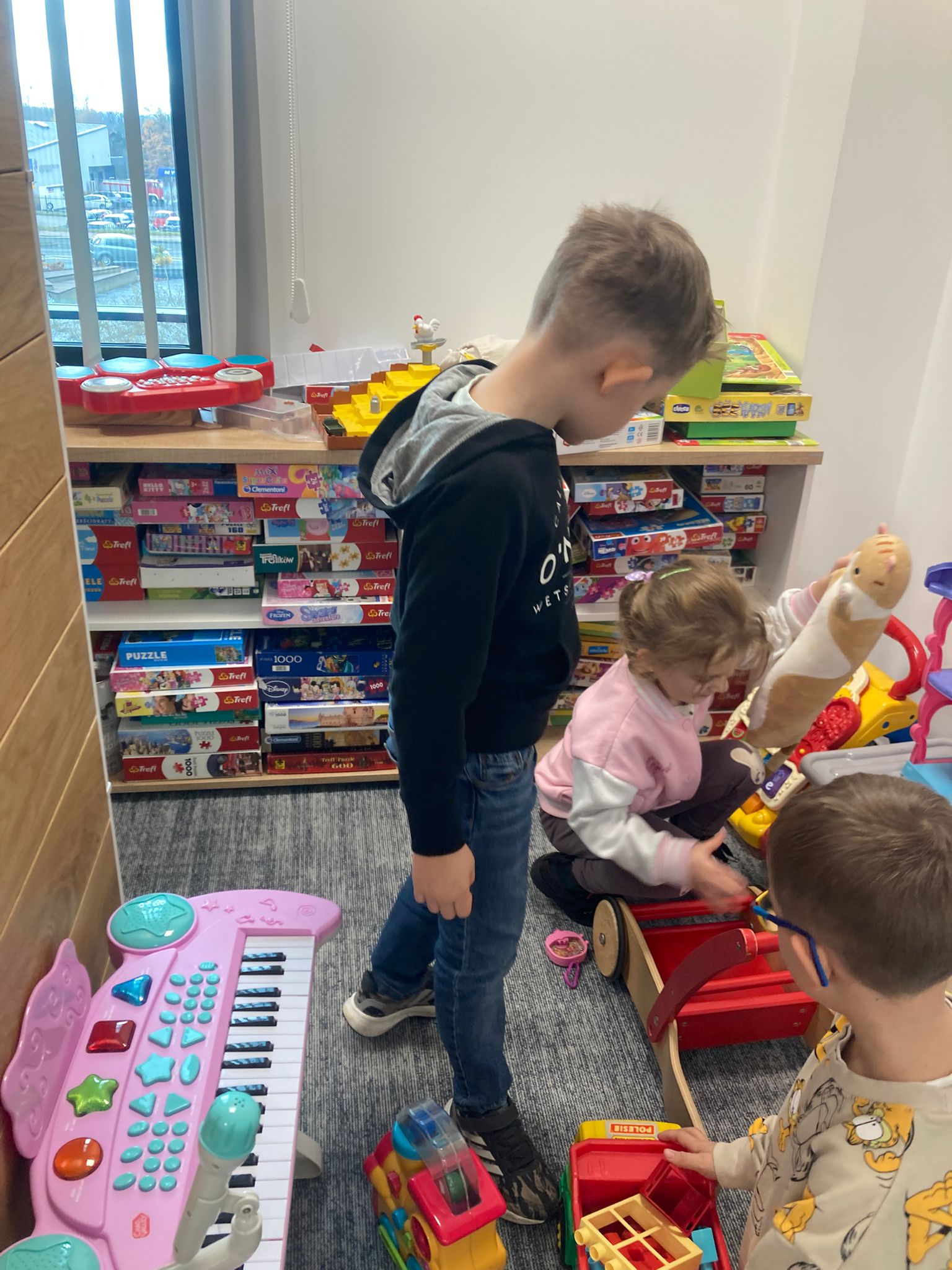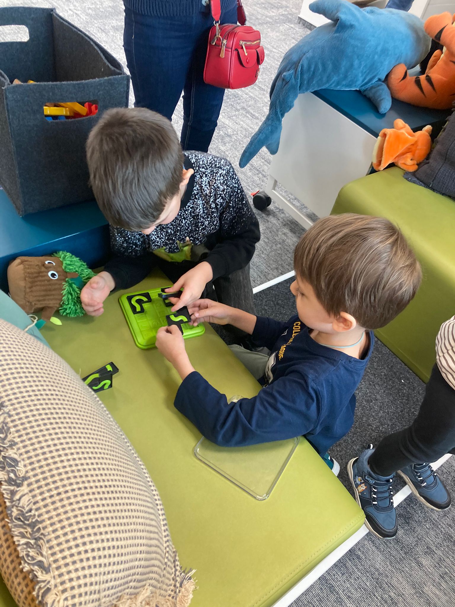 Wizytę rozpoczęliśmy od spotkania z seniorami,ktorzy przygotowali dla dzieciaków inscenizacje wierszy dziecięcych.Najbardziej spodobała się "Rzepka" Juliana Tuwima Dzieciaki z zaangażowaniem wcieliły się w rolę bohaterów i pomagały "wyrwać" rzepkę.Zabawa tak spodobała się dzieciakom że musiał być bis! Przedszkolaki zwiedziły bibliotekę - dział dziecięcy, bawiły się w strefie zabaw a także wzięły udział w warsztatach plastycznych , wykonały jesiennego jeżyka.