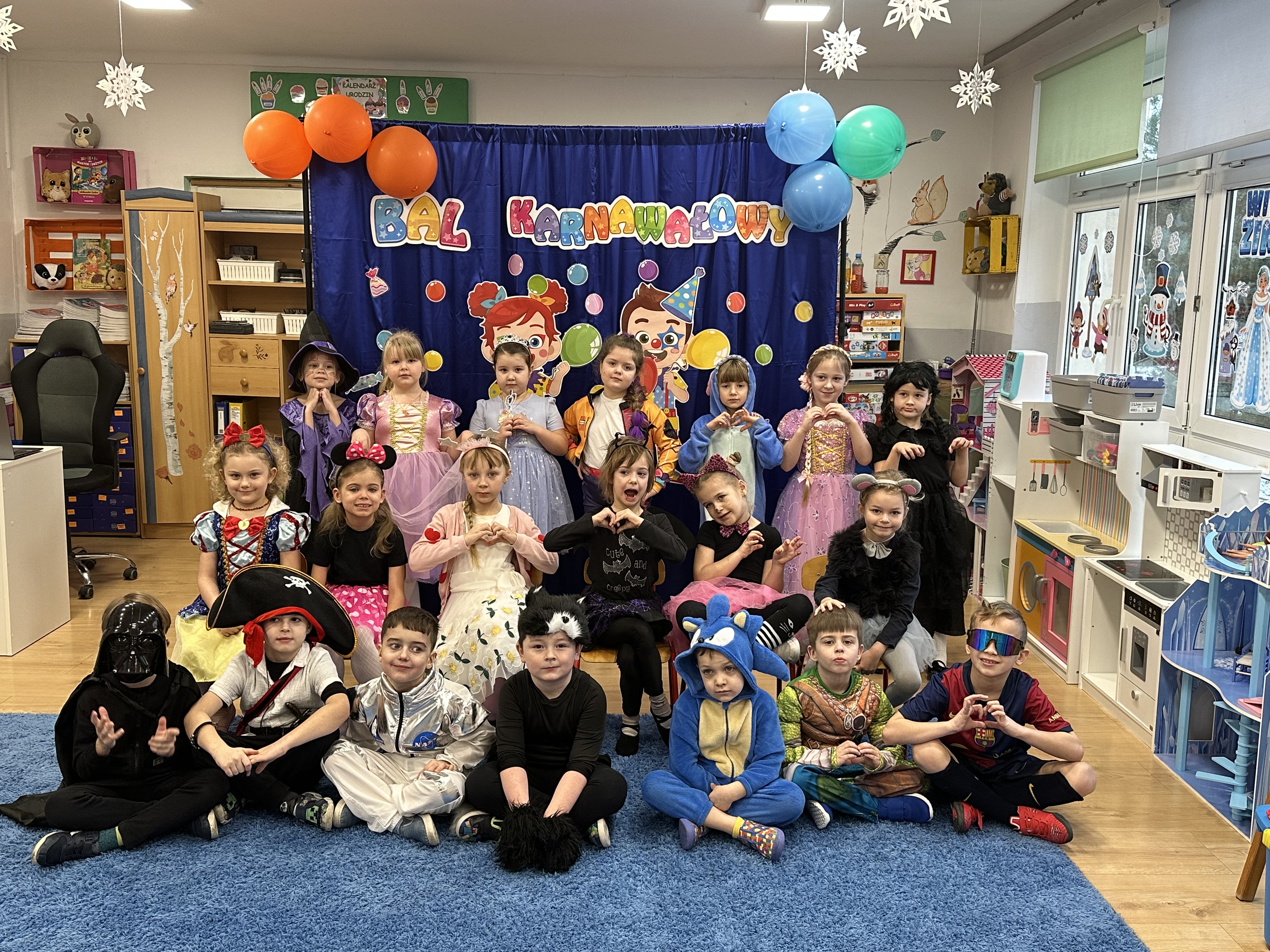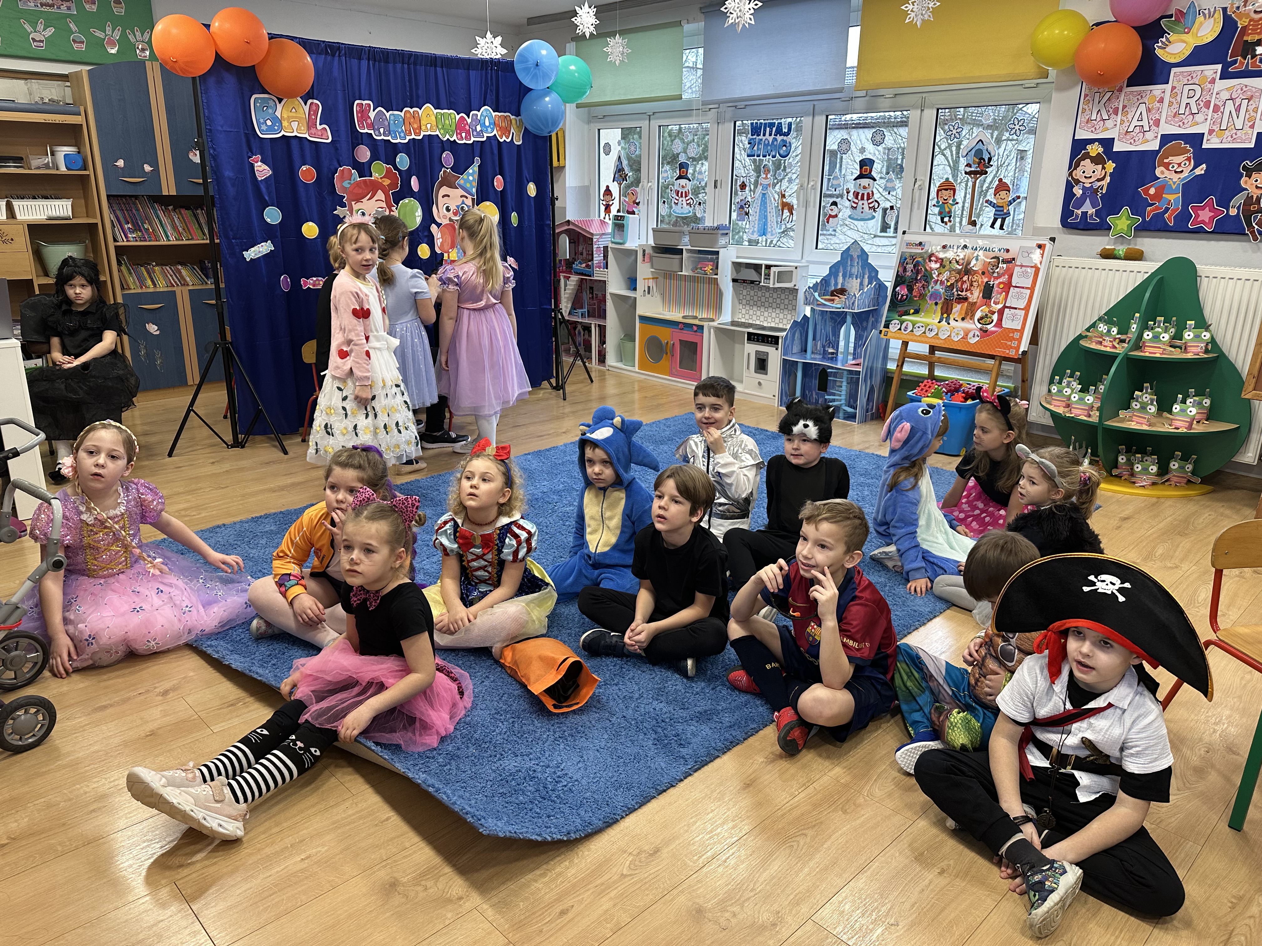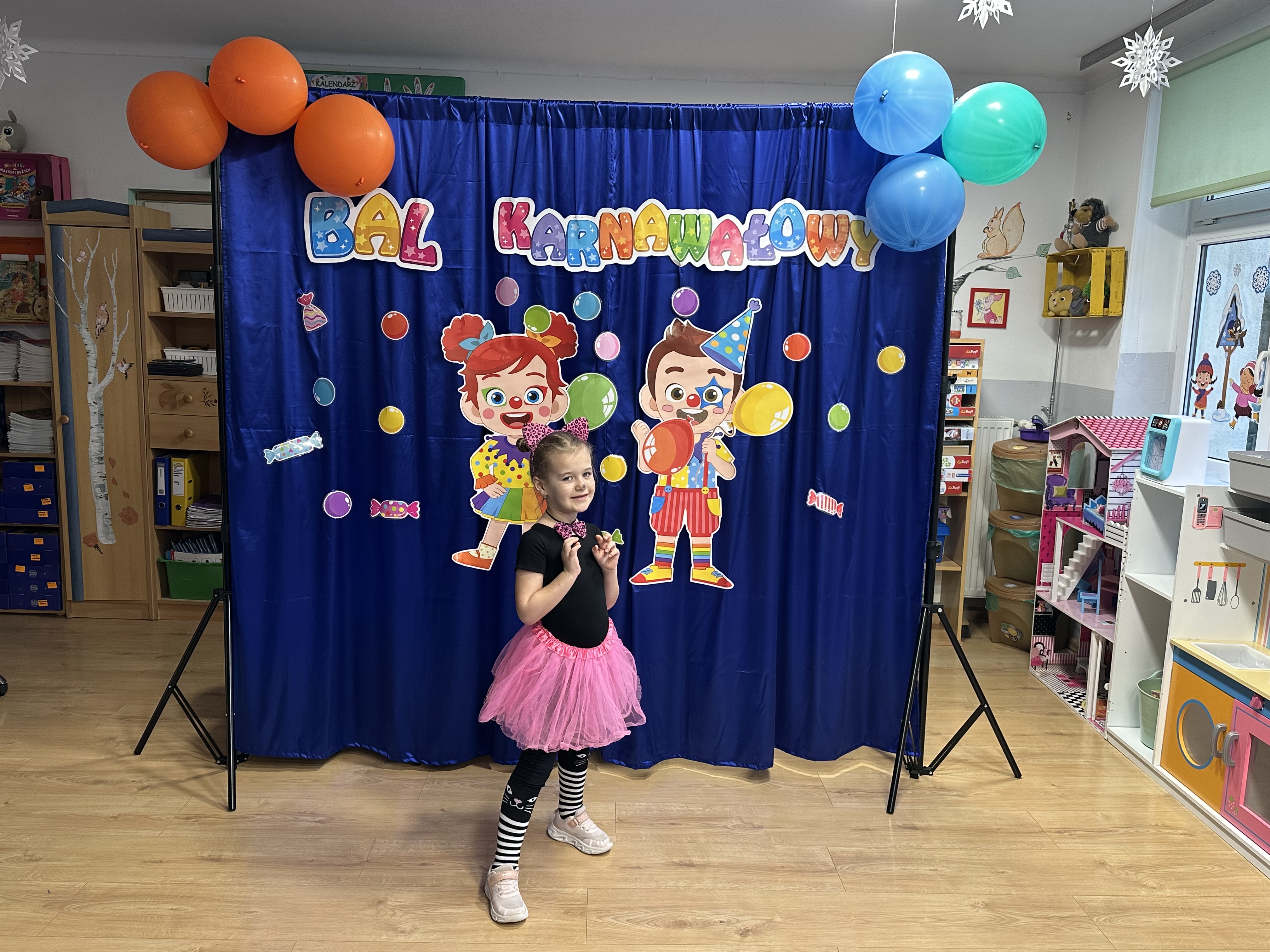 Dnia 26 stycznia w naszym przedszkolu odbył się długo wyczekiwany bal karnawałowy, w którym uczestniczyły wszystkie grupy przedszkolne. Dzieci zgromadziły się w pięknie i bajecznie udekorowanej sali, która już od progu zachwycała kolorami oraz karnawałowym wystrojem.