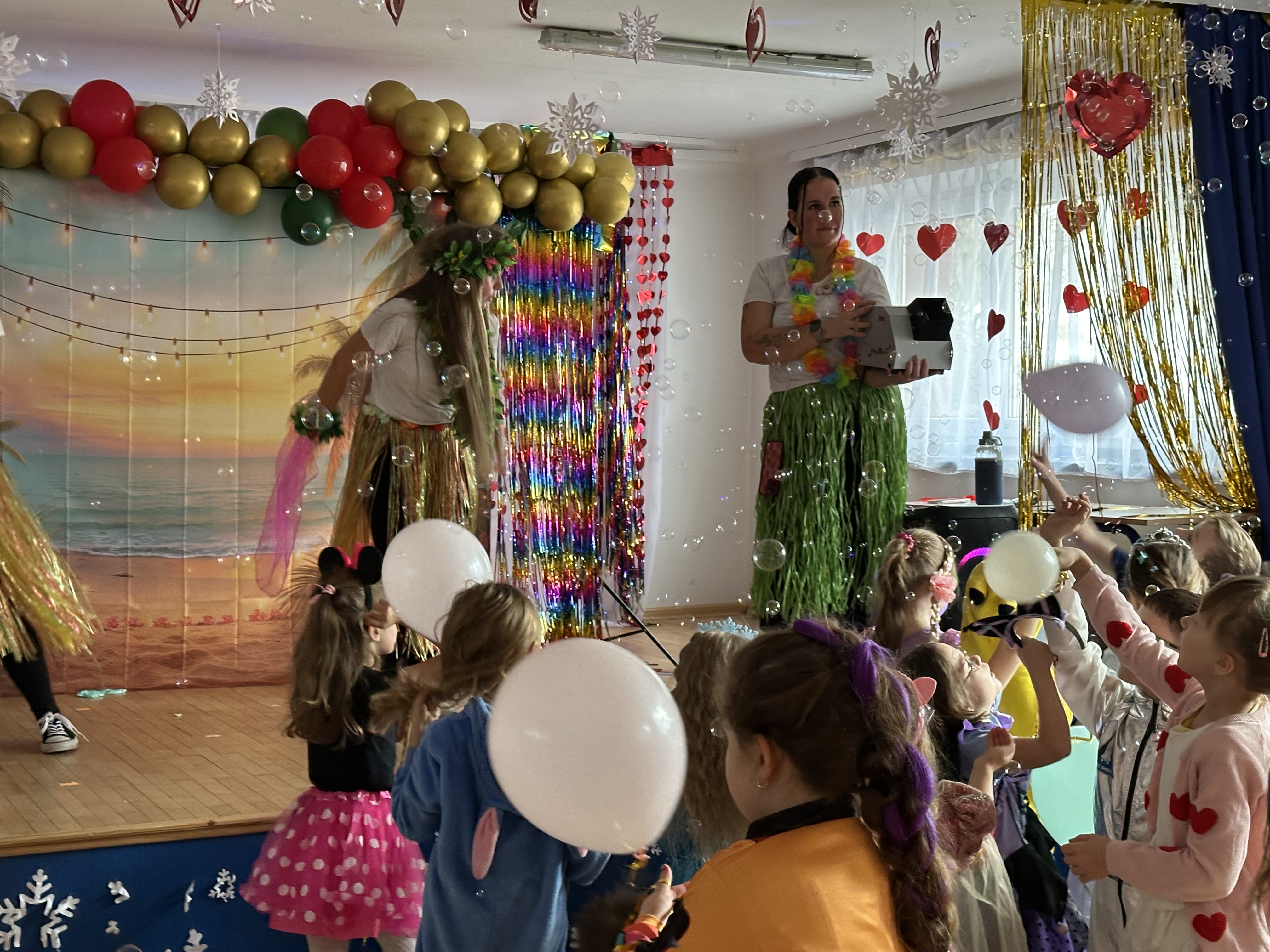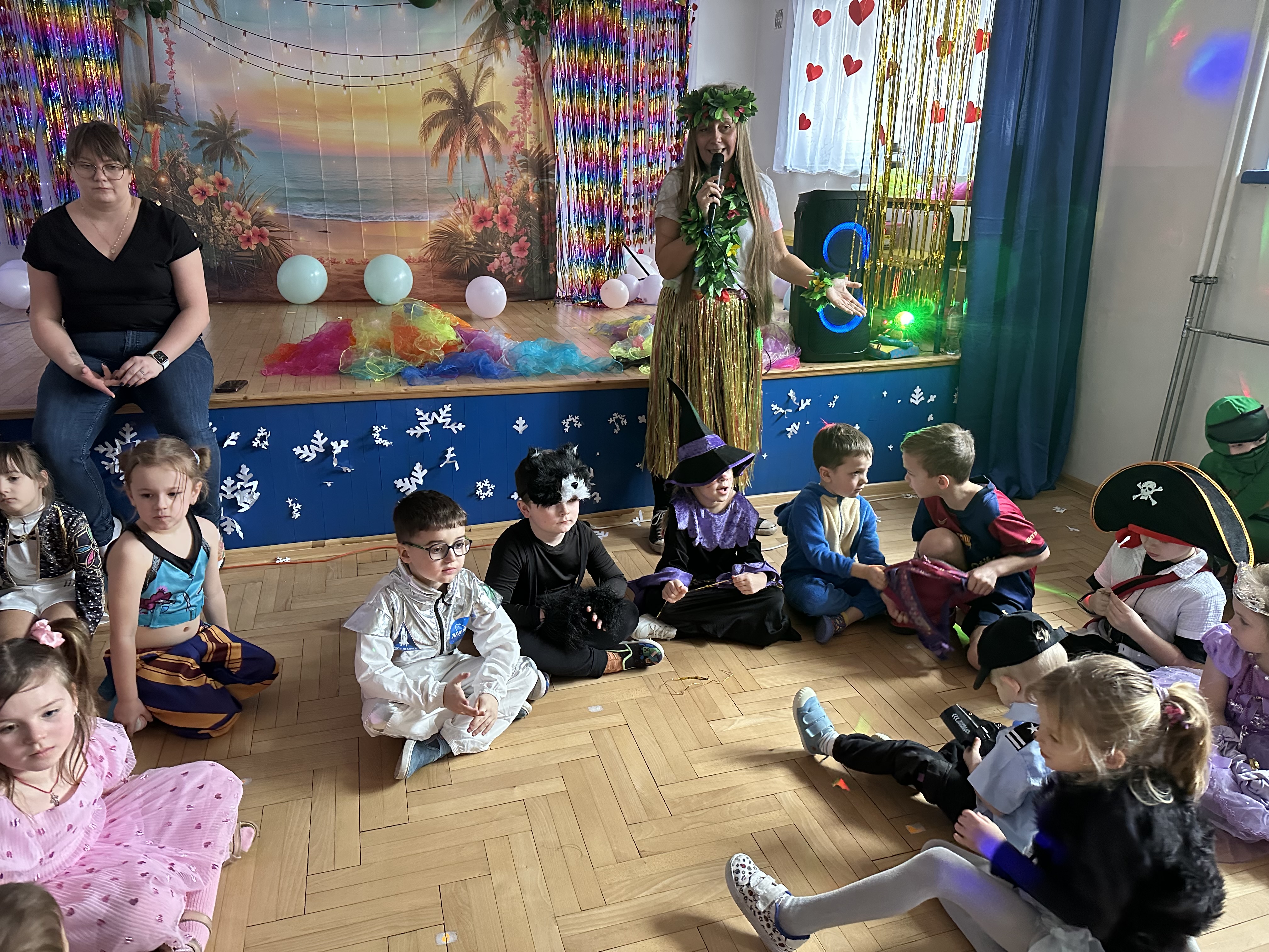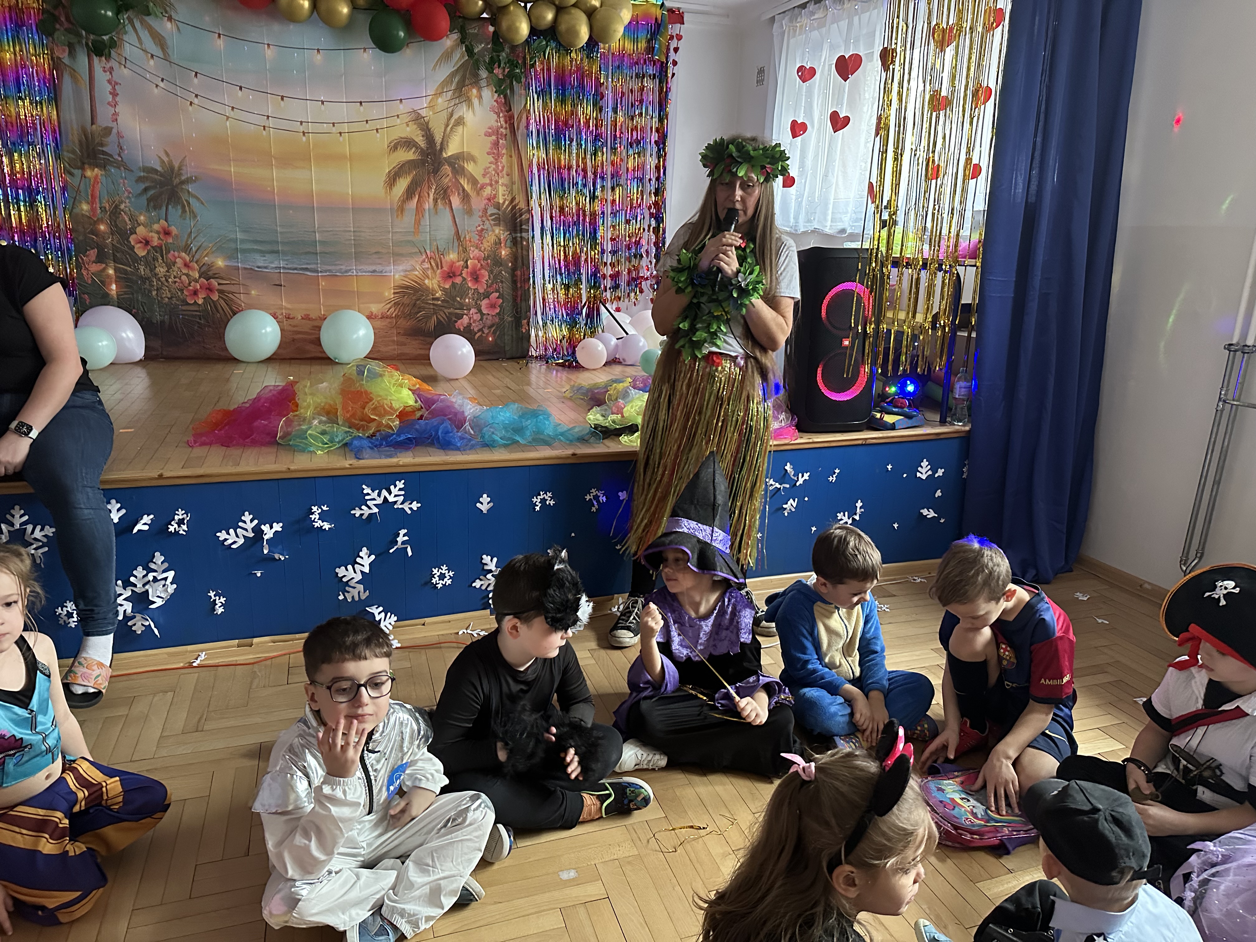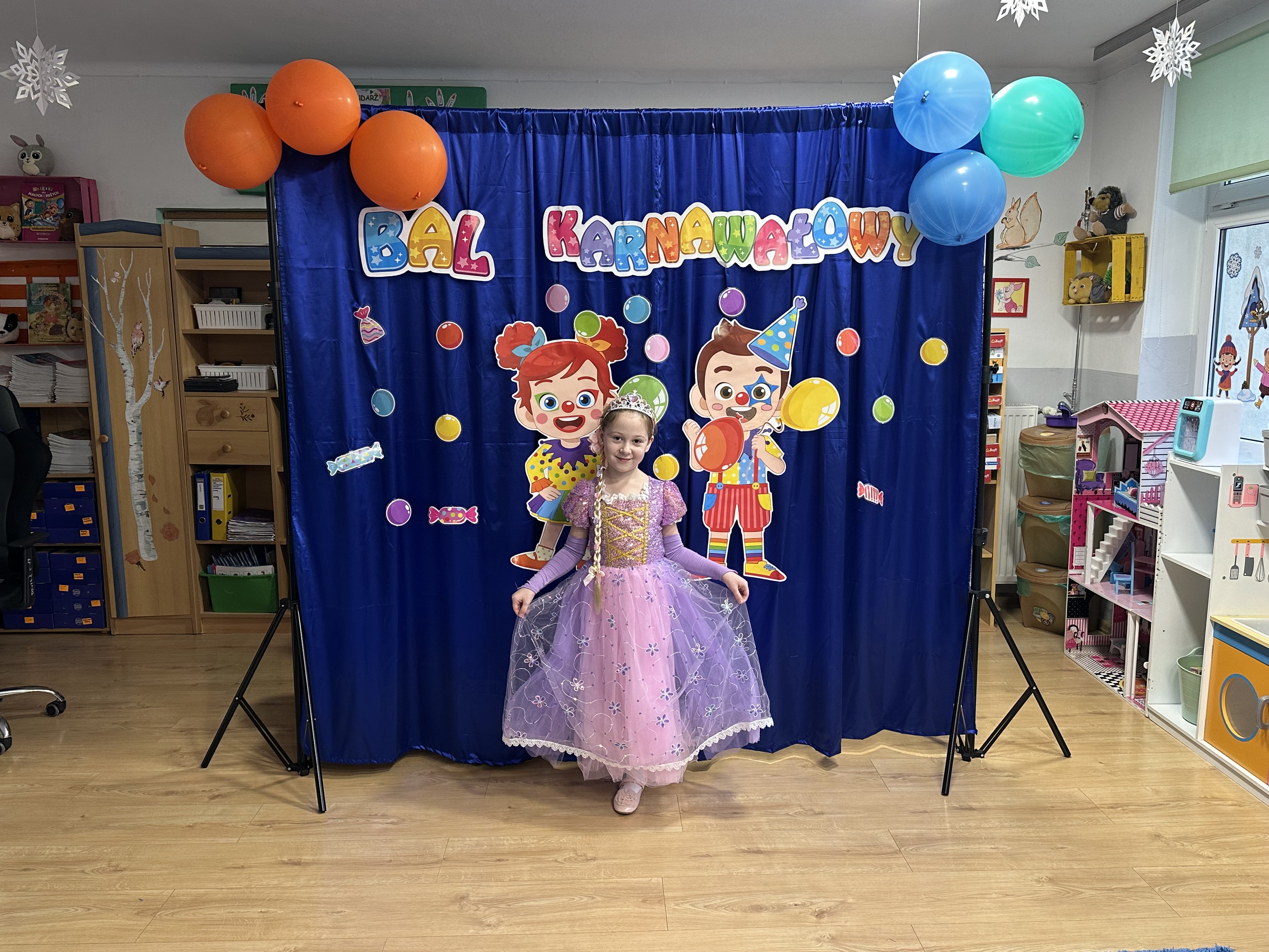 Dnia 26 stycznia w naszym przedszkolu odbył się długo wyczekiwany bal karnawałowy, w którym uczestniczyły wszystkie grupy przedszkolne. Dzieci zgromadziły się w pięknie i bajecznie udekorowanej sali, która już od progu zachwycała kolorami oraz karnawałowym wystrojem.