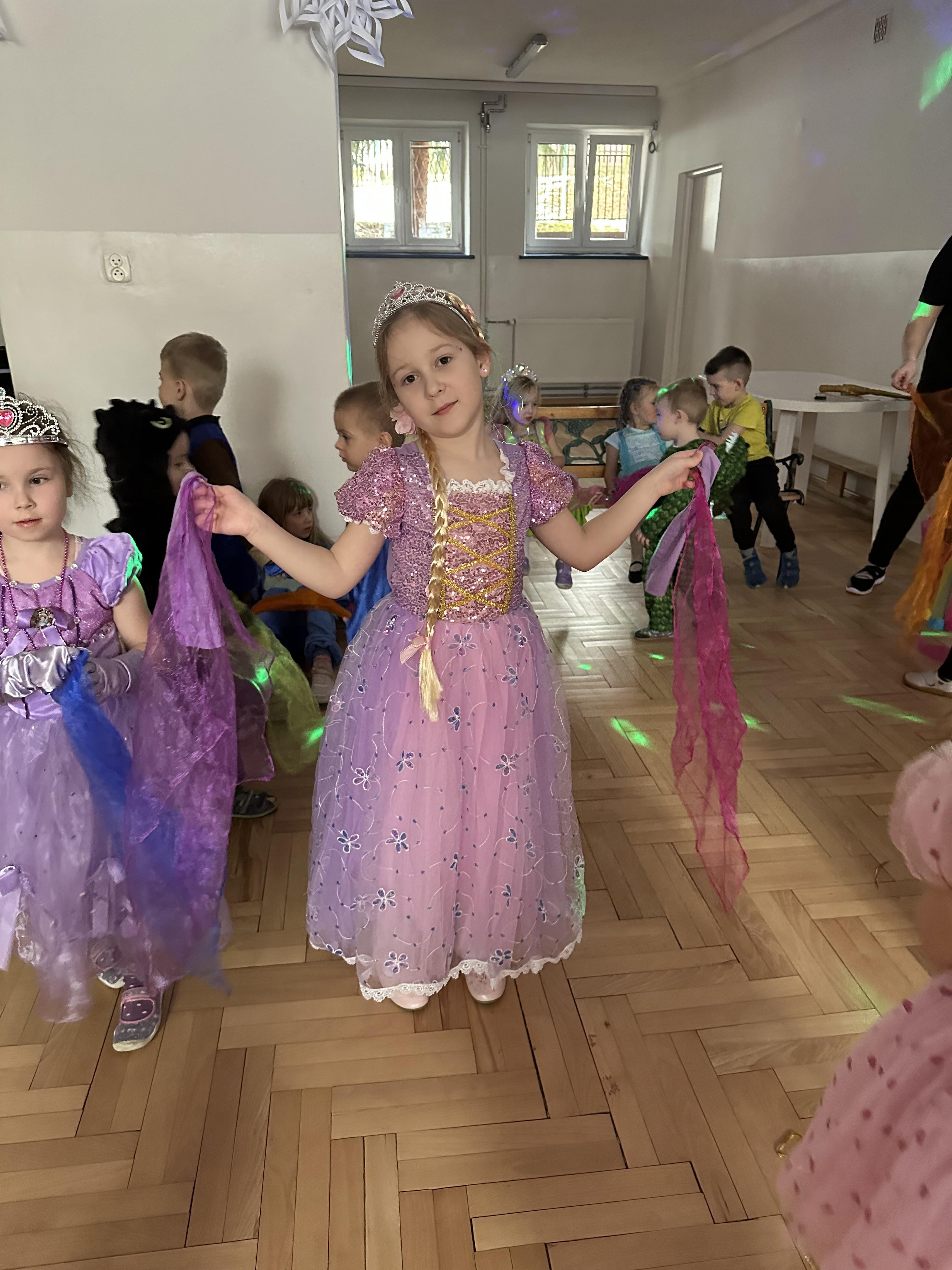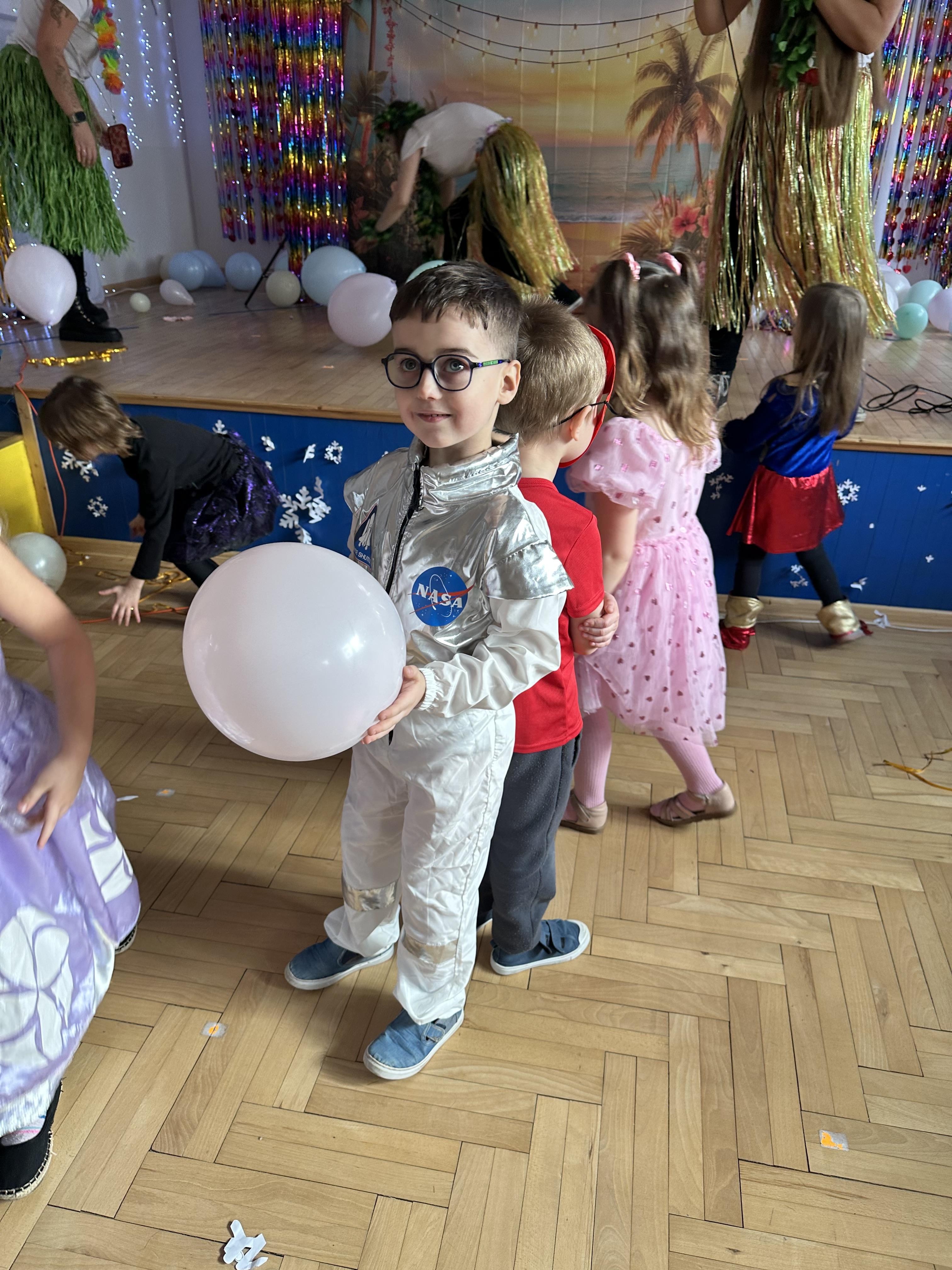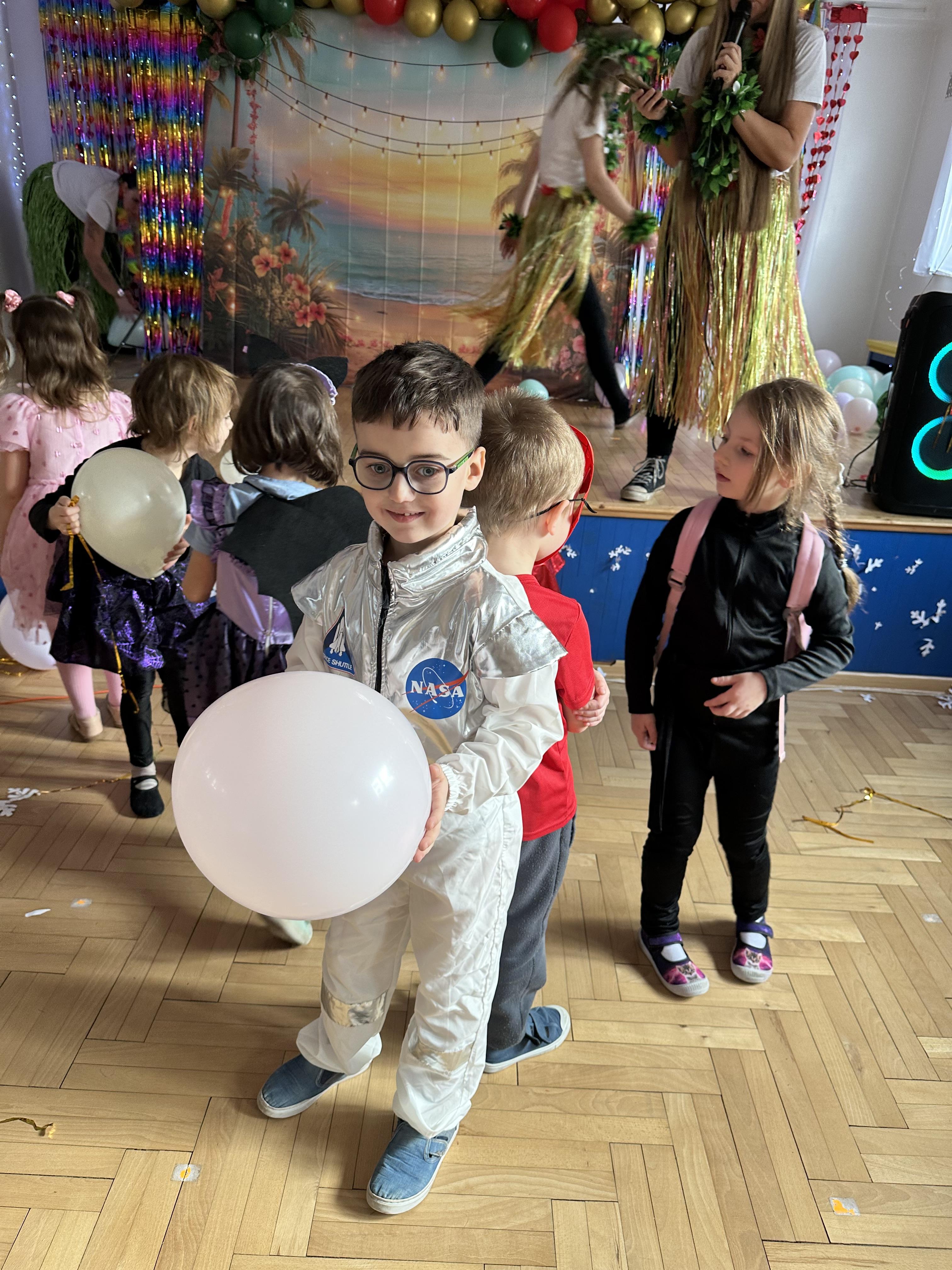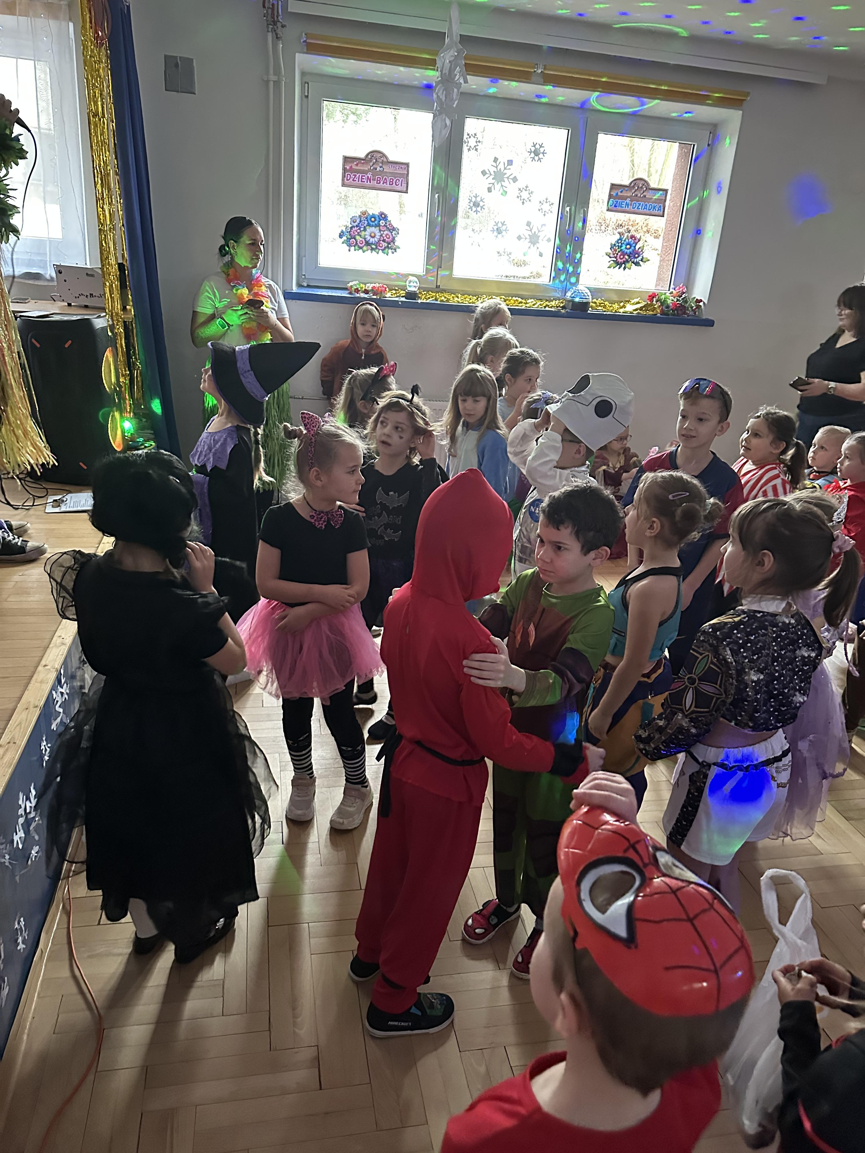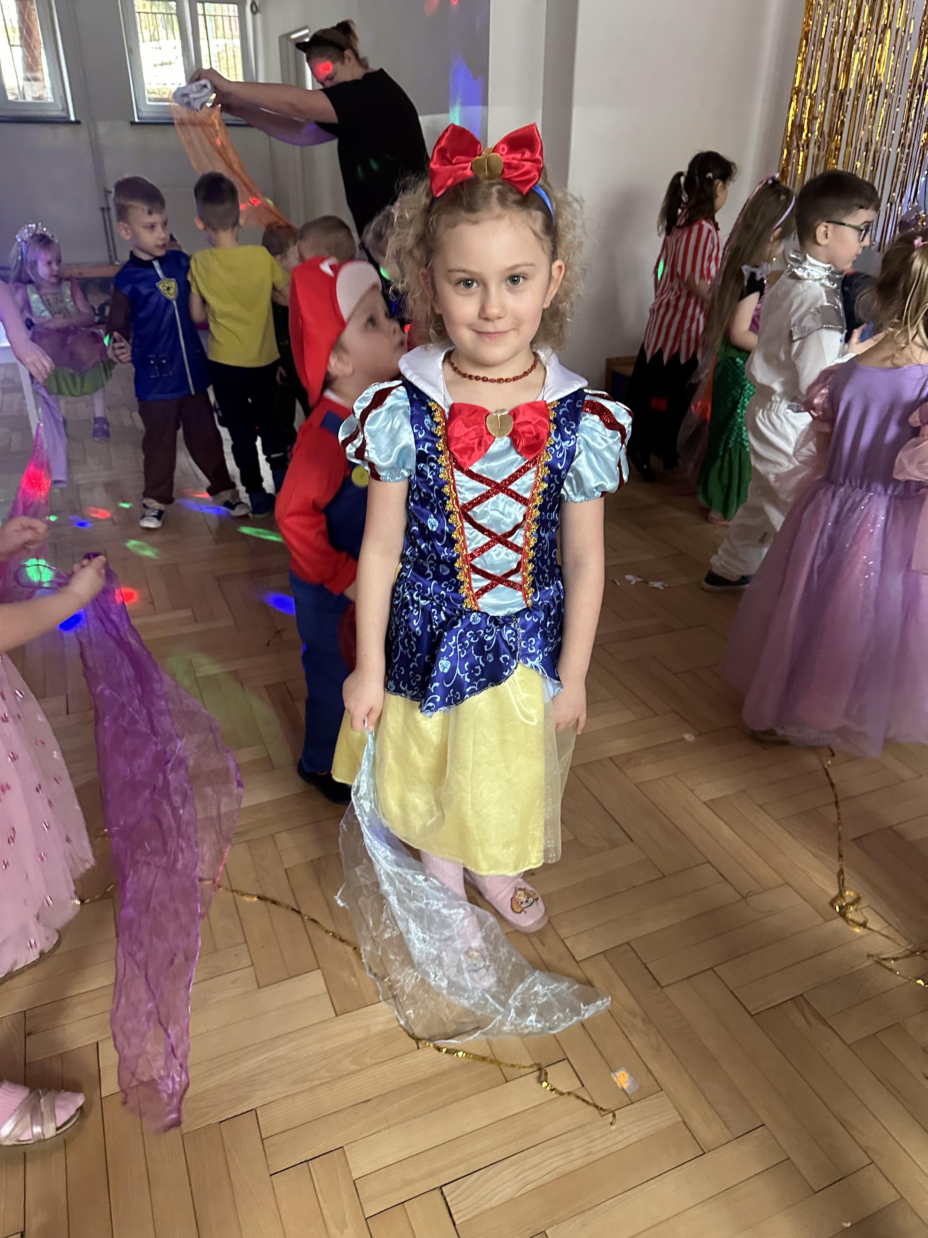 W dalszej części odbyły się tańce , wesołe pląsy oraz liczne konkursy i zabawy ruchowe. Wszystkie aktywności przebiegały w radosnej, serdecznej i przyjaznej atmosferze, sprzyjającej integracji dzieci z różnych grup. Bal dostarczył przedszkolakom wielu niezapomnianych wrażeń oraz był okazją do wspólnej zabawy i rozwijania relacji rówieśniczych.
