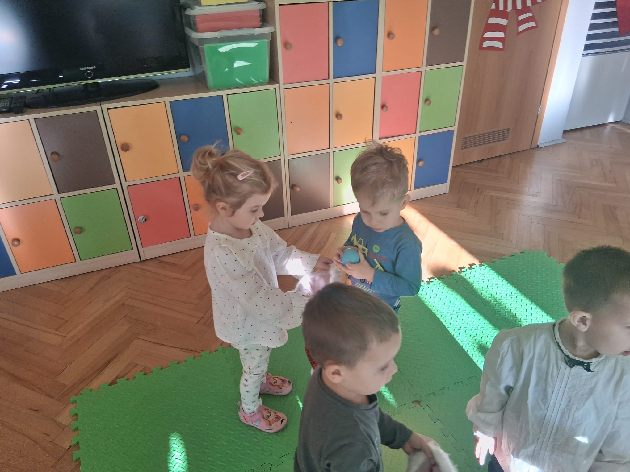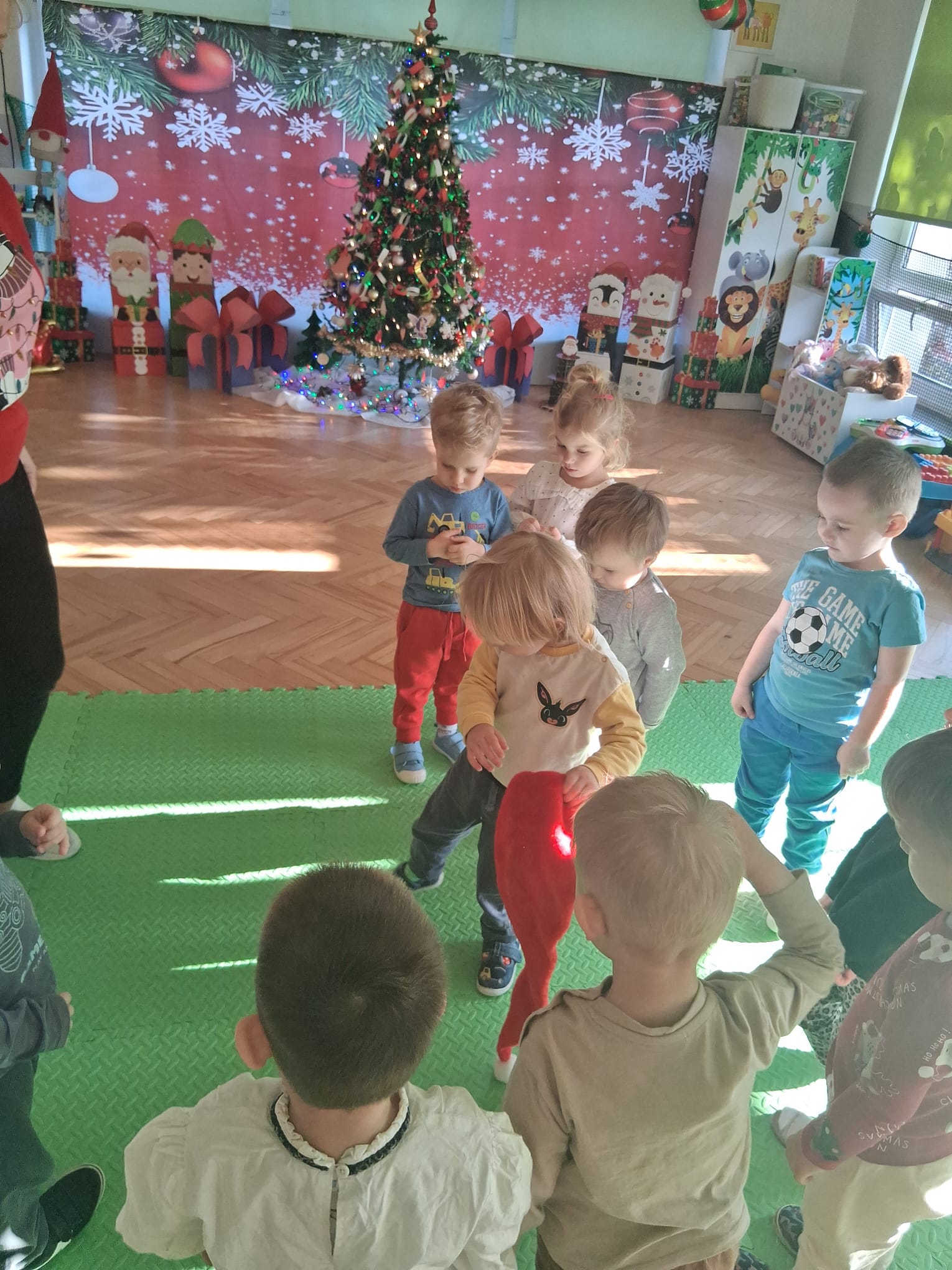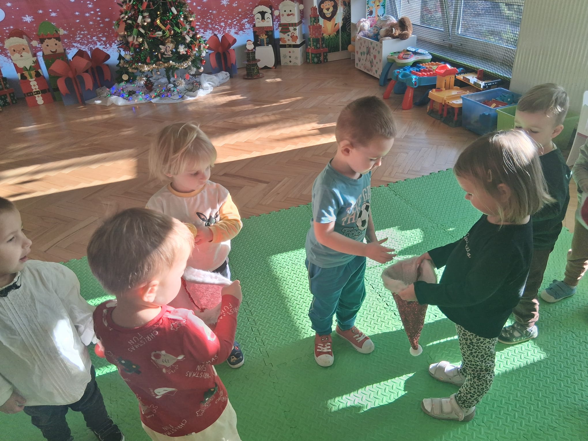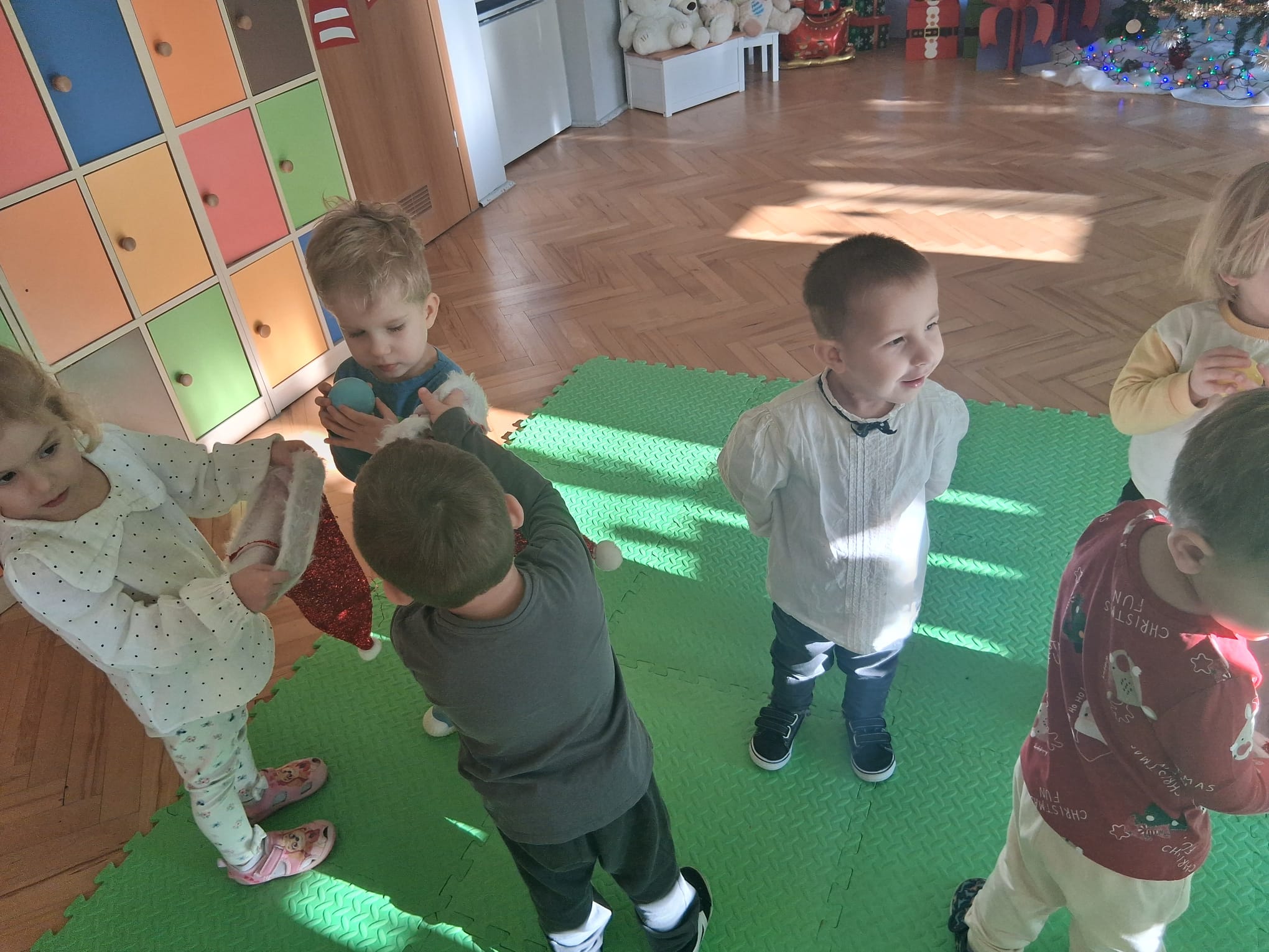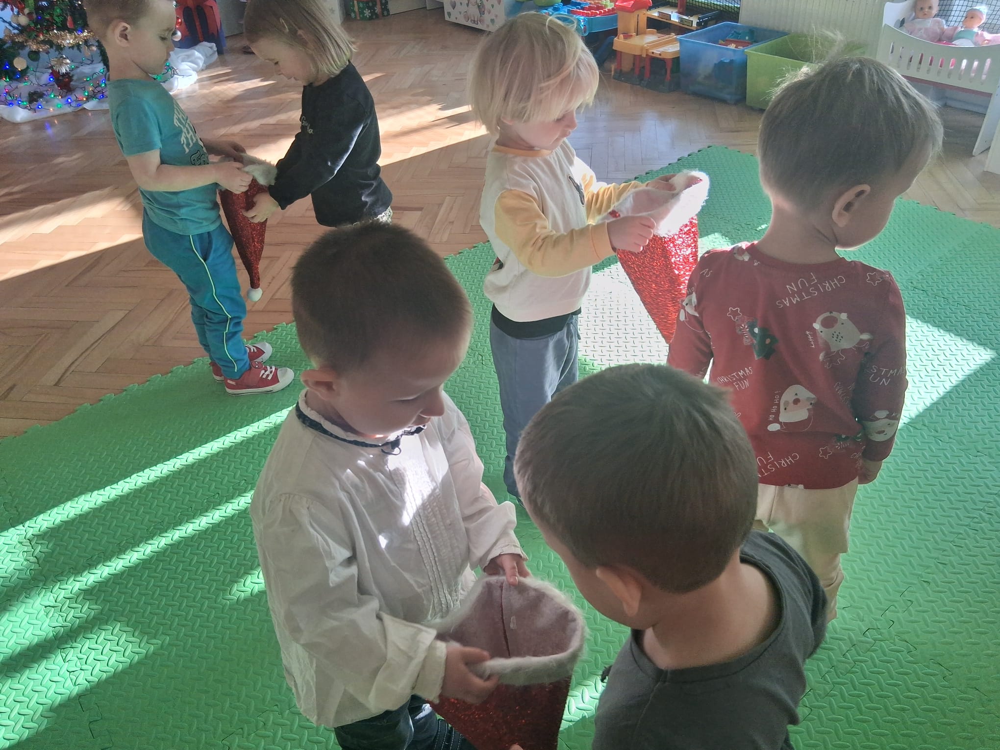 Zabawy z czapką Mikołaja stanowią atrakcyjną, bajkową formę realizacji programu edukacyjnego. Magiczna czapka wprowadza dzieci w świąteczny nastrój, pobudza wyobraźnię i zachęca do aktywnego udziału w zadaniach. Podczas wspólnych zabaw rozwijana jest sprawność ruchowa, koordynacja oraz umiejętność współpracy w grupie. Dzieci uczą się przestrzegania zasad, koncentracji uwagi i twórczego działania, a całości towarzyszy radość, uśmiech i atmosfera małej, mikołajowej przygody.