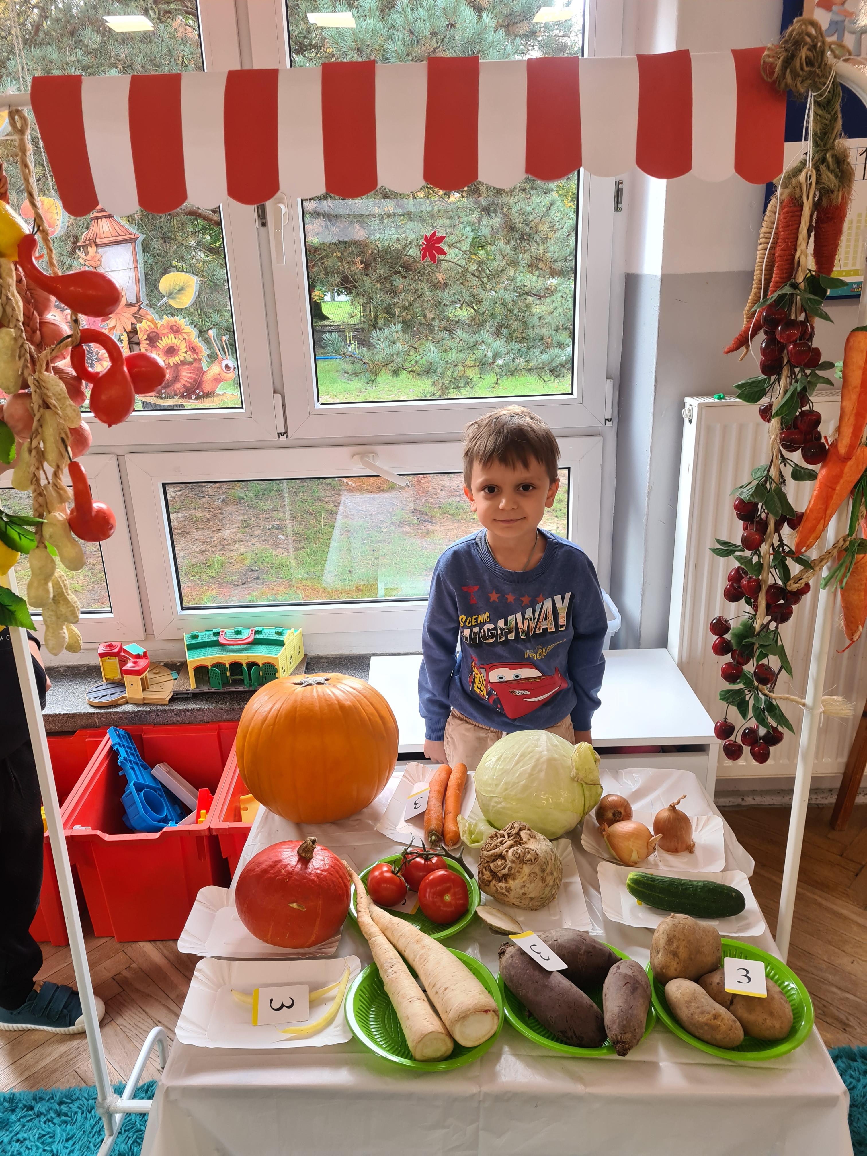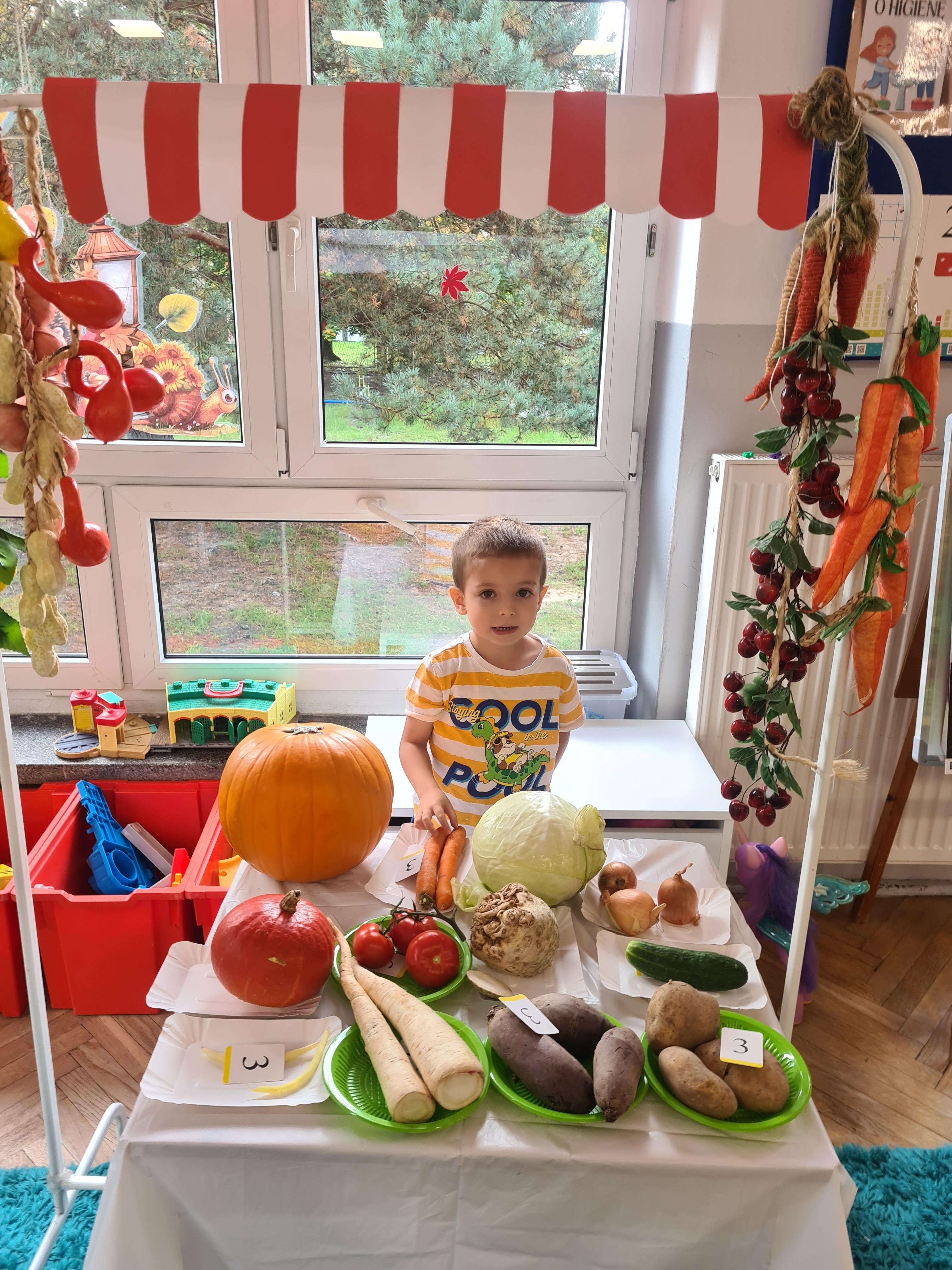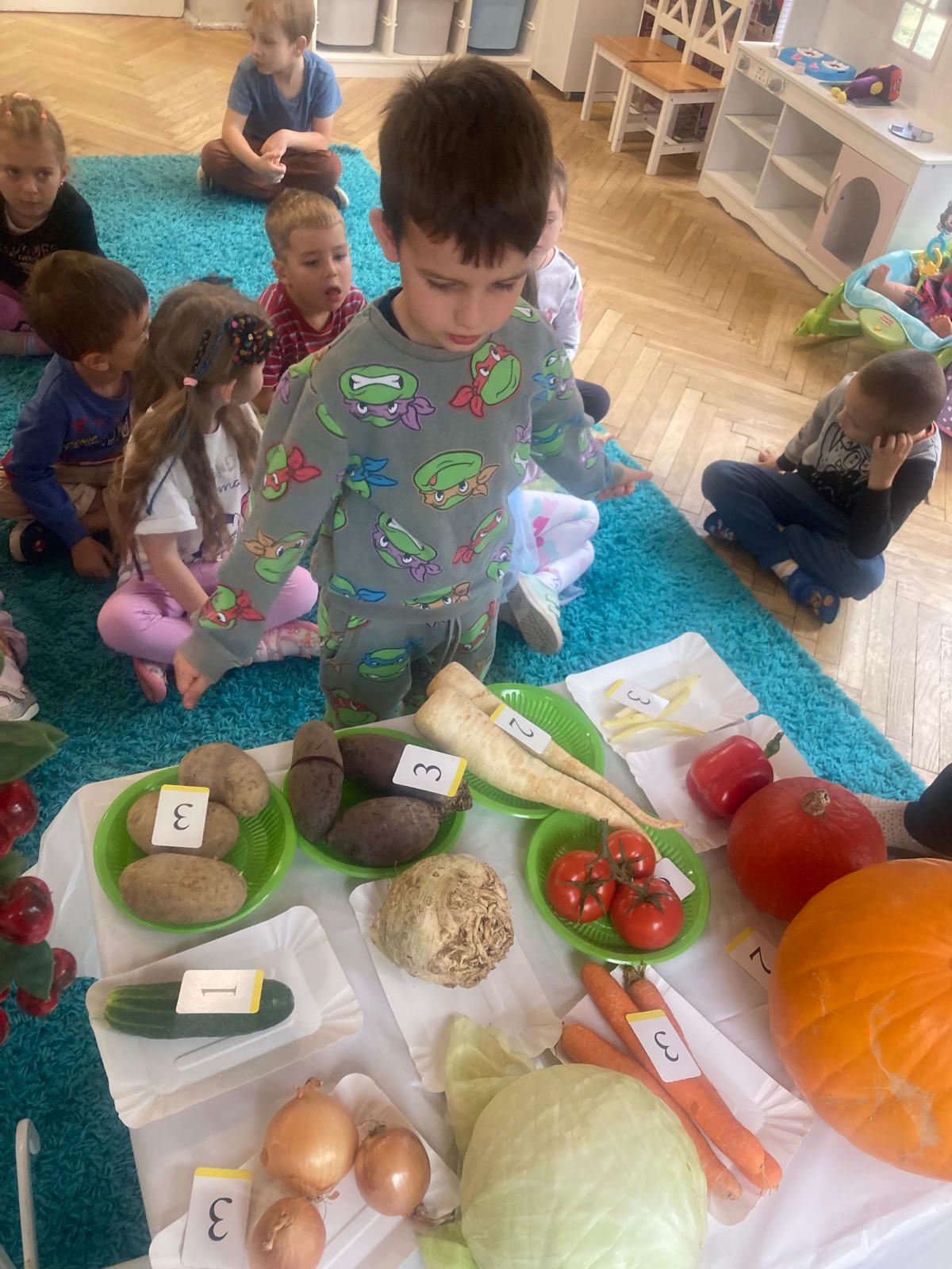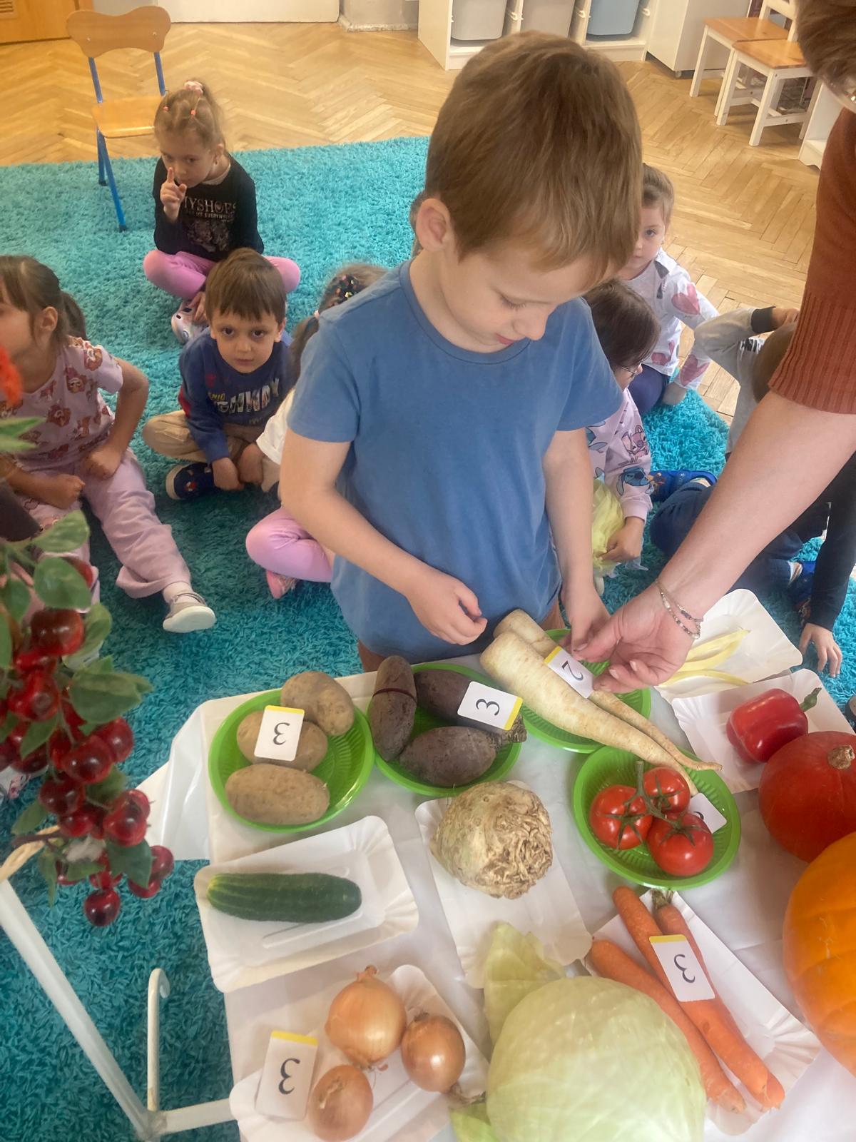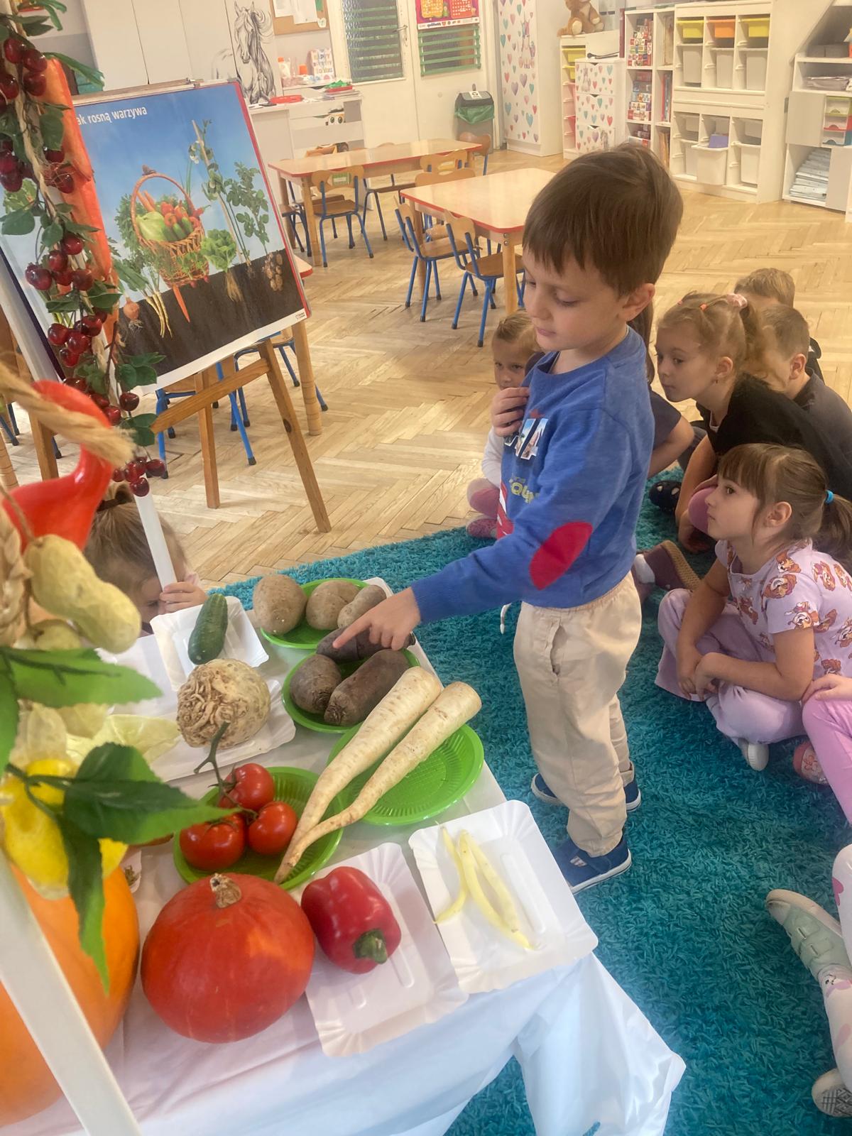 O tym co jemy,co jest dobre dla zdrowia rozmawialiśmy w oparciu o ilustracje,wiersze,opowiadania i zagadki.Na straganie z warzywami utrwalaliśmy ich nazwę, przeliczaliśmy sztuki poznajac cyfrę 3 w aspekcie kardynalnym i porządkowym.Witaminowe przyjęcie uswiadomilo dzieciakom wpływ witamin na organizm.Ćwiczyliśmy swoją sprawność manualną poprzez zabawy sensoryczne,poznawaliśmy wszystkimi zmysłami warzywa i owoce.Rozpoznawaliśmy które warzywa rosną pod ziemią,które nad ziemią."Sadziliśmy" ziemniaki doskonalac swój spryt. W tym tygodniu swoje urodziny obchodził Kamilek! Duuuużo zdrówka Kamilku życzymy!