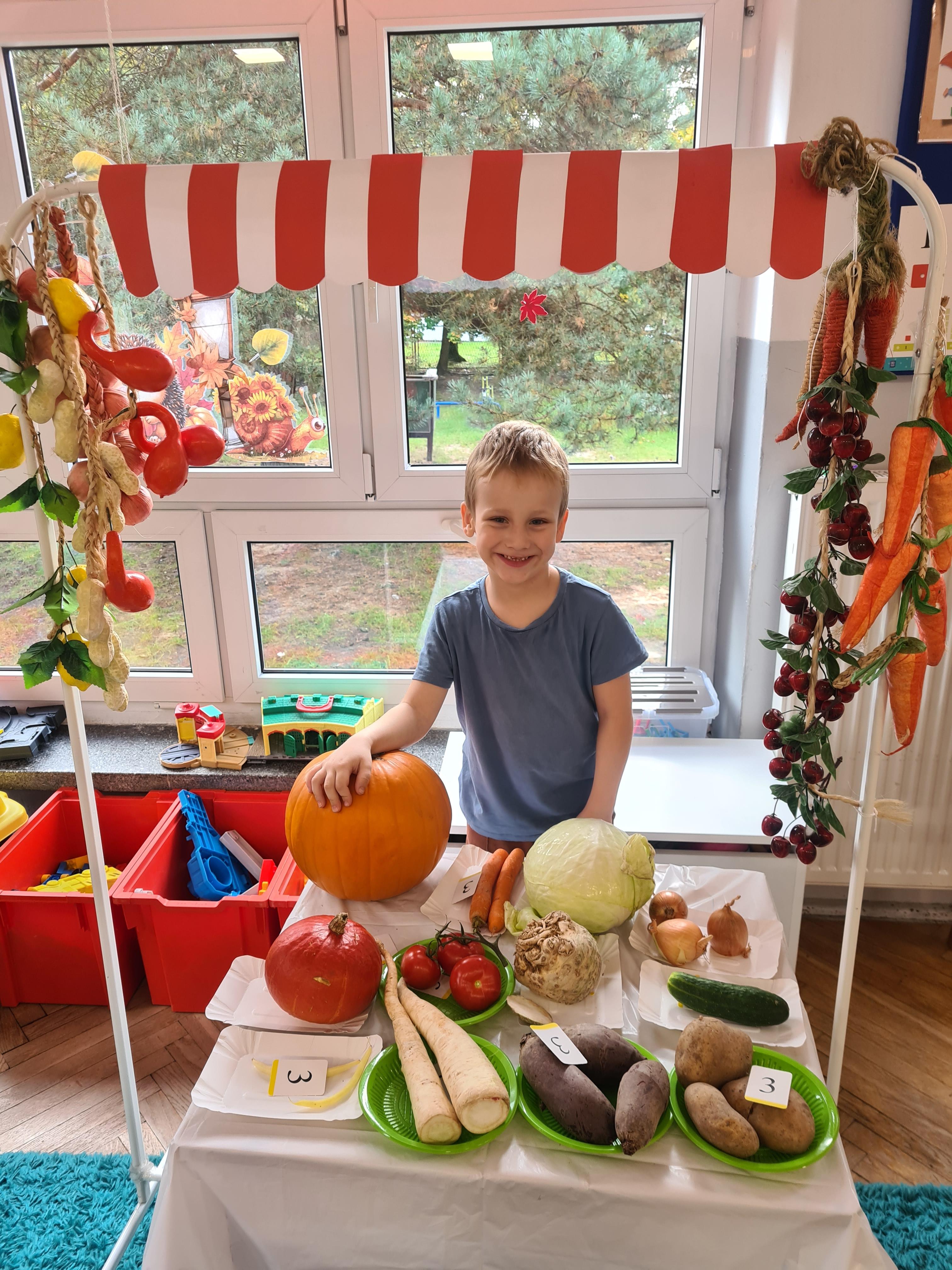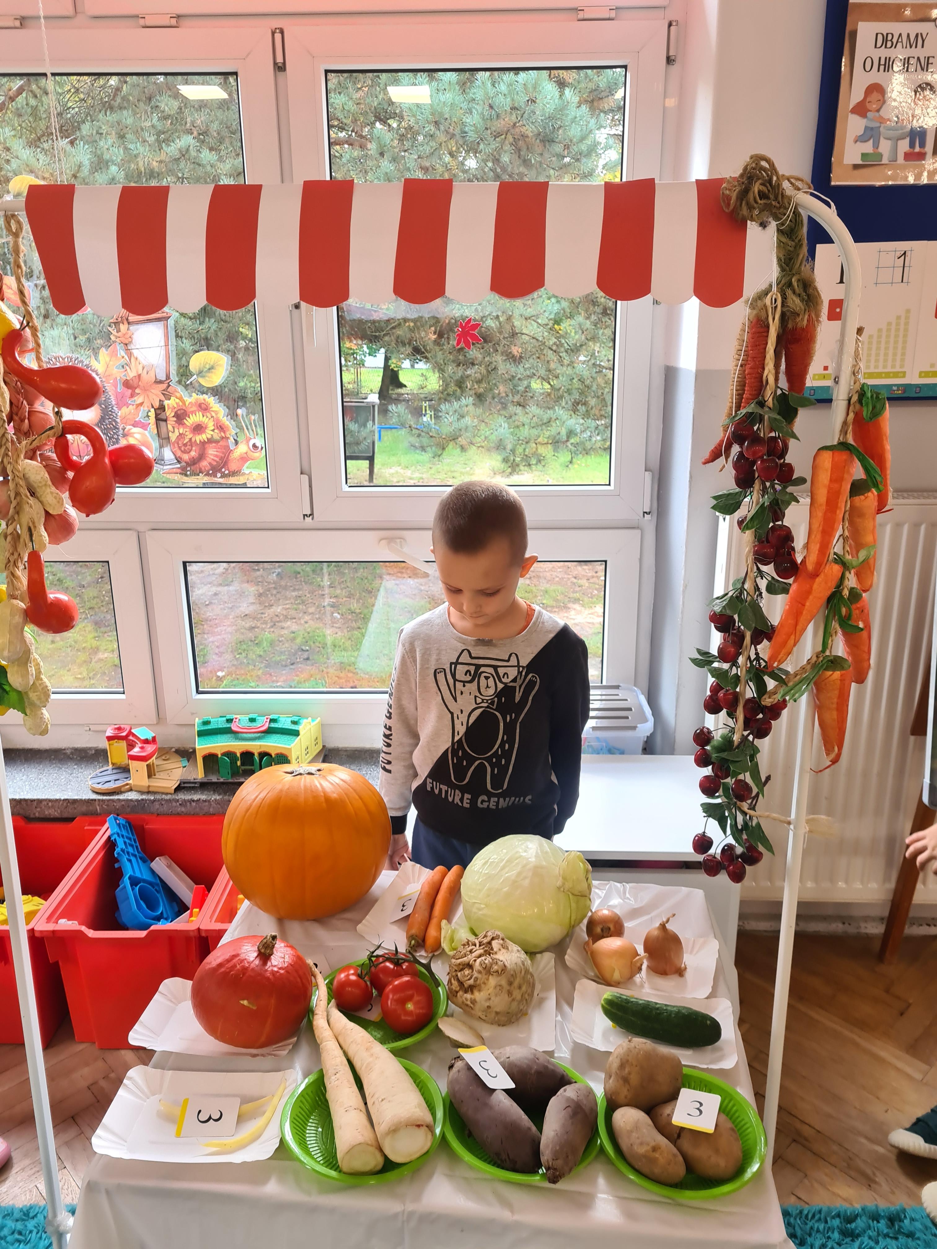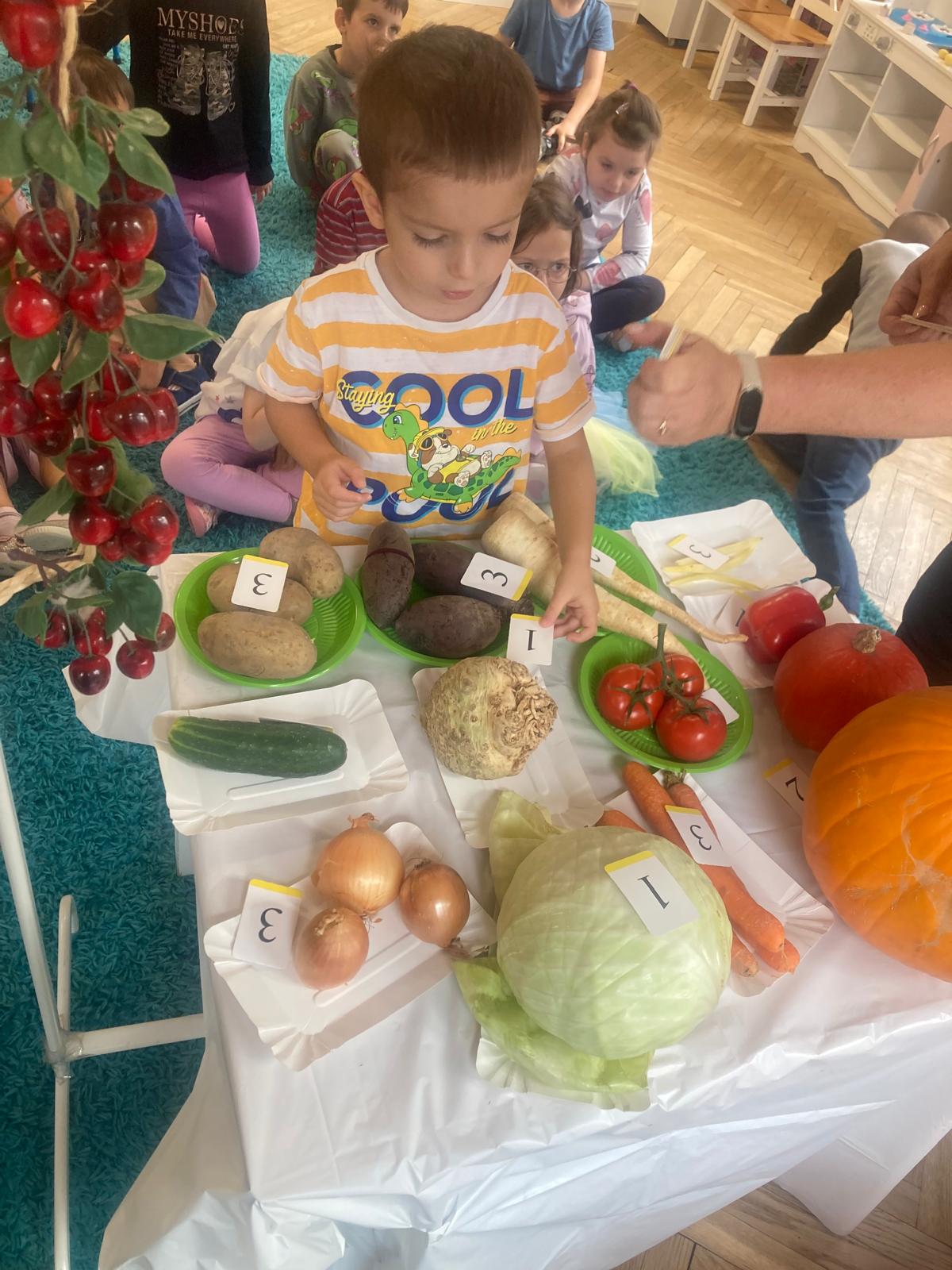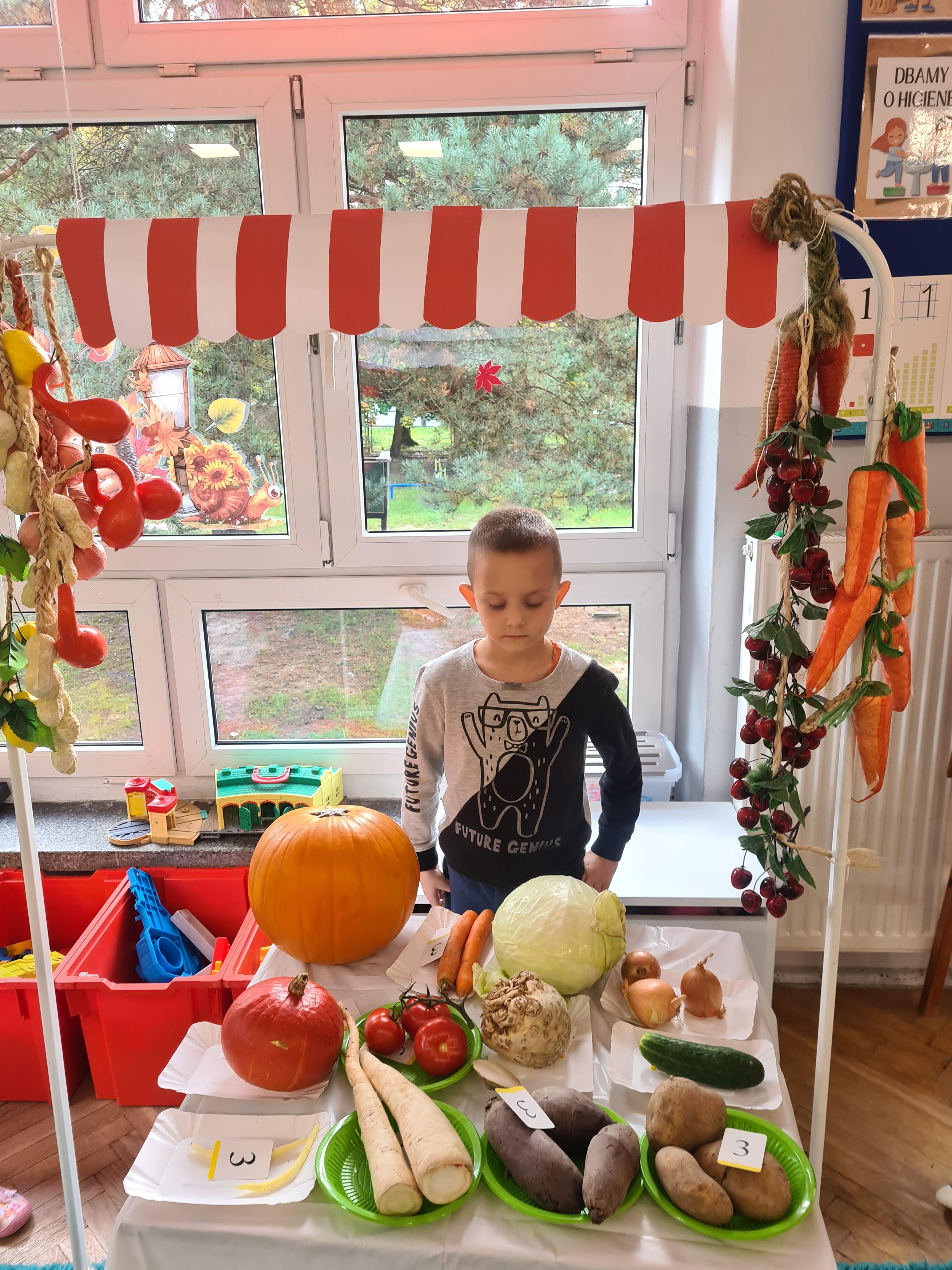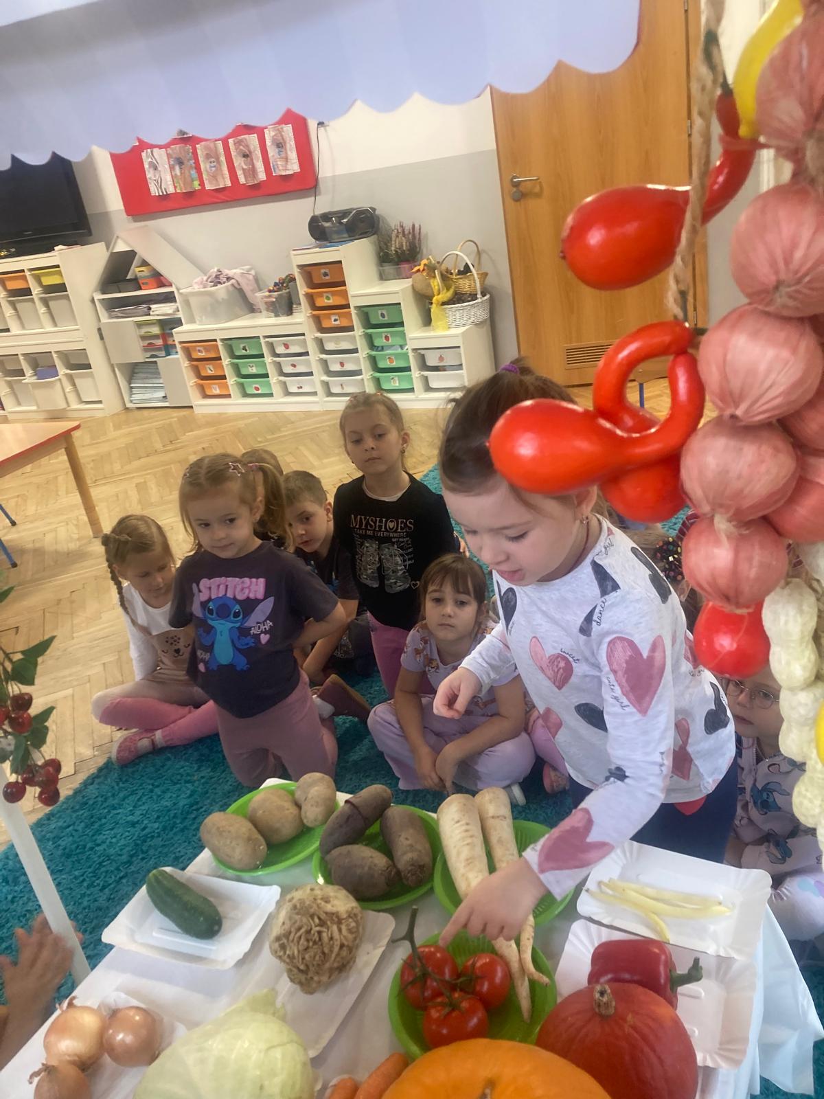 O tym co jemy,co jest dobre dla zdrowia rozmawialiśmy w oparciu o ilustracje,wiersze,opowiadania i zagadki.Na straganie z warzywami utrwalaliśmy ich nazwę, przeliczaliśmy sztuki poznajac cyfrę 3 w aspekcie kardynalnym i porządkowym.Witaminowe przyjęcie uswiadomilo dzieciakom wpływ witamin na organizm.Ćwiczyliśmy swoją sprawność manualną poprzez zabawy sensoryczne,poznawaliśmy wszystkimi zmysłami warzywa i owoce.Rozpoznawaliśmy które warzywa rosną pod ziemią,które nad ziemią."Sadziliśmy" ziemniaki doskonalac swój spryt. W tym tygodniu swoje urodziny obchodził Kamilek! Duuuużo zdrówka Kamilku życzymy!