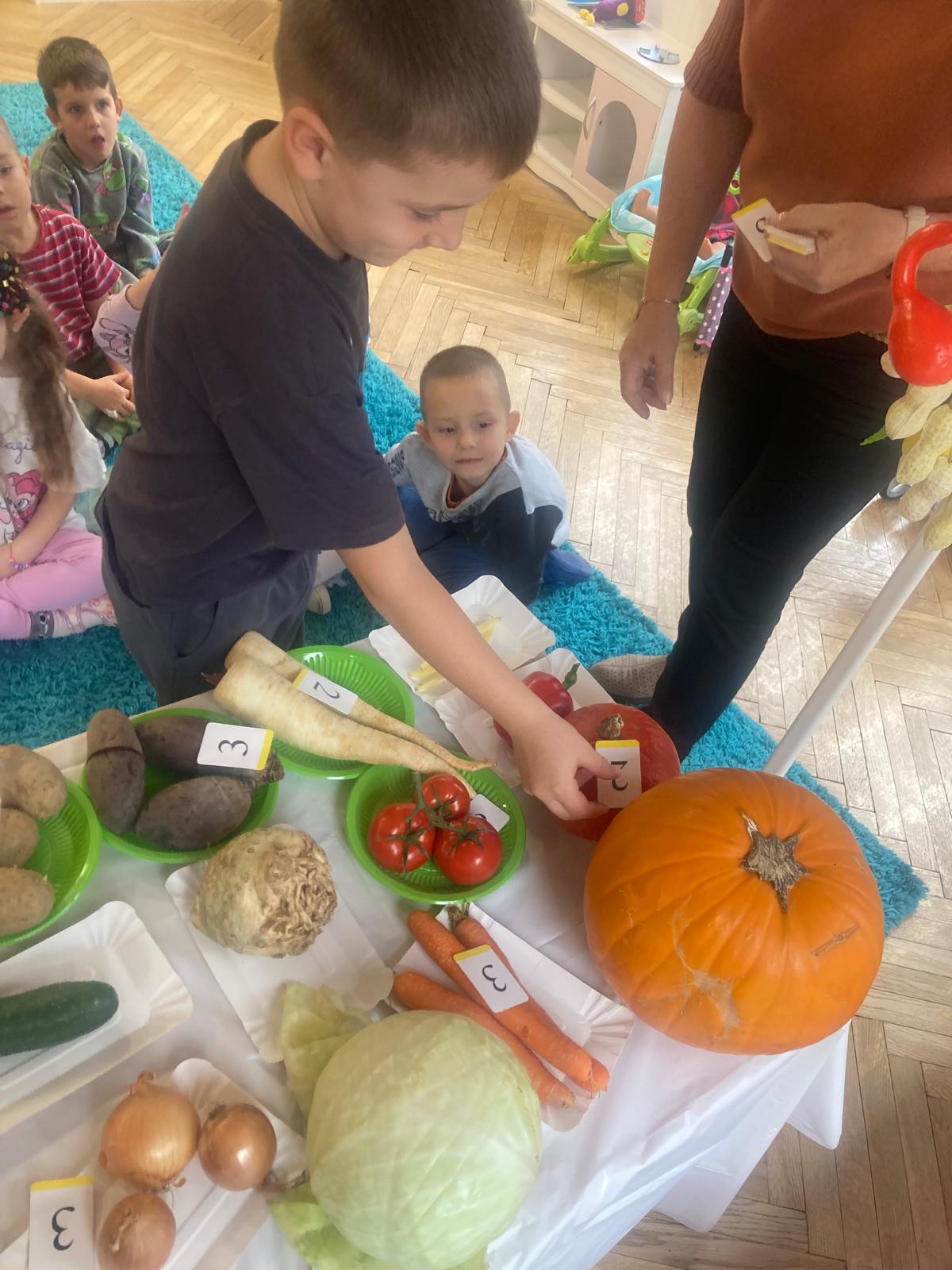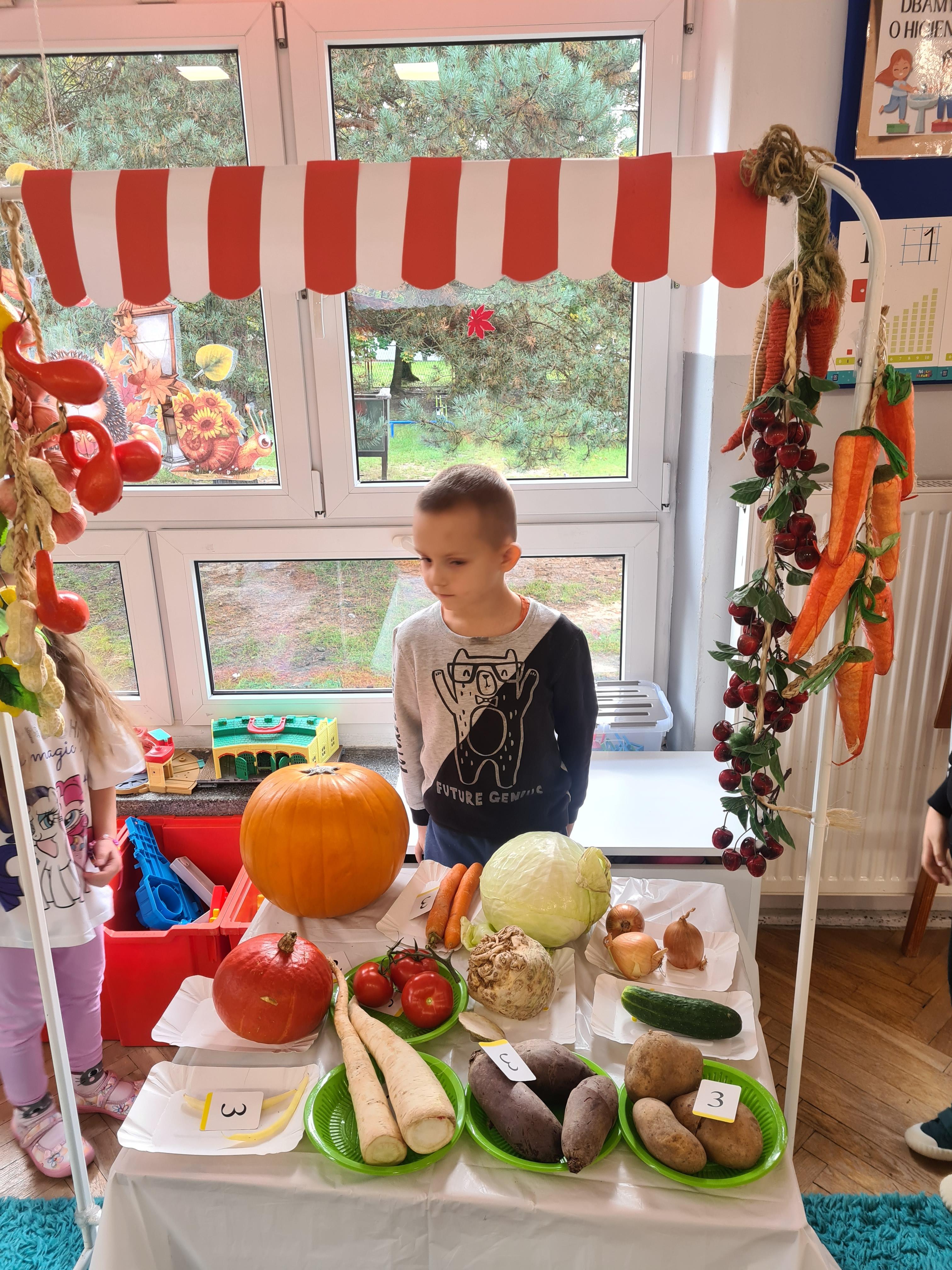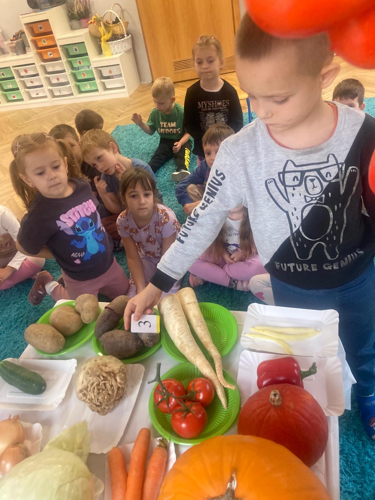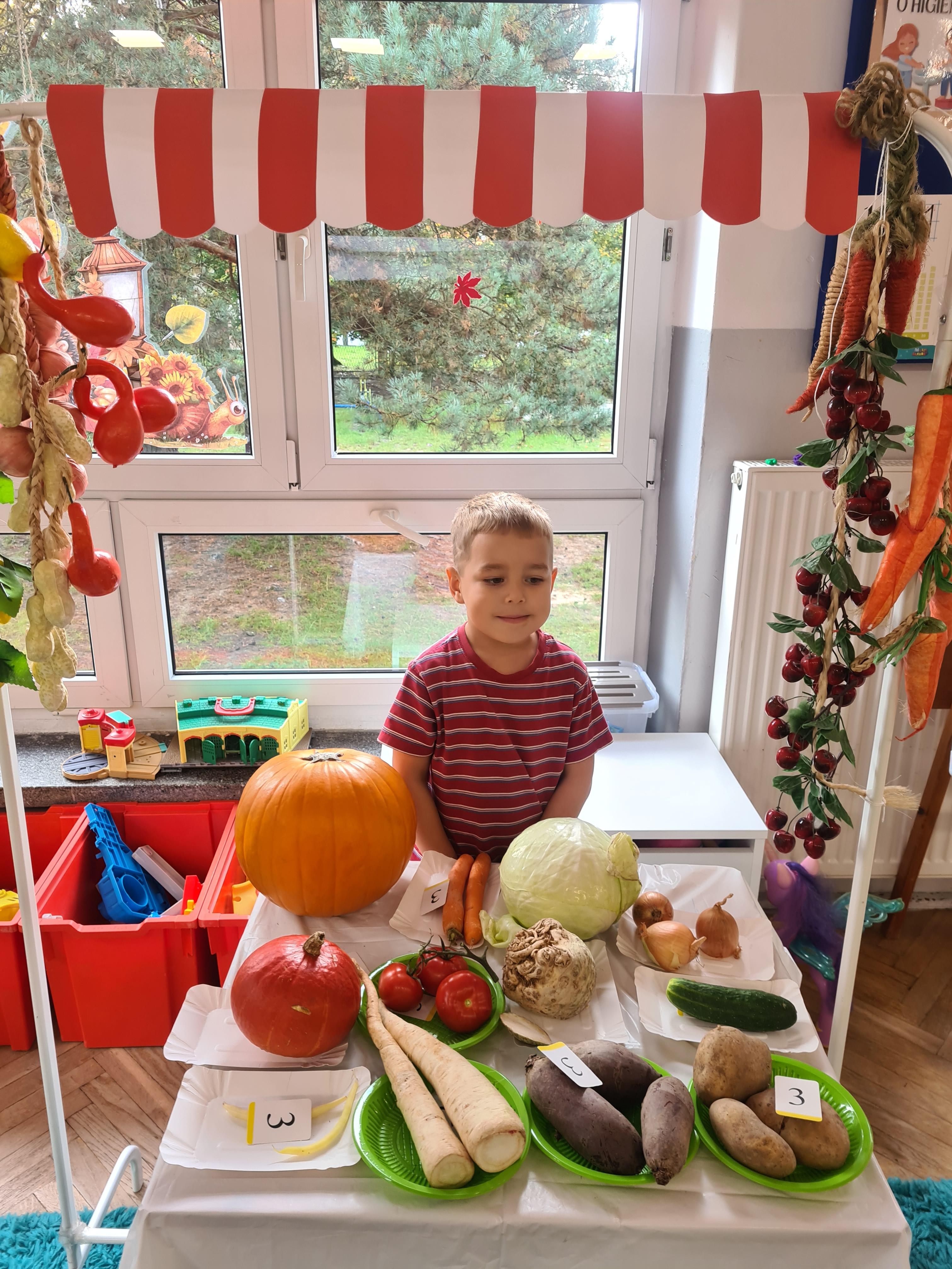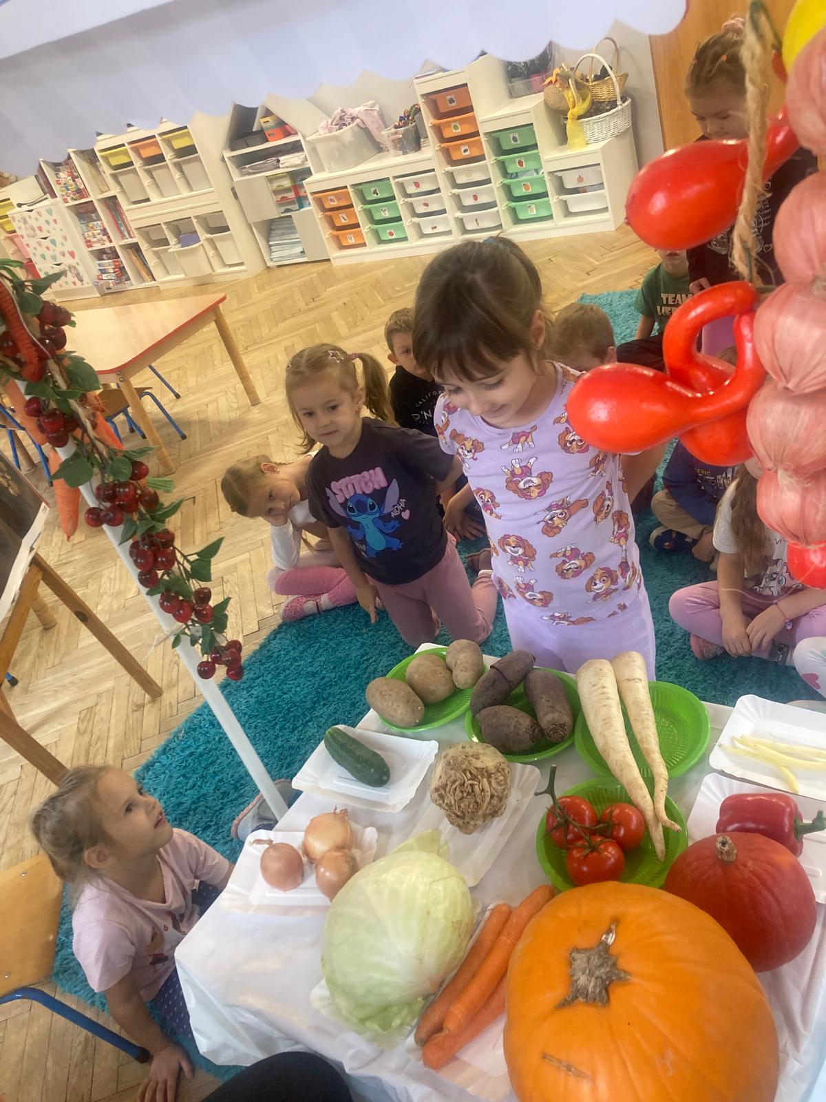 O tym co jemy,co jest dobre dla zdrowia rozmawialiśmy w oparciu o ilustracje,wiersze,opowiadania i zagadki.Na straganie z warzywami utrwalaliśmy ich nazwę, przeliczaliśmy sztuki poznajac cyfrę 3 w aspekcie kardynalnym i porządkowym.Witaminowe przyjęcie uswiadomilo dzieciakom wpływ witamin na organizm.Ćwiczyliśmy swoją sprawność manualną poprzez zabawy sensoryczne,poznawaliśmy wszystkimi zmysłami warzywa i owoce.Rozpoznawaliśmy które warzywa rosną pod ziemią,które nad ziemią."Sadziliśmy" ziemniaki doskonalac swój spryt. W tym tygodniu swoje urodziny obchodził Kamilek! Duuuużo zdrówka Kamilku życzymy!