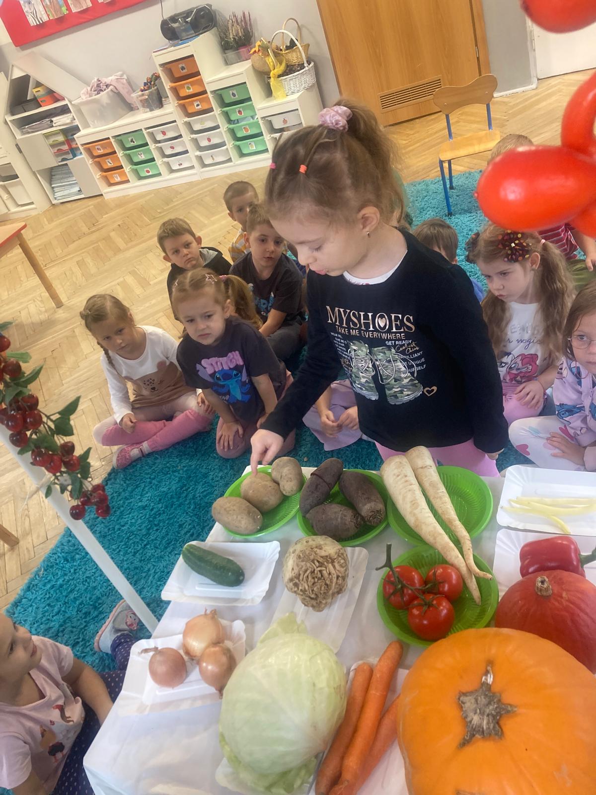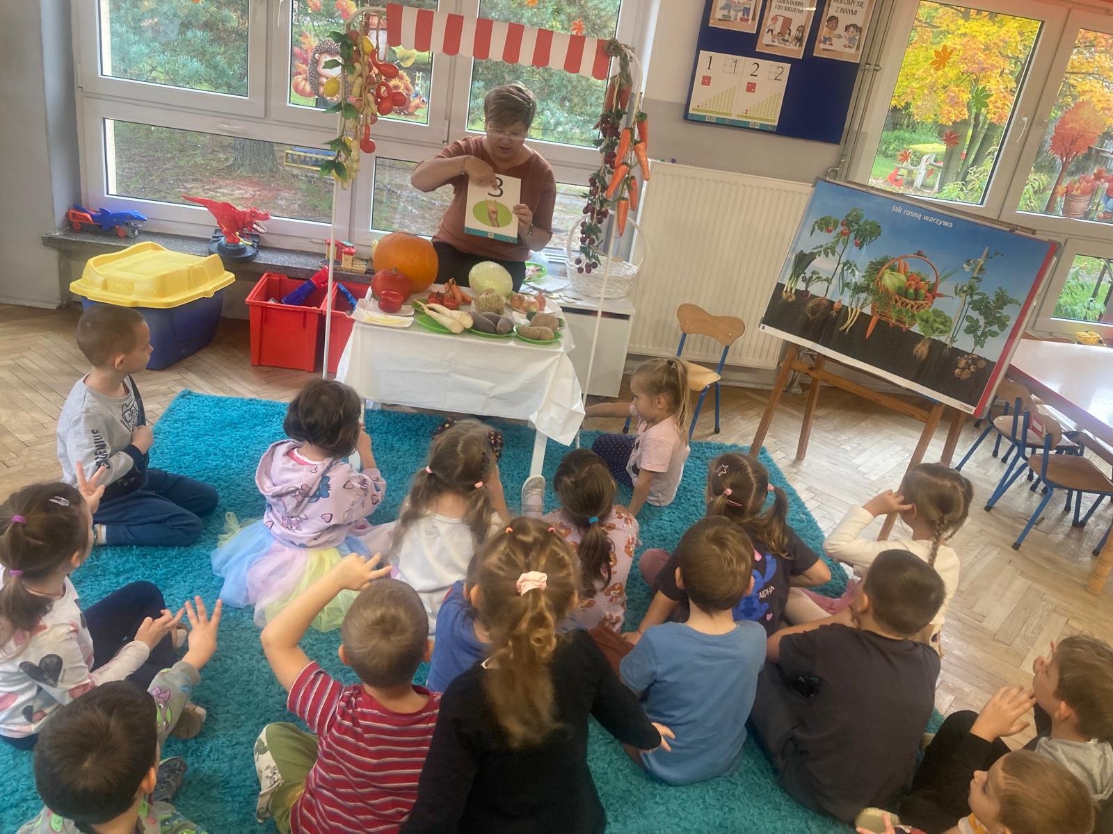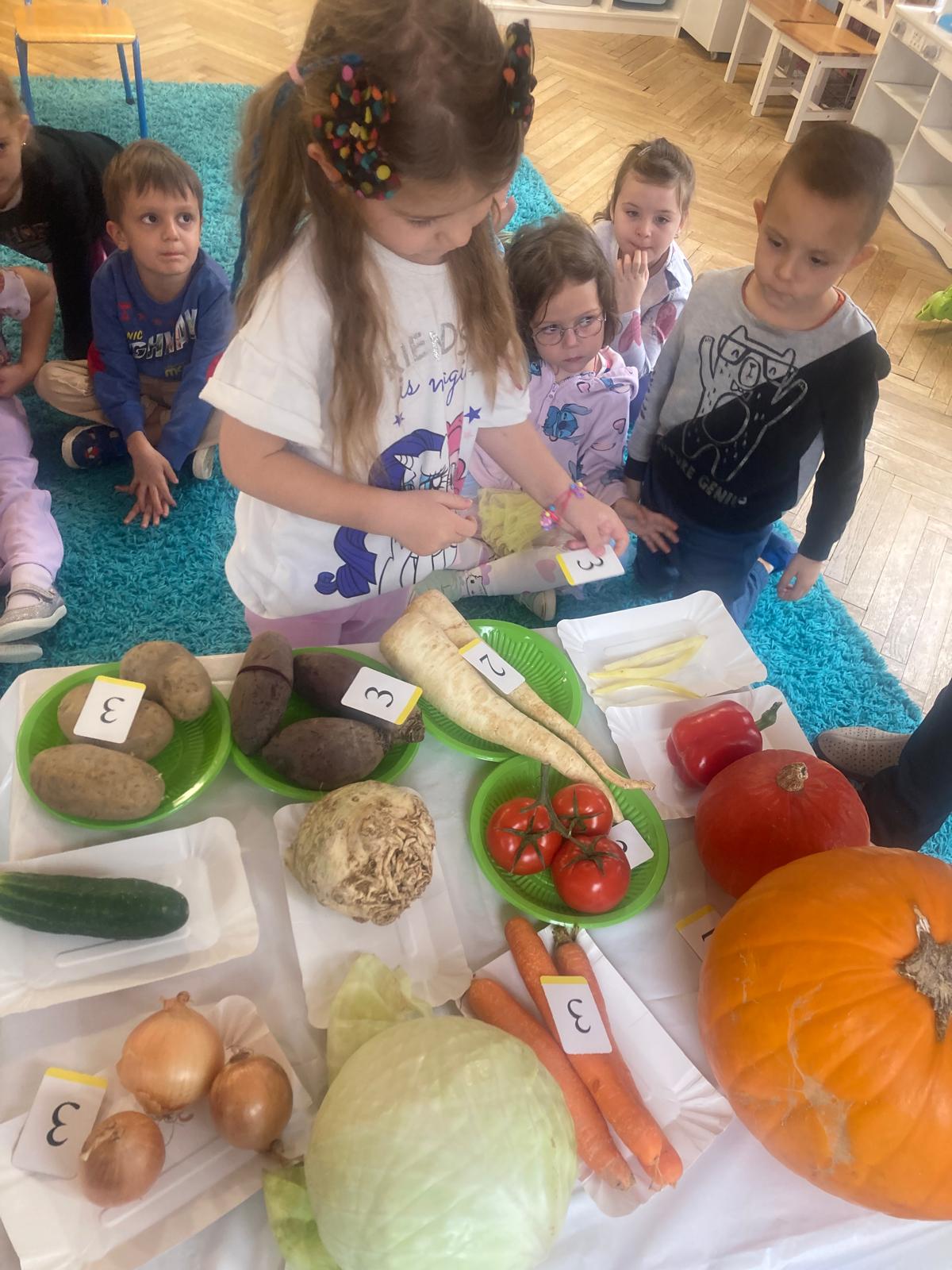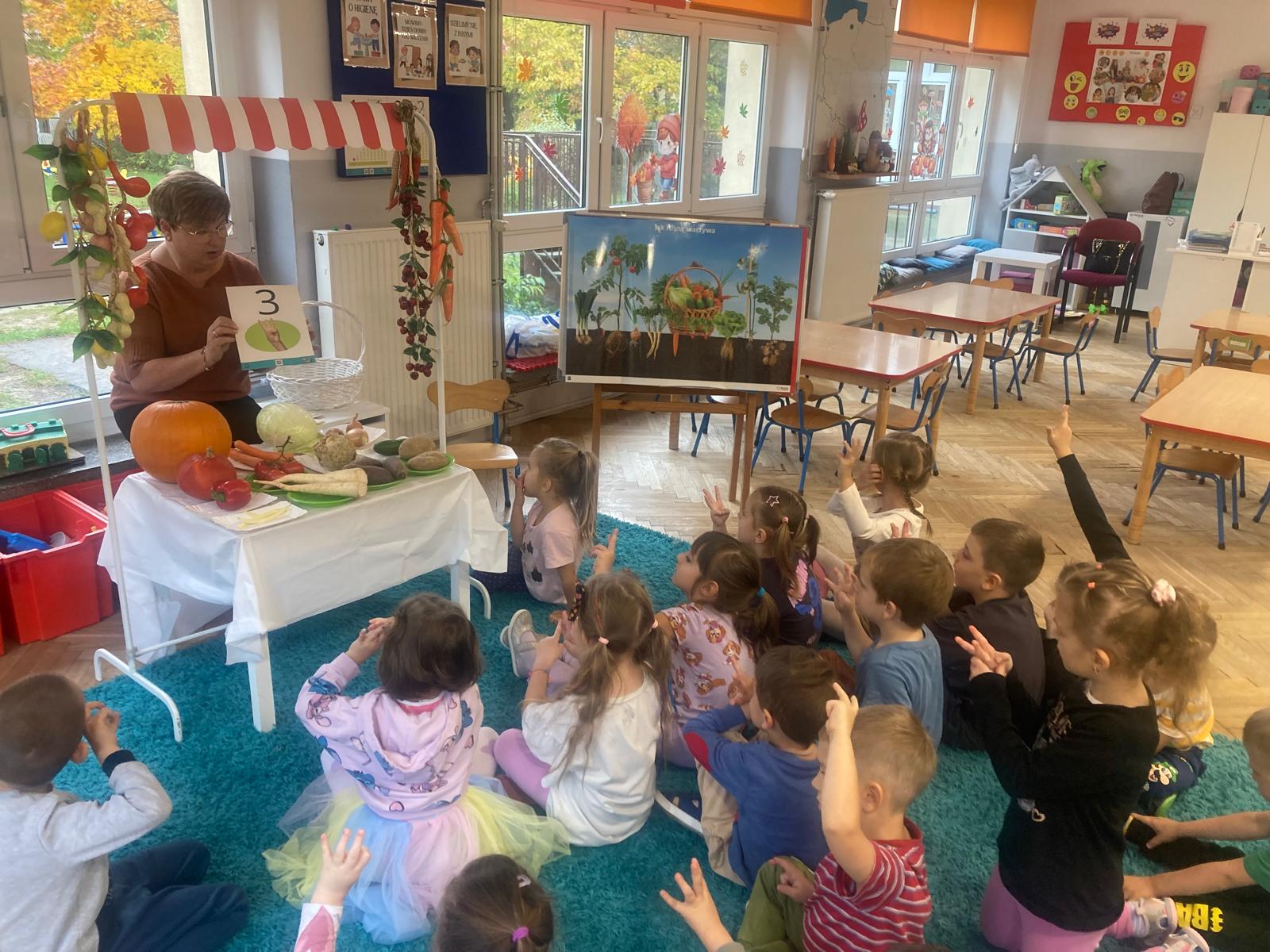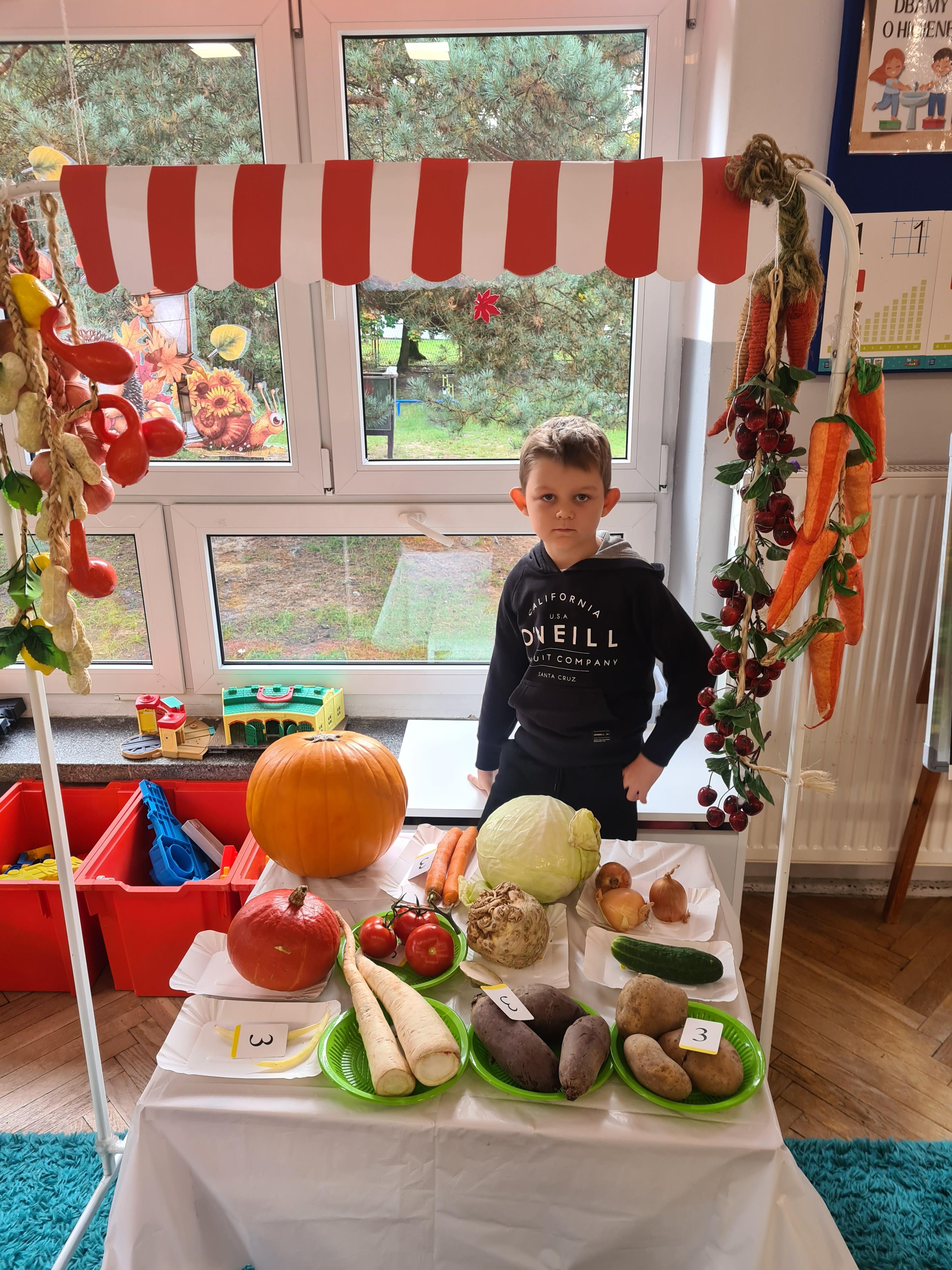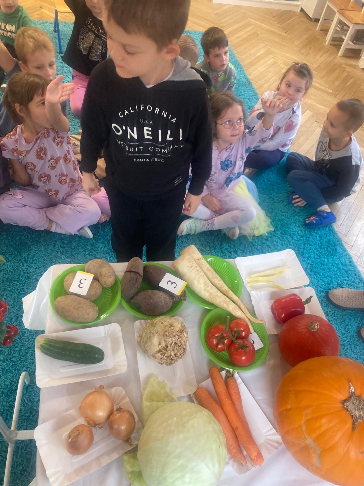 O tym co jemy,co jest dobre dla zdrowia rozmawialiśmy w oparciu o ilustracje,wiersze,opowiadania i zagadki.Na straganie z warzywami utrwalaliśmy ich nazwę, przeliczaliśmy sztuki poznajac cyfrę 3 w aspekcie kardynalnym i porządkowym.Witaminowe przyjęcie uswiadomilo dzieciakom wpływ witamin na organizm.Ćwiczyliśmy swoją sprawność manualną poprzez zabawy sensoryczne,poznawaliśmy wszystkimi zmysłami warzywa i owoce.Rozpoznawaliśmy które warzywa rosną pod ziemią,które nad ziemią."Sadziliśmy" ziemniaki doskonalac swój spryt. W tym tygodniu swoje urodziny obchodził Kamilek! Duuuużo zdrówka Kamilku życzymy!