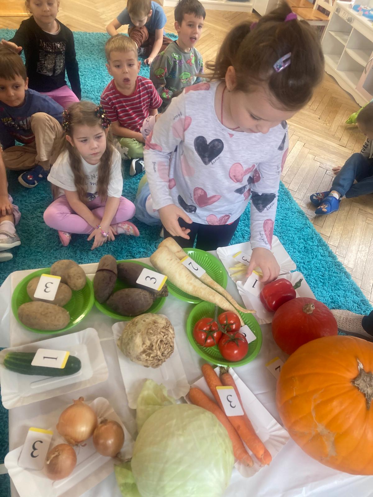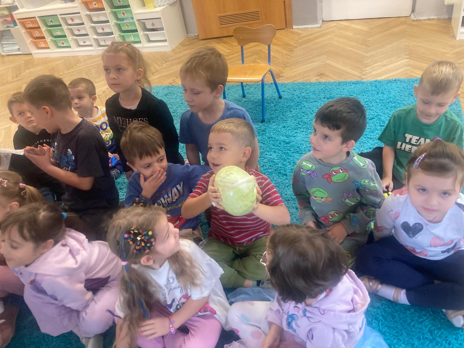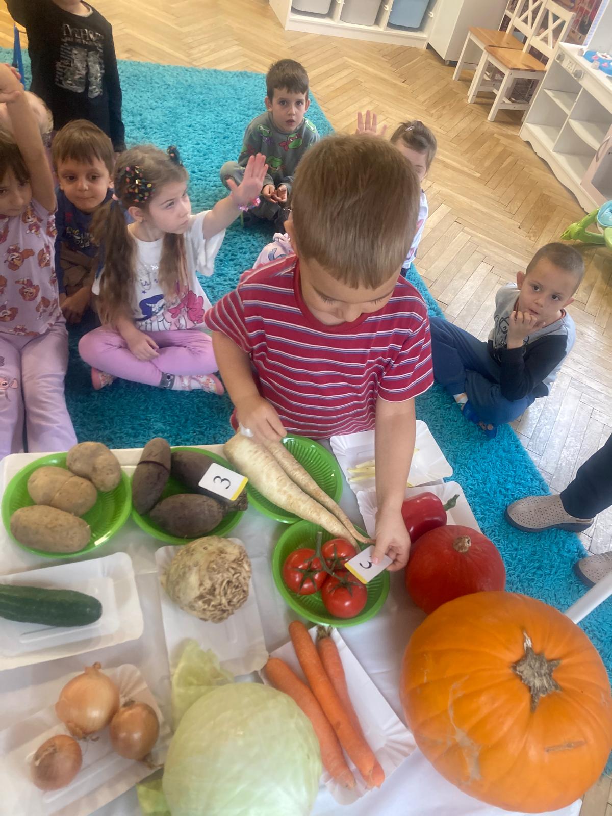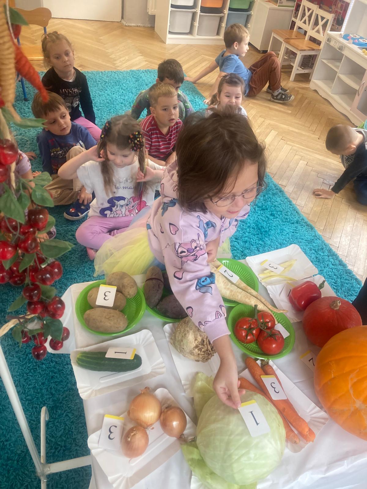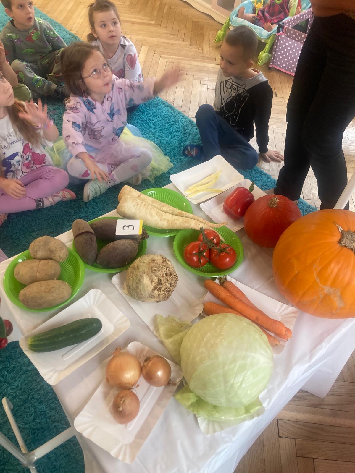 O tym co jemy,co jest dobre dla zdrowia rozmawialiśmy w oparciu o ilustracje,wiersze,opowiadania i zagadki.Na straganie z warzywami utrwalaliśmy ich nazwę, przeliczaliśmy sztuki poznajac cyfrę 3 w aspekcie kardynalnym i porządkowym.Witaminowe przyjęcie uswiadomilo dzieciakom wpływ witamin na organizm.Ćwiczyliśmy swoją sprawność manualną poprzez zabawy sensoryczne,poznawaliśmy wszystkimi zmysłami warzywa i owoce.Rozpoznawaliśmy które warzywa rosną pod ziemią,które nad ziemią."Sadziliśmy" ziemniaki doskonalac swój spryt. W tym tygodniu swoje urodziny obchodził Kamilek! Duuuużo zdrówka Kamilku życzymy!