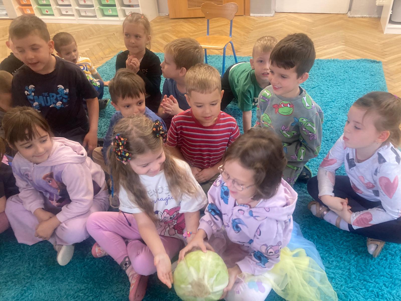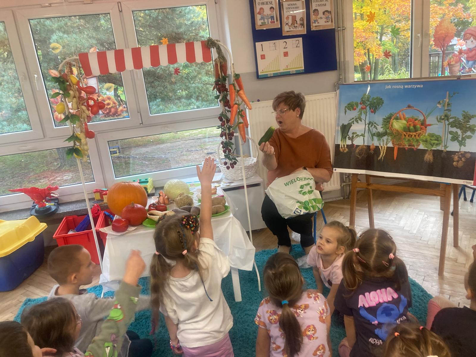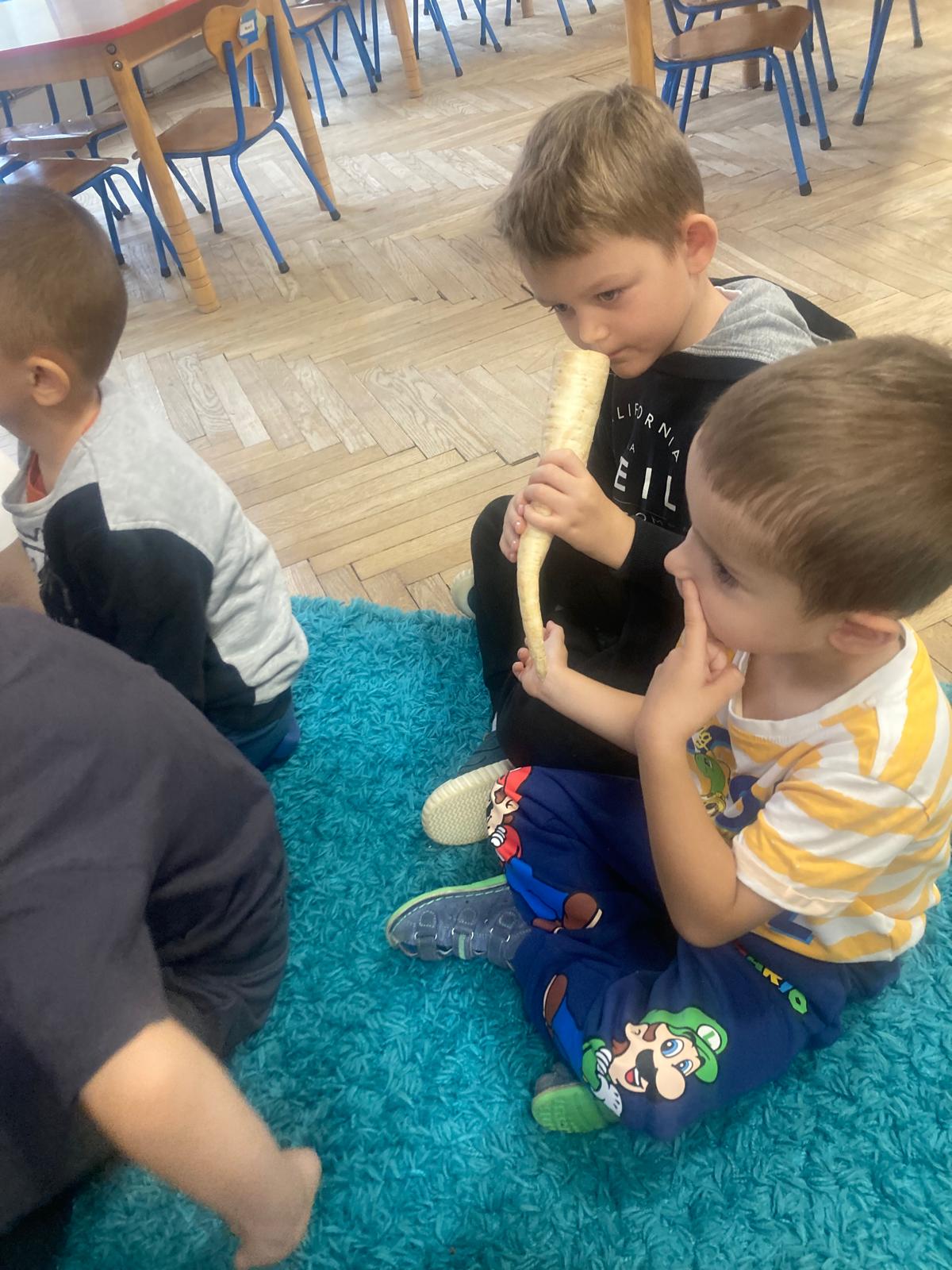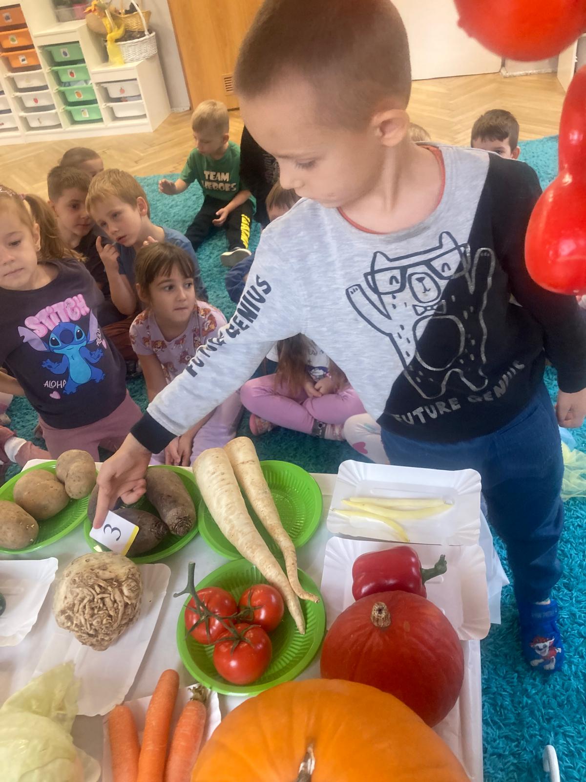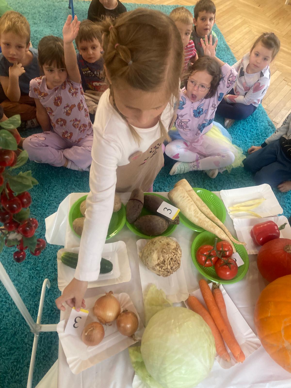 O tym co jemy,co jest dobre dla zdrowia rozmawialiśmy w oparciu o ilustracje,wiersze,opowiadania i zagadki.Na straganie z warzywami utrwalaliśmy ich nazwę, przeliczaliśmy sztuki poznajac cyfrę 3 w aspekcie kardynalnym i porządkowym.Witaminowe przyjęcie uswiadomilo dzieciakom wpływ witamin na organizm.Ćwiczyliśmy swoją sprawność manualną poprzez zabawy sensoryczne,poznawaliśmy wszystkimi zmysłami warzywa i owoce.Rozpoznawaliśmy które warzywa rosną pod ziemią,które nad ziemią."Sadziliśmy" ziemniaki doskonalac swój spryt. W tym tygodniu swoje urodziny obchodził Kamilek! Duuuużo zdrówka Kamilku życzymy!