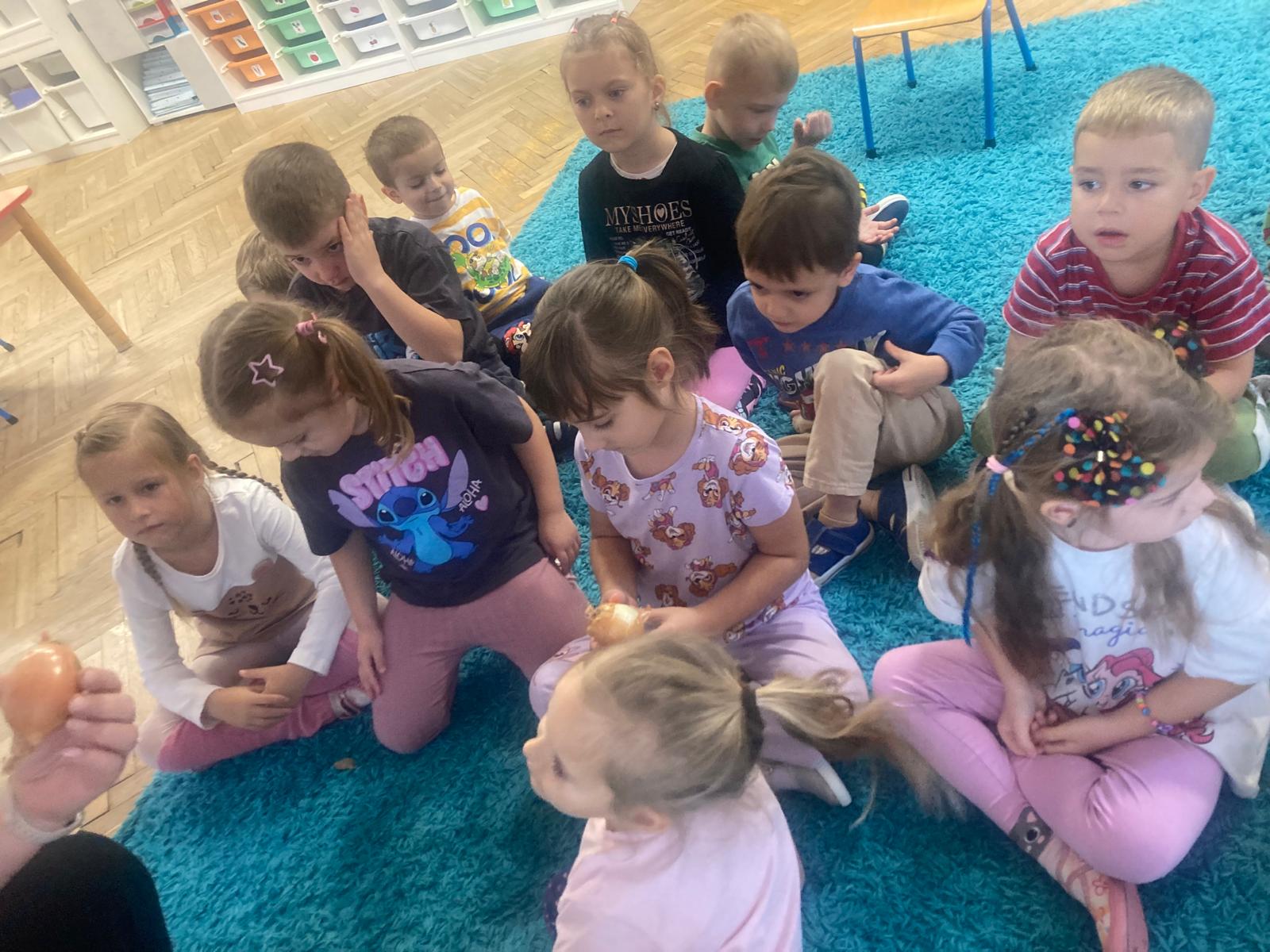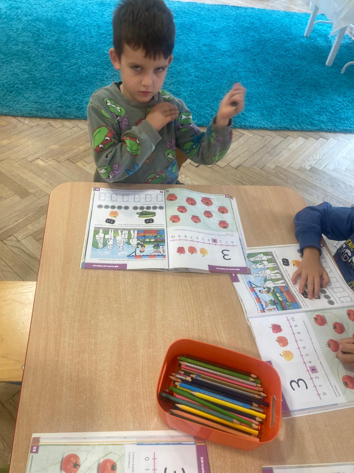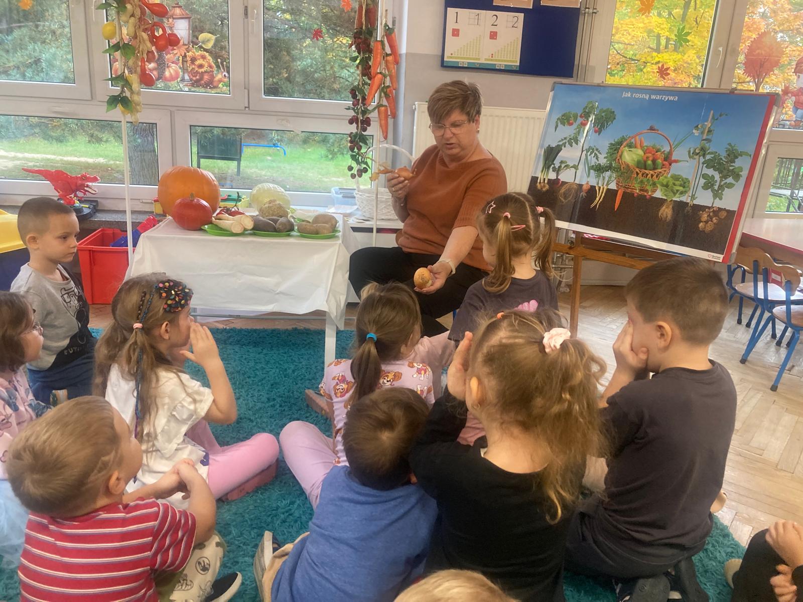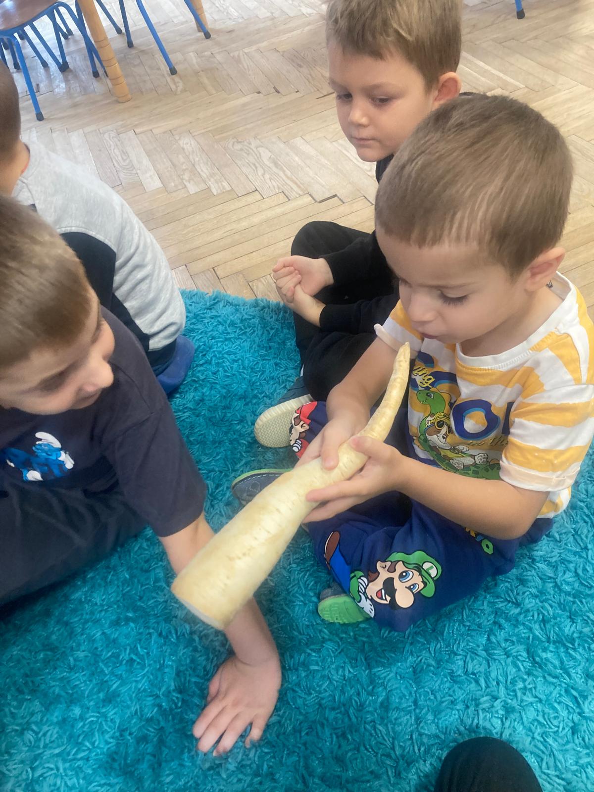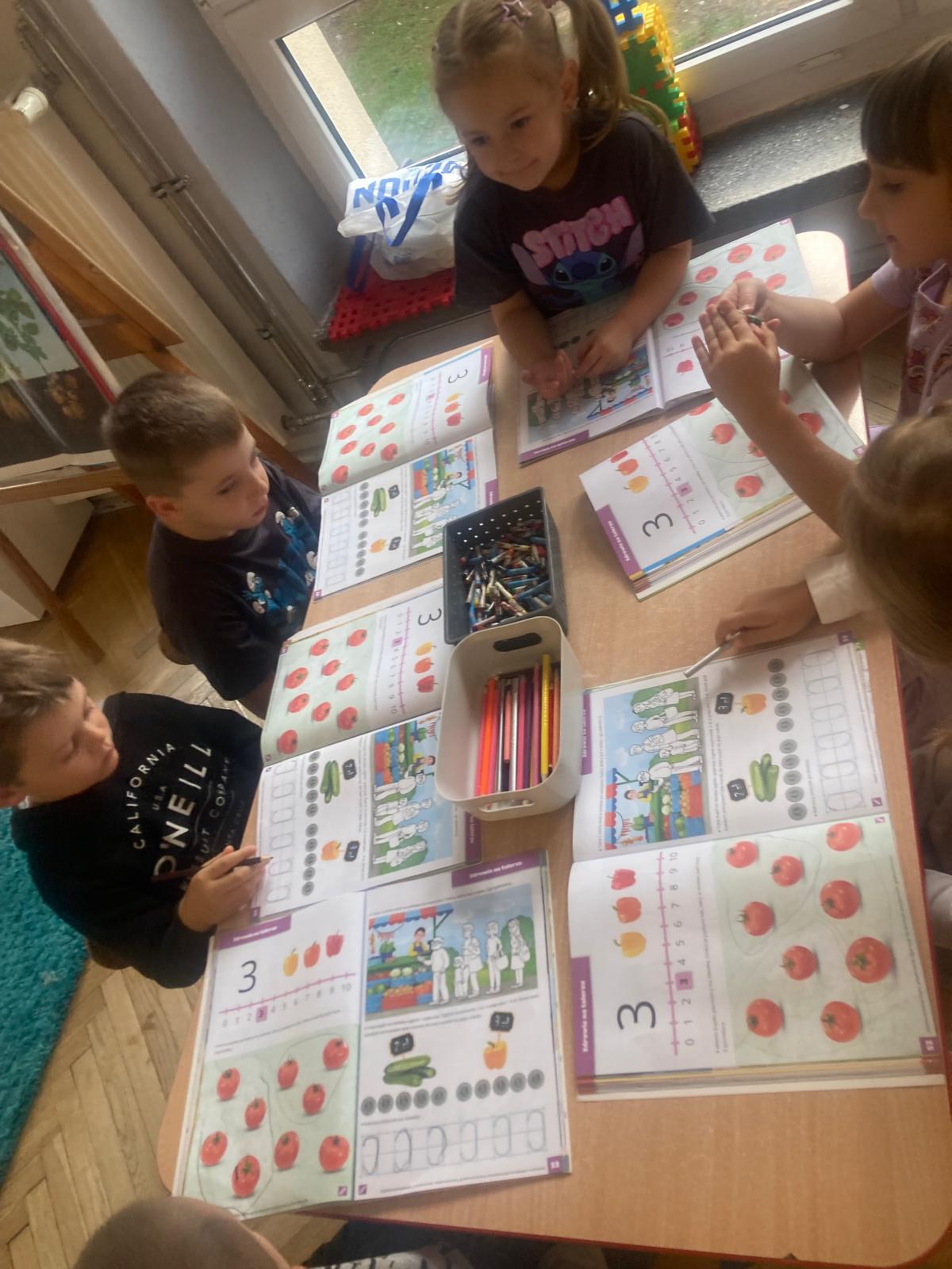 O tym co jemy,co jest dobre dla zdrowia rozmawialiśmy w oparciu o ilustracje,wiersze,opowiadania i zagadki.Na straganie z warzywami utrwalaliśmy ich nazwę, przeliczaliśmy sztuki poznajac cyfrę 3 w aspekcie kardynalnym i porządkowym.Witaminowe przyjęcie uswiadomilo dzieciakom wpływ witamin na organizm.Ćwiczyliśmy swoją sprawność manualną poprzez zabawy sensoryczne,poznawaliśmy wszystkimi zmysłami warzywa i owoce.Rozpoznawaliśmy które warzywa rosną pod ziemią,które nad ziemią."Sadziliśmy" ziemniaki doskonalac swój spryt. W tym tygodniu swoje urodziny obchodził Kamilek! Duuuużo zdrówka Kamilku życzymy!