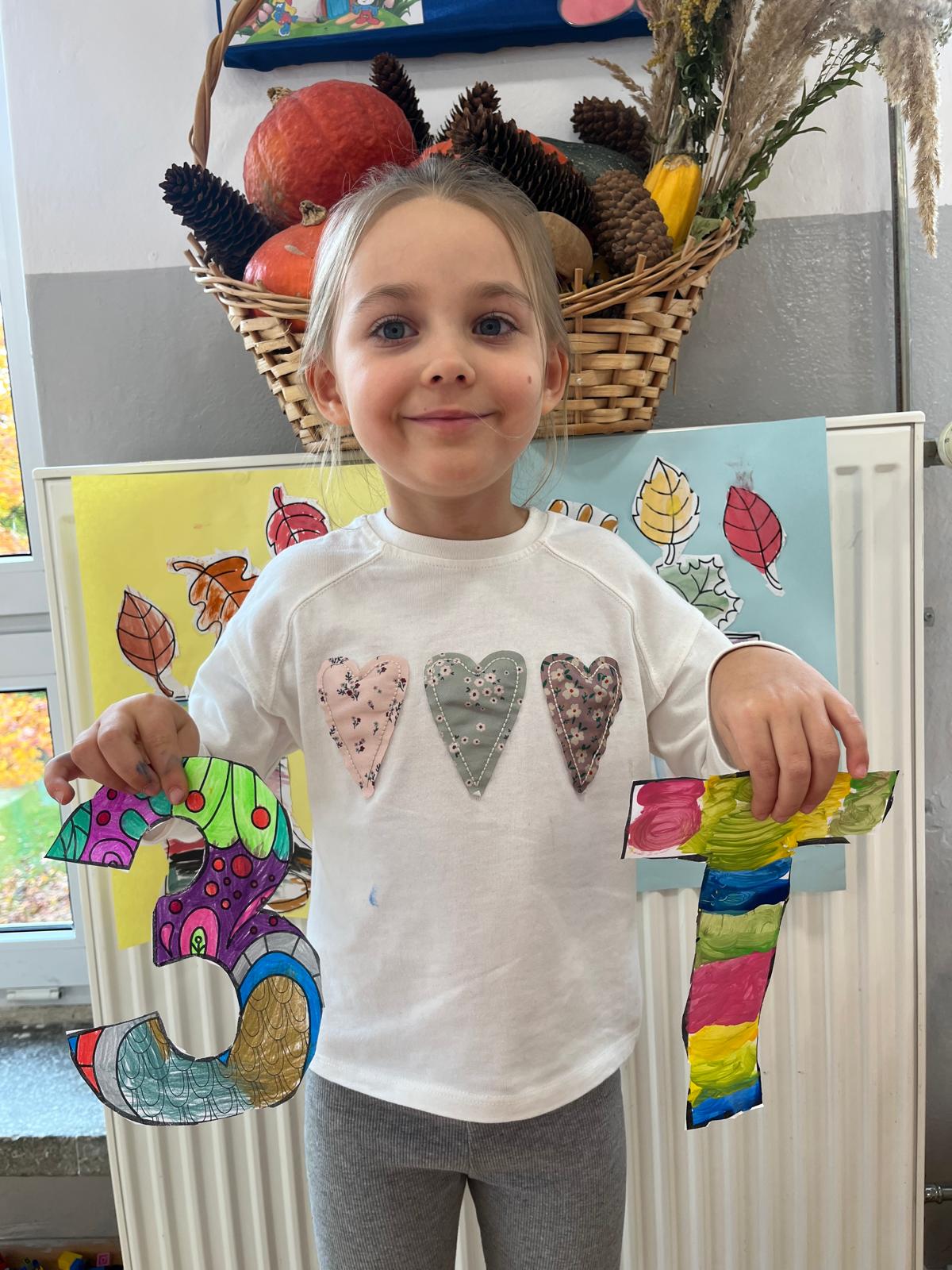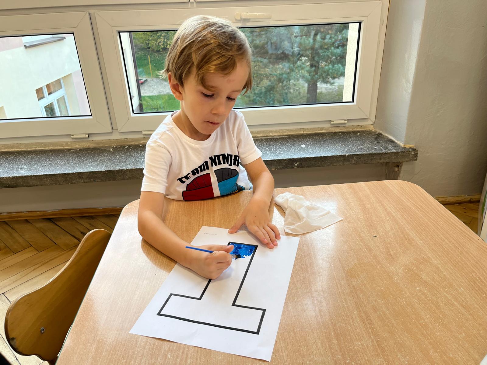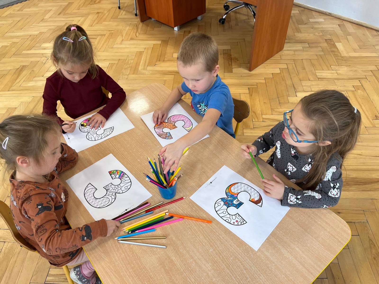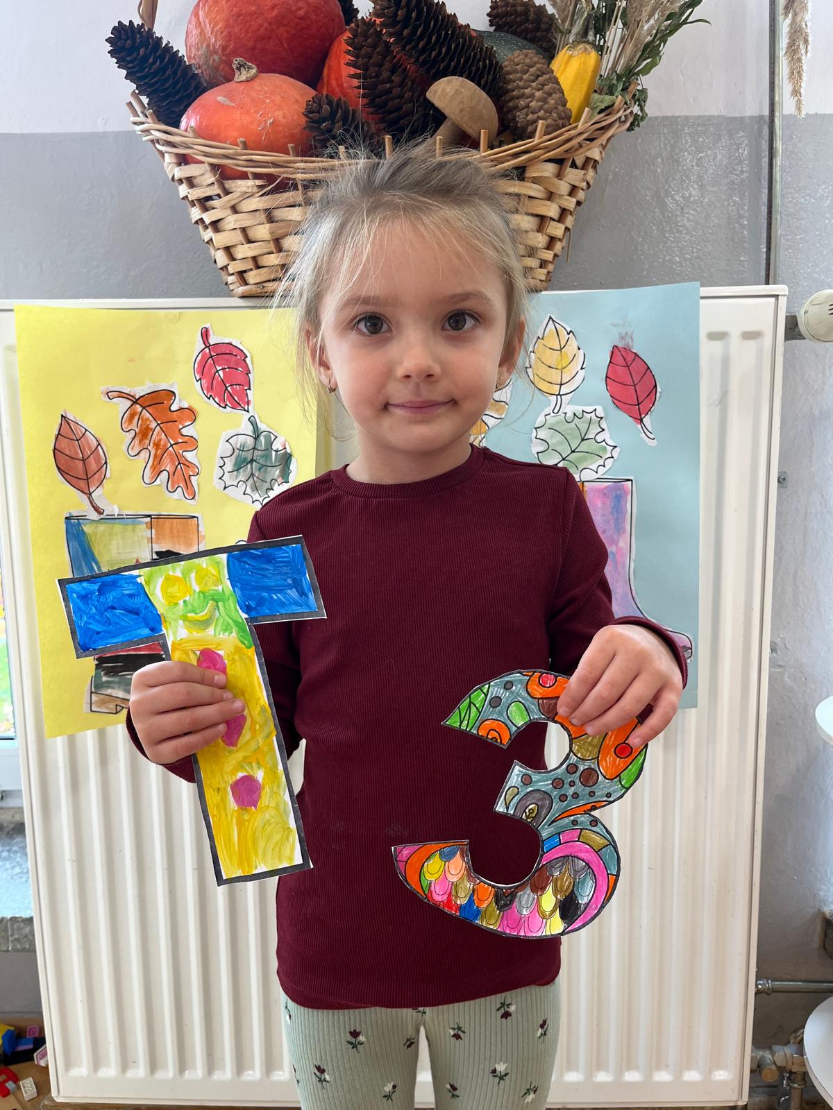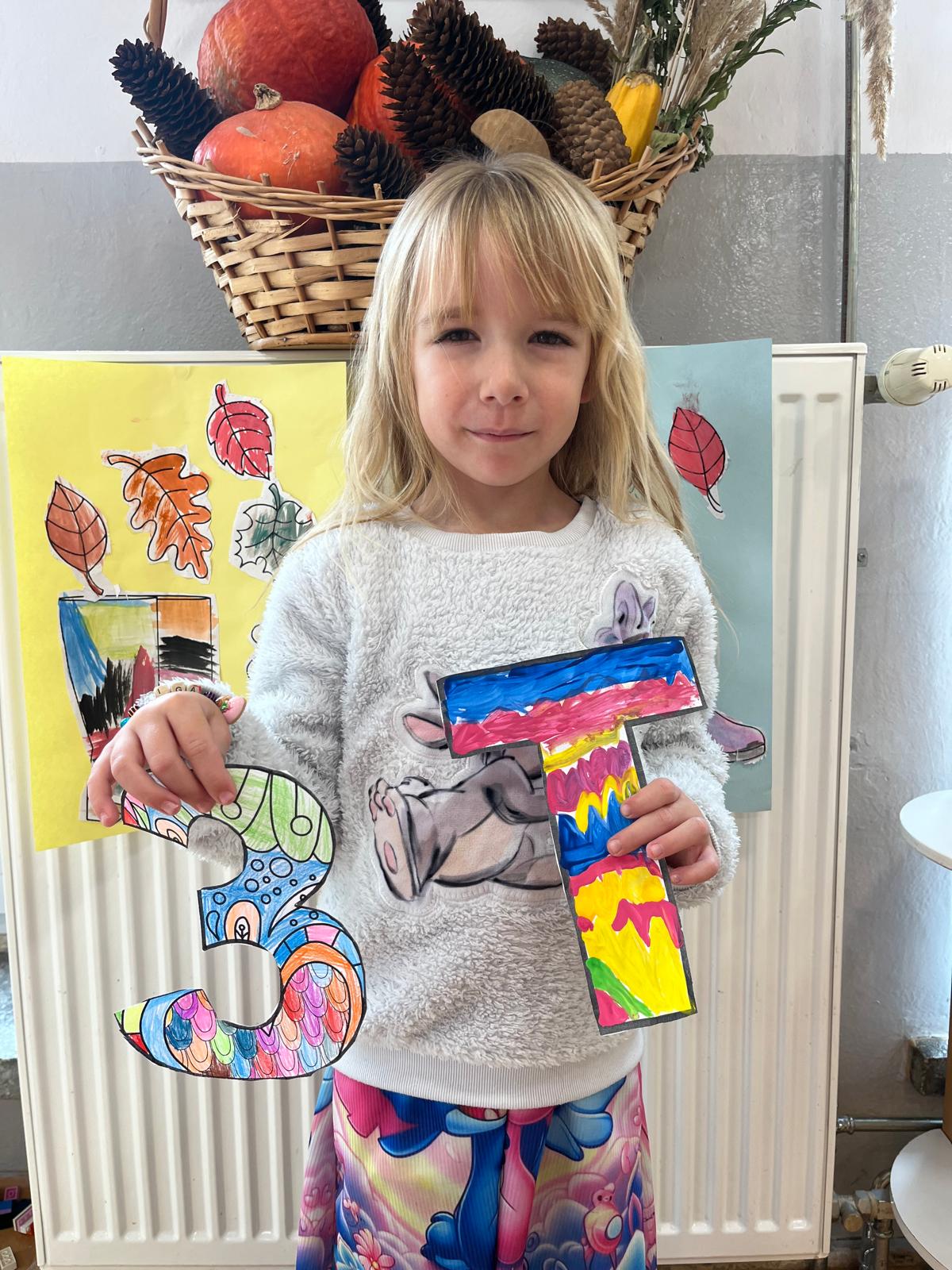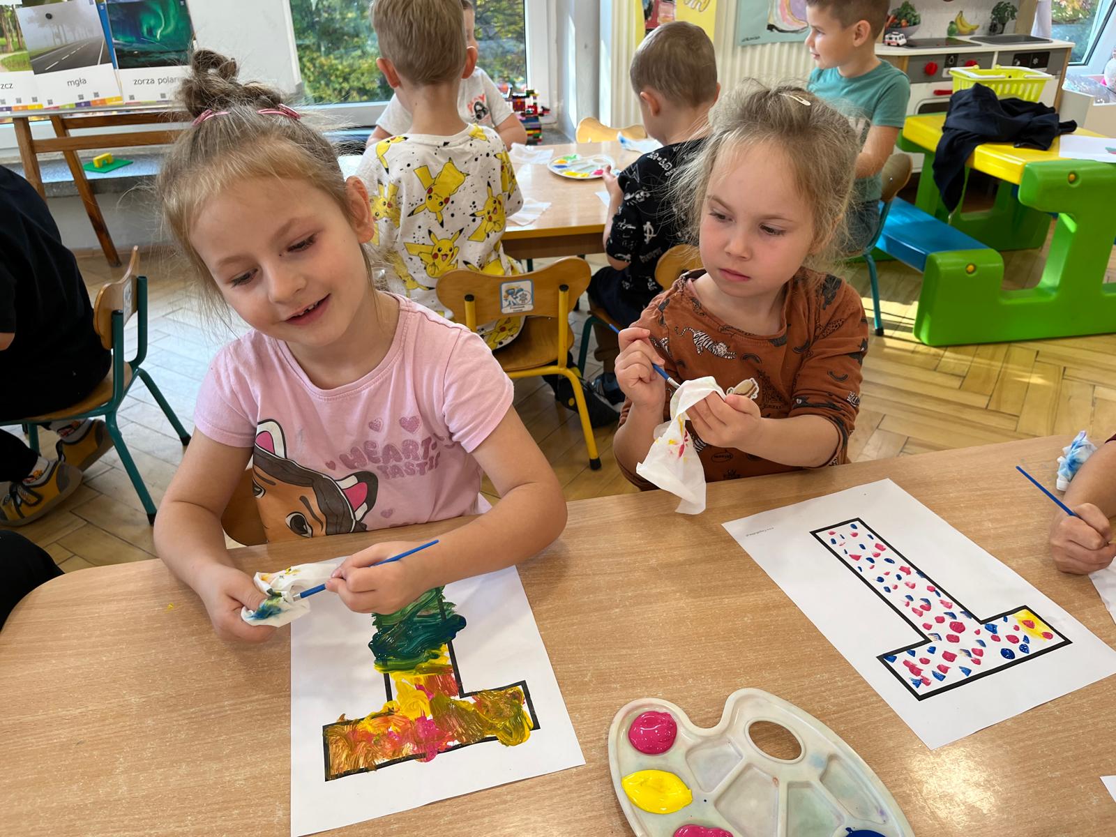 Poznaliśmy w tym tygodniu również cyferkę 3 - uczestnicząc w zabawach ruchowych, układając zabawki na dywanie po 3 sztuki, przeliczając je, dobieraliśmy się w trójki w zabawie z wykorzystaniem hula hop.