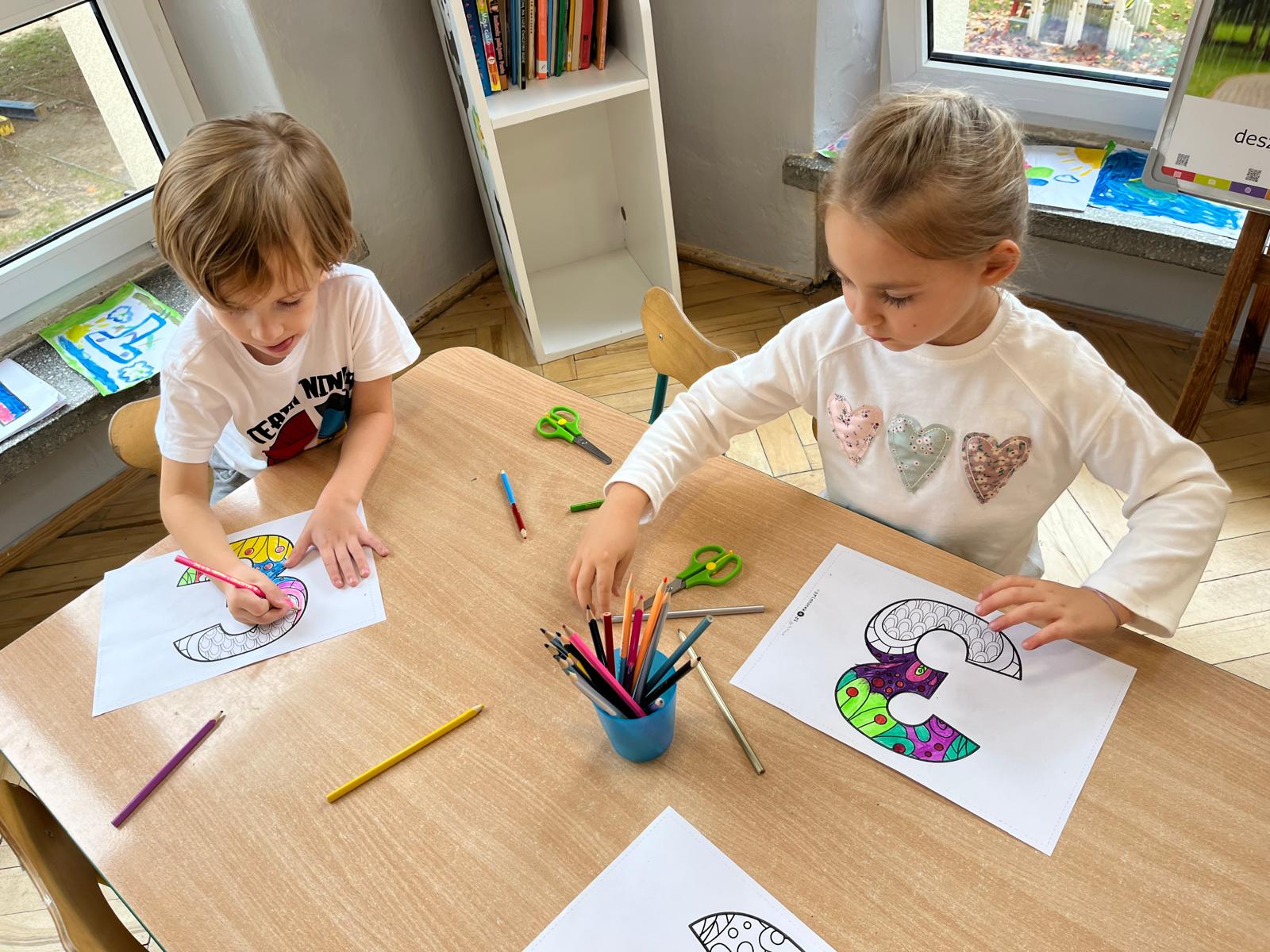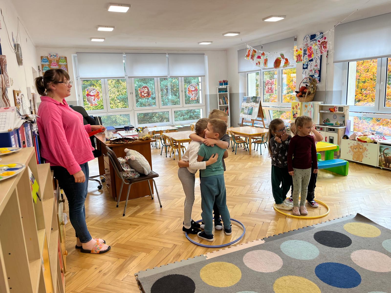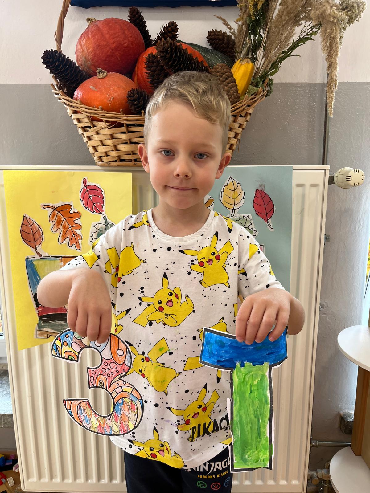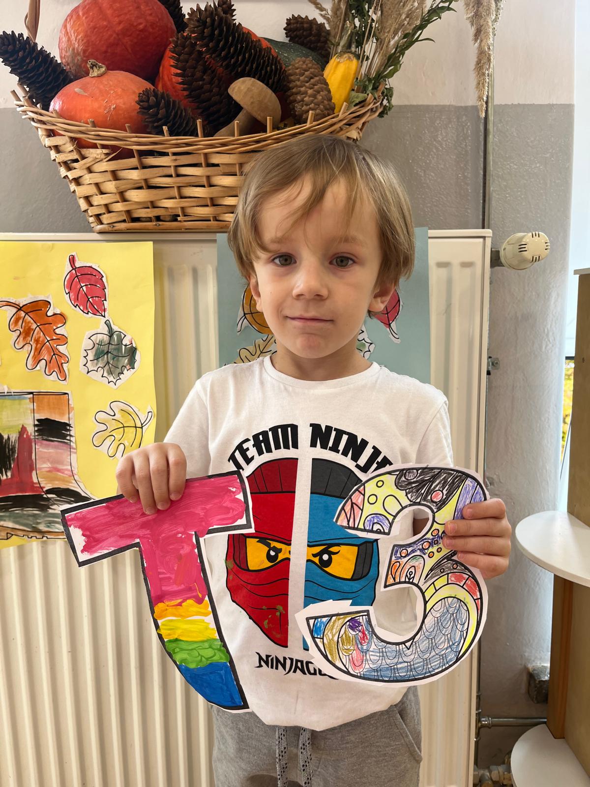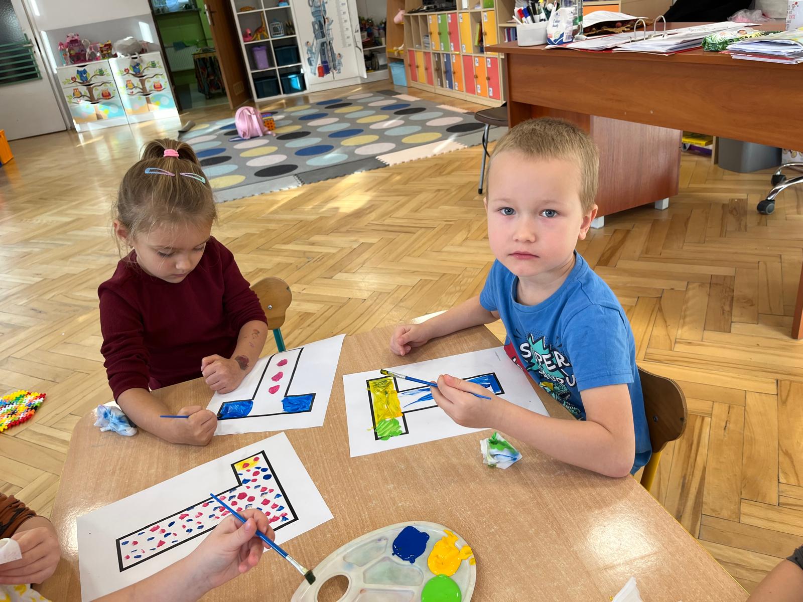 Poznaliśmy w tym tygodniu również cyferkę 3 - uczestnicząc w zabawach ruchowych, układając zabawki na dywanie po 3 sztuki, przeliczając je, dobieraliśmy się w trójki w zabawie z wykorzystaniem hula hop.