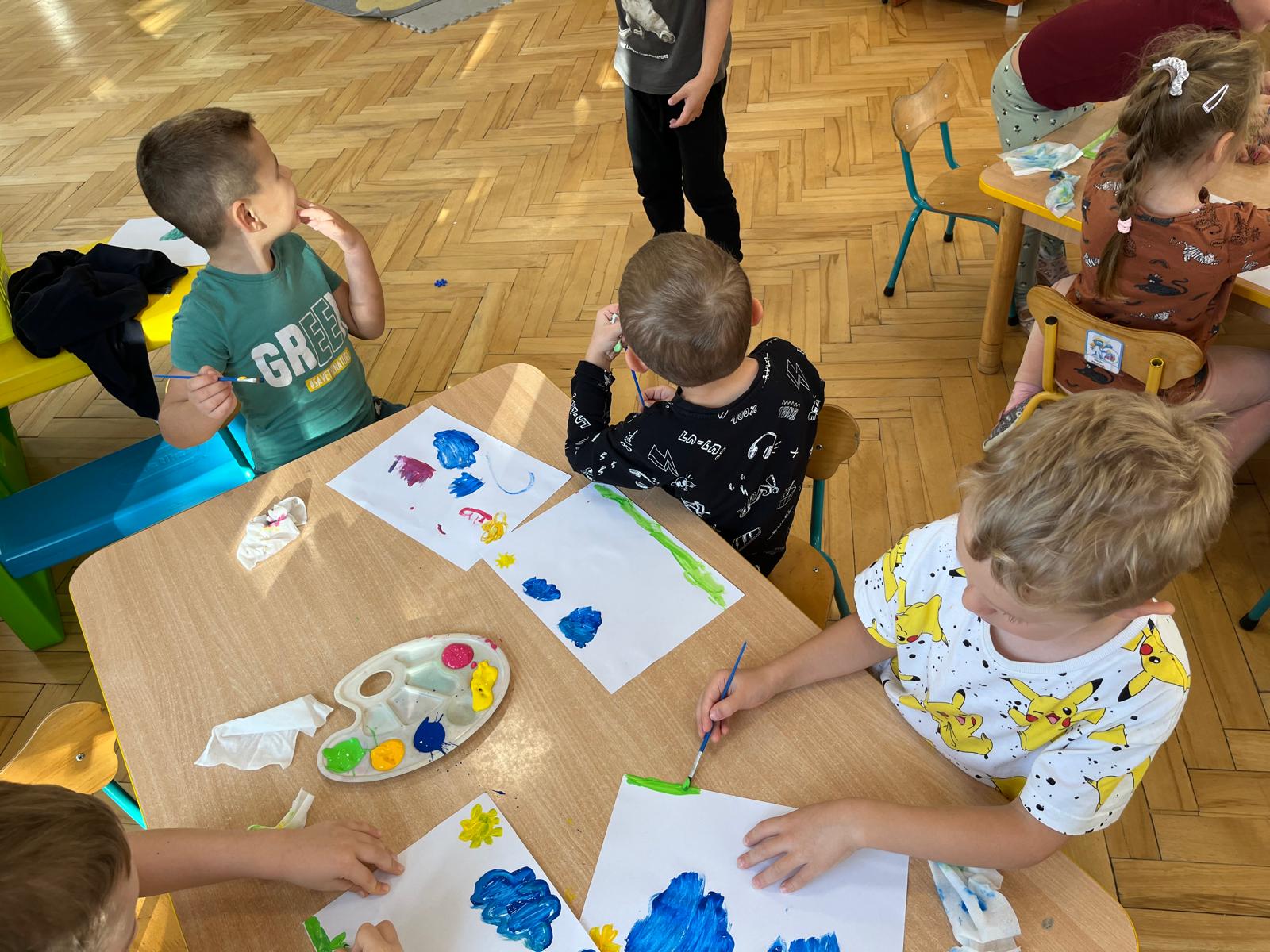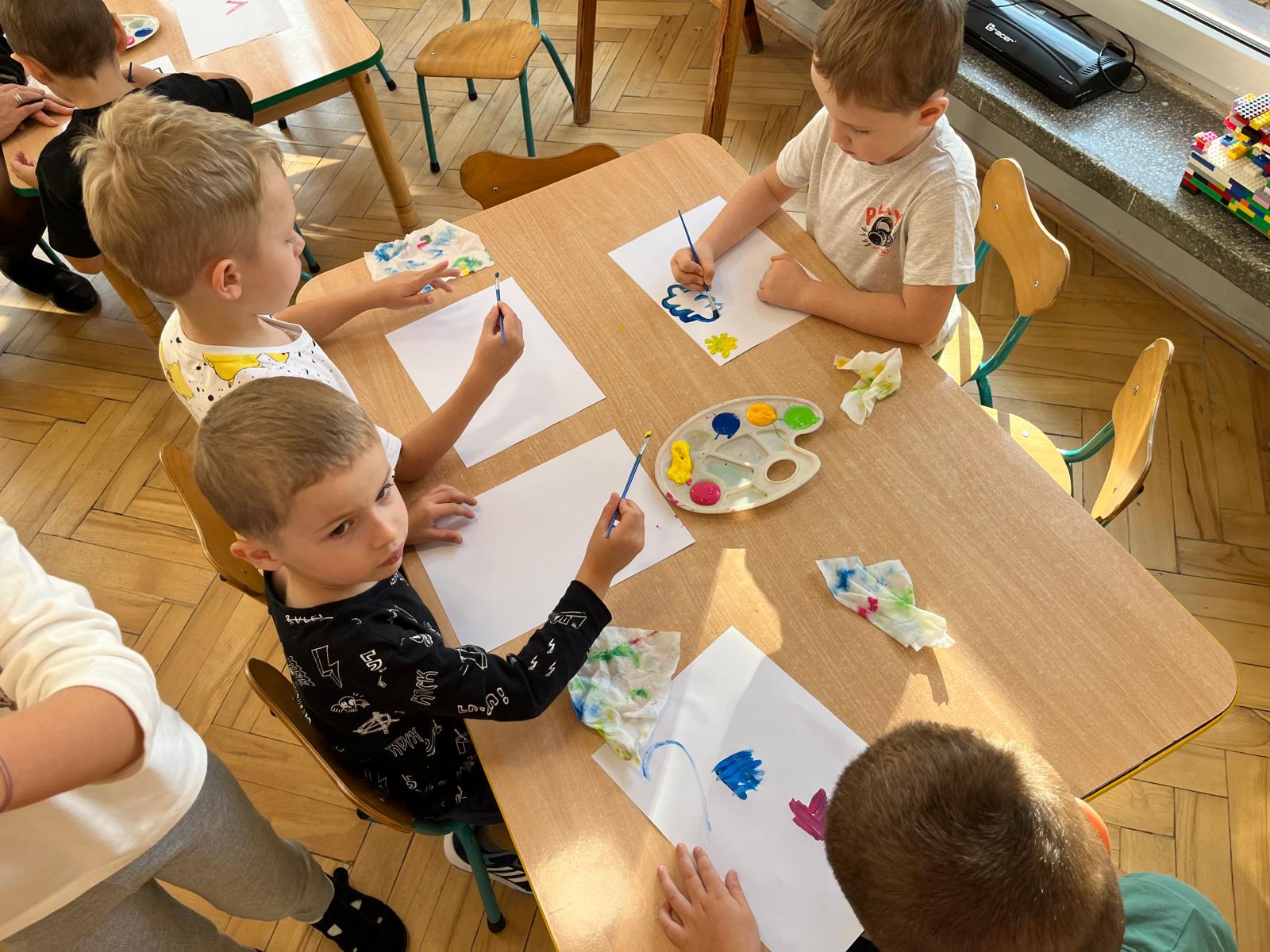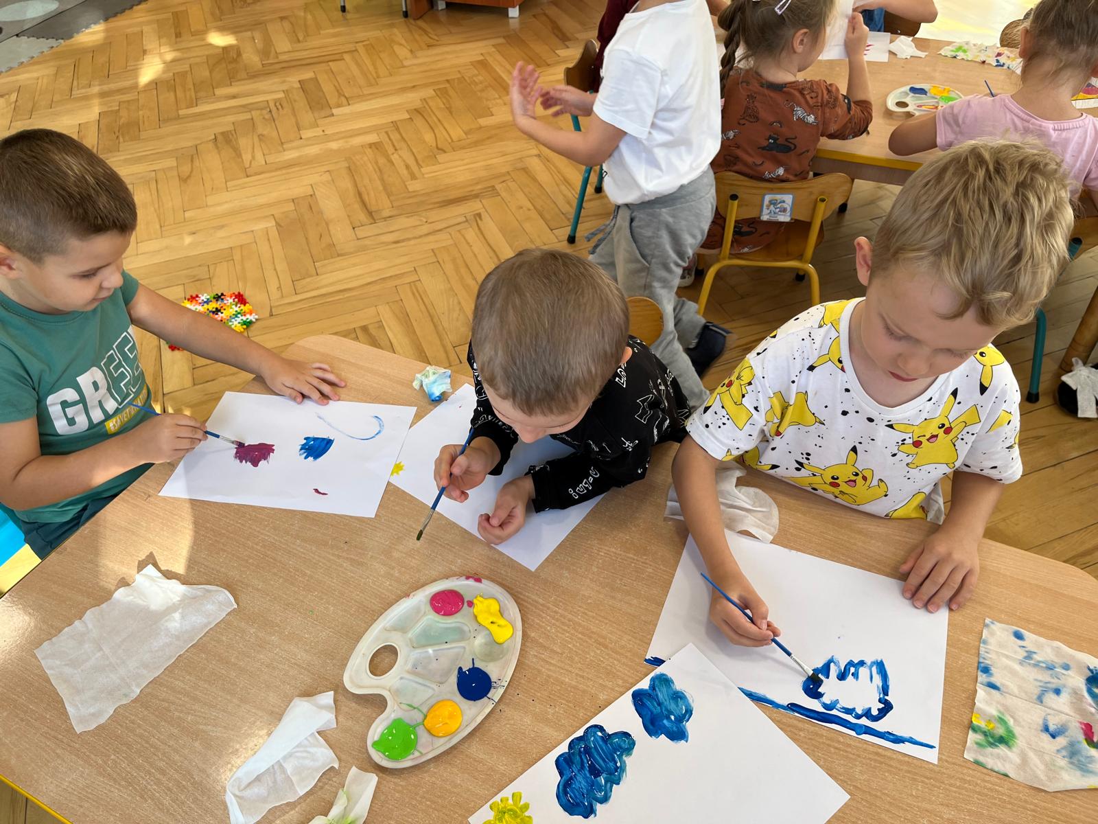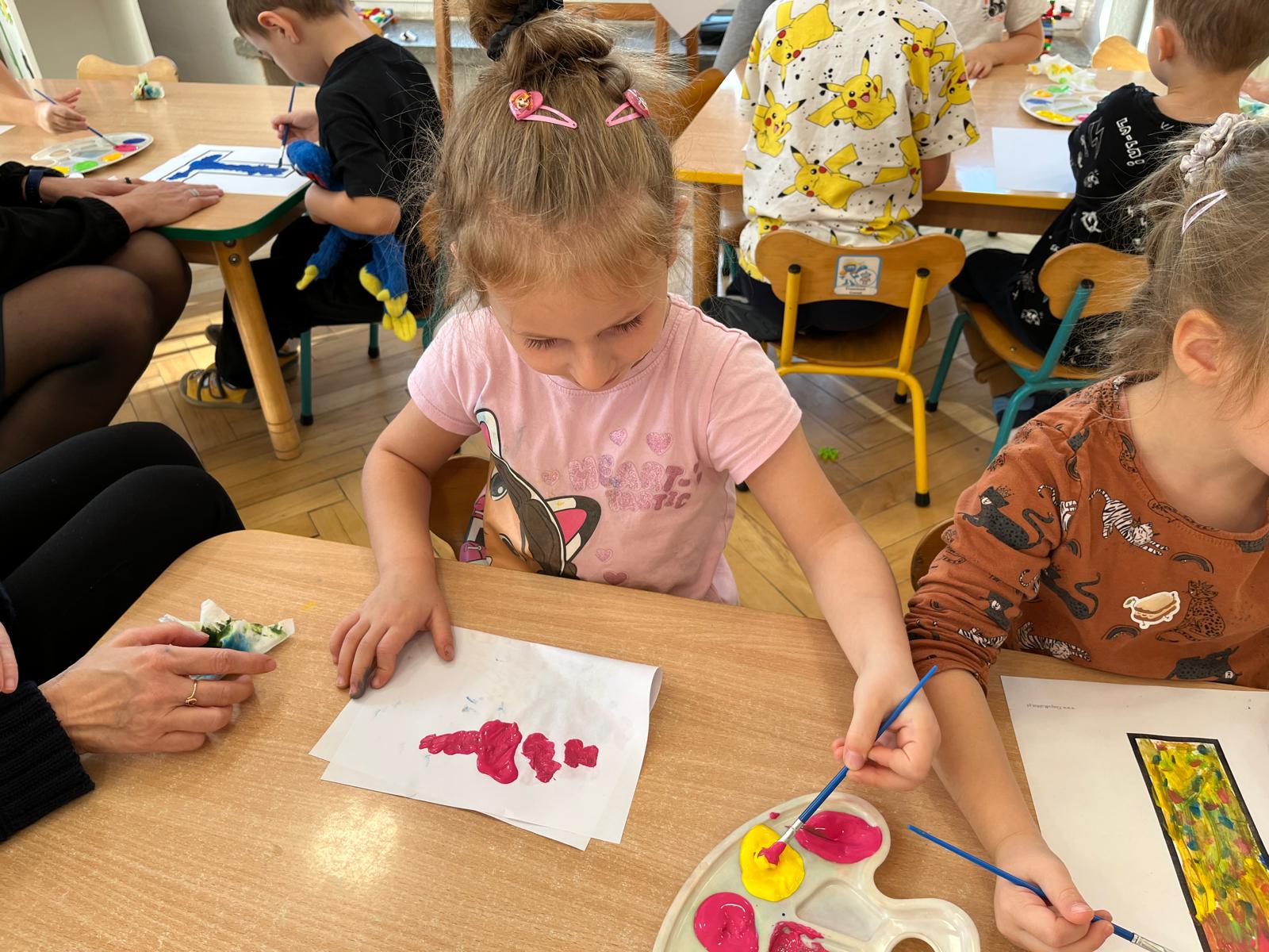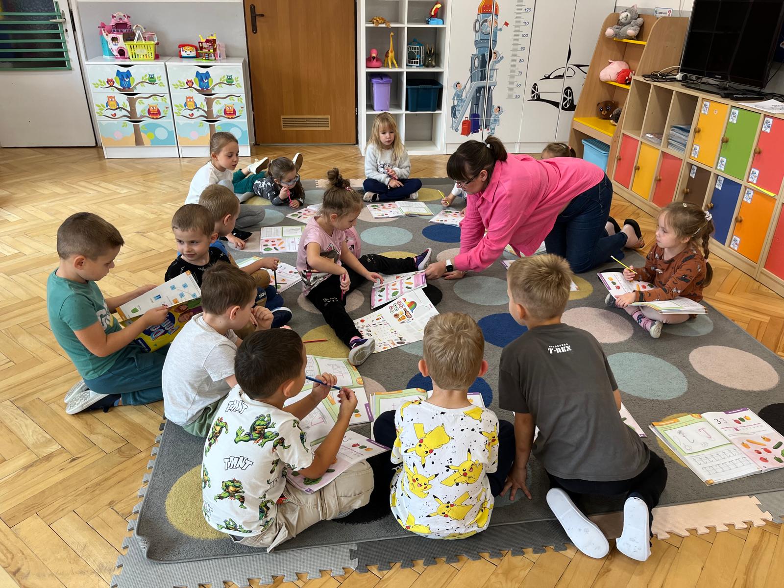 Poznaliśmy w tym tygodniu również cyferkę 3 - uczestnicząc w zabawach ruchowych, układając zabawki na dywanie po 3 sztuki, przeliczając je, dobieraliśmy się w trójki w zabawie z wykorzystaniem hula hop.