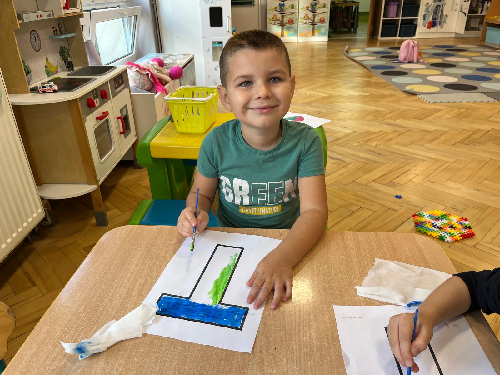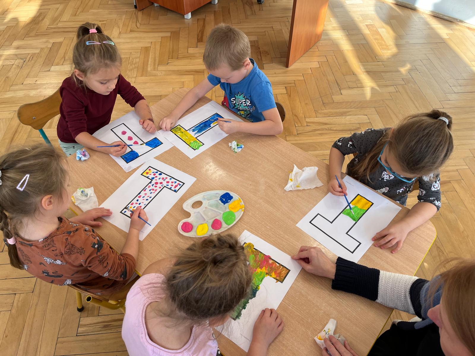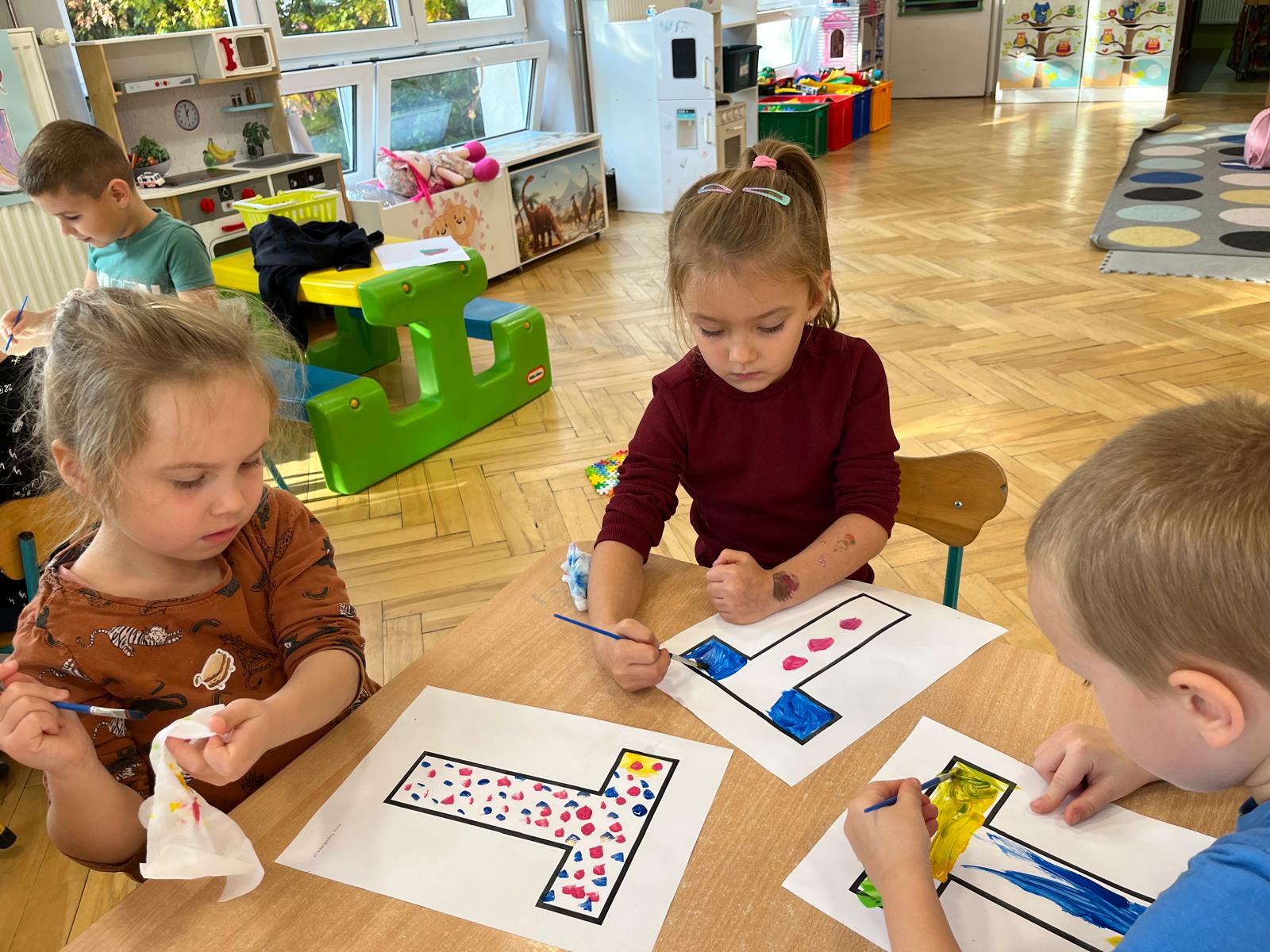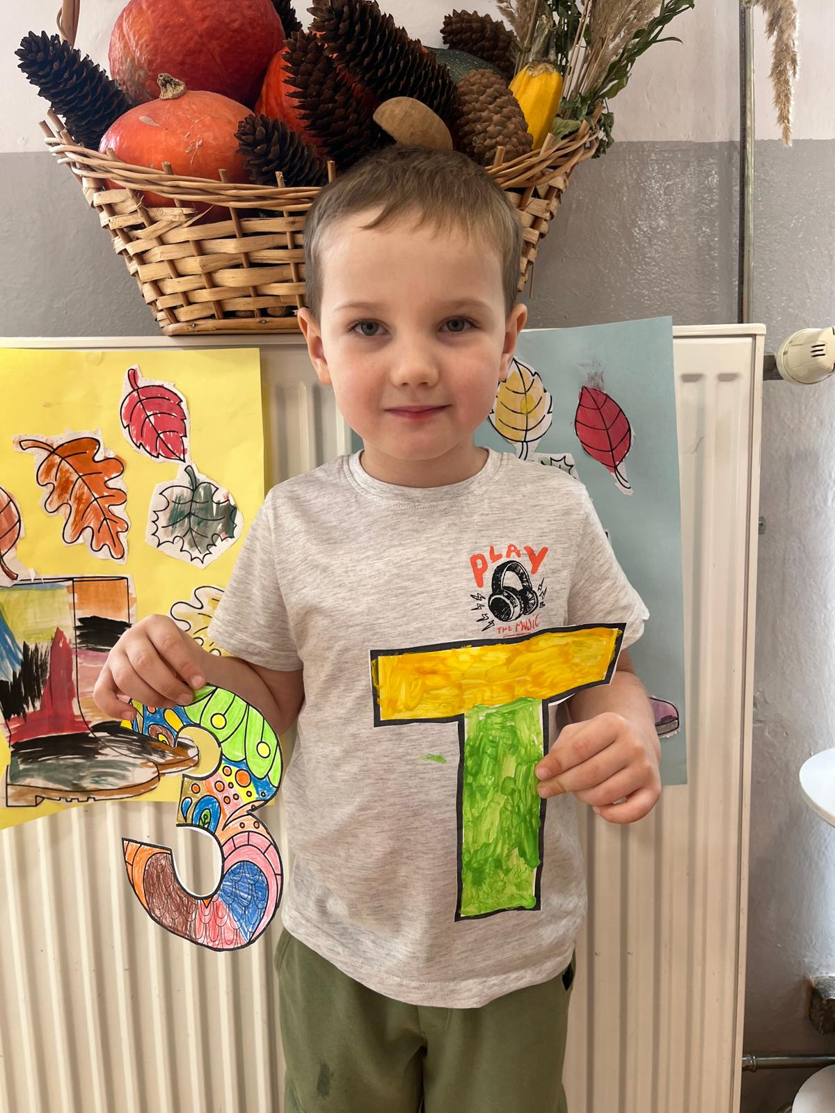 Poznaliśmy literkę T,t - szukając literki w słowach , wykonując ćwiczenia grafomotoryczne, zrobiliśmy pracę plastyczną z literką T.