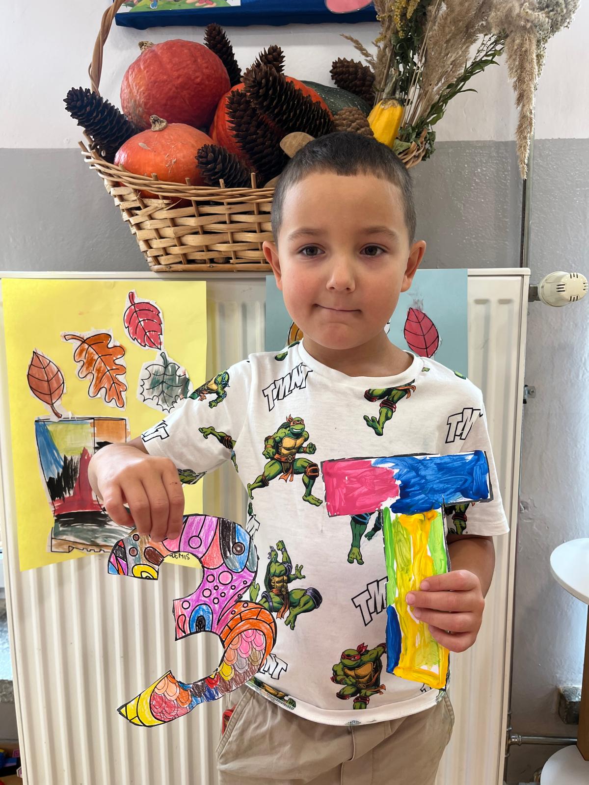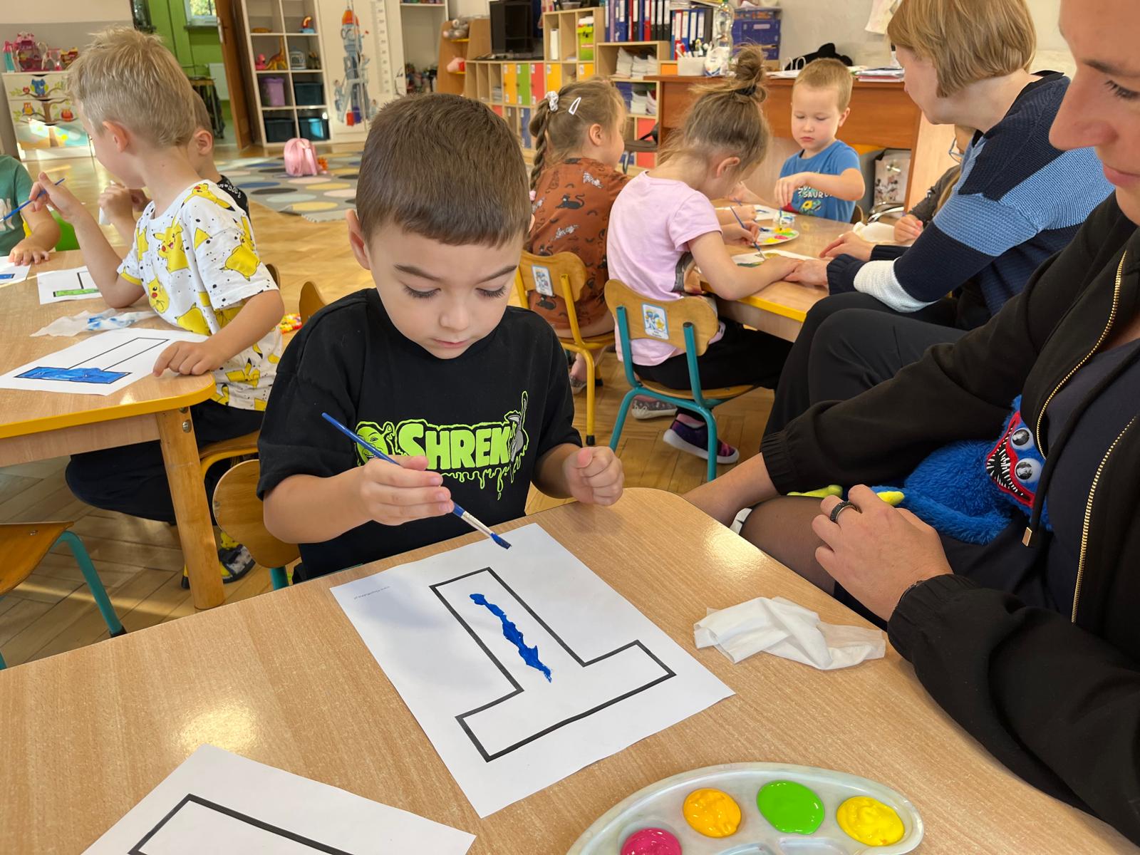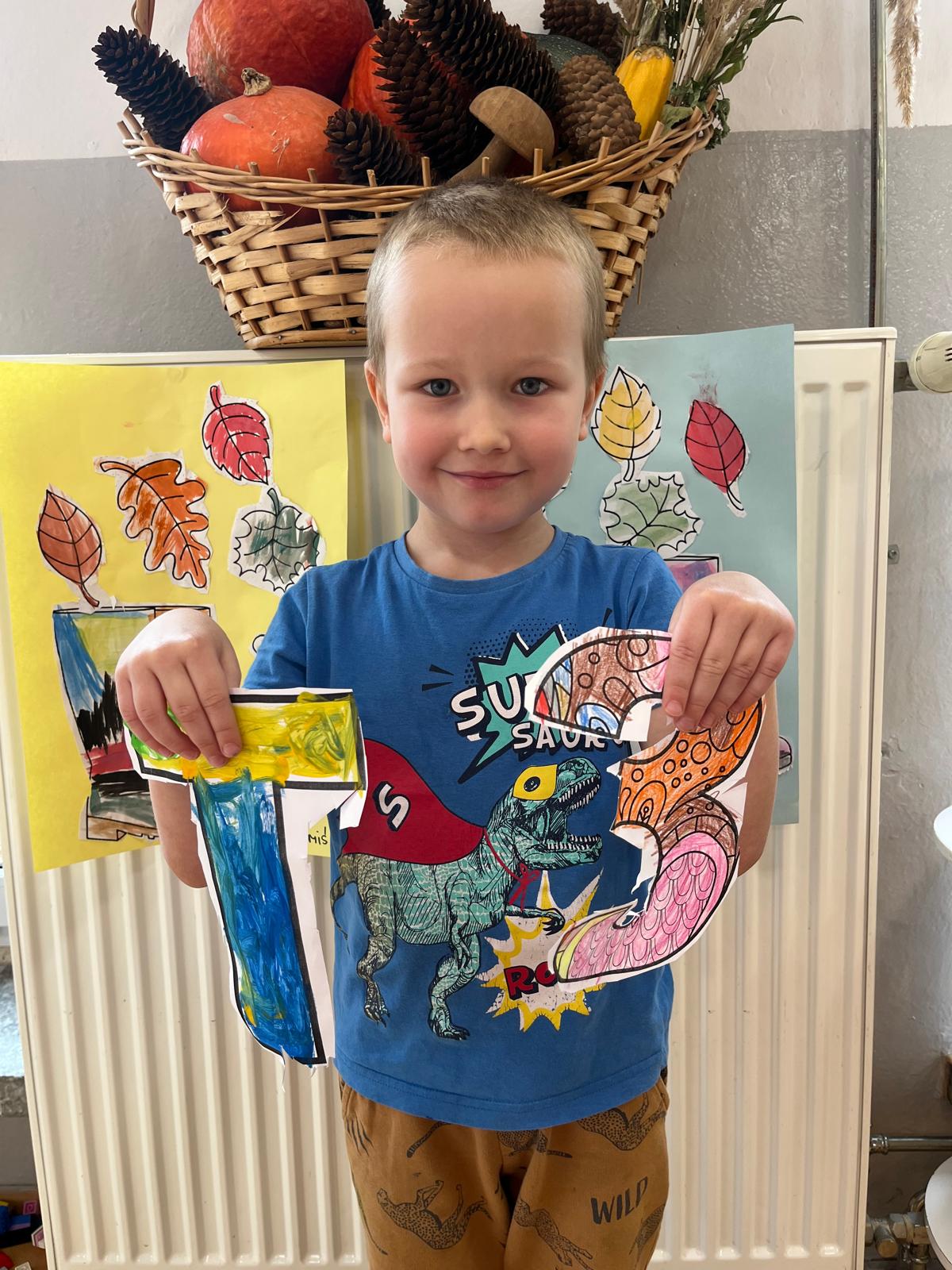 Poznaliśmy literkę T,t - szukając literki w słowach , wykonując ćwiczenia grafomotoryczne, zrobiliśmy pracę plastyczną z literką T.