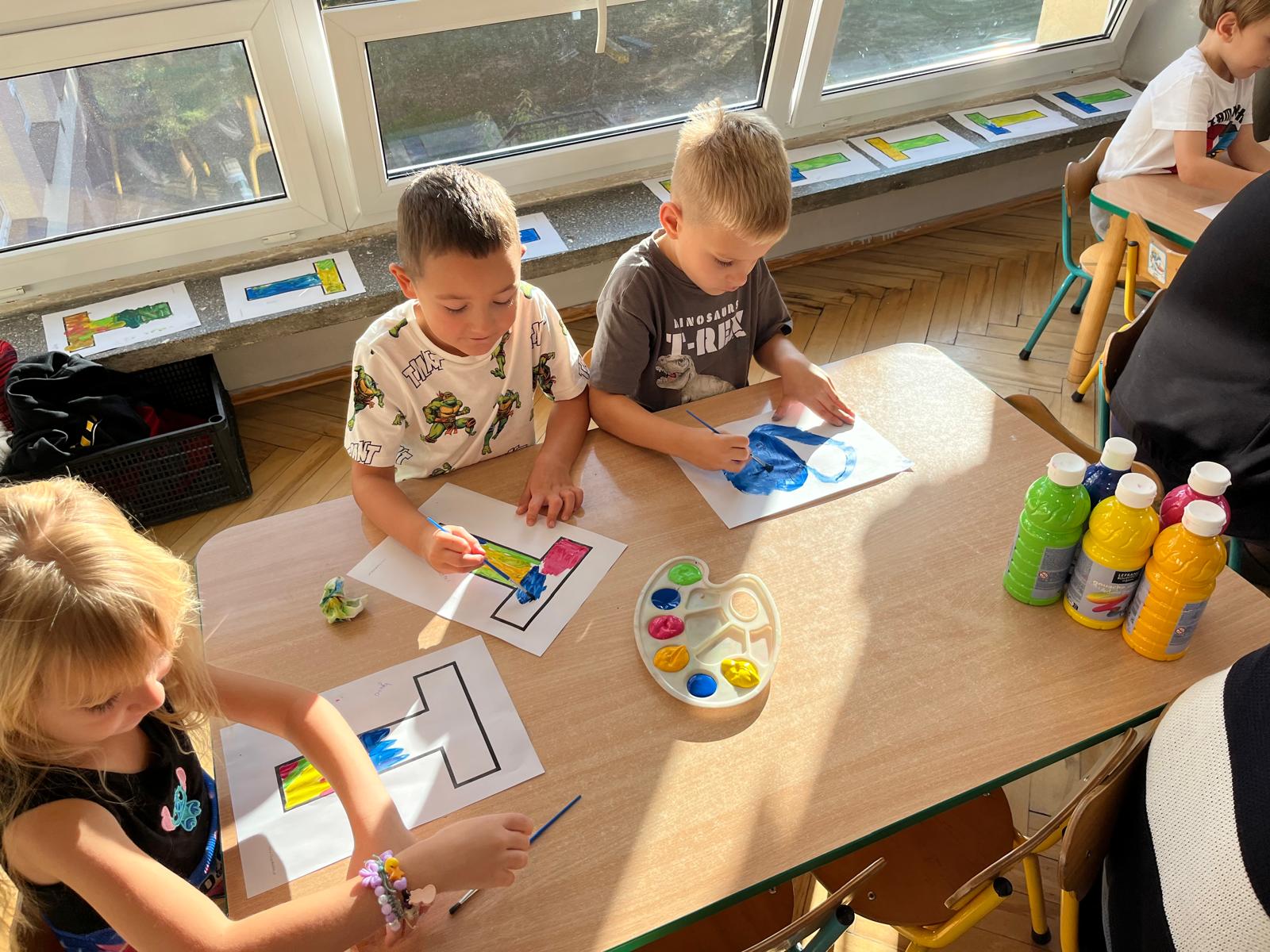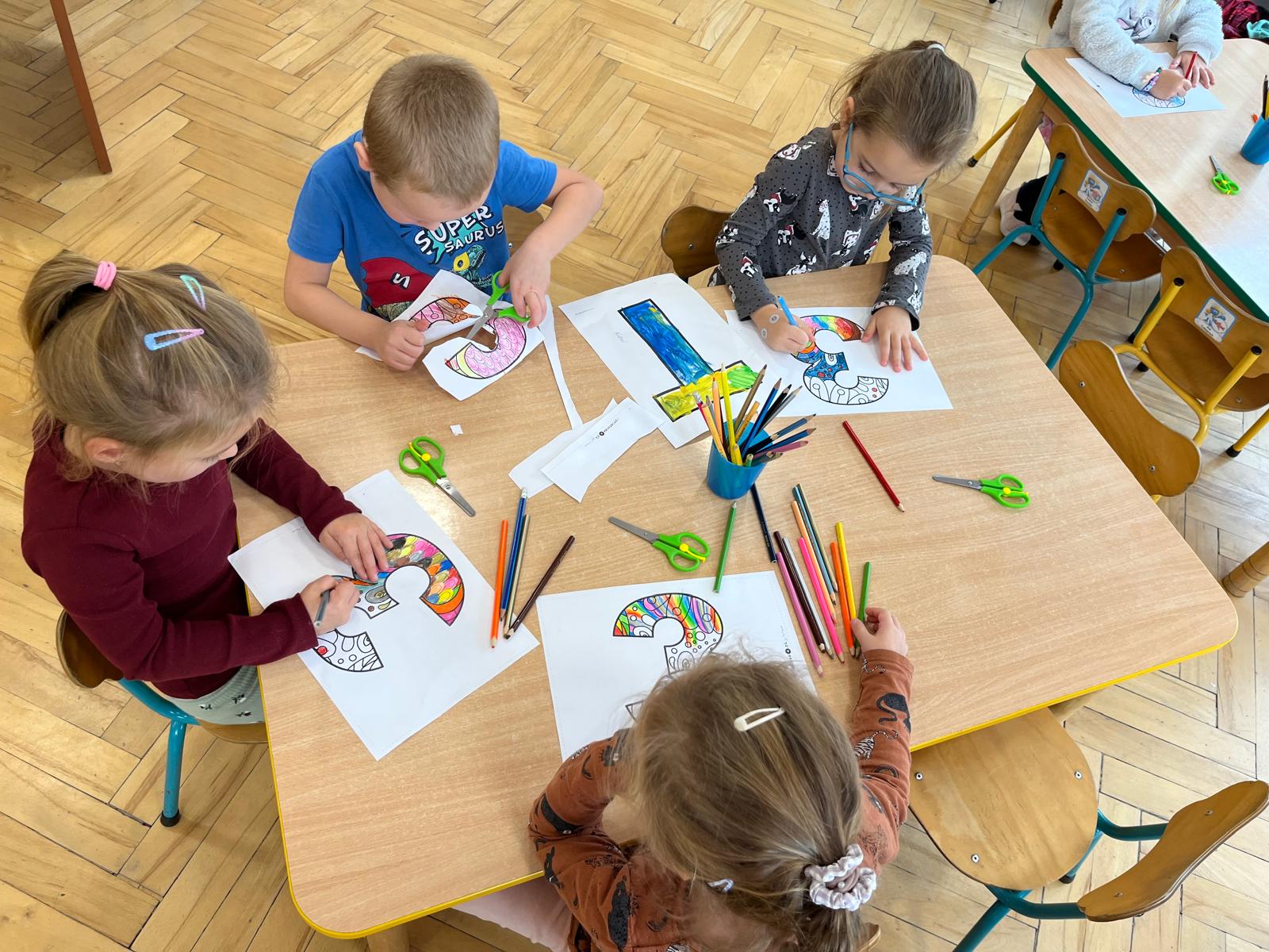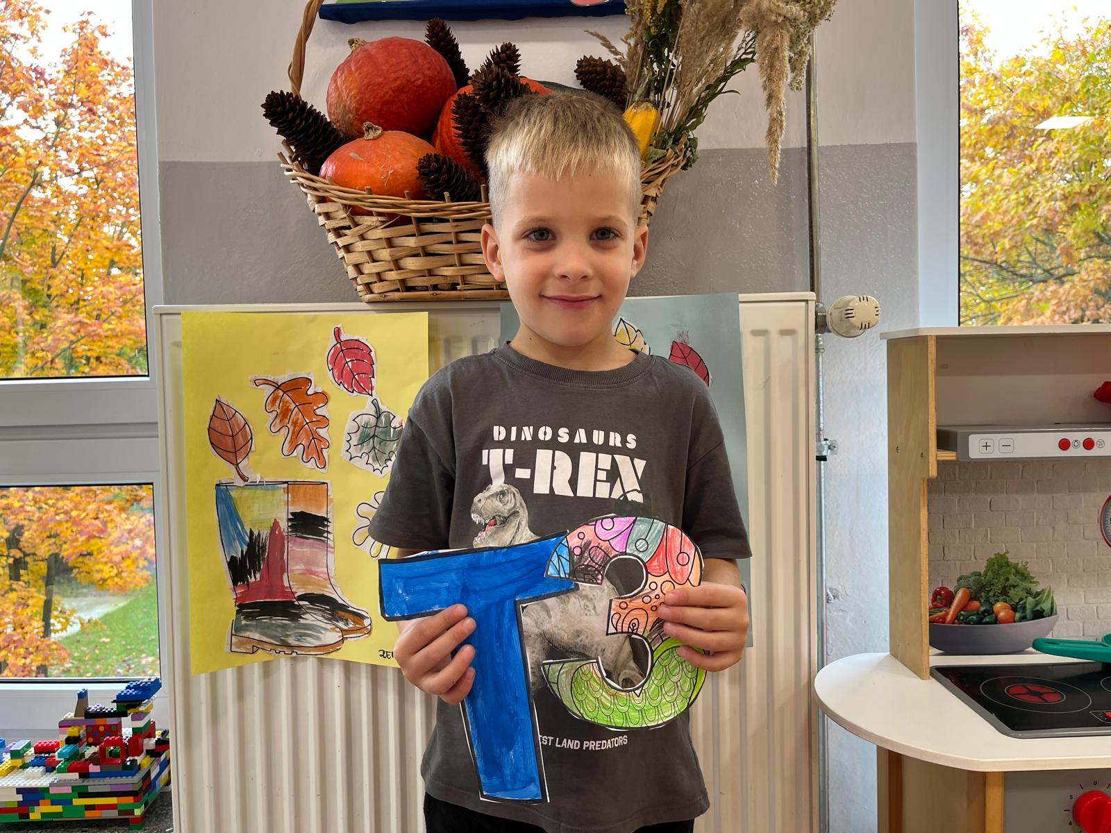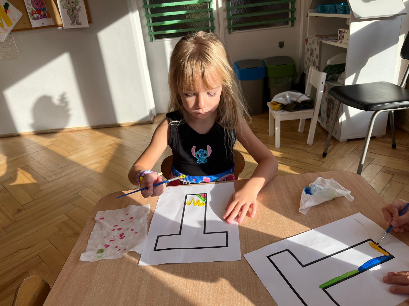 Poznaliśmy literkę T,t - szukając literki w słowach , wykonując ćwiczenia grafomotoryczne, zrobiliśmy pracę plastyczną z literką T.